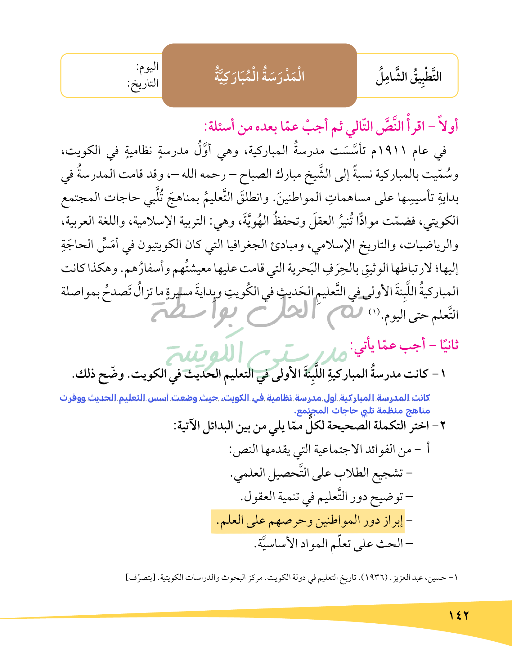 تطبيق المدرسة المباركية