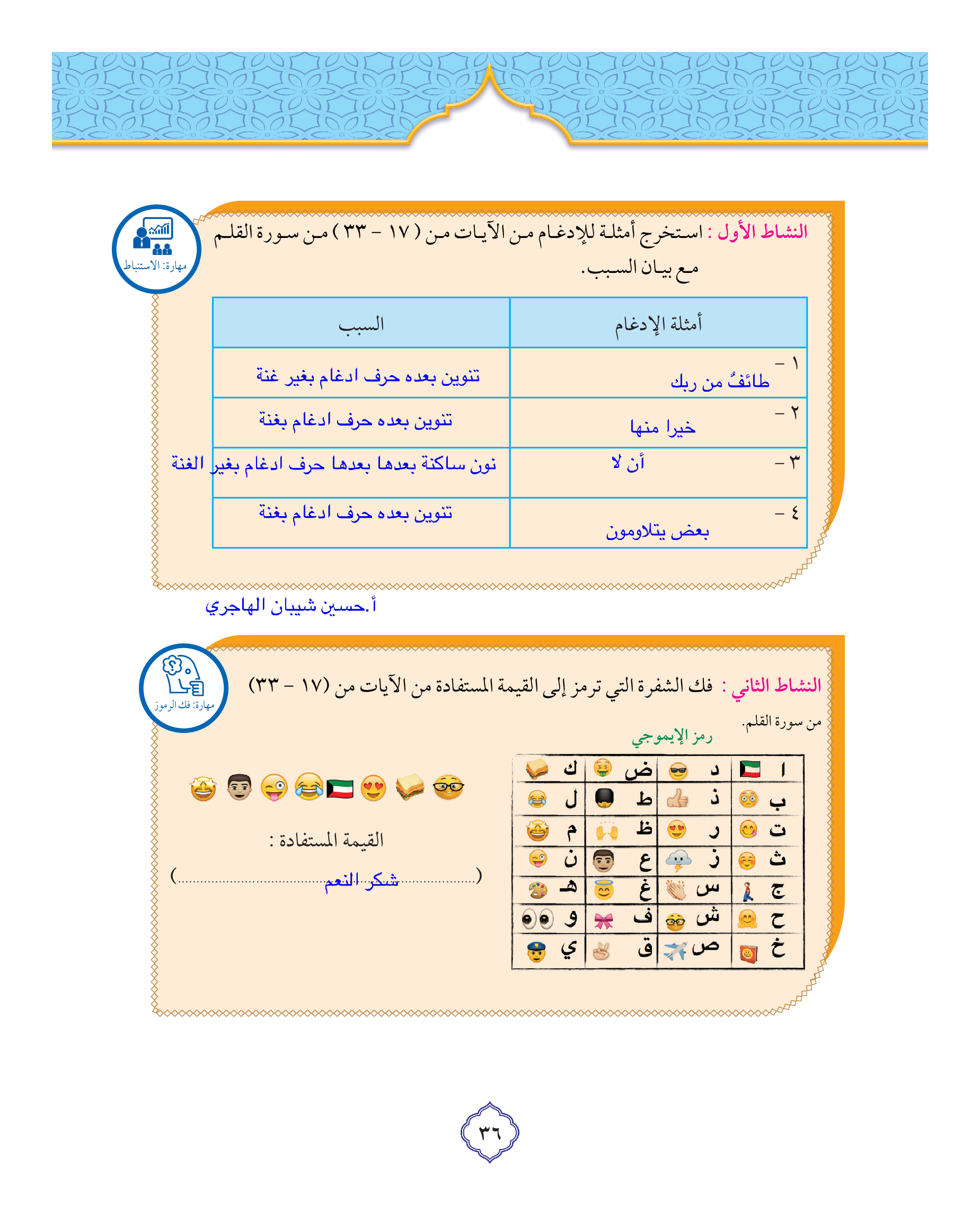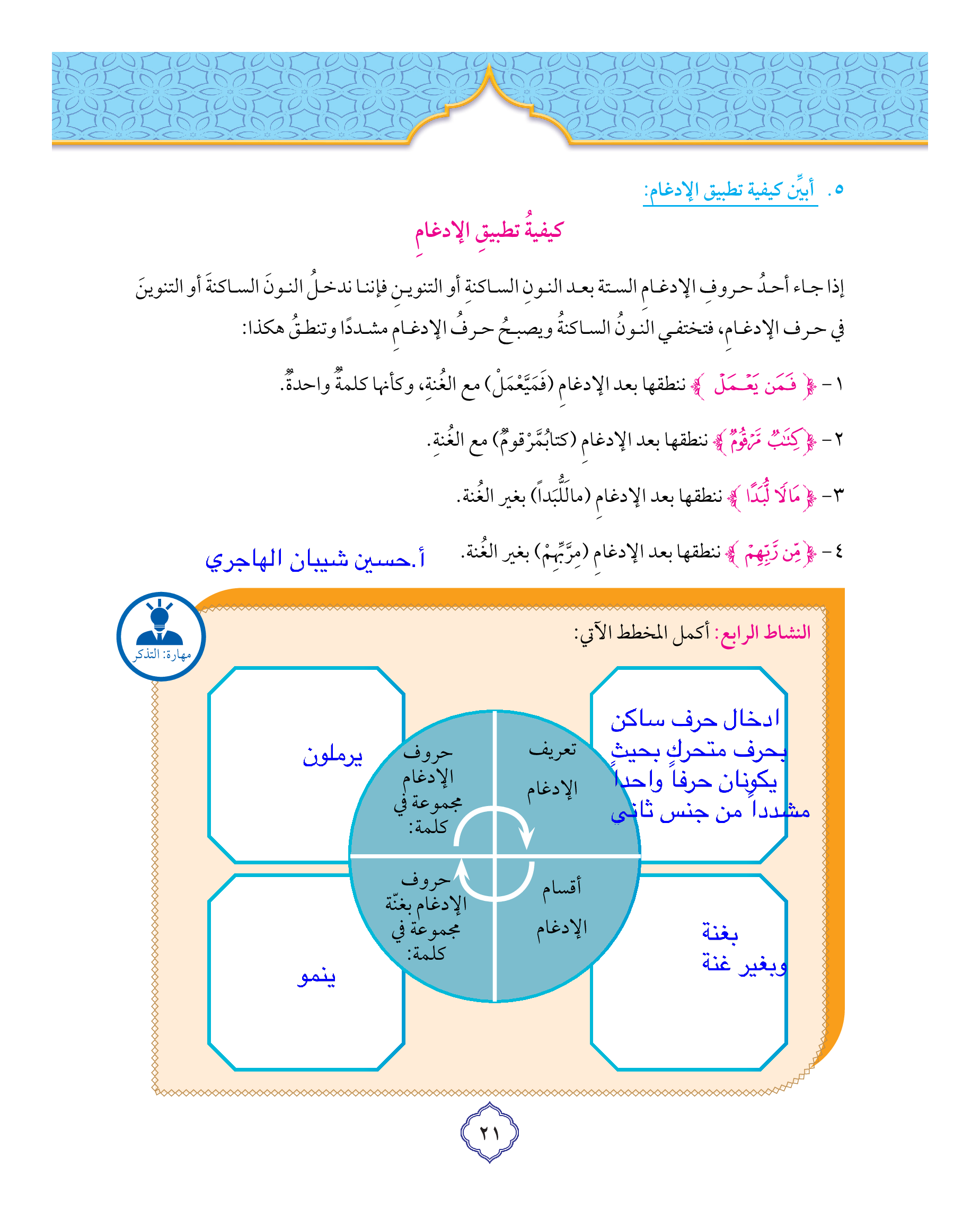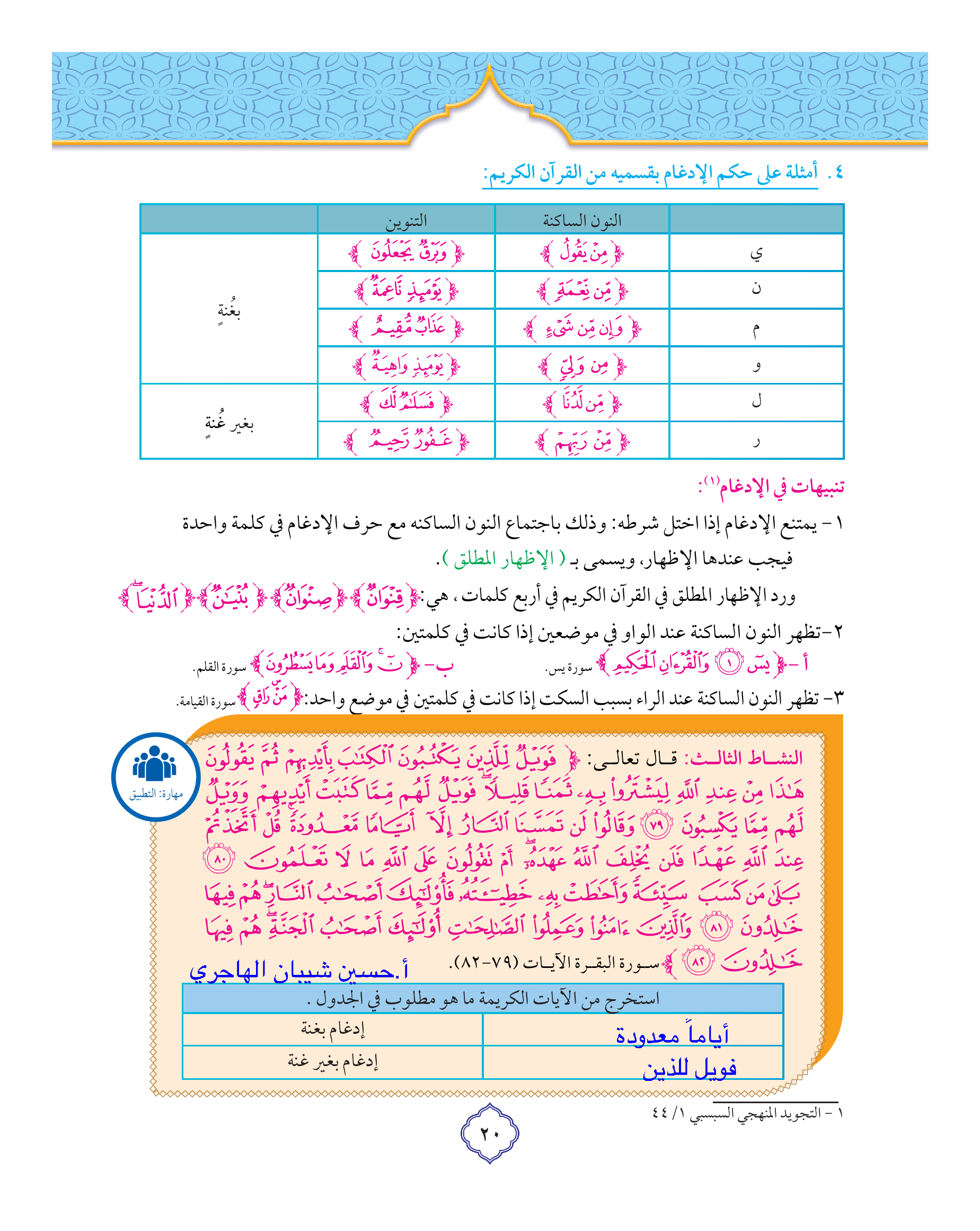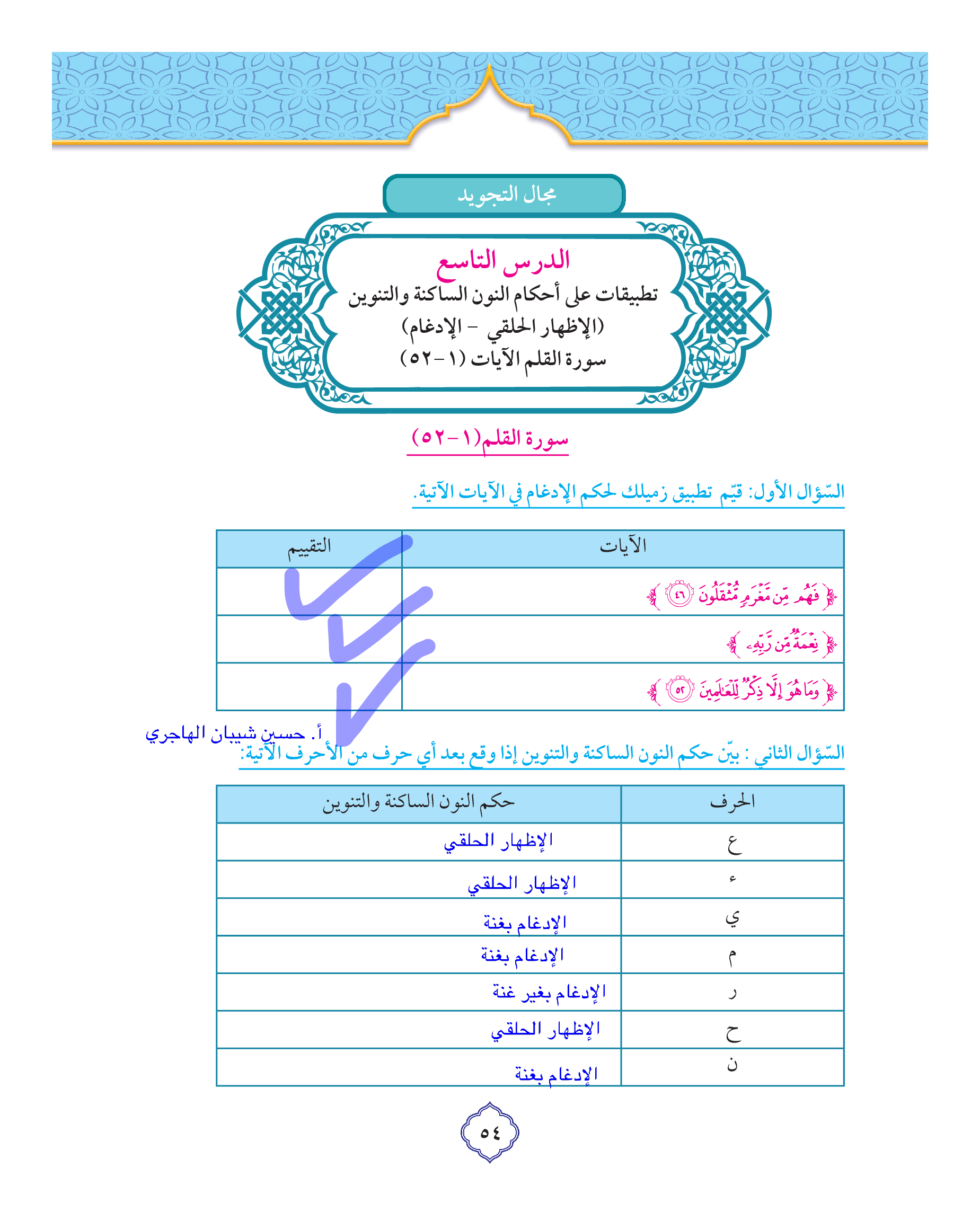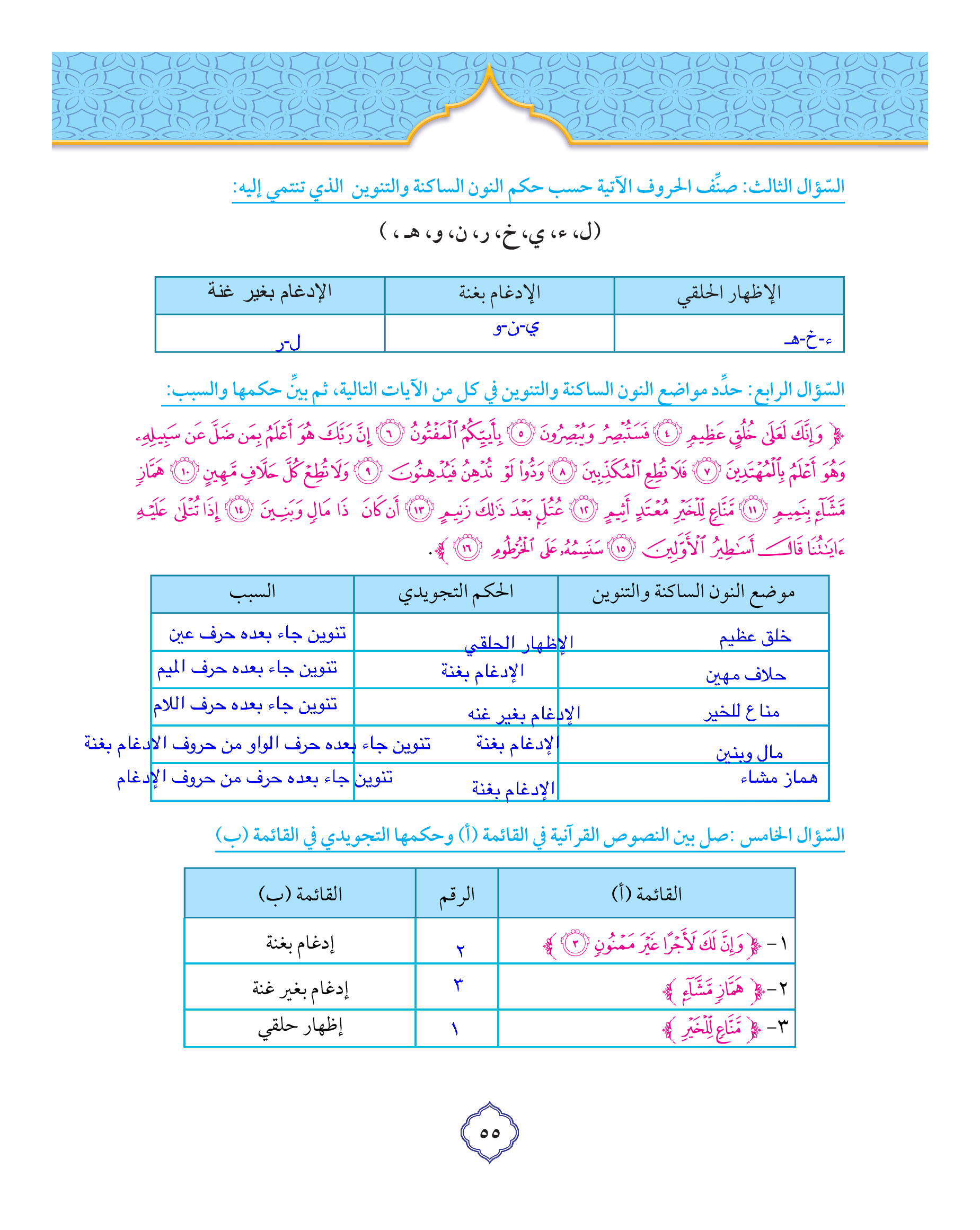 تطبيقات على أحكام النون الساكنة والتنوين (الاظهار الحلقي - الادغام)