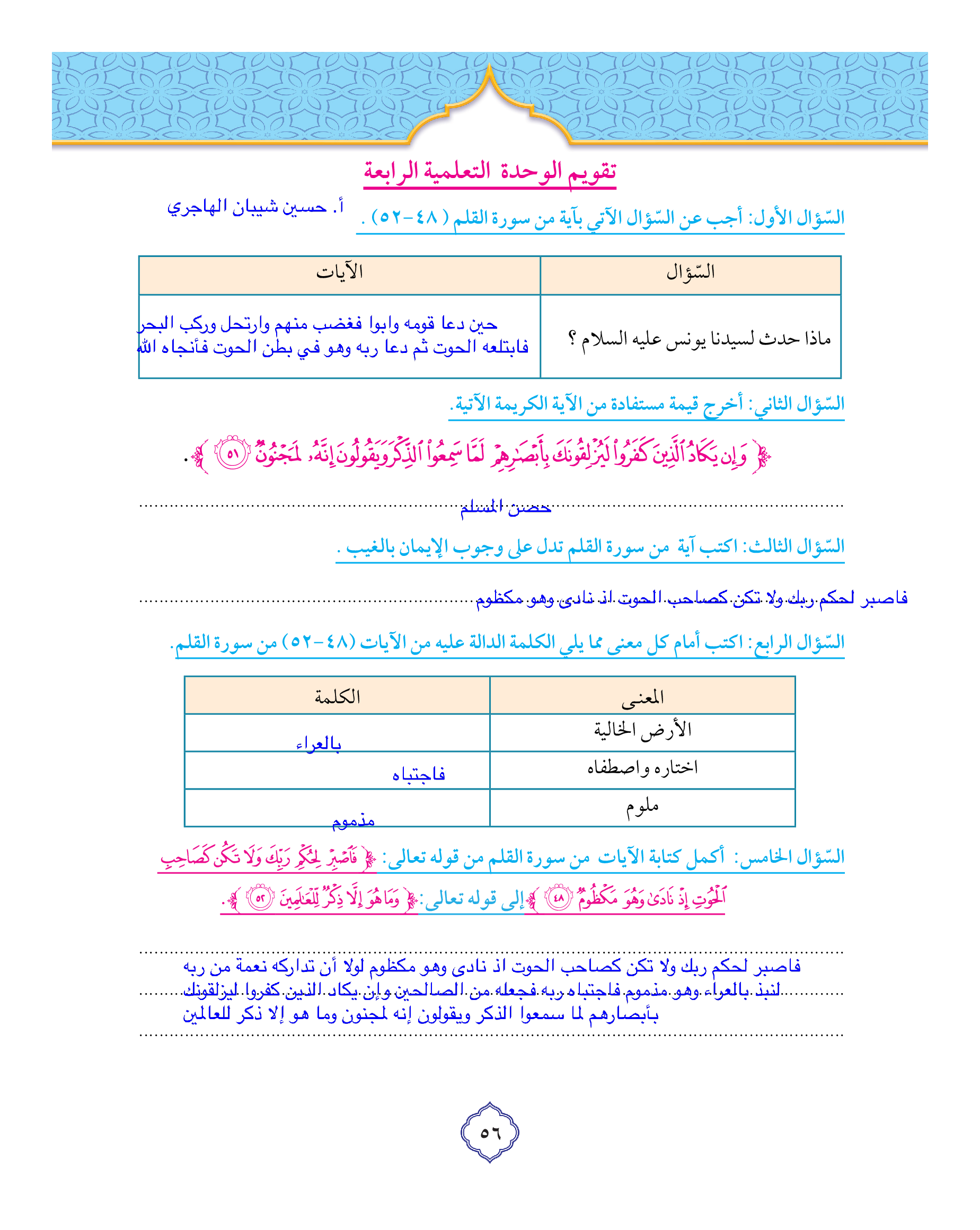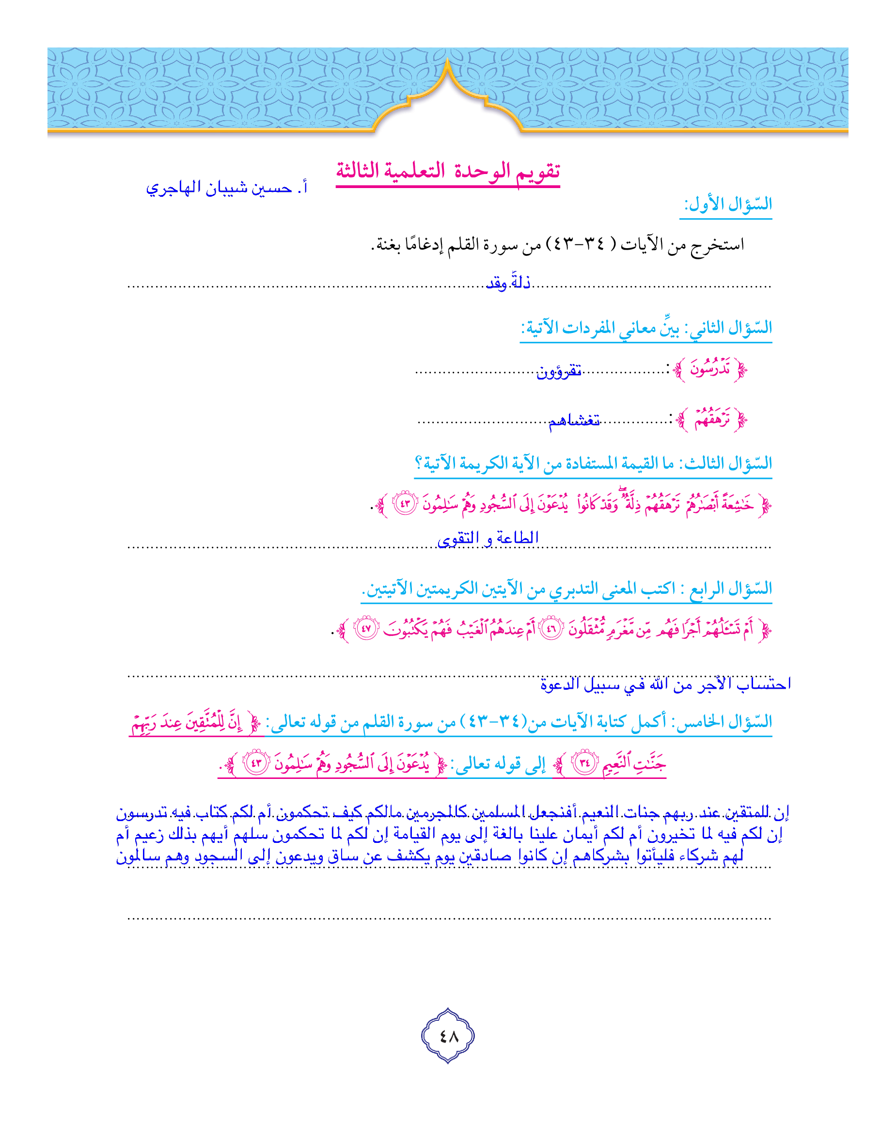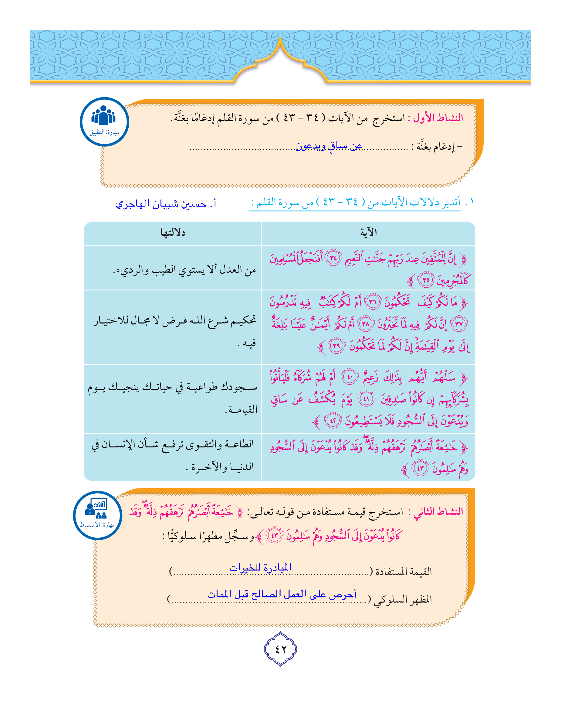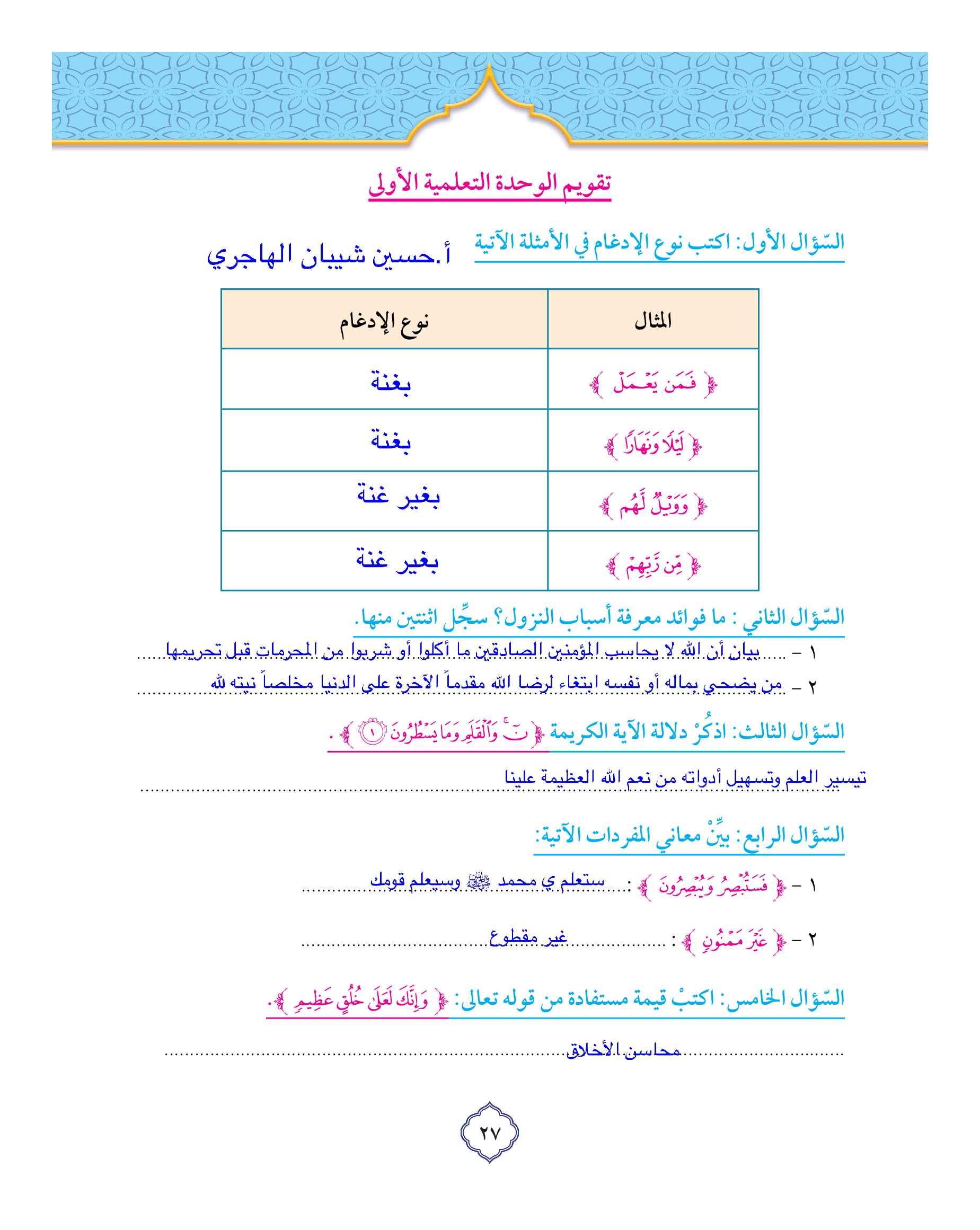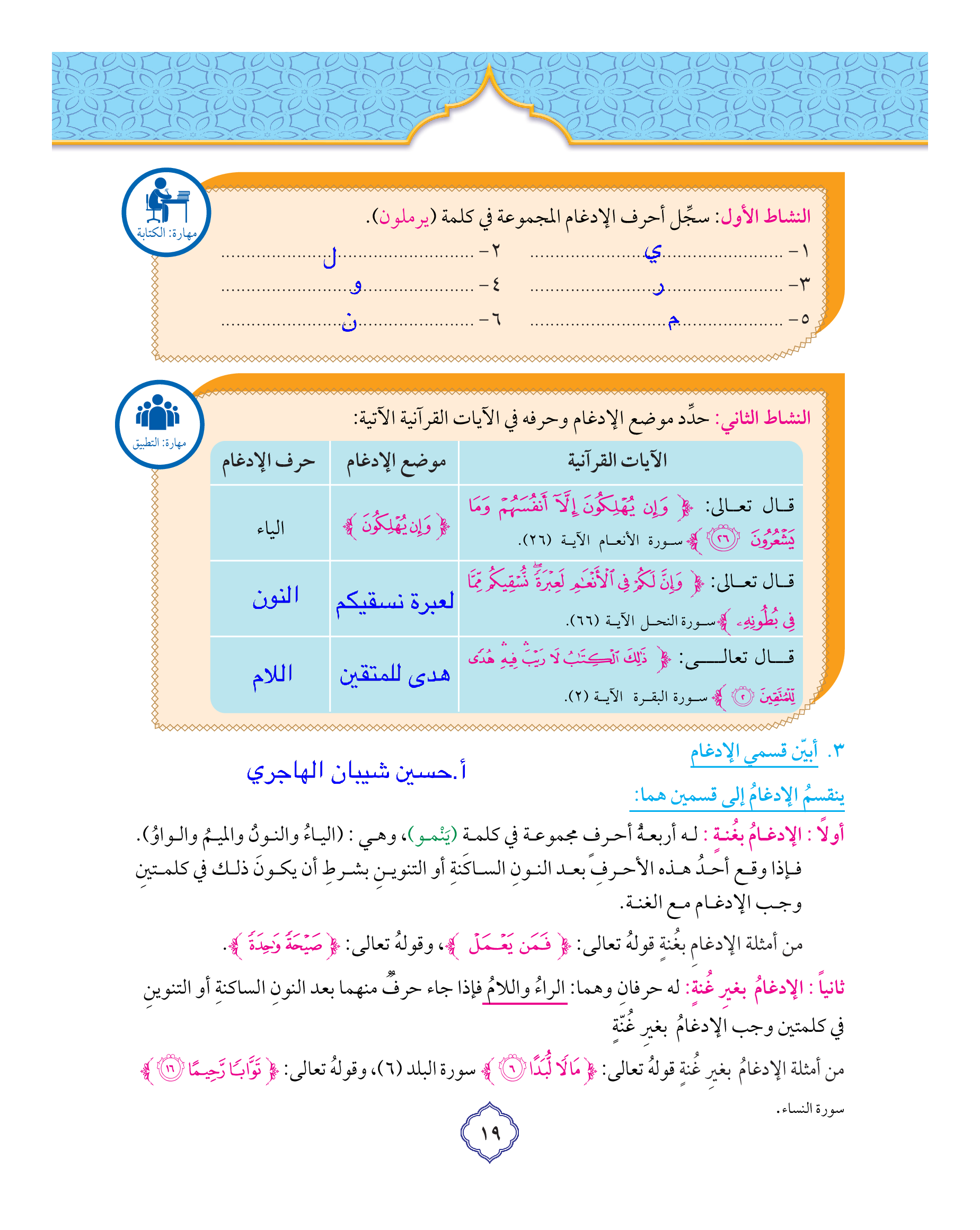 تطبيقات على أحكام النون الساكنة والتنوين (الاظهار الحلقي - الادغام)