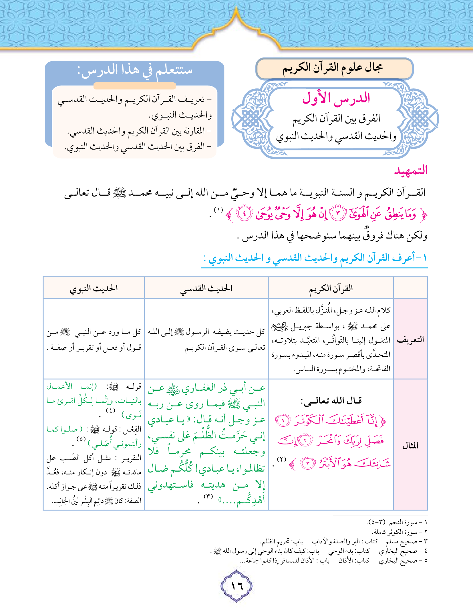 الفرق بين القرآن الكريم والحديث القدسي والحديث النبوي