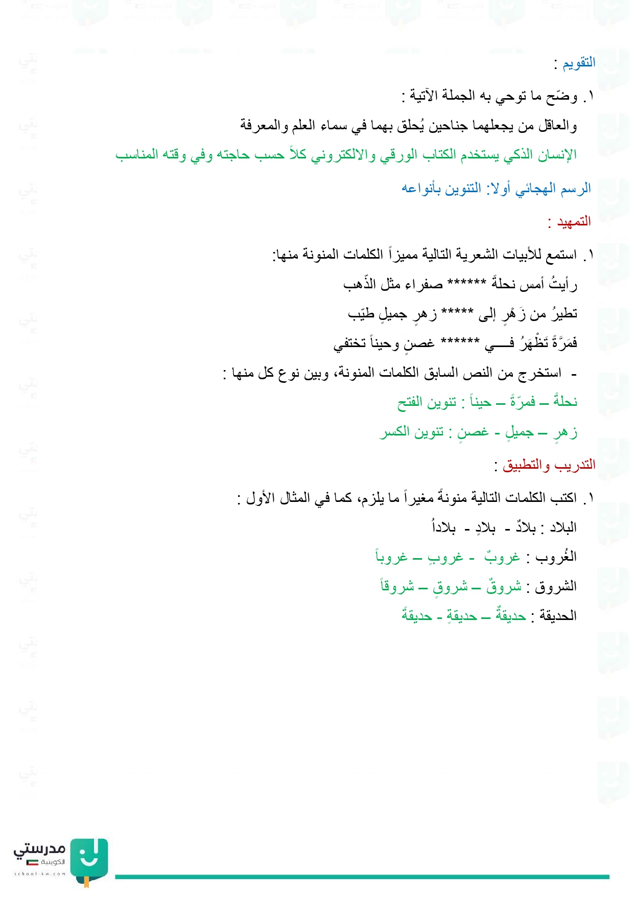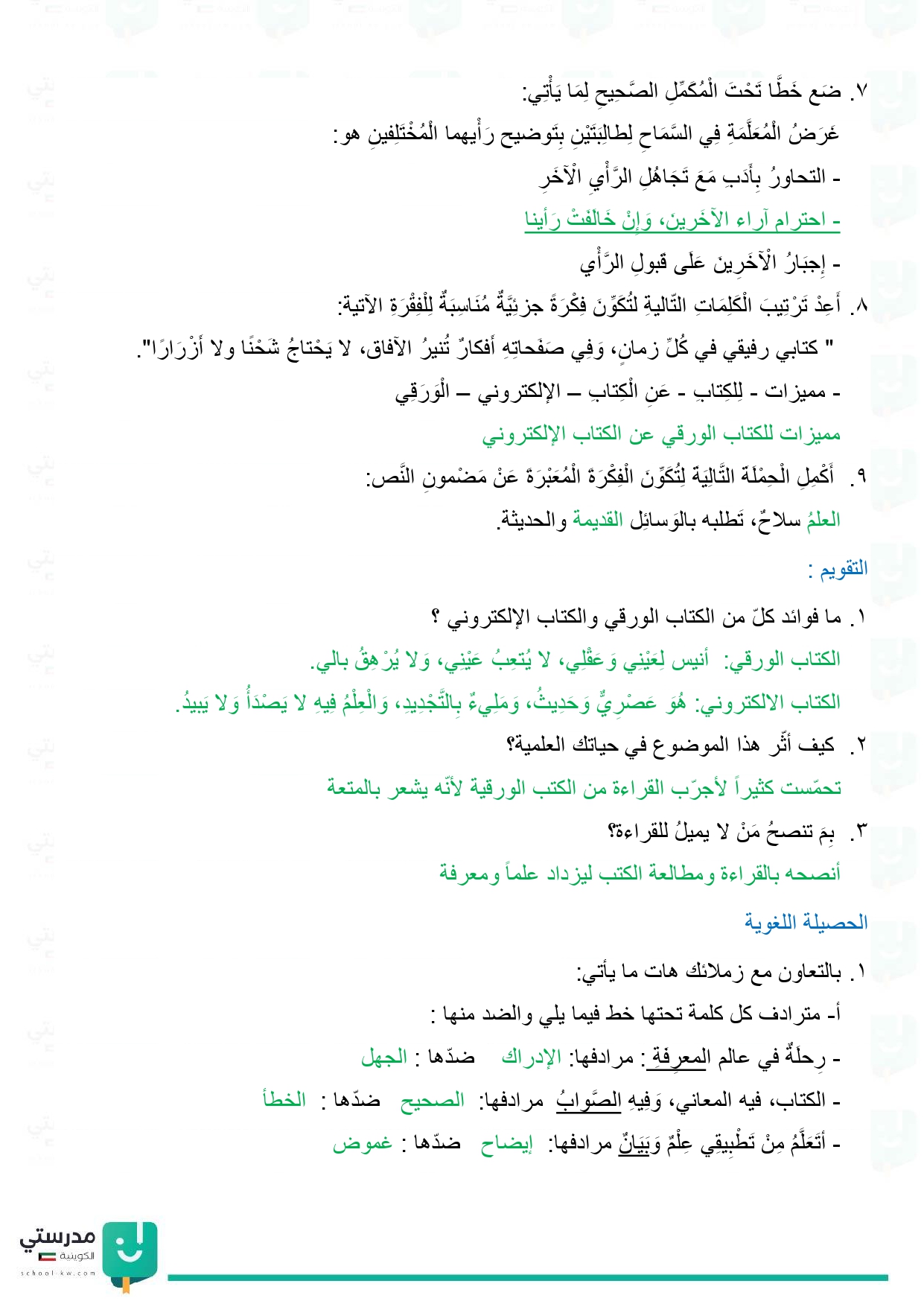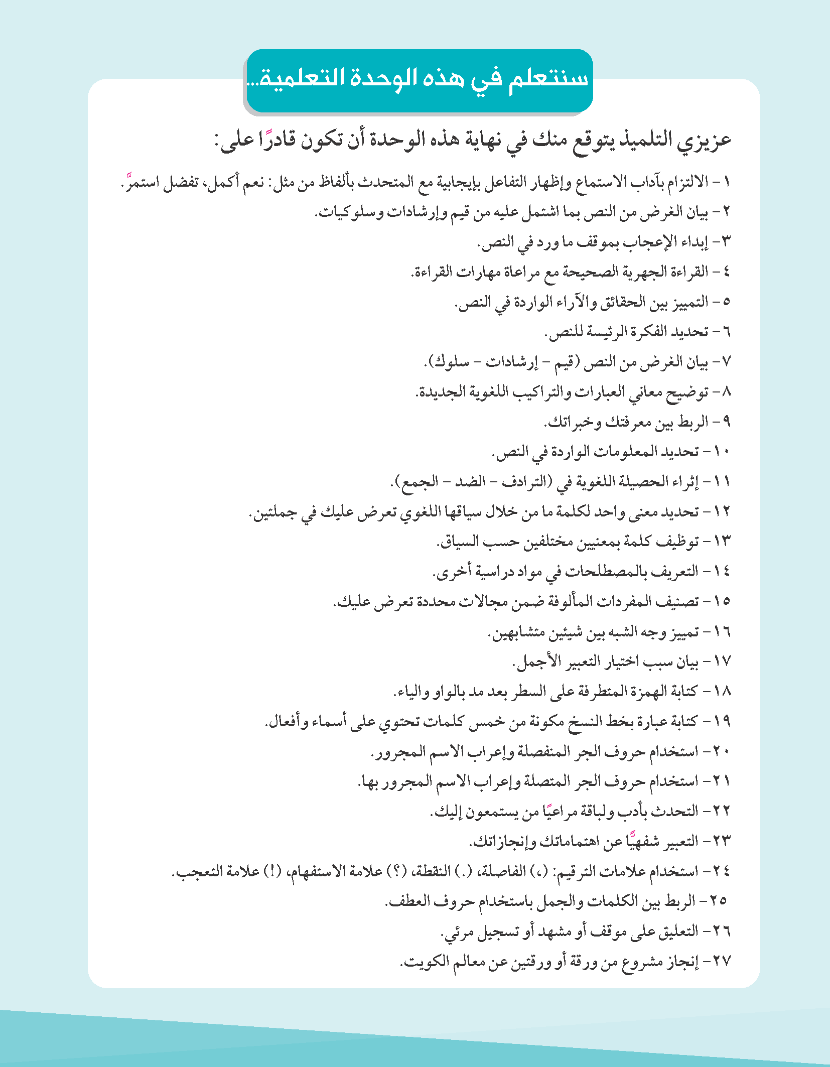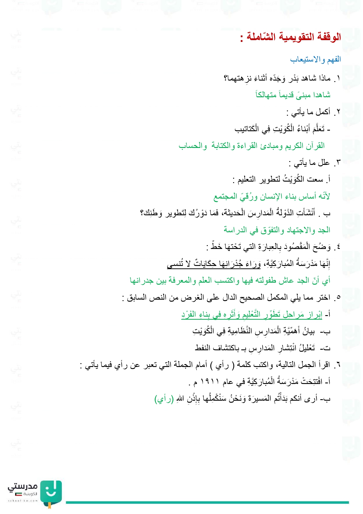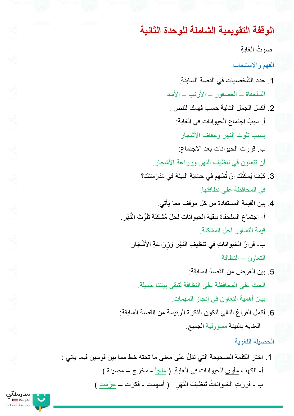 الوقفة التقويمية الشاملة للوحدة الثانية
