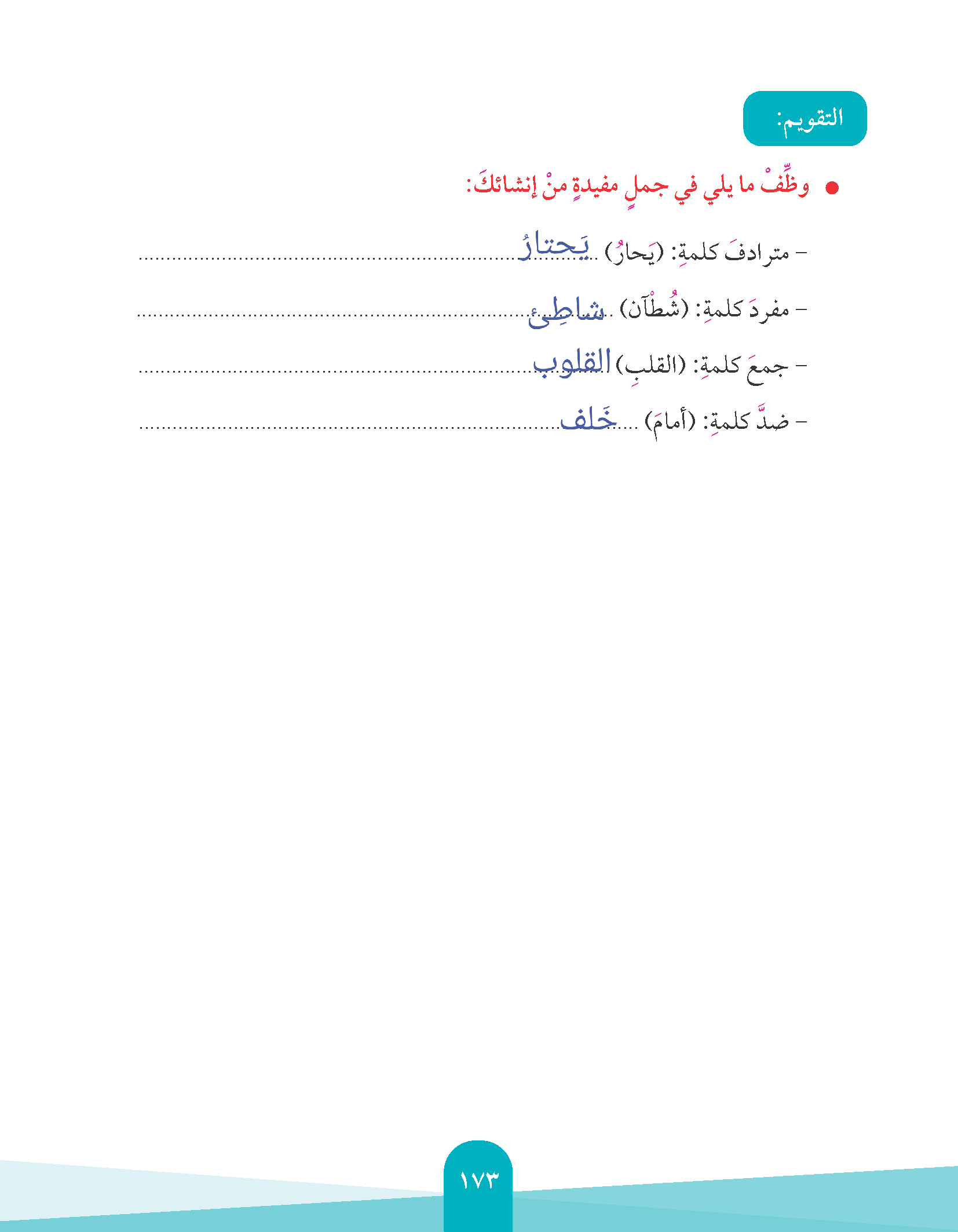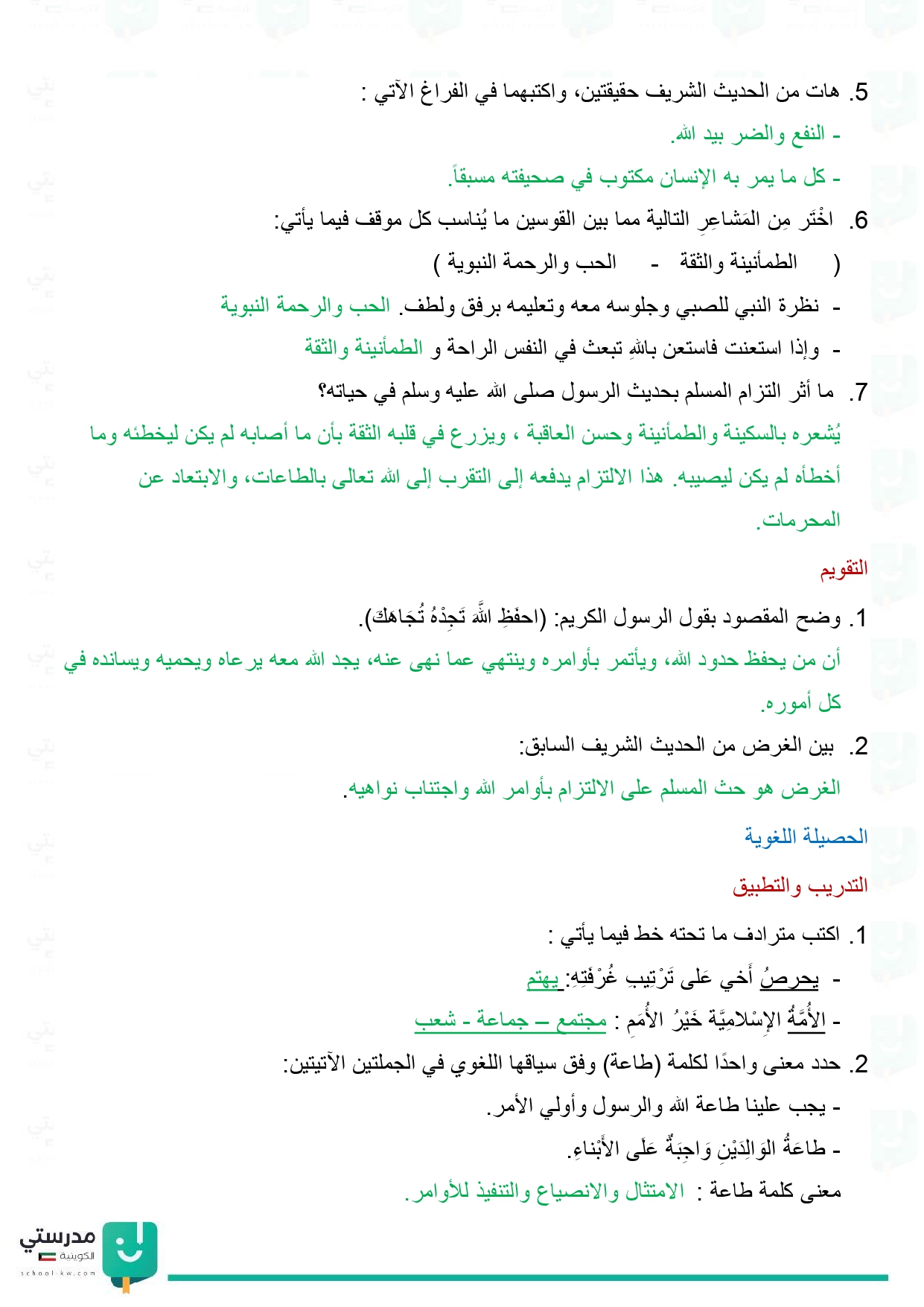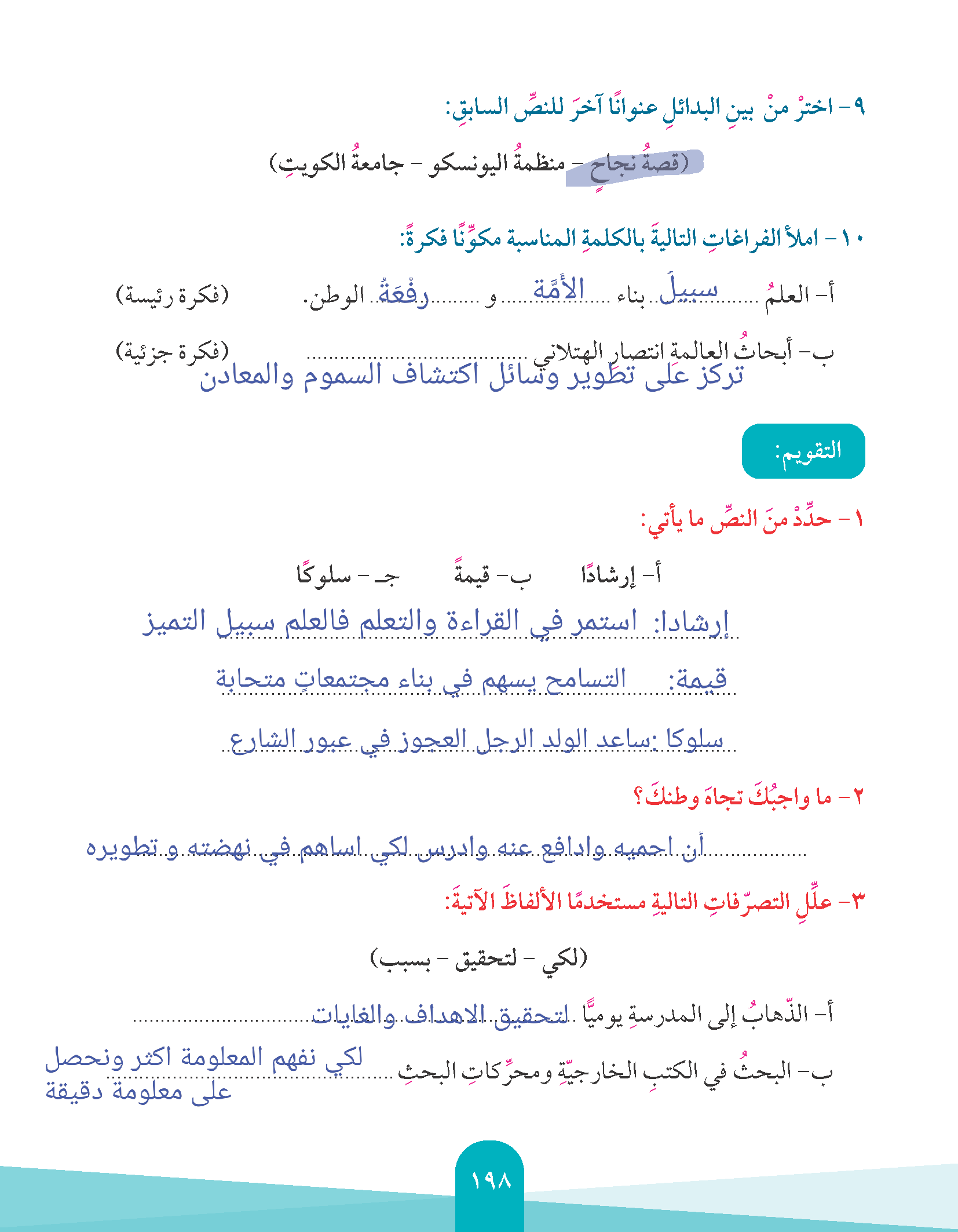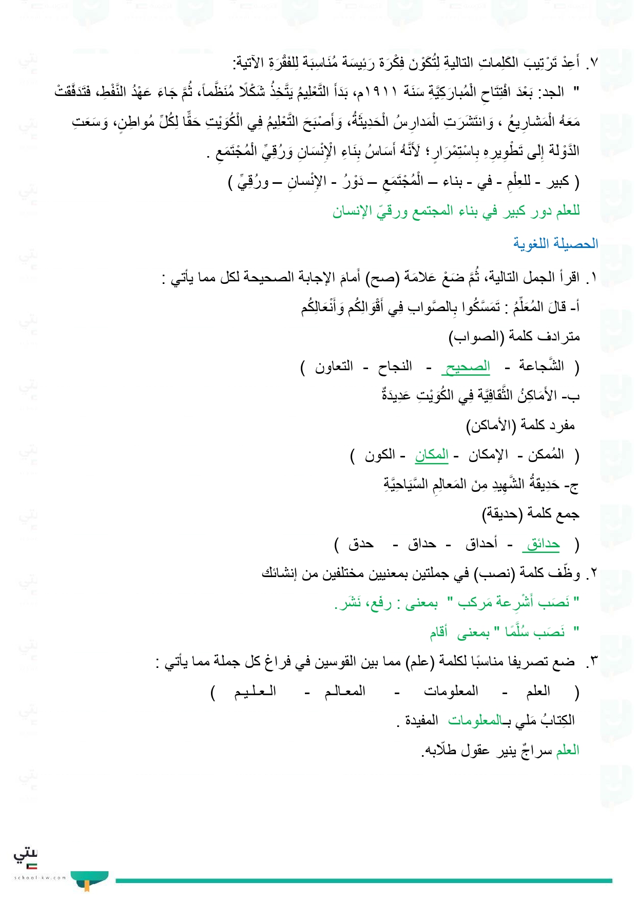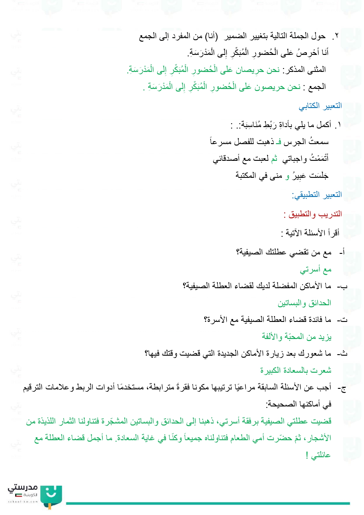 الوقفة التقويمية الشاملة للوحدة الثانية
