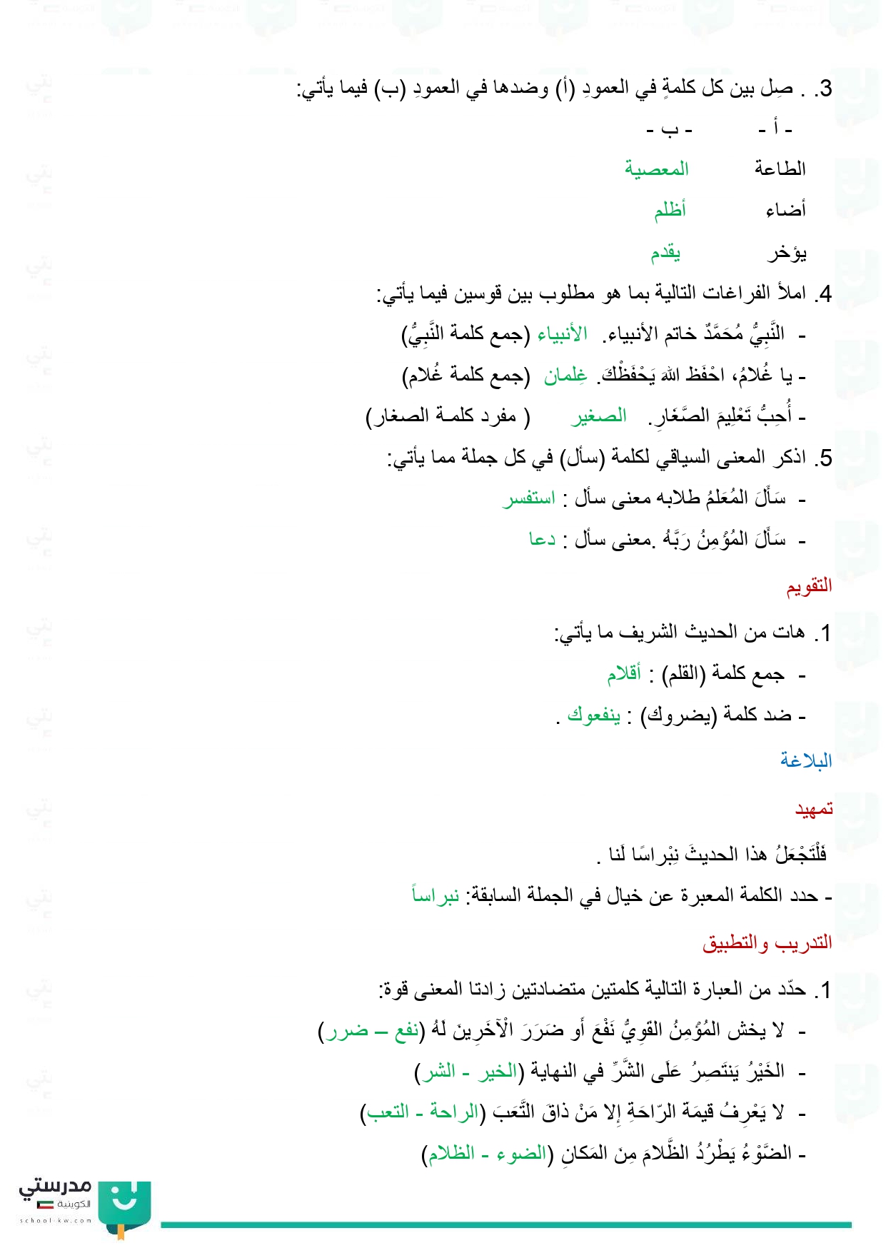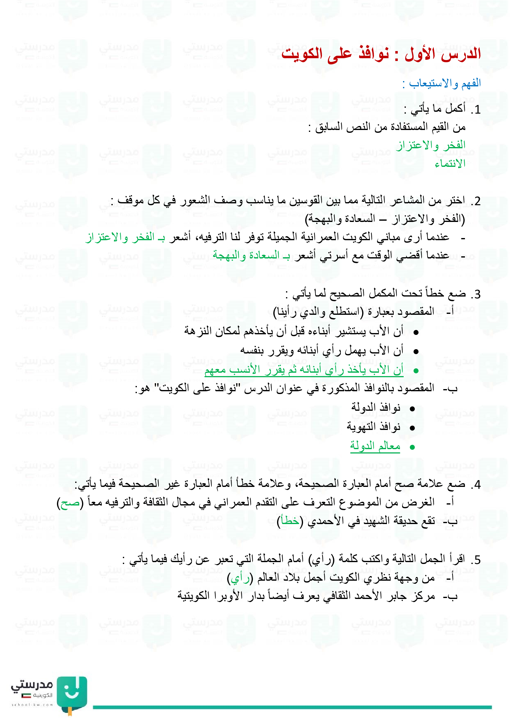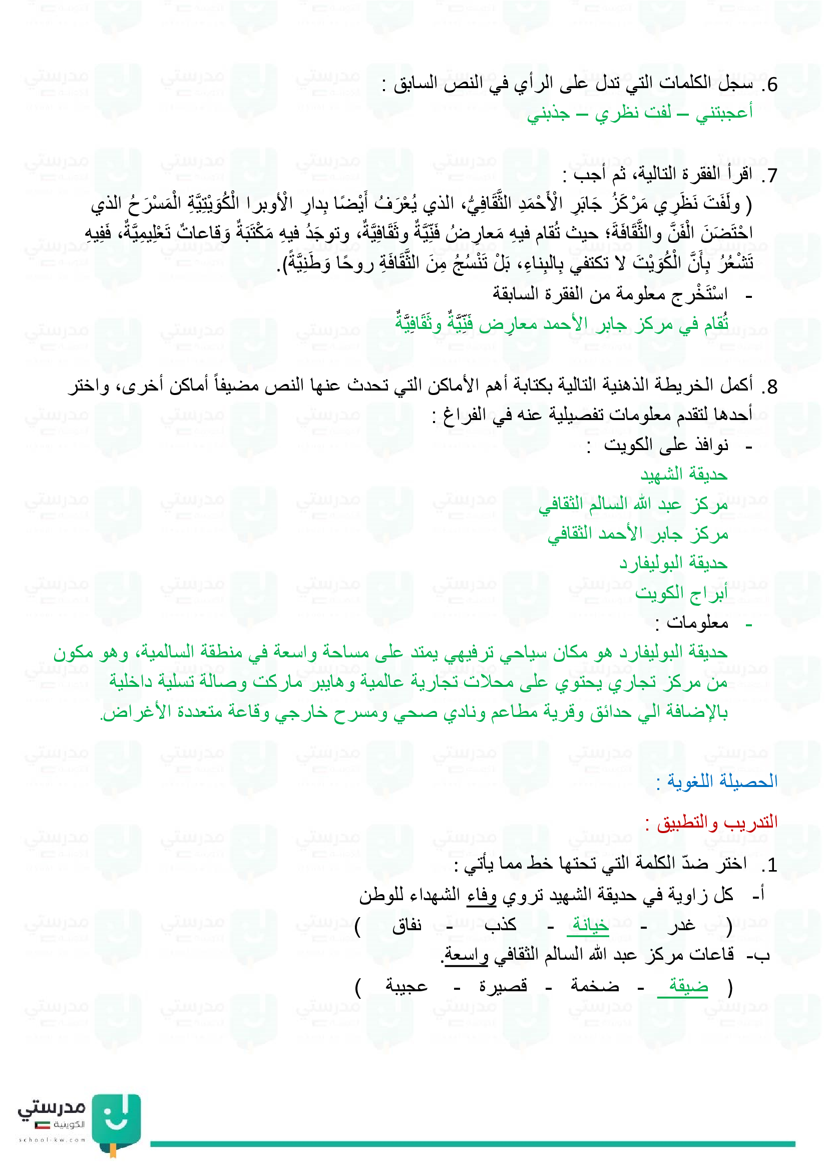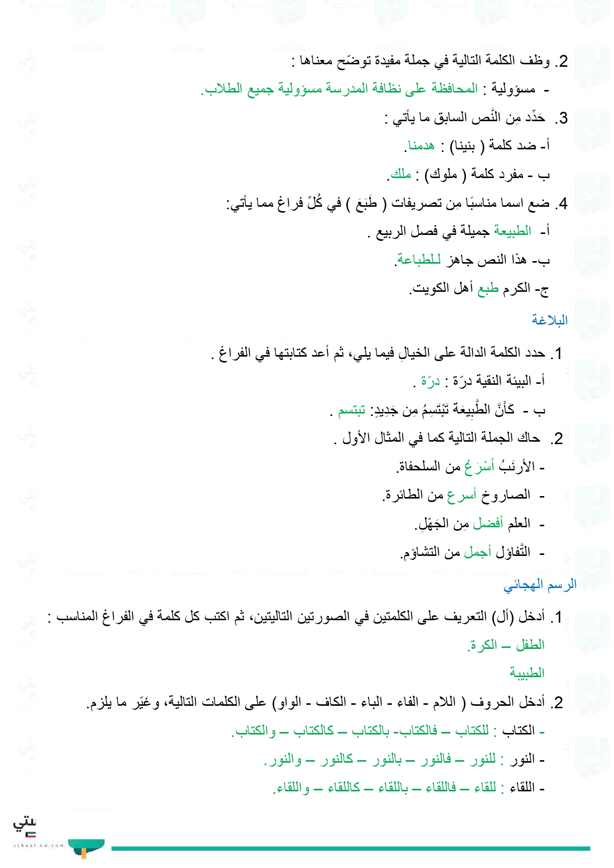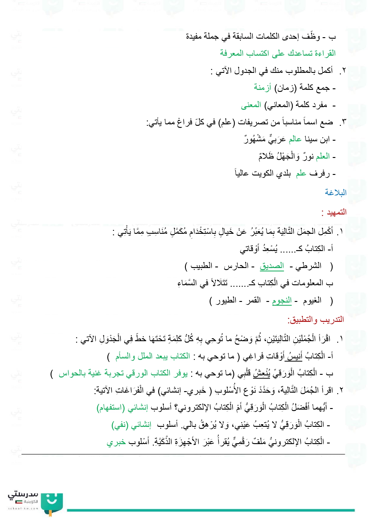 الوقفة التقويمية الشاملة للوحدة الثانية