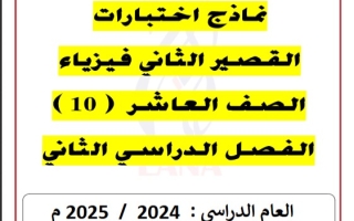 نماذج للاختبار القصير2 فيزياء عاشر فصل ثاني #أ. يوسف عزمي 2024-2025