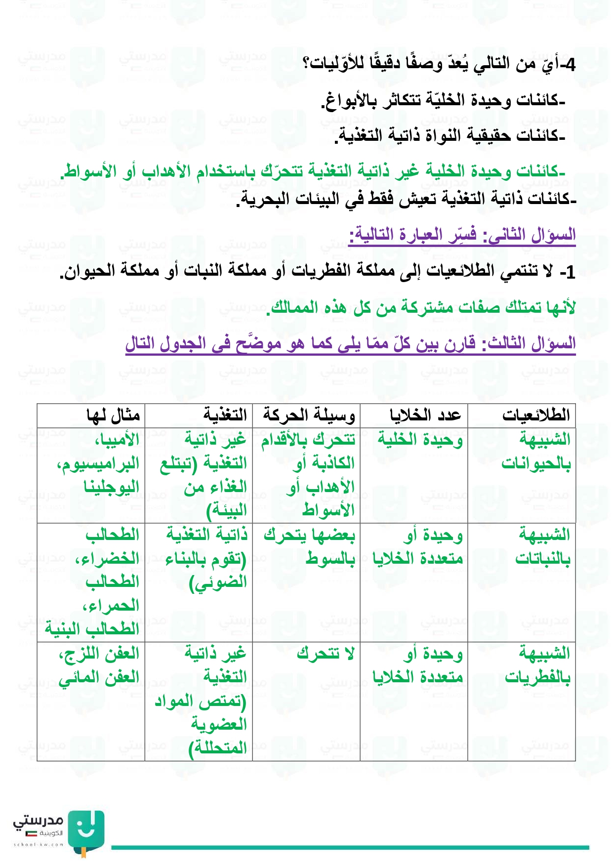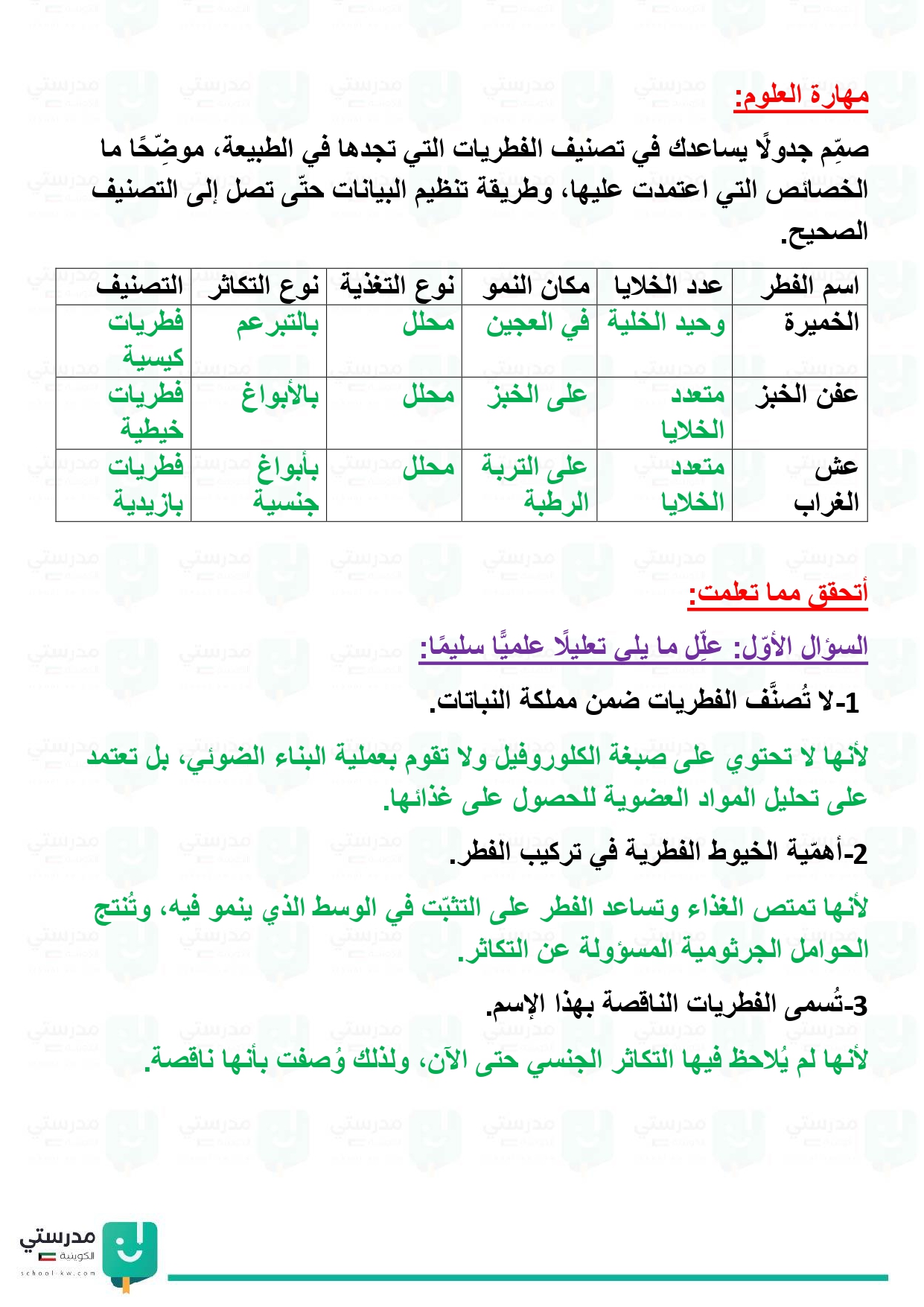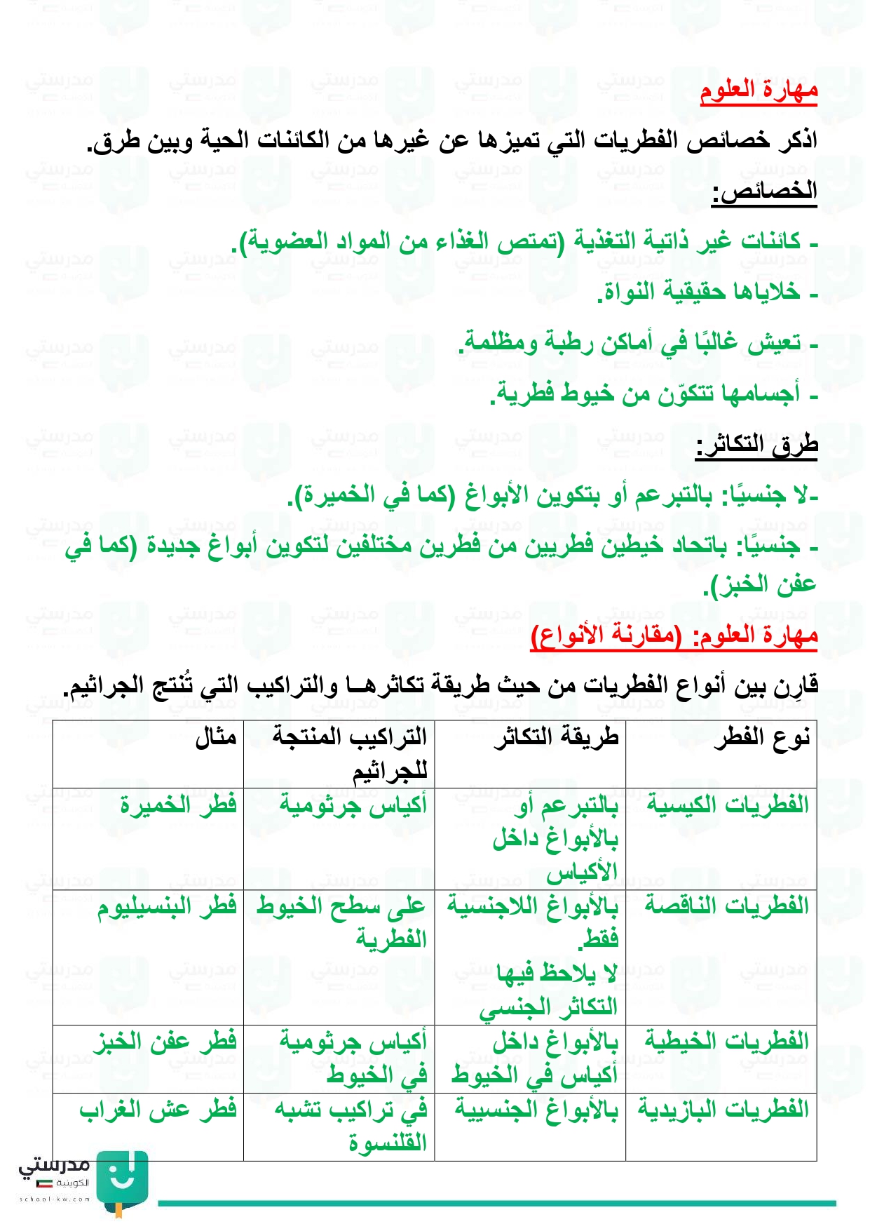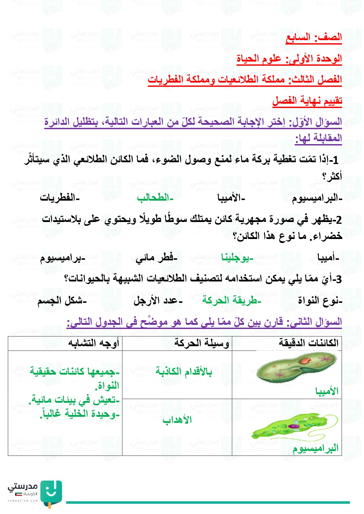تقويم فصل مملكة الطلائعيات ومملكة الفطريات