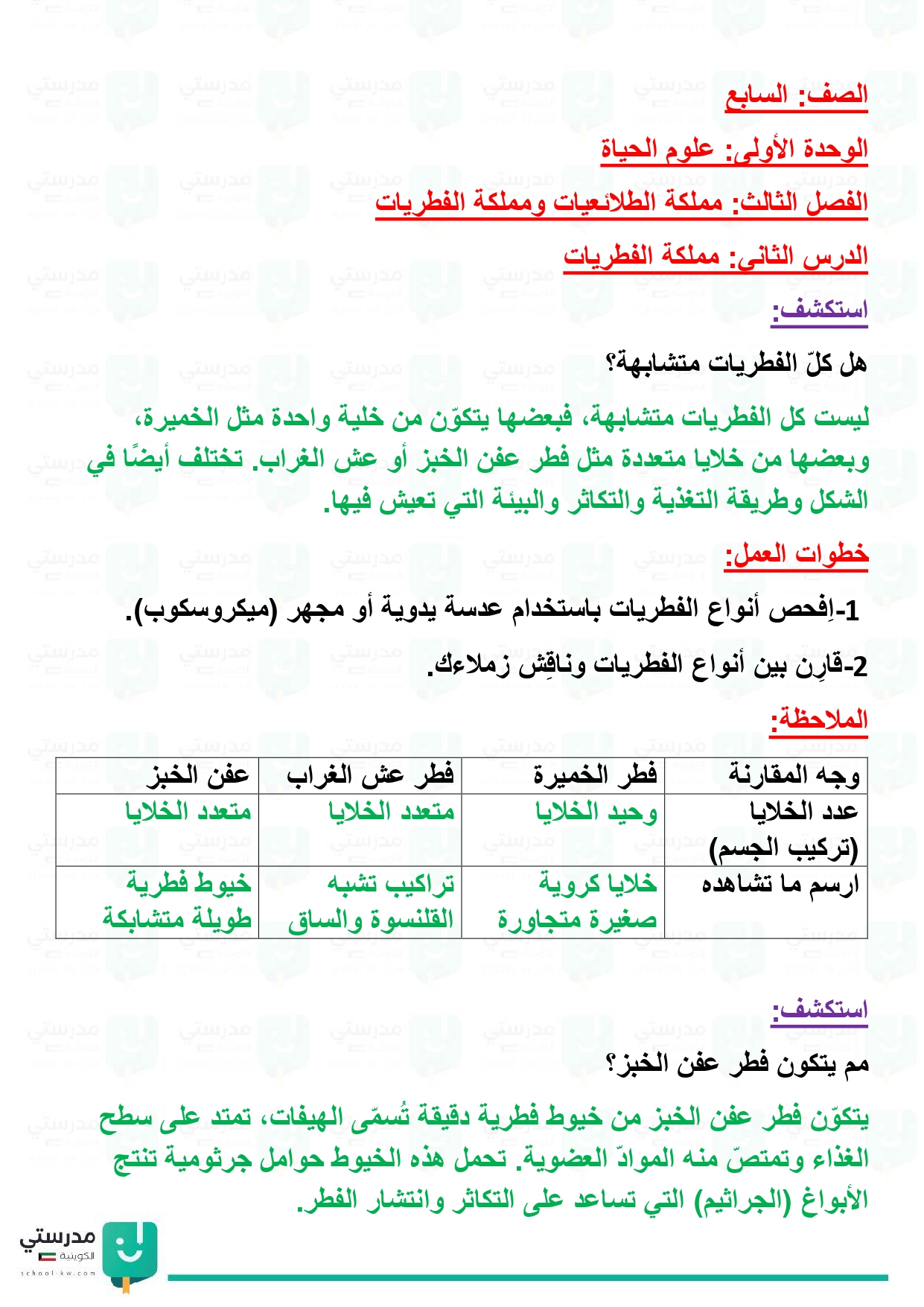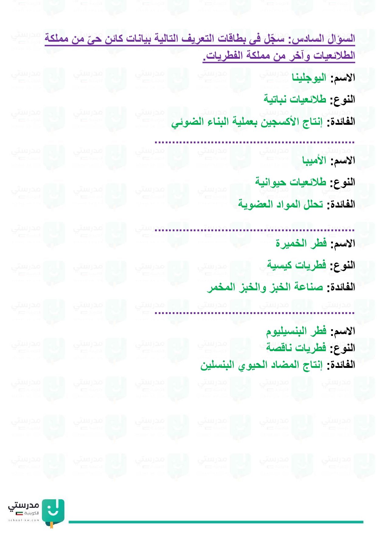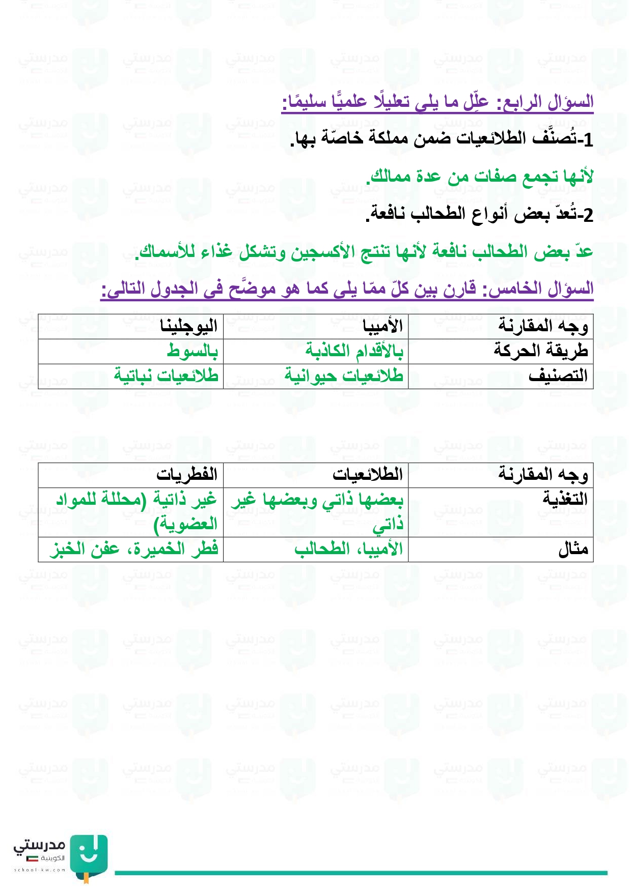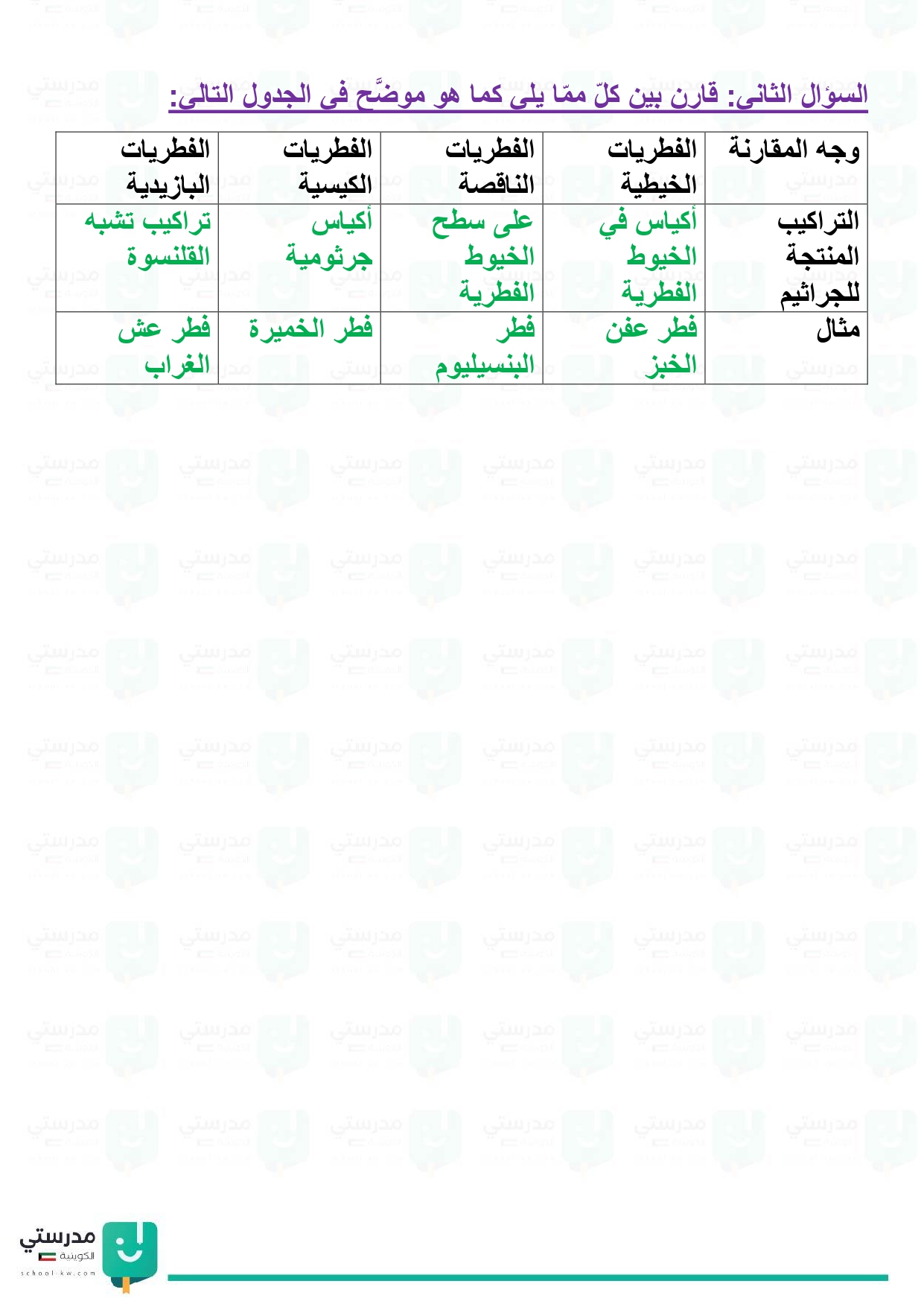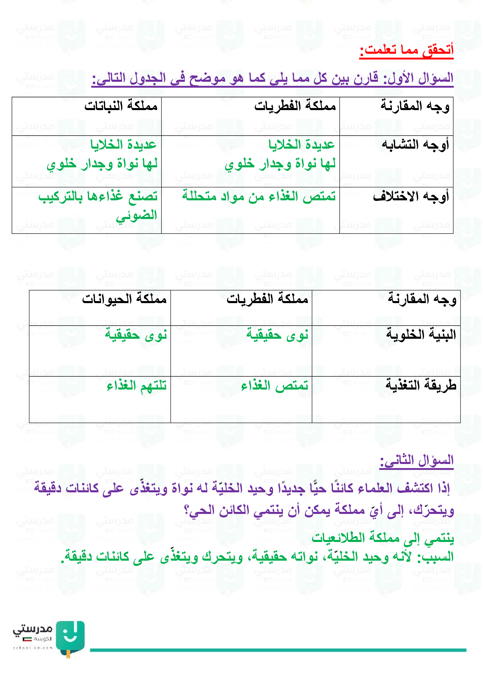 تقويم فصل مملكة الطلائعيات ومملكة الفطريات