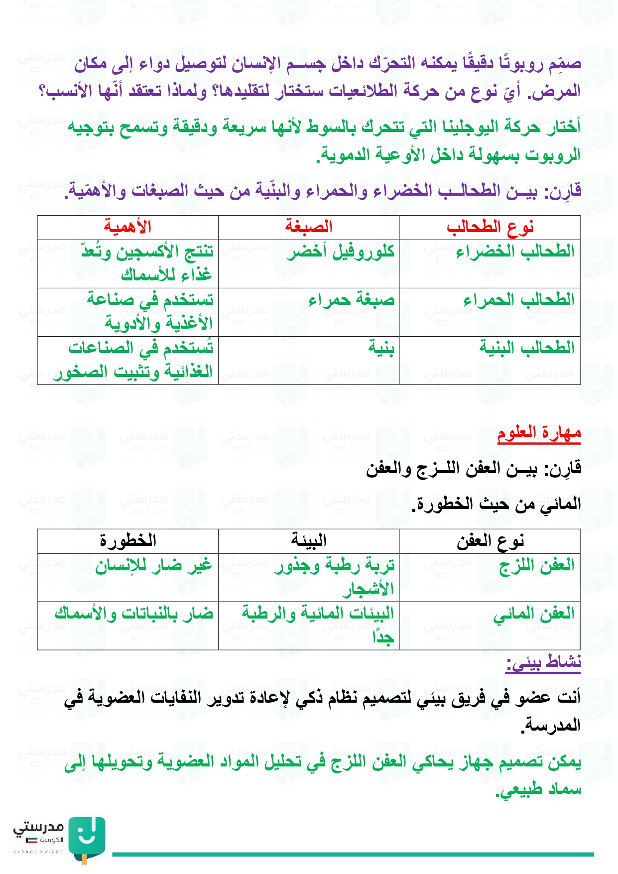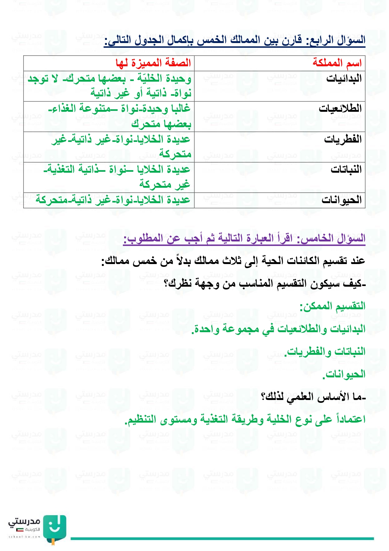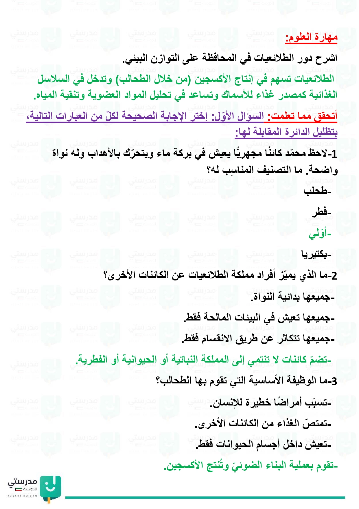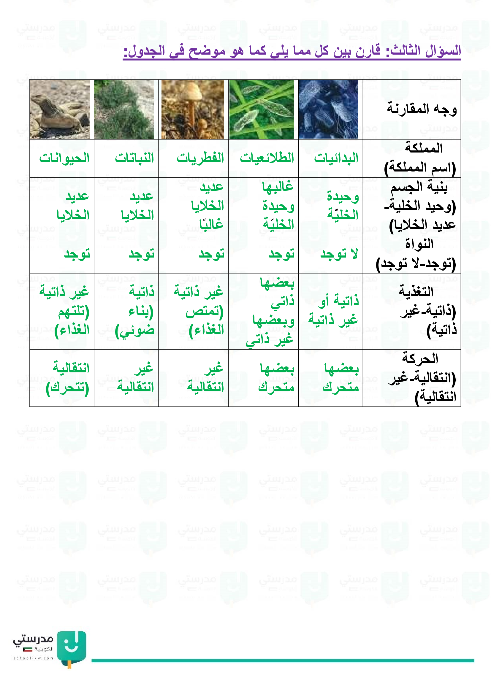 تقويم فصل مملكة الطلائعيات ومملكة الفطريات