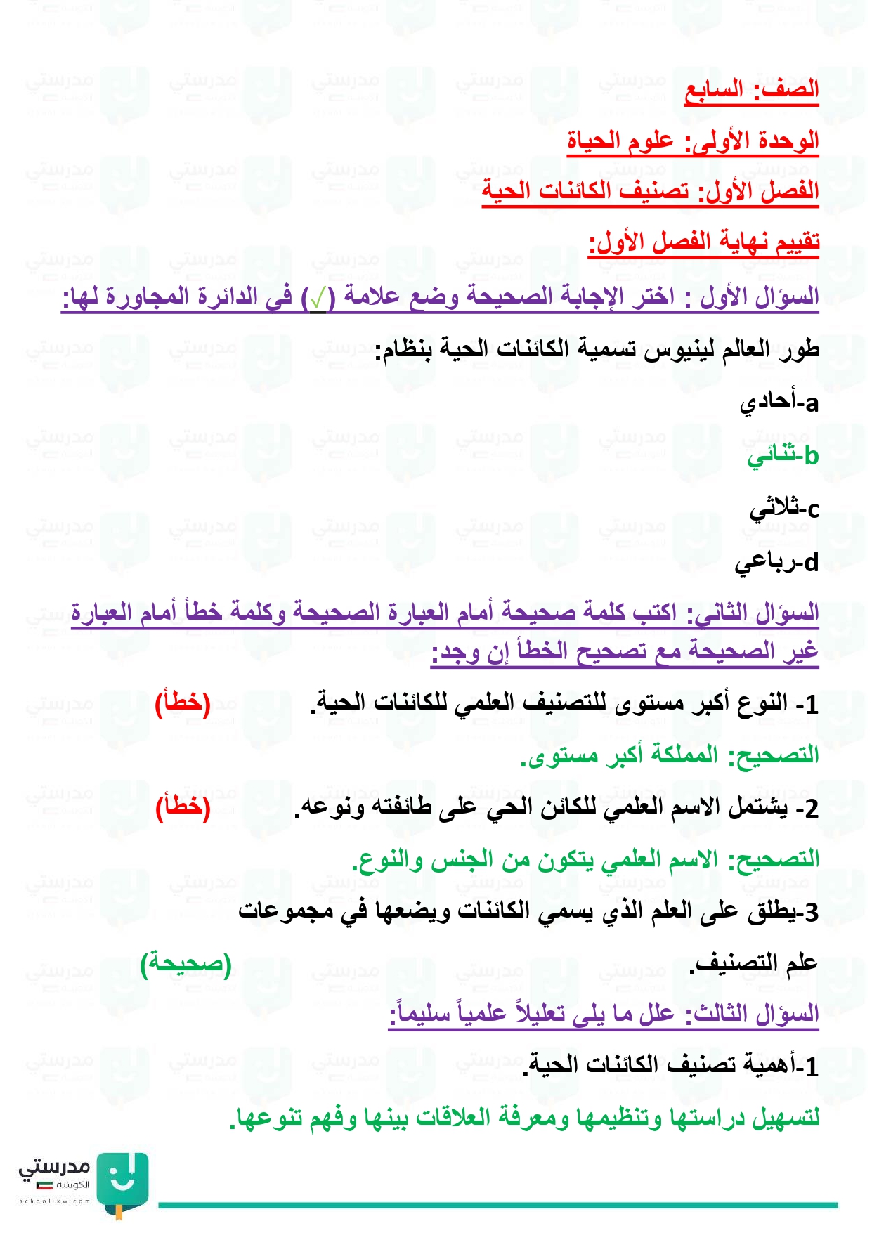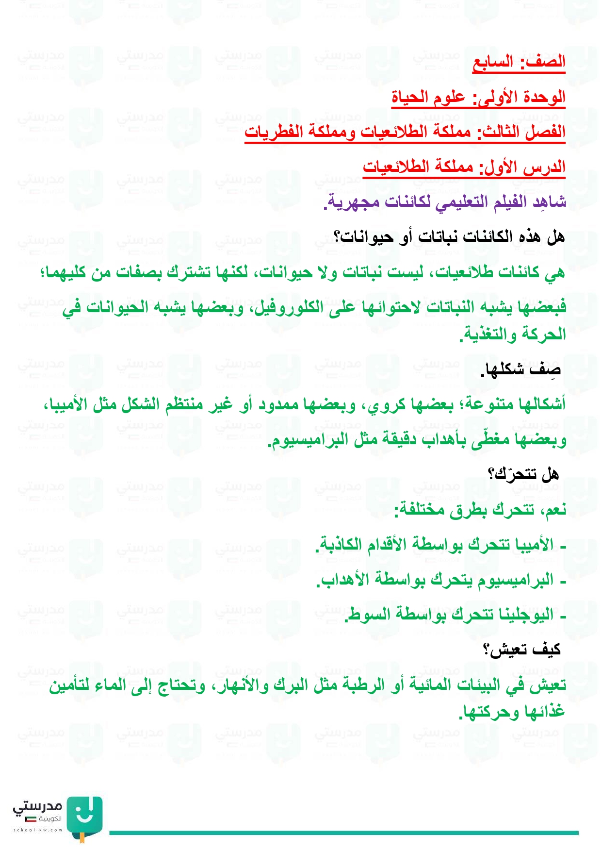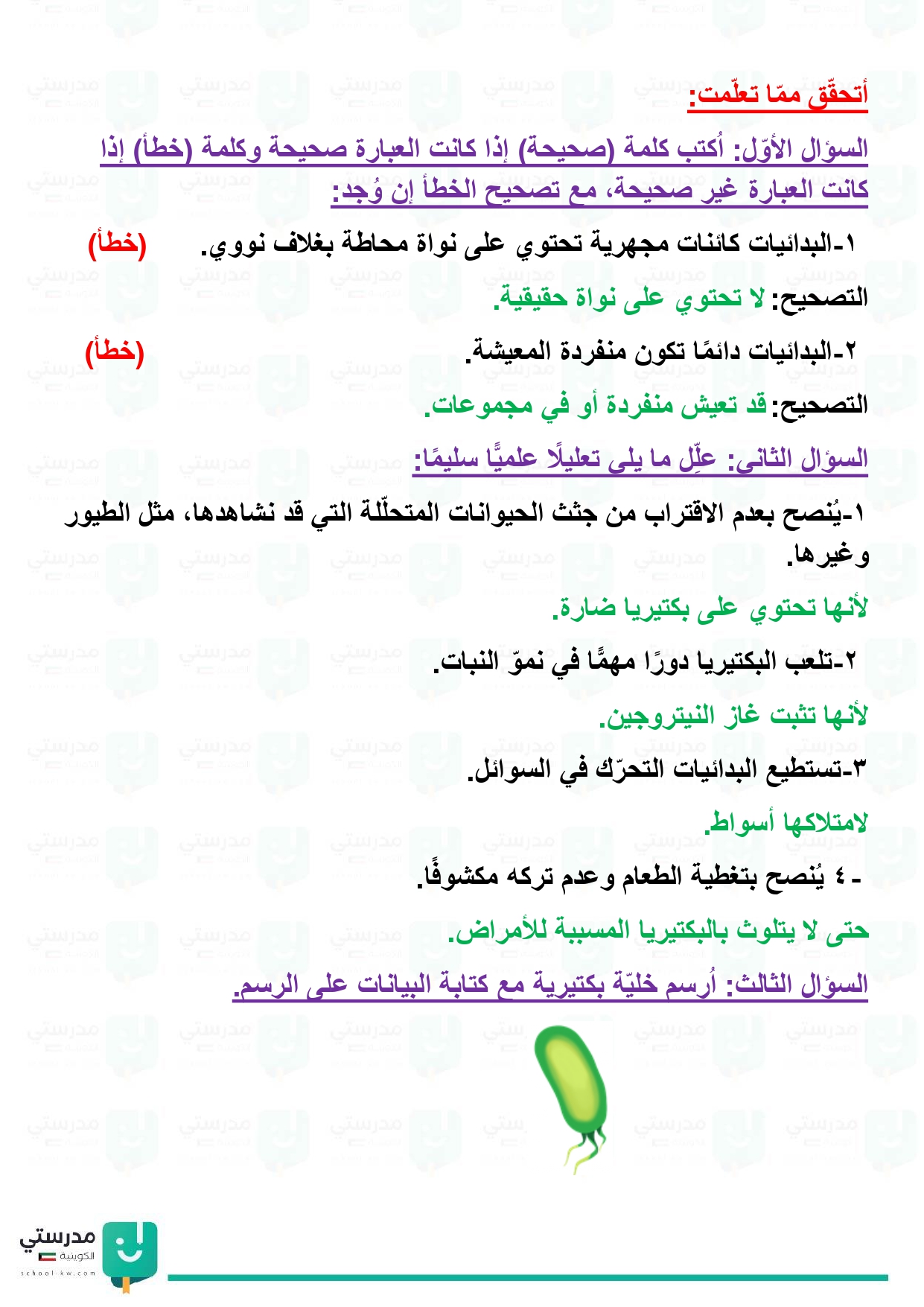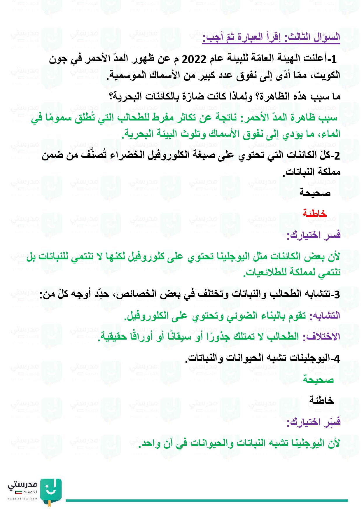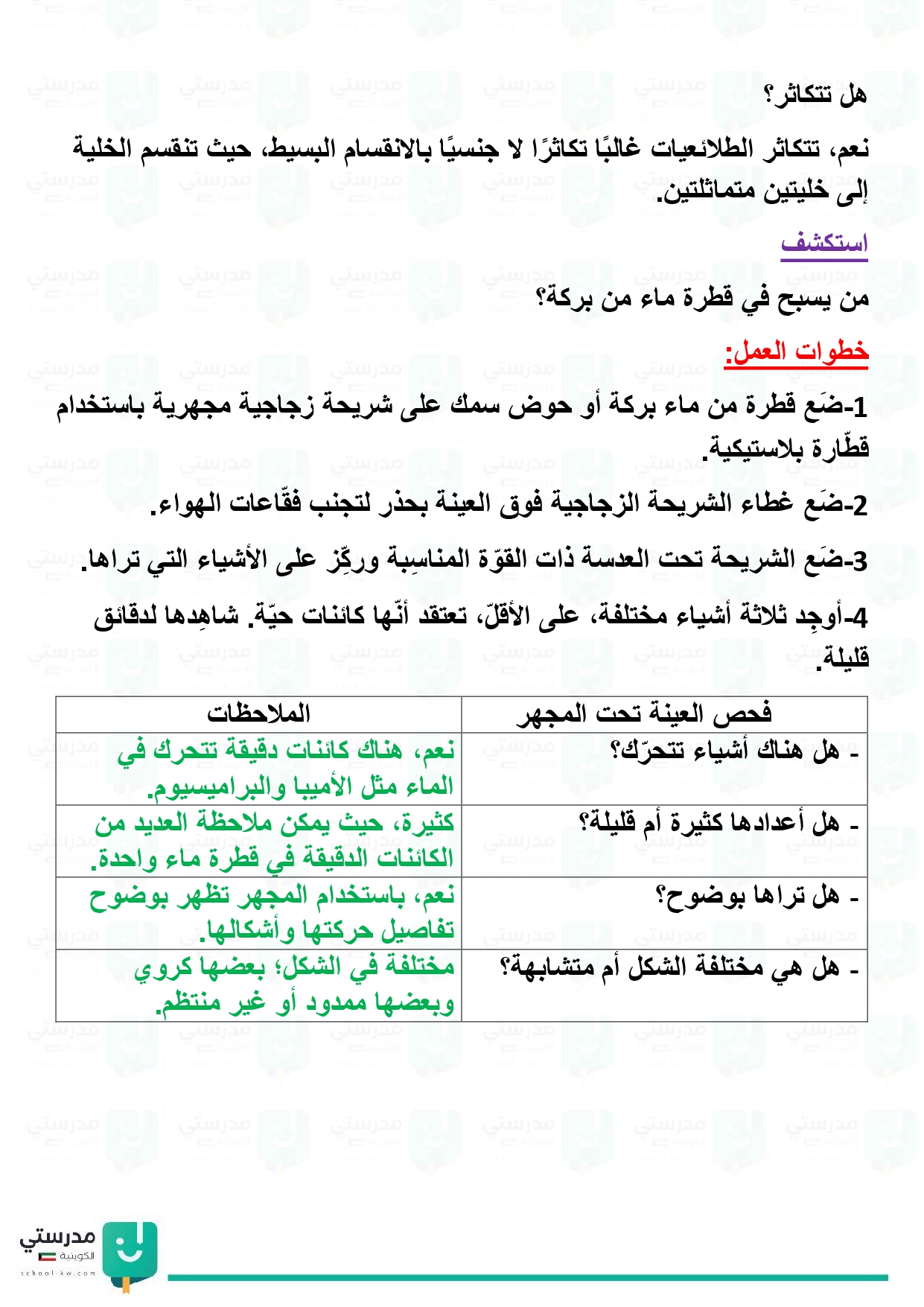 تقويم فصل مملكة الطلائعيات ومملكة الفطريات