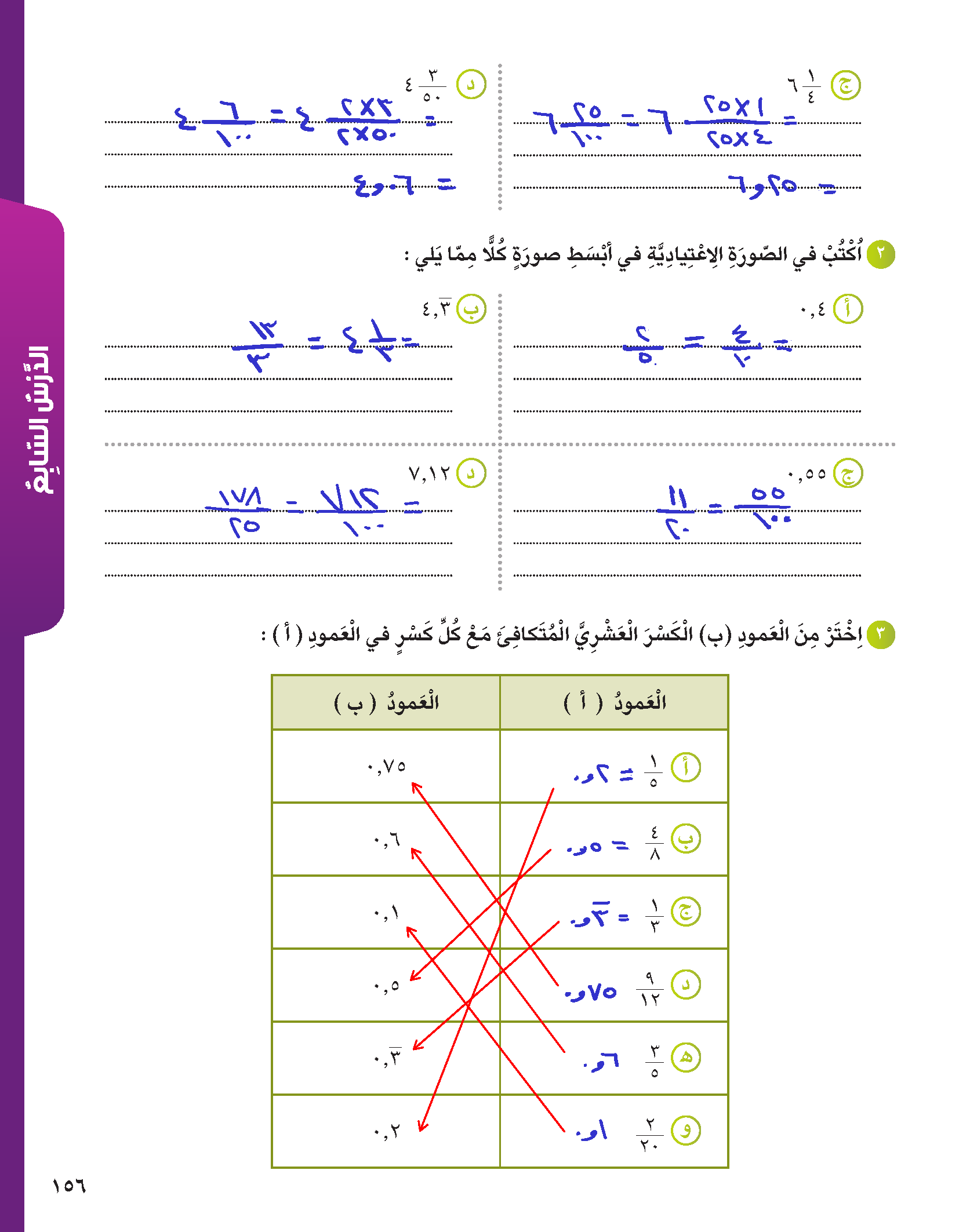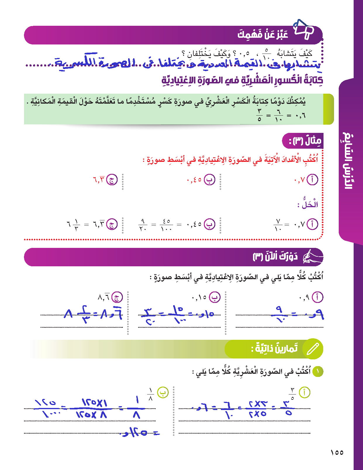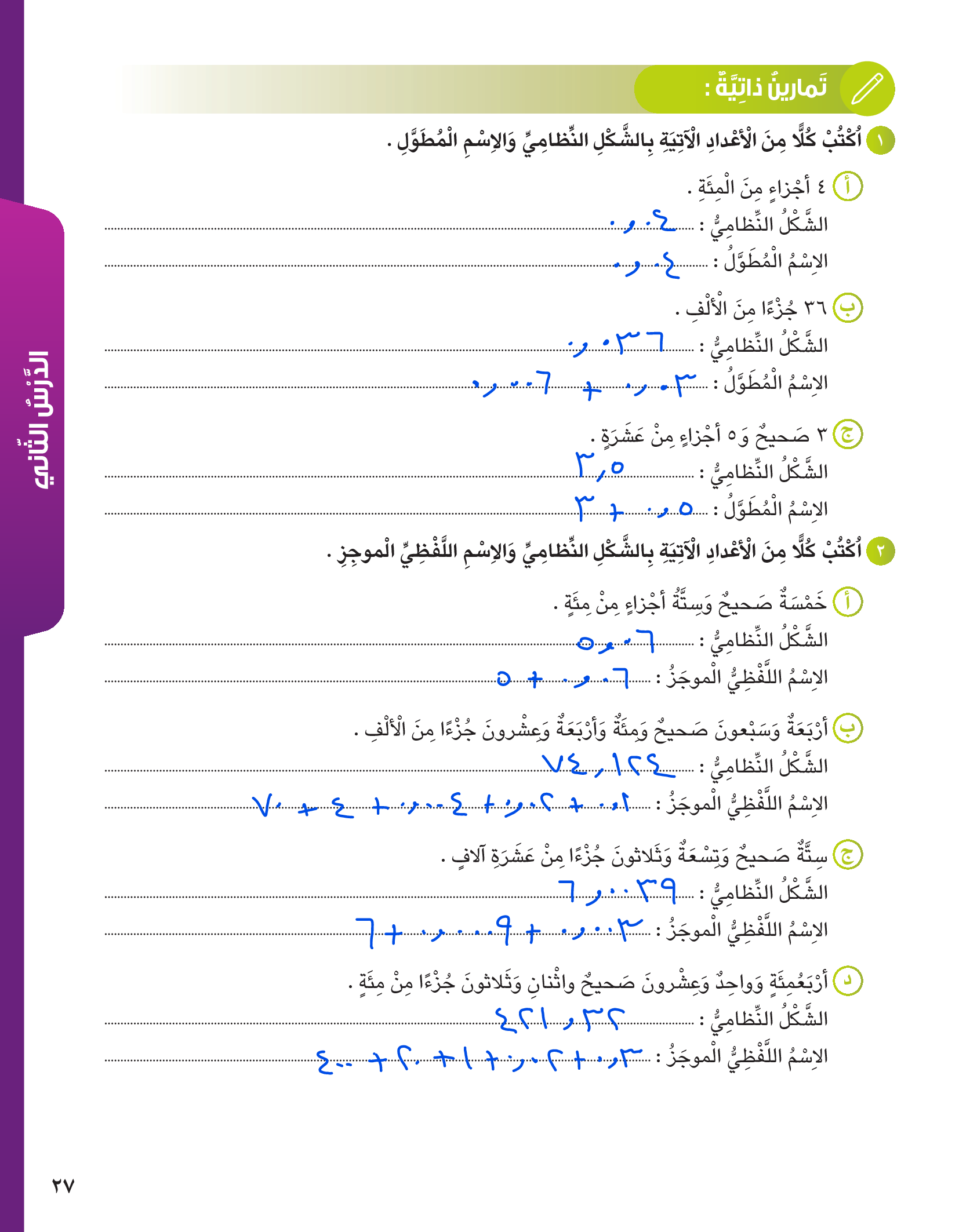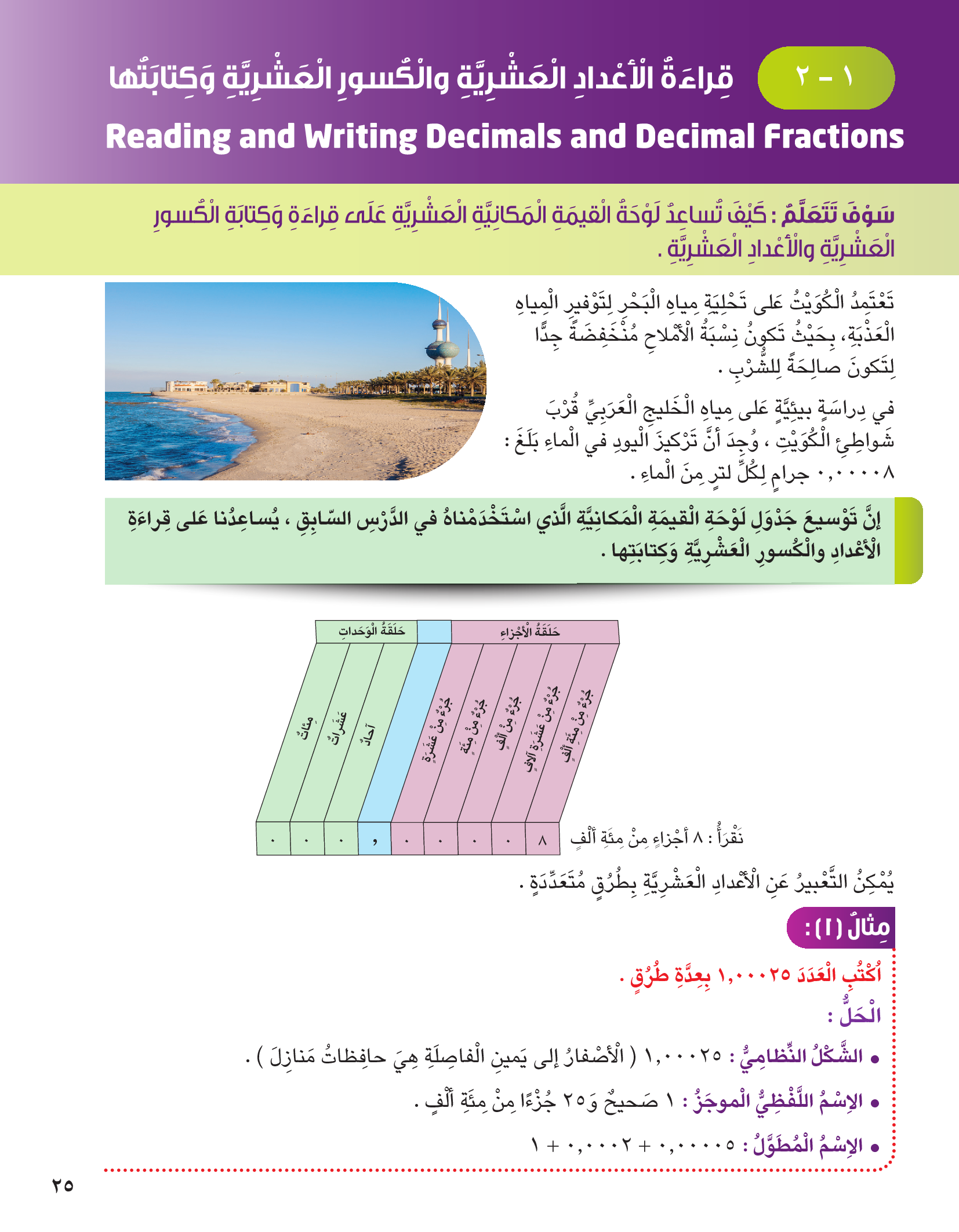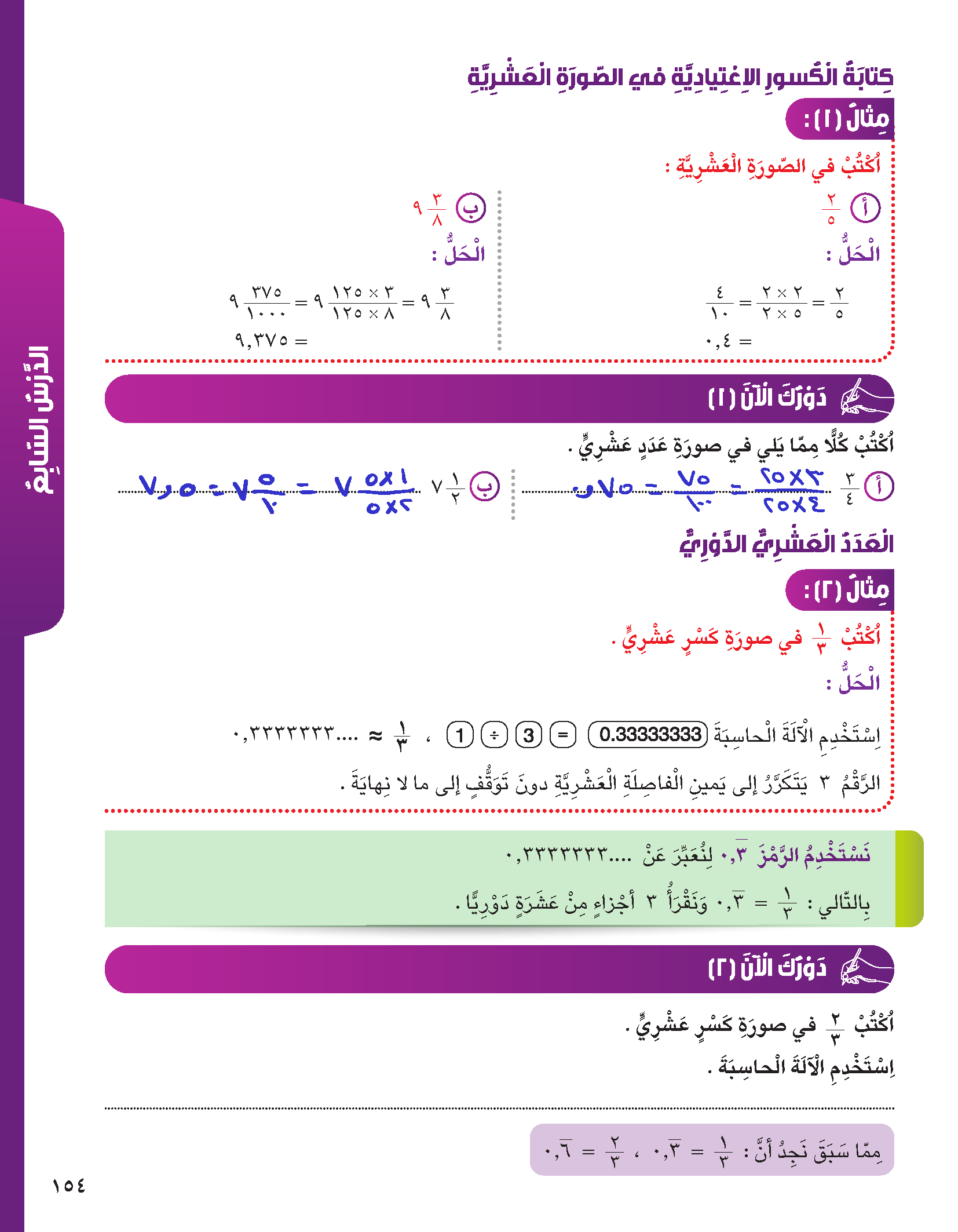 قراءة الأعداد العشرية والكسور العشرية وكتابتها