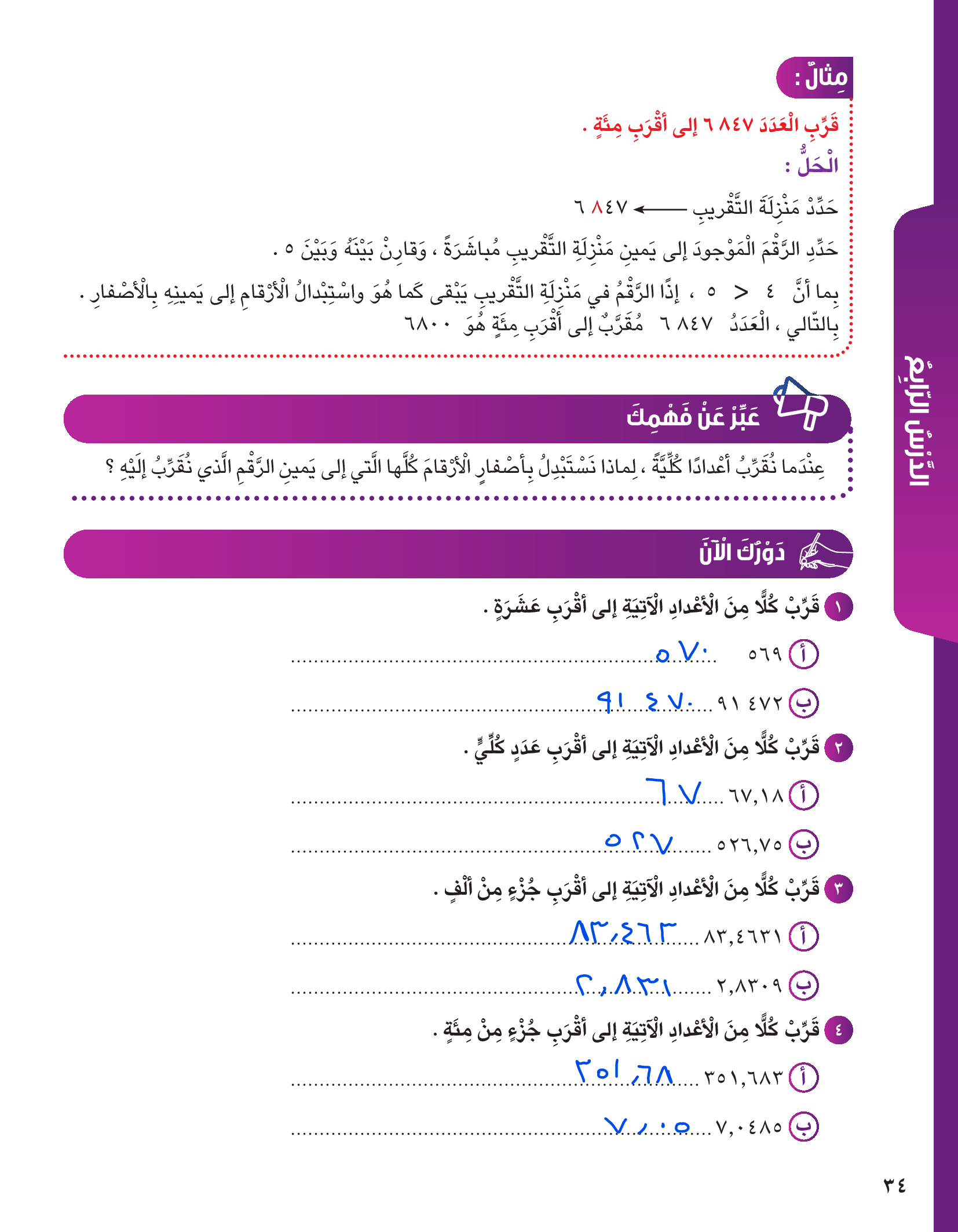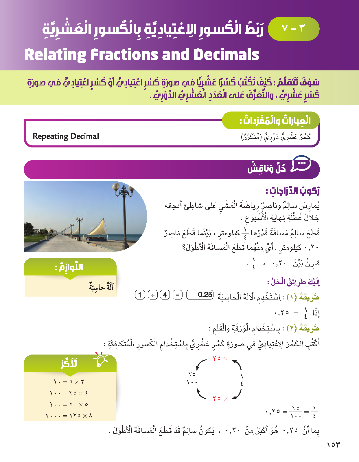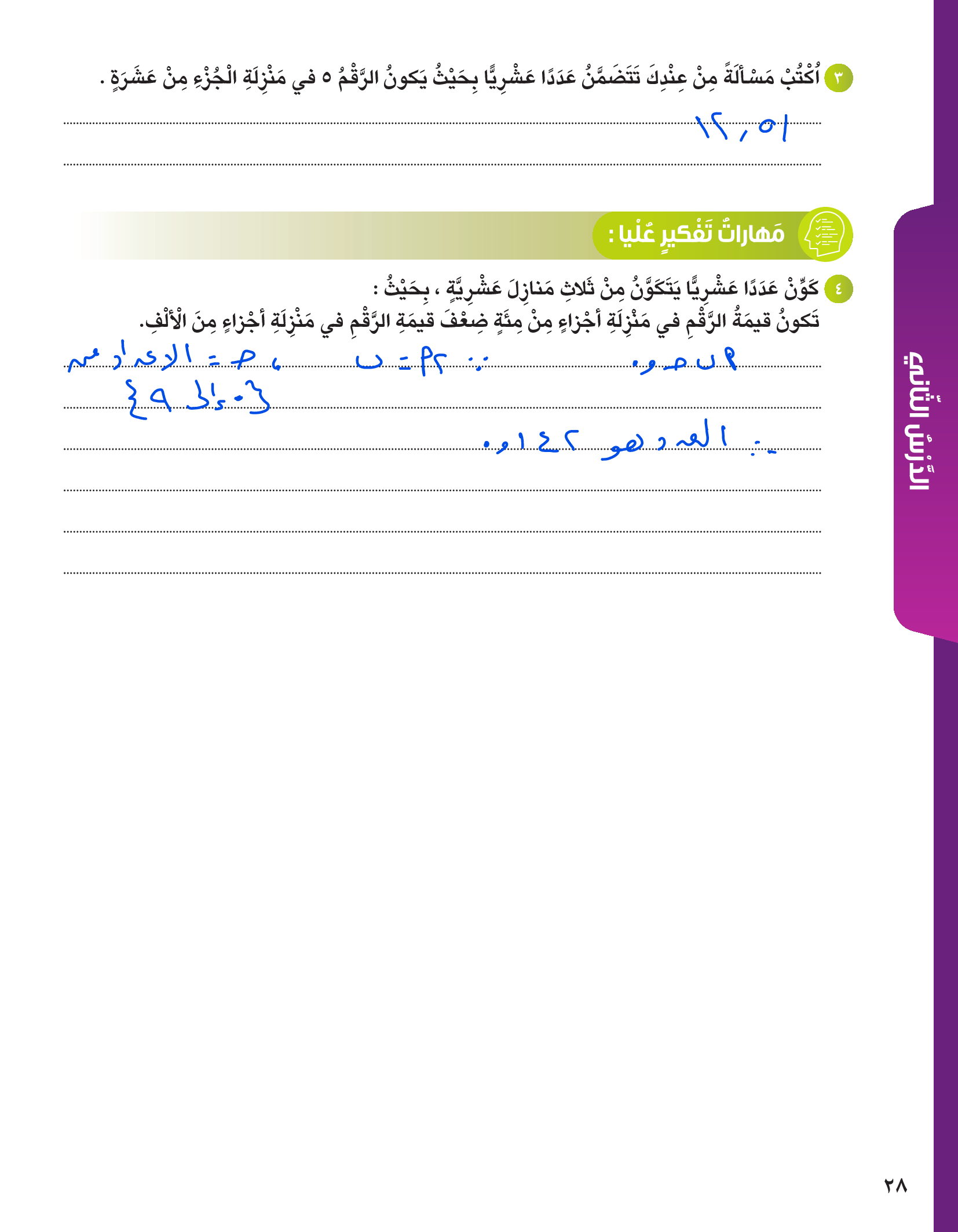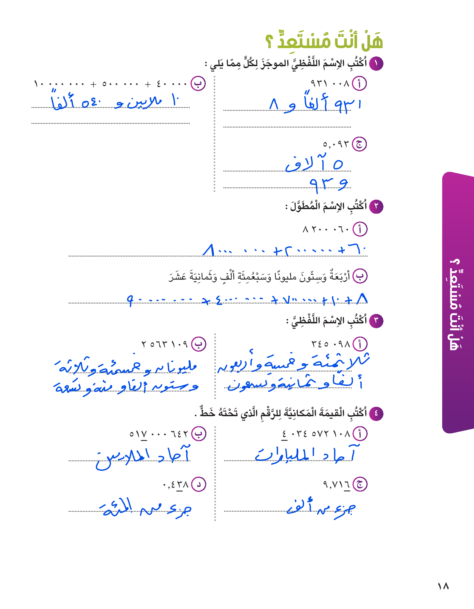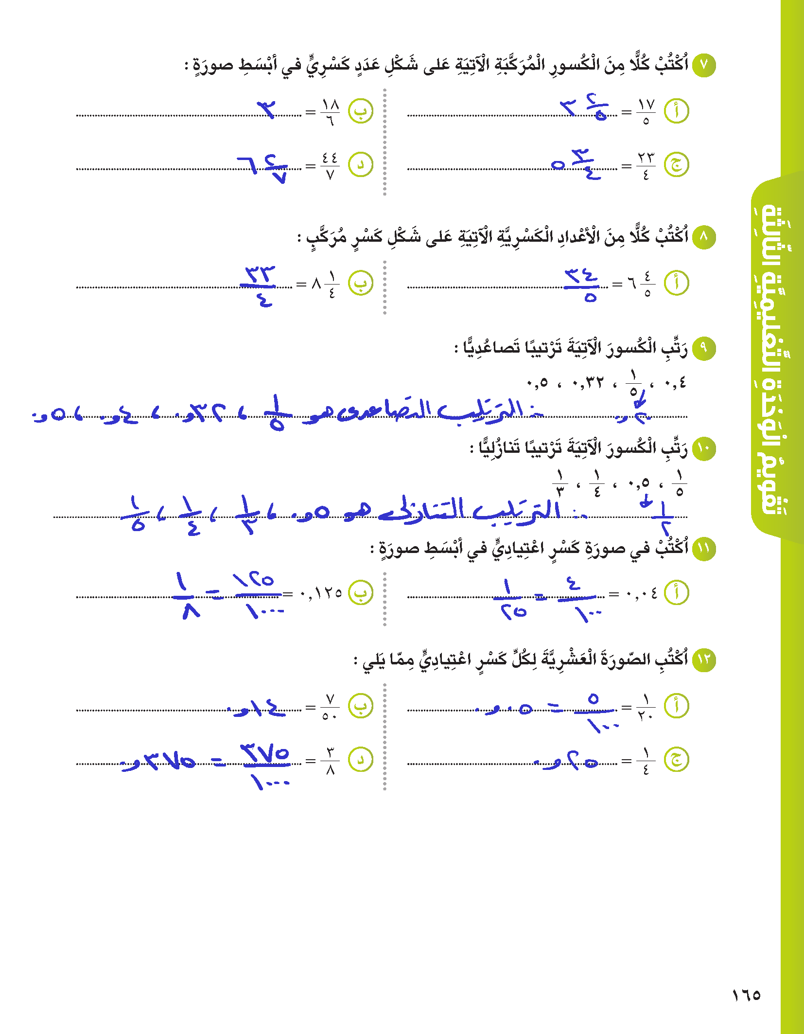 قراءة الأعداد العشرية والكسور العشرية وكتابتها