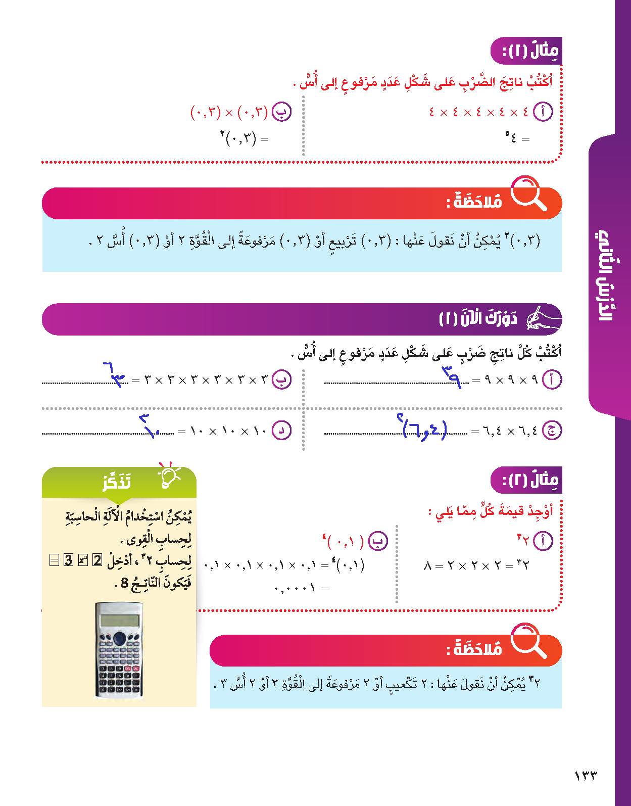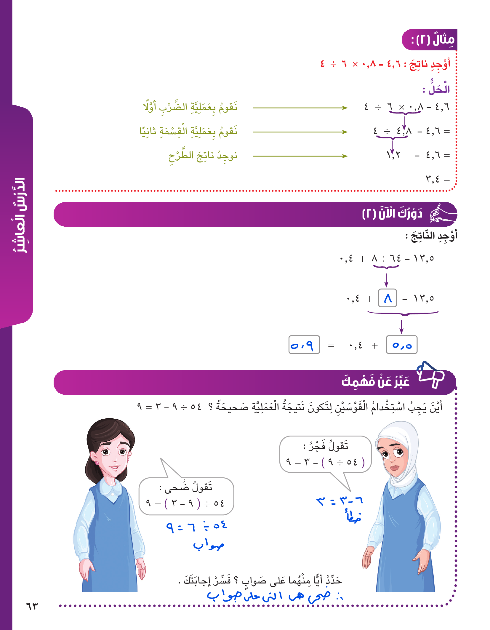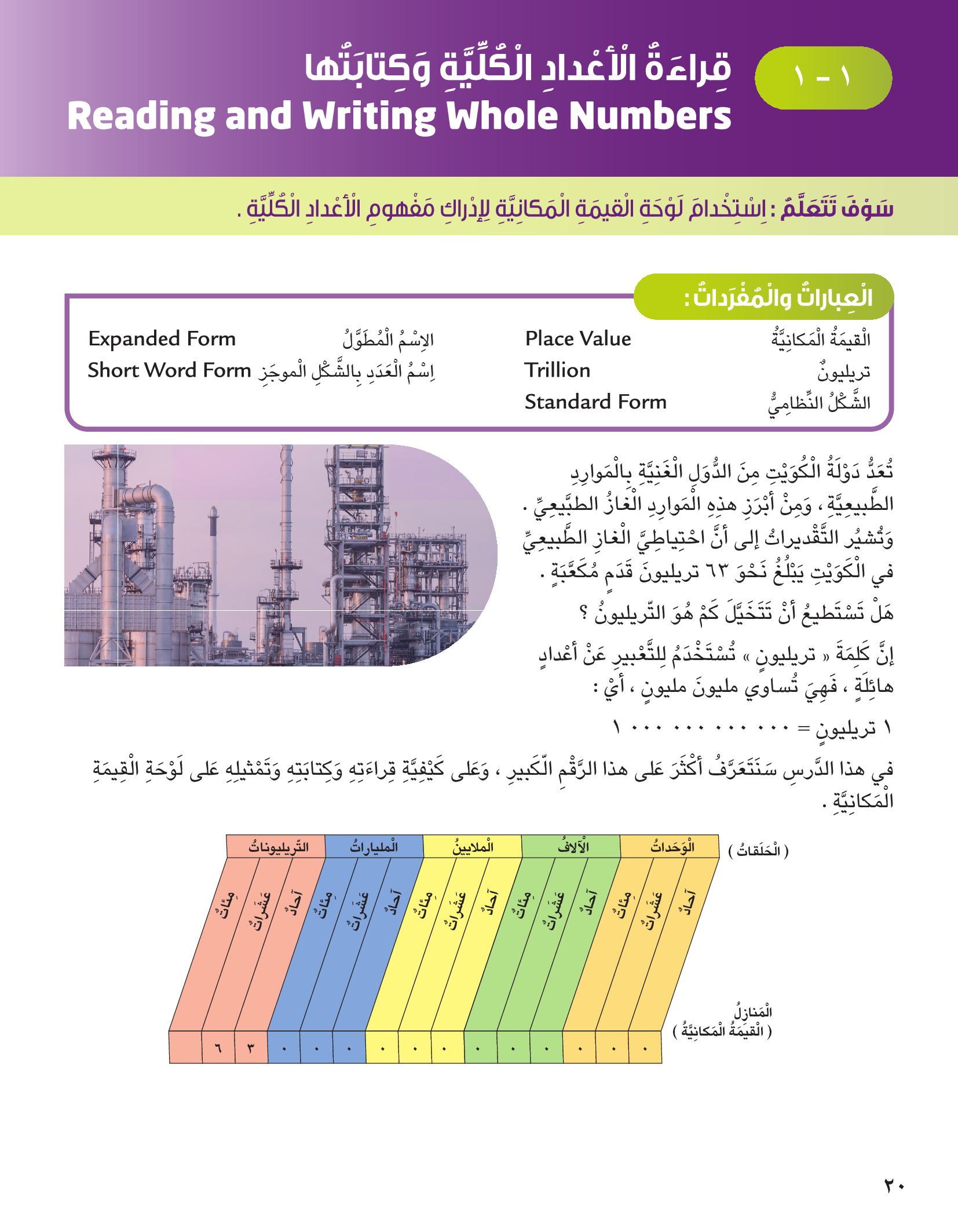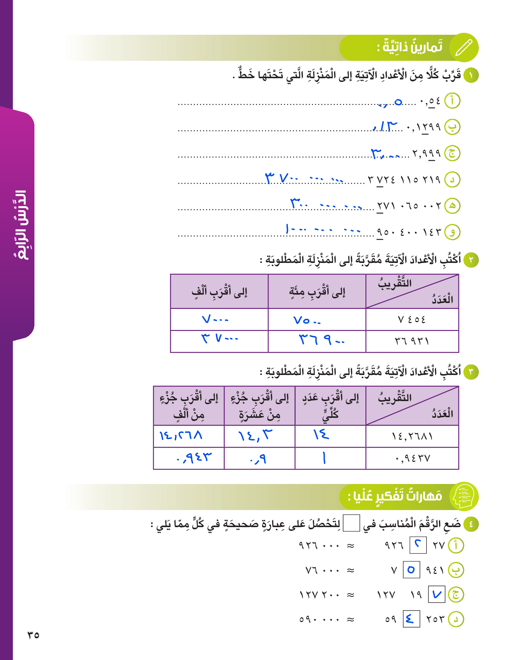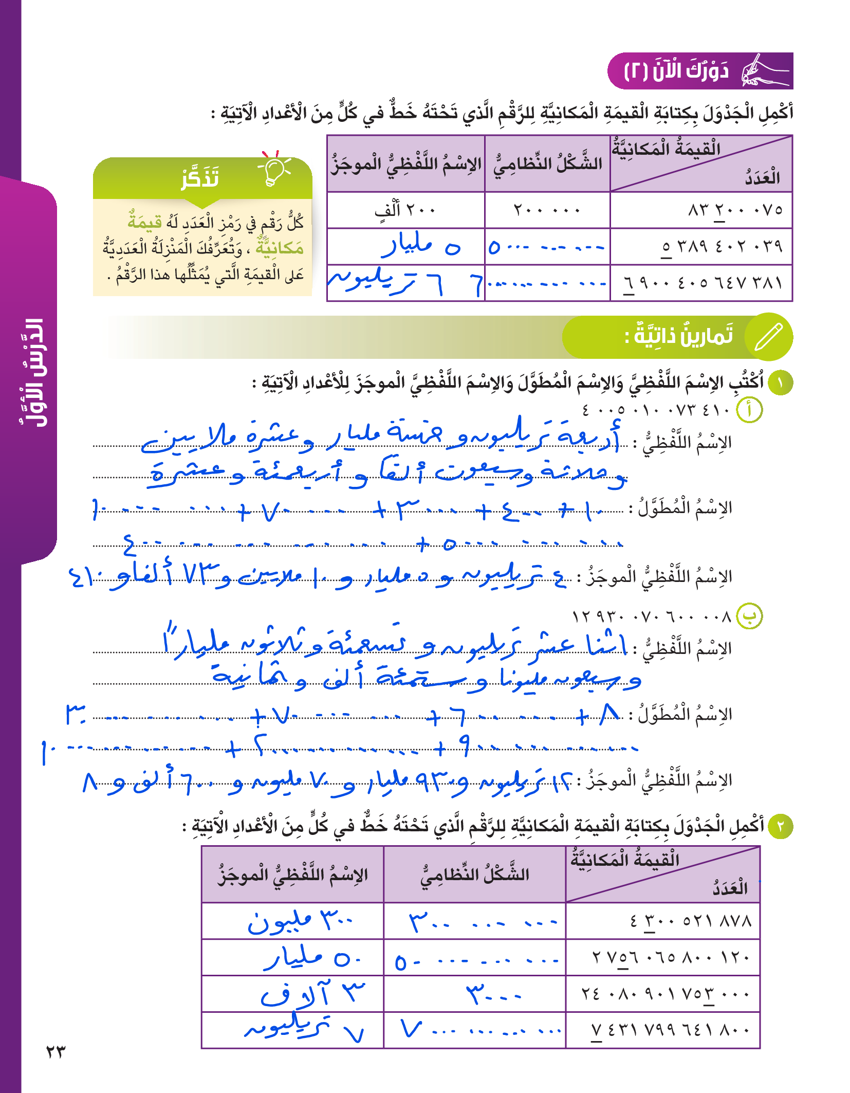 قراءة الأعداد العشرية والكسور العشرية وكتابتها