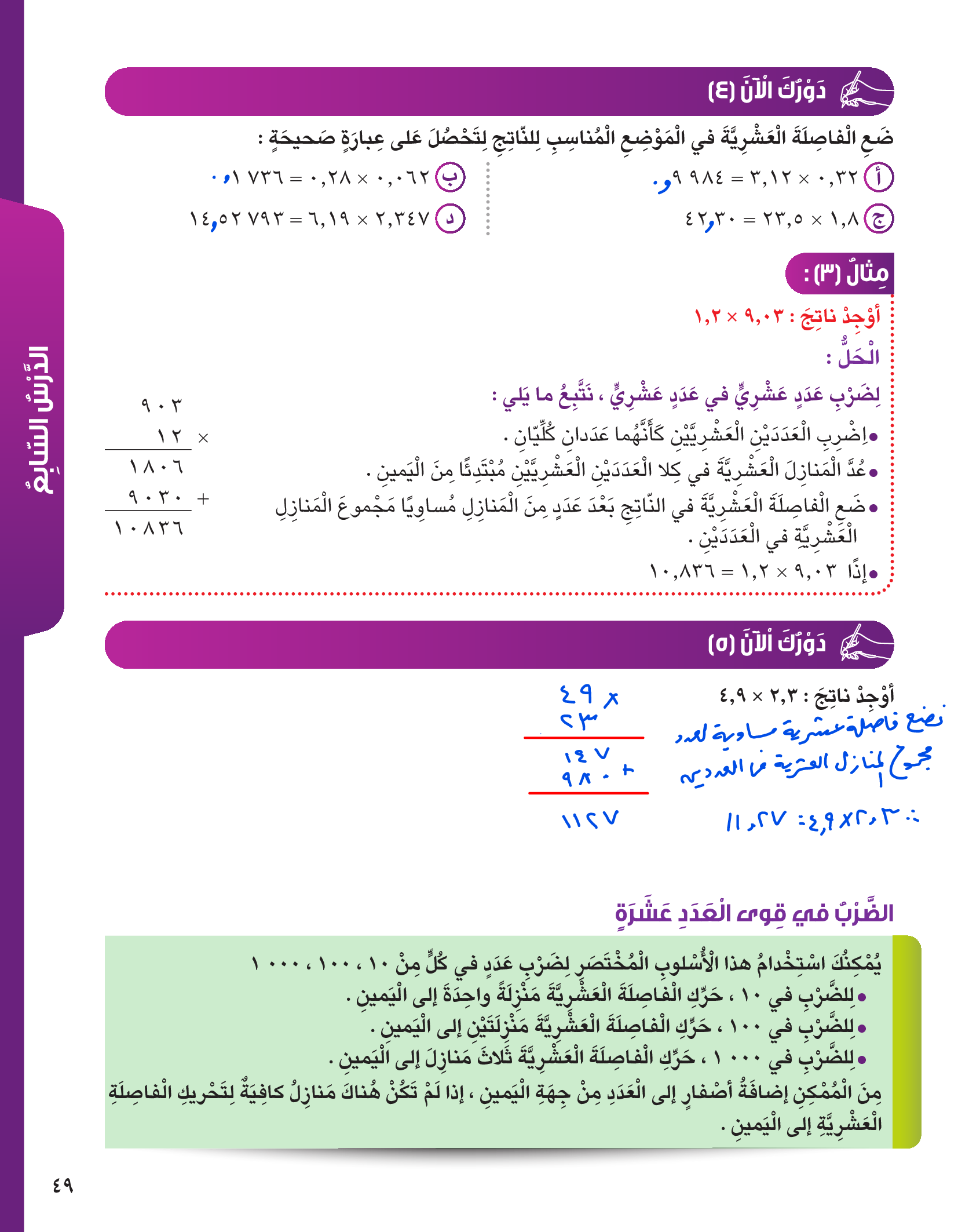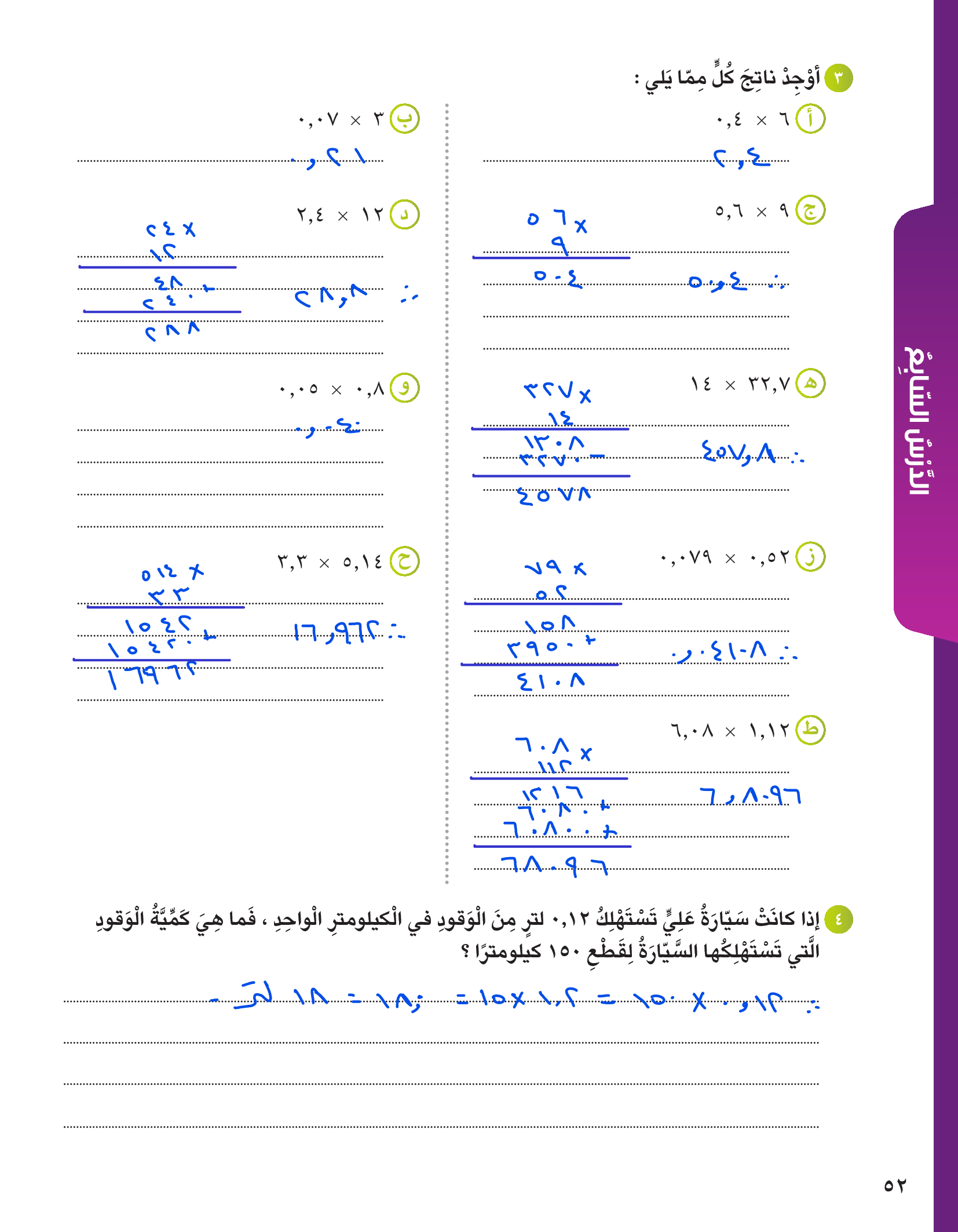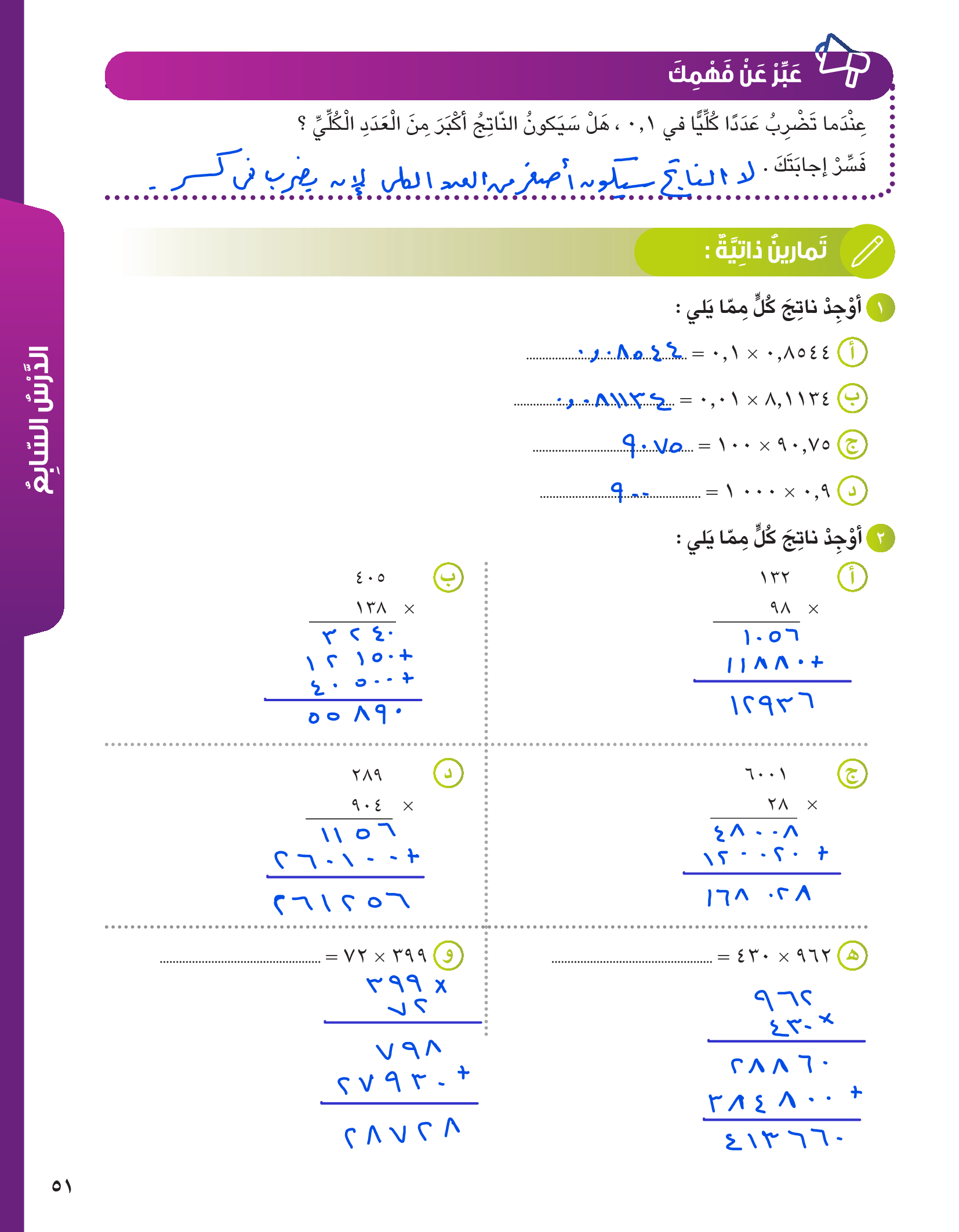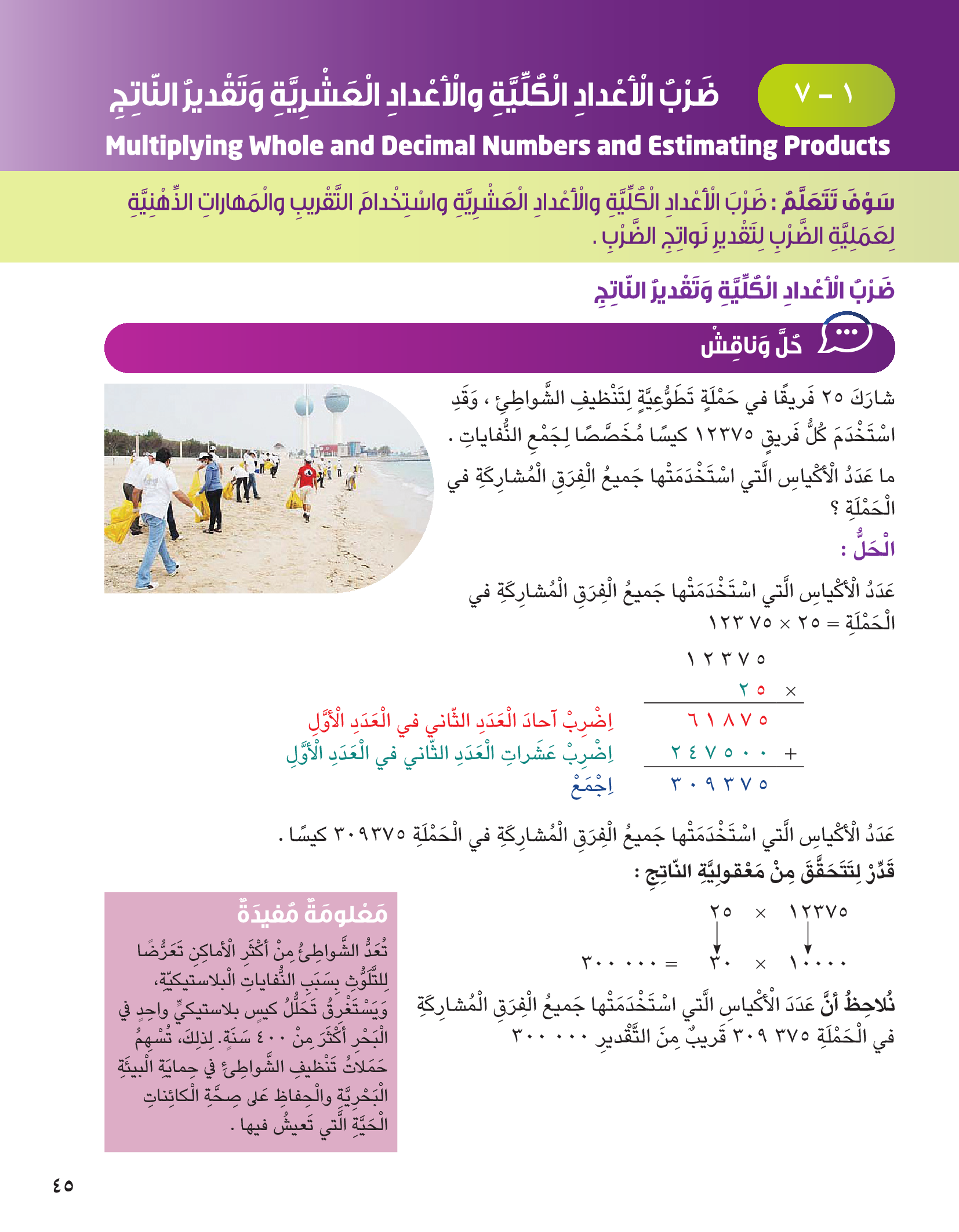 ضرب الأعداد الكلية والأعداد العشرية وتقدير الناتج