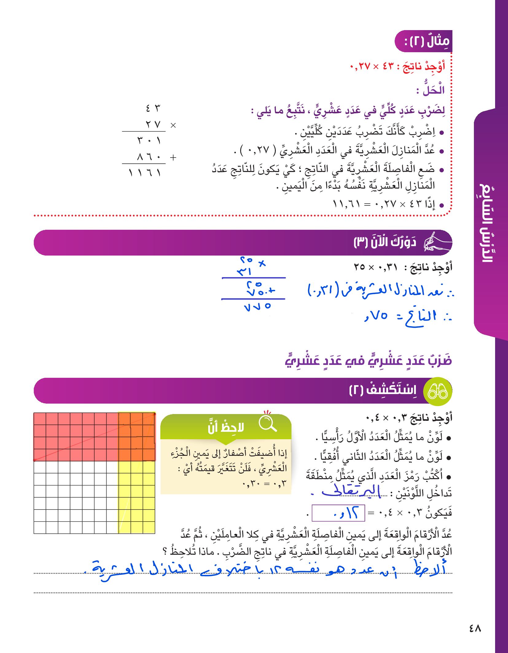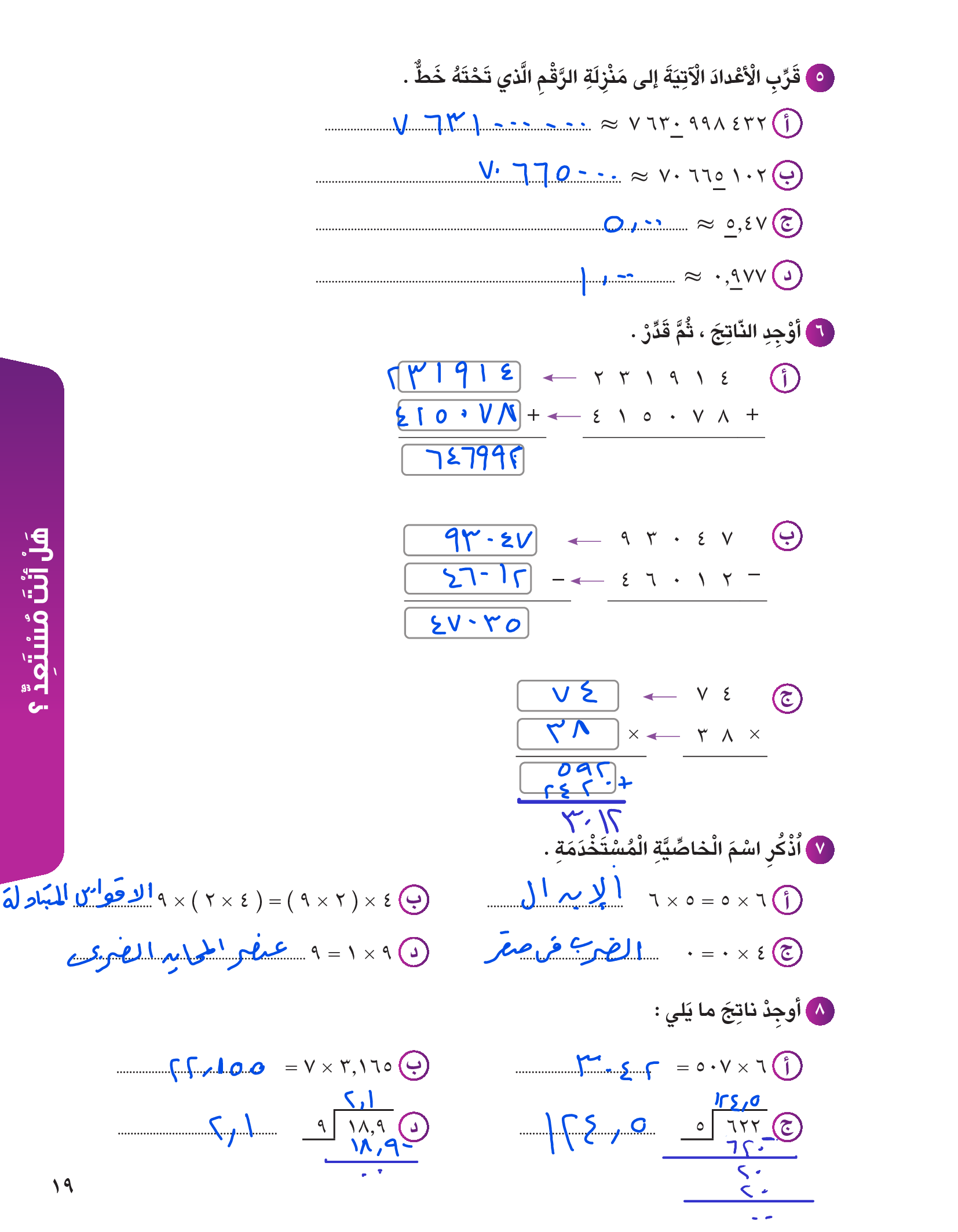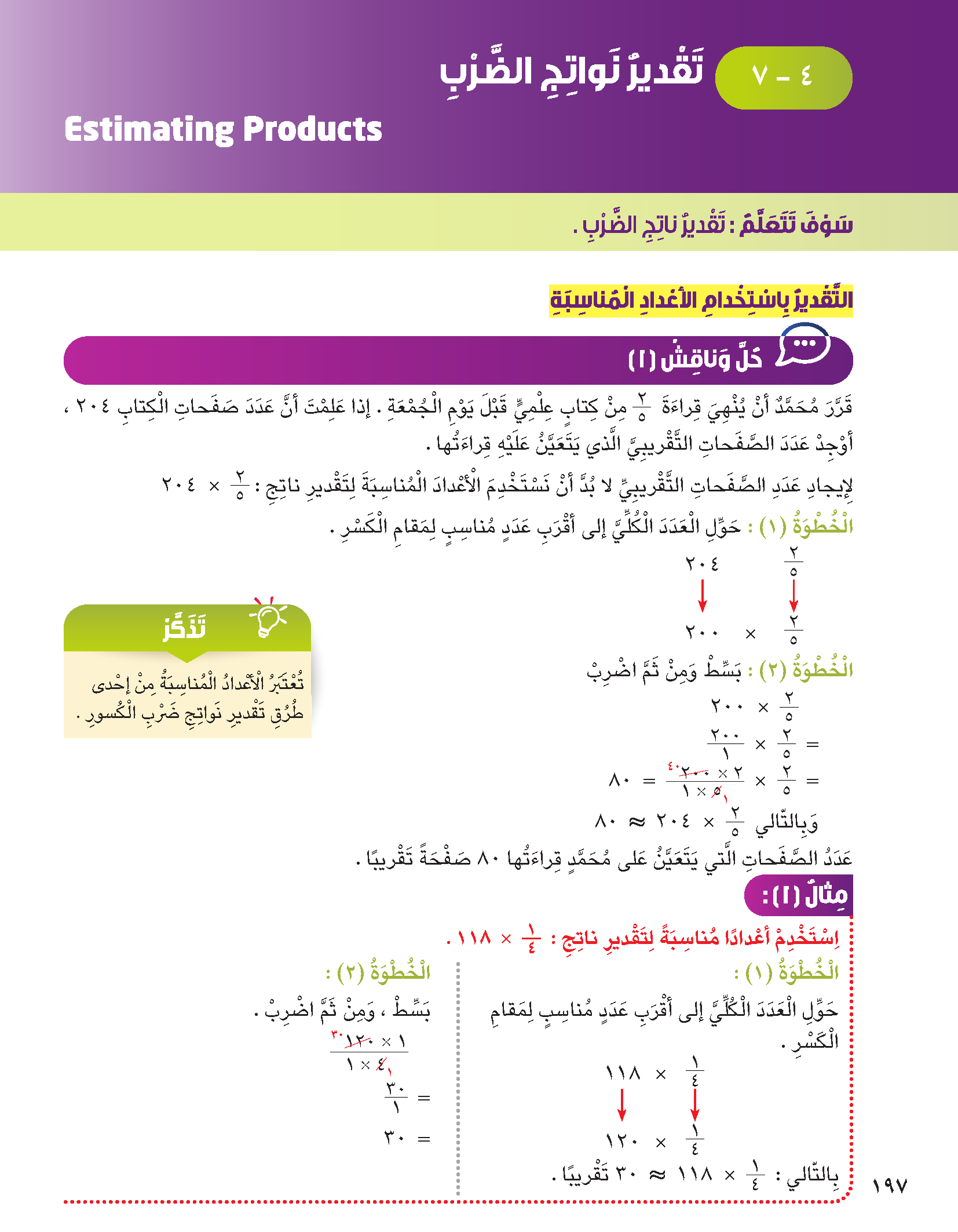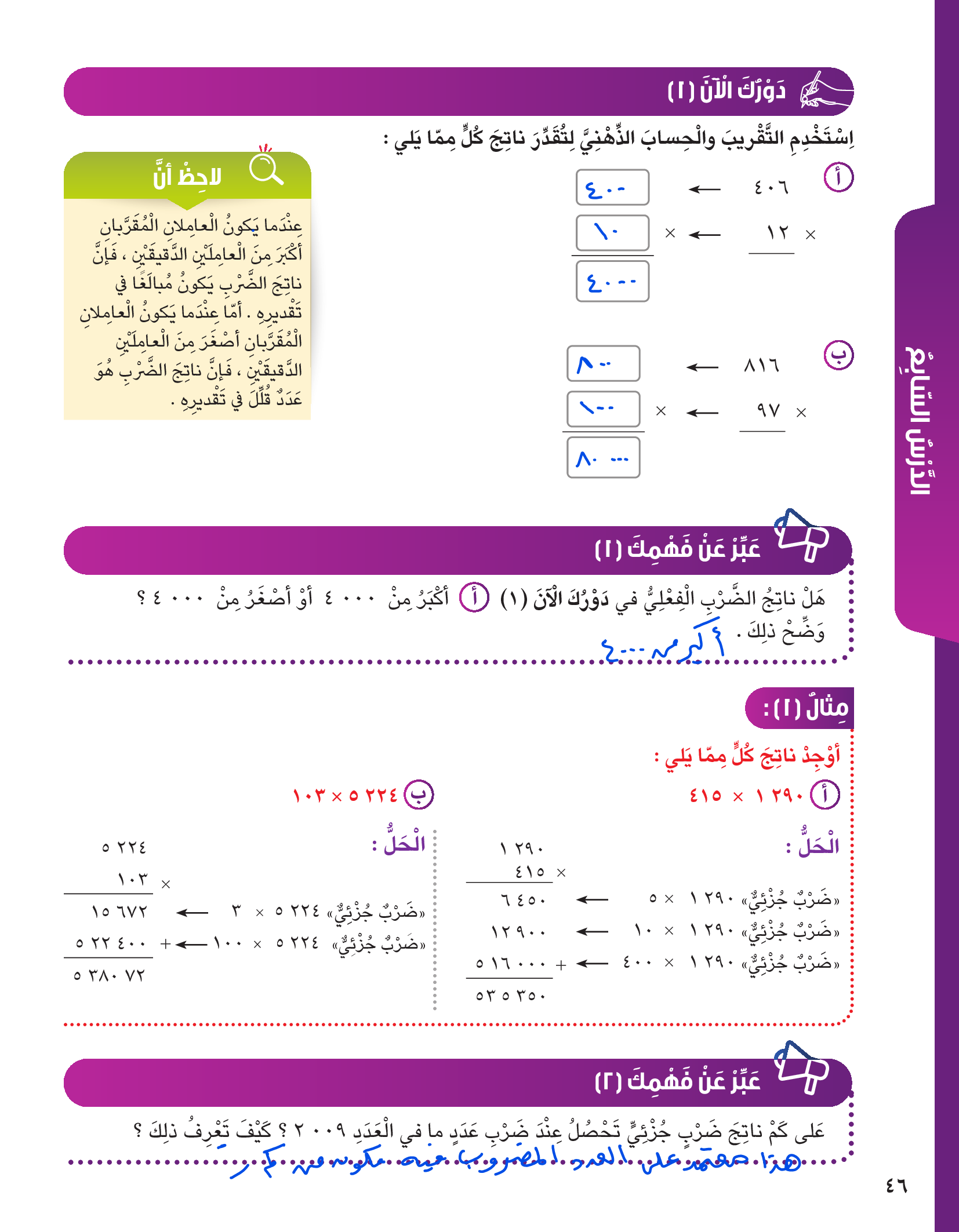 ضرب الأعداد الكلية والأعداد العشرية وتقدير الناتج