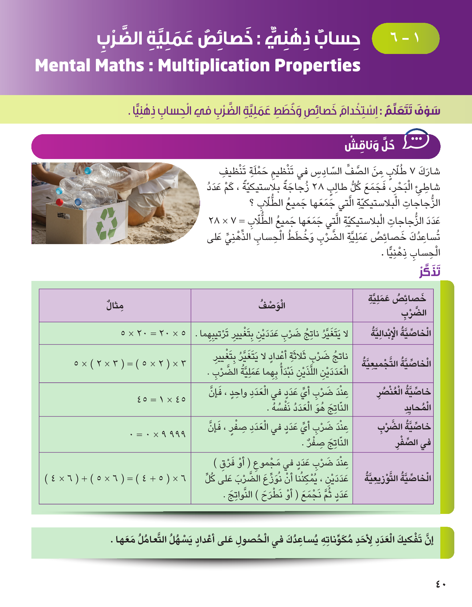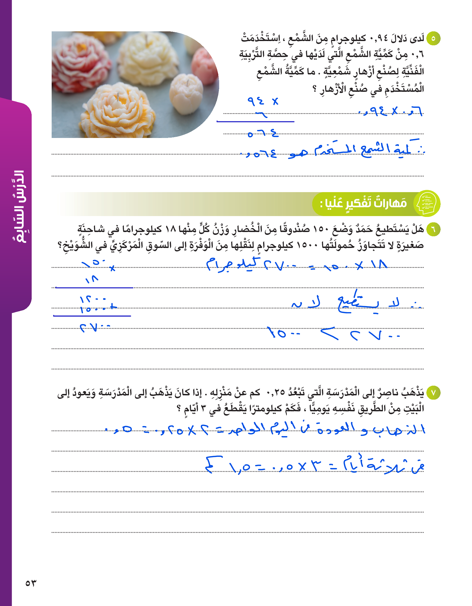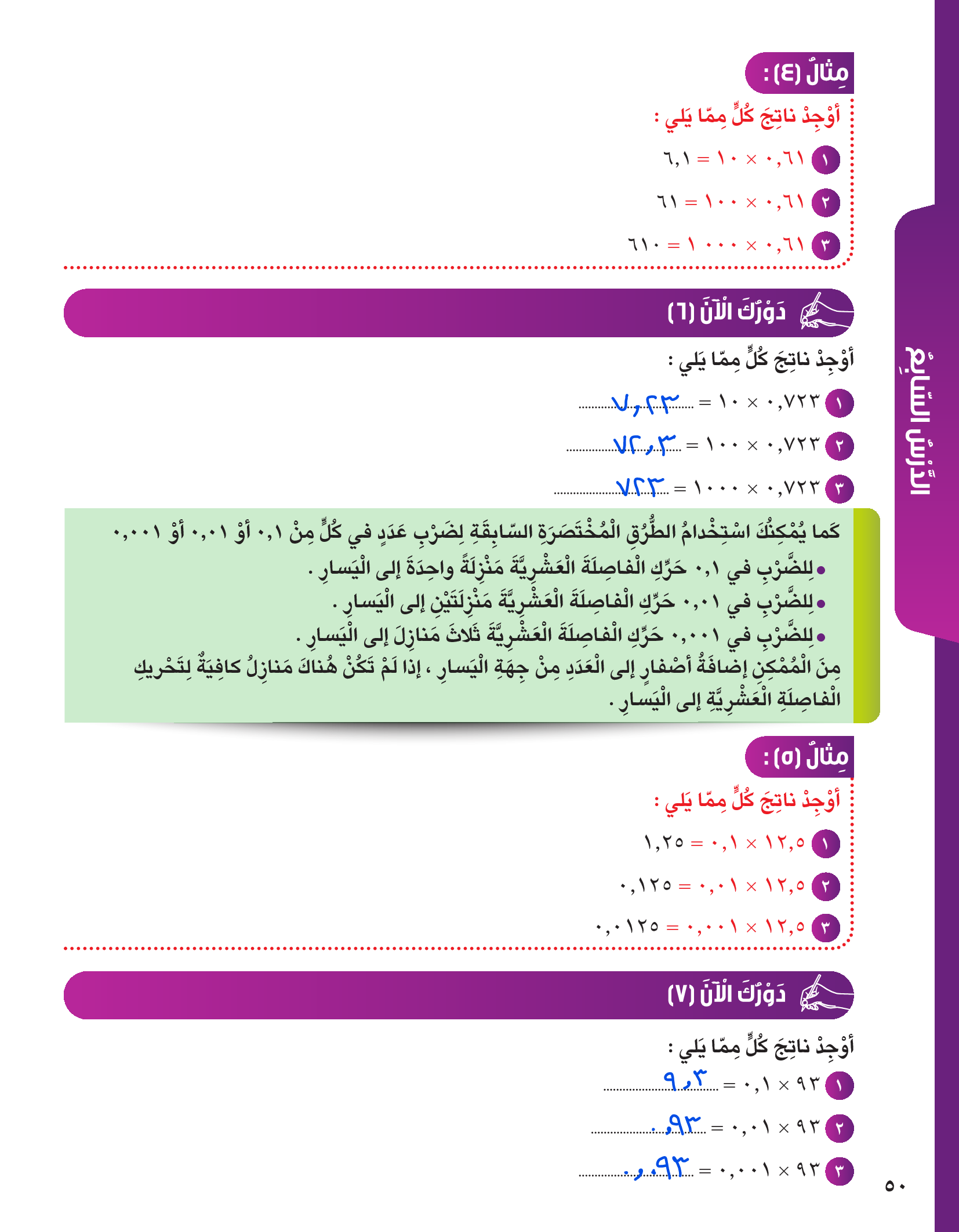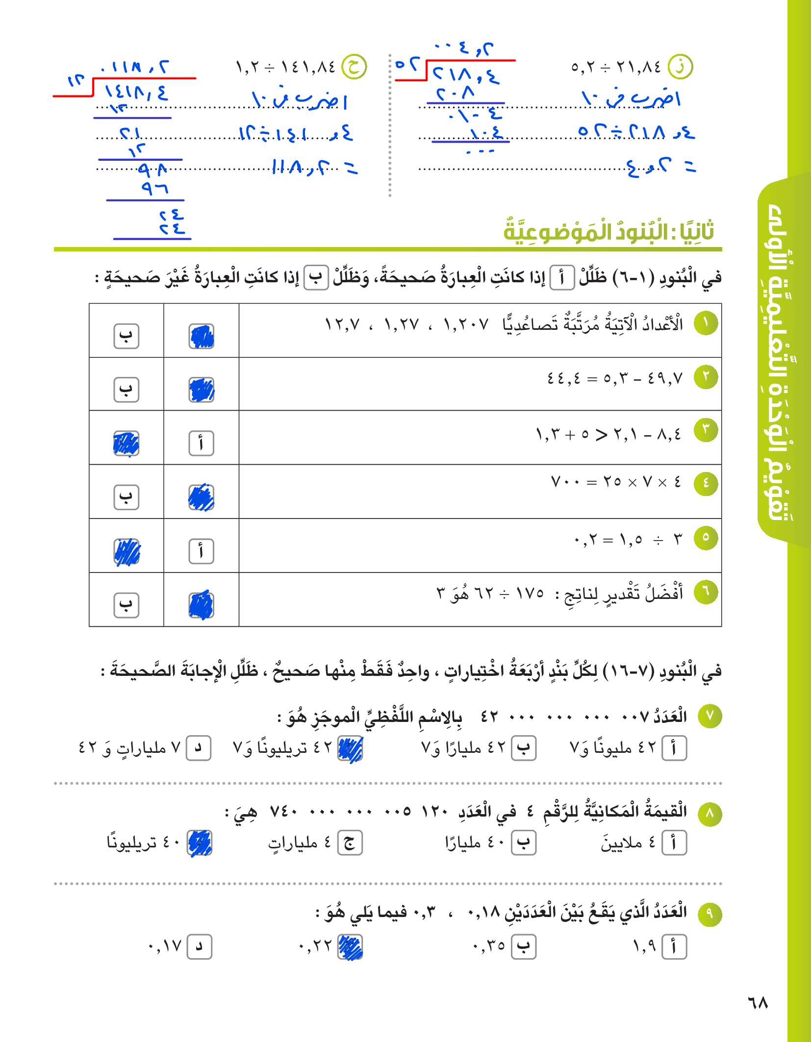 ضرب الأعداد الكلية والأعداد العشرية وتقدير الناتج