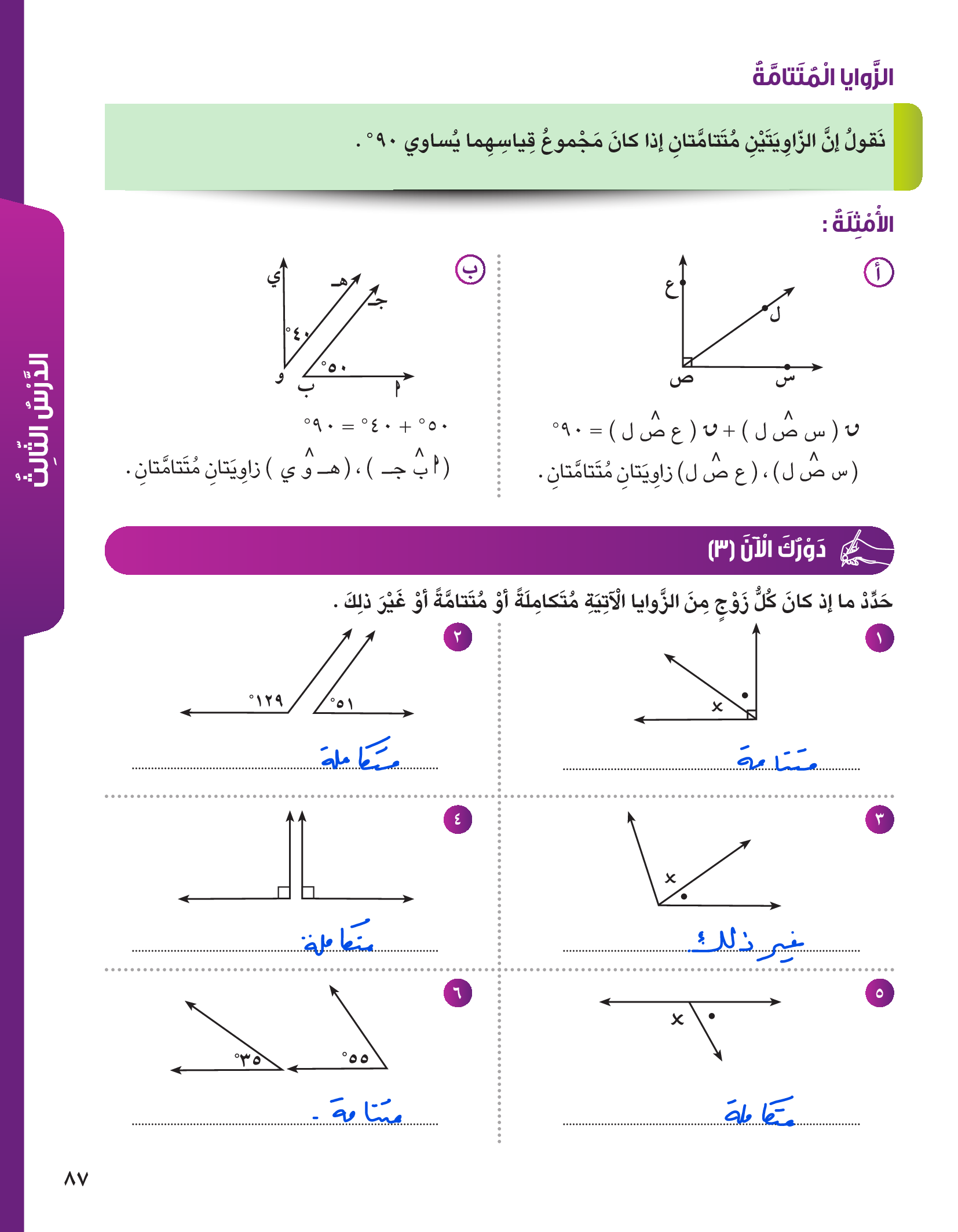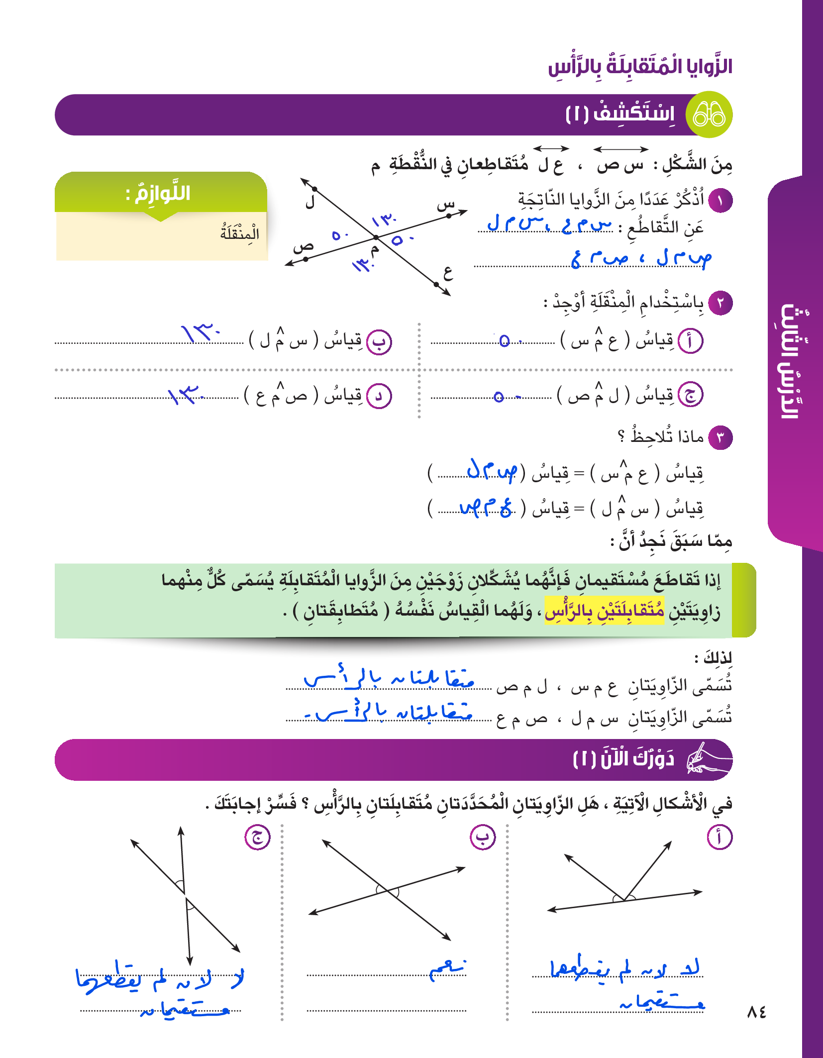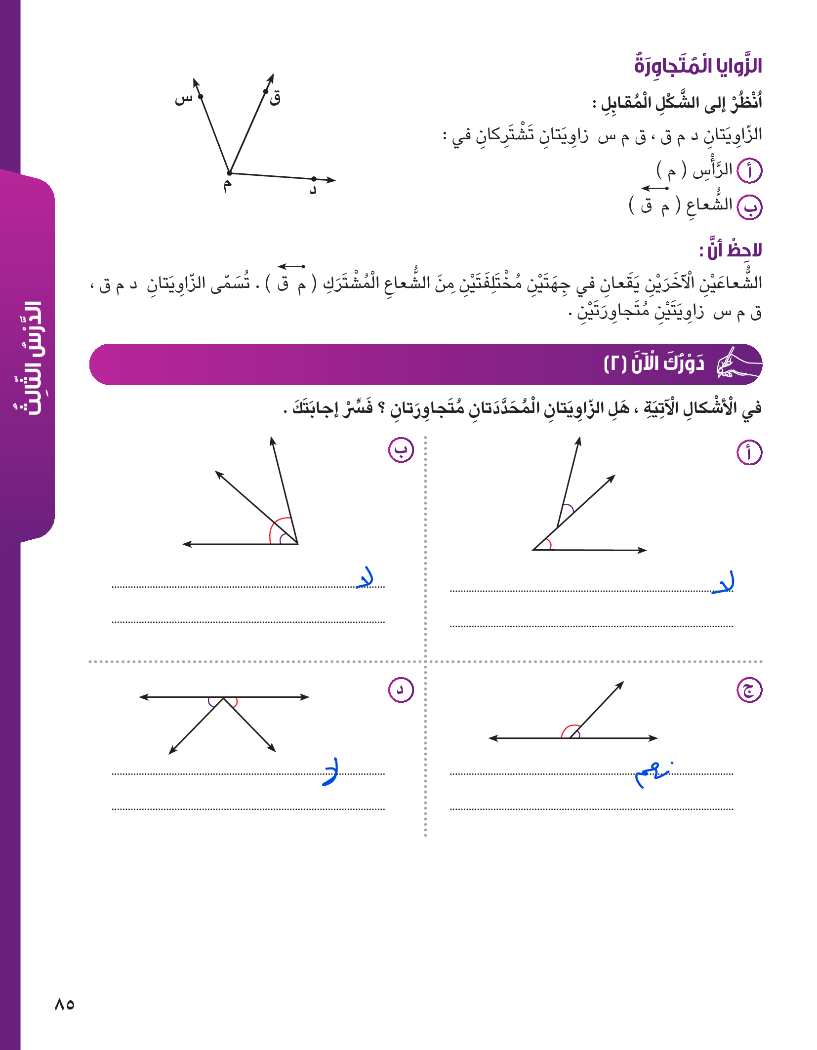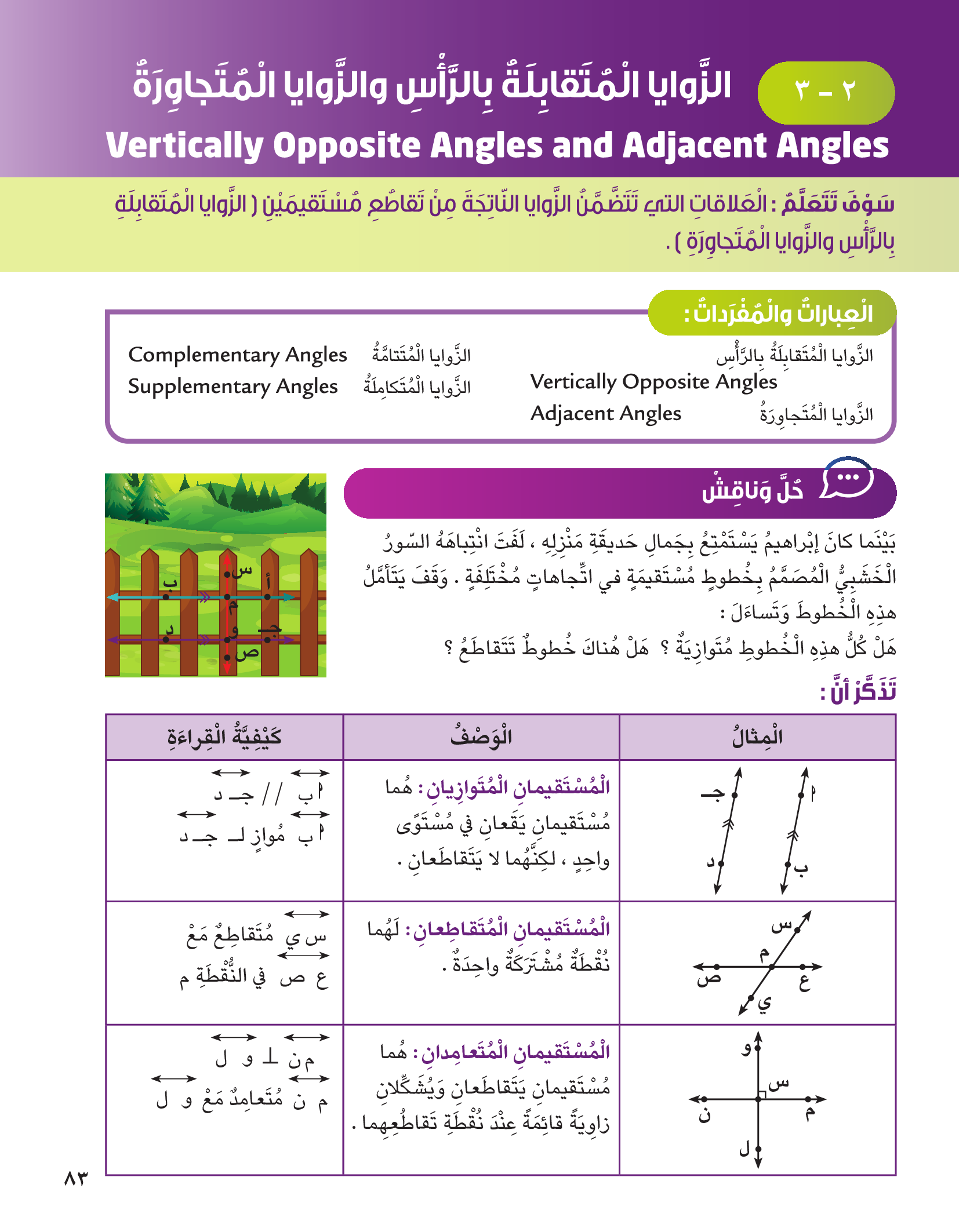 الزوايا المتقابلة بالرأس والزوايا المتجاورة