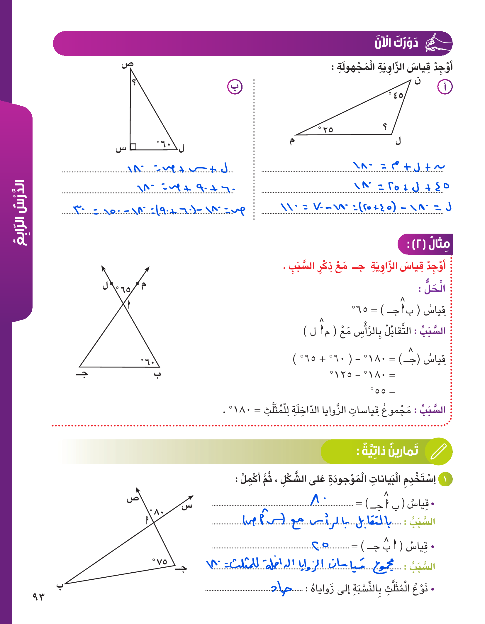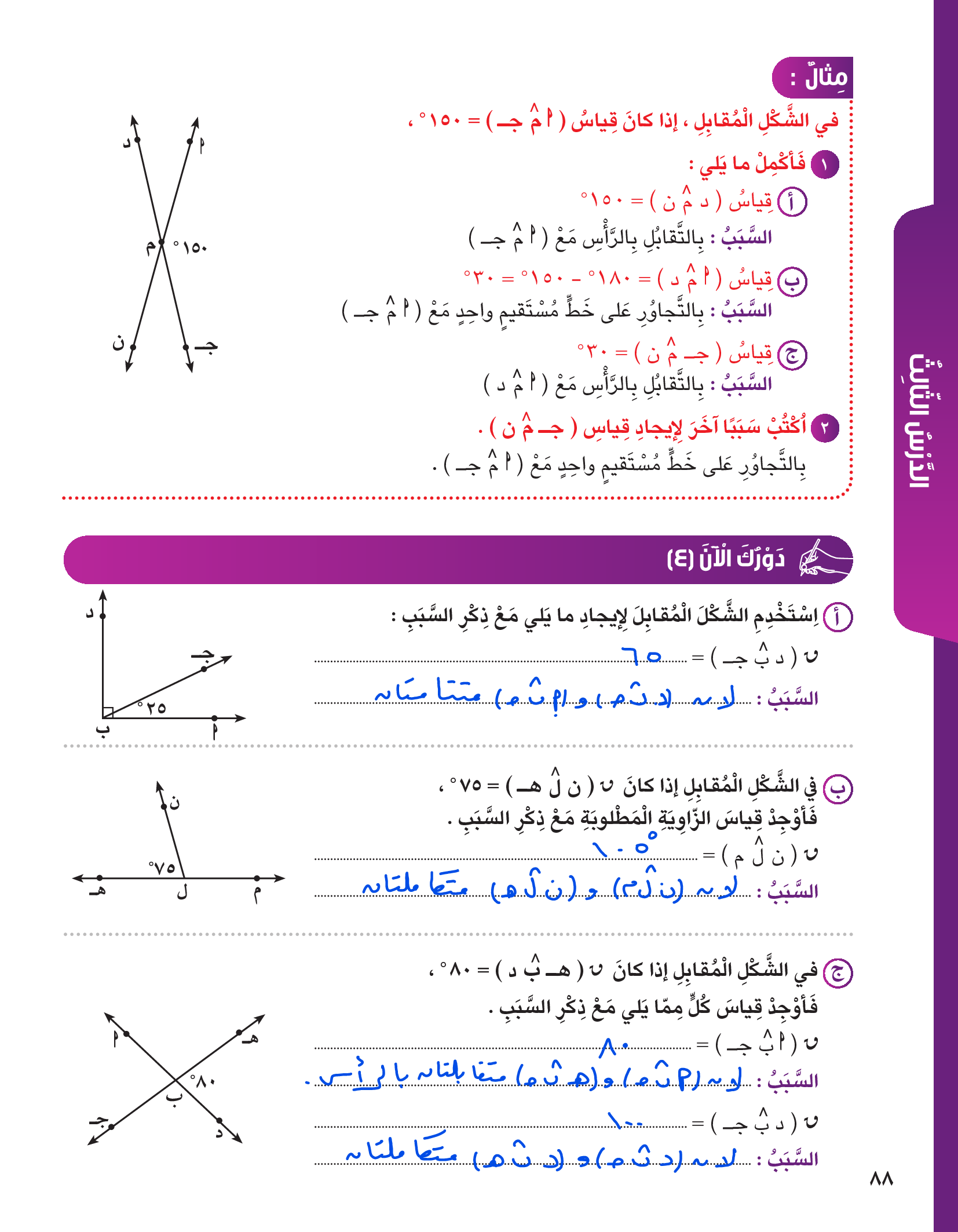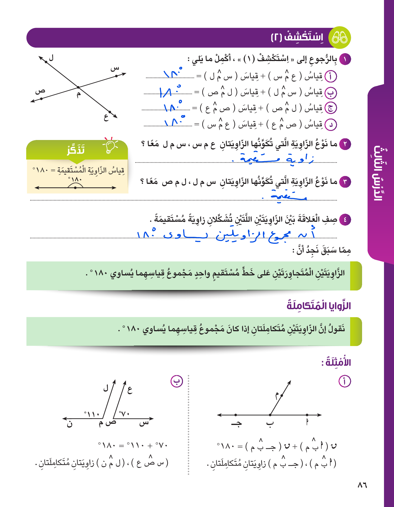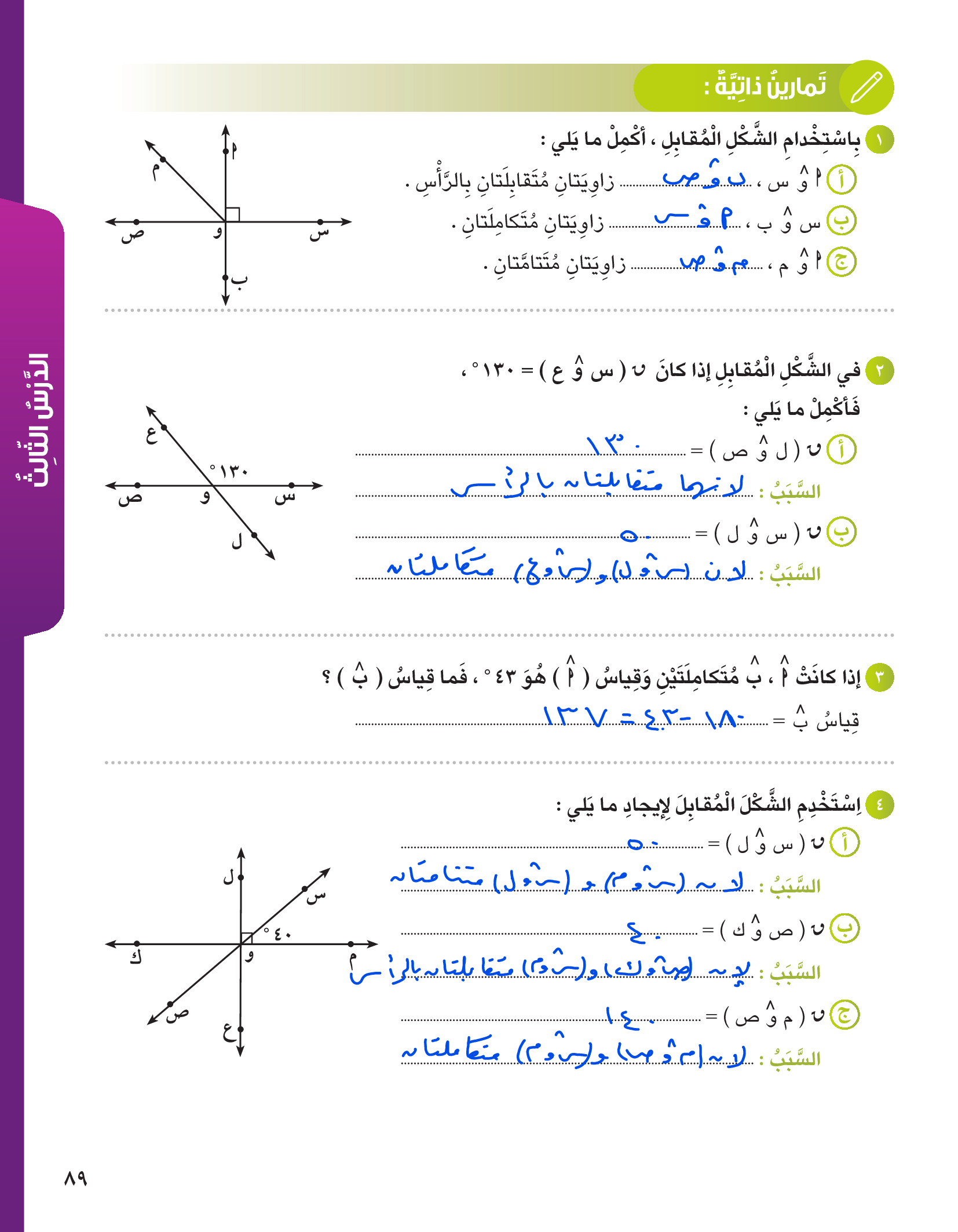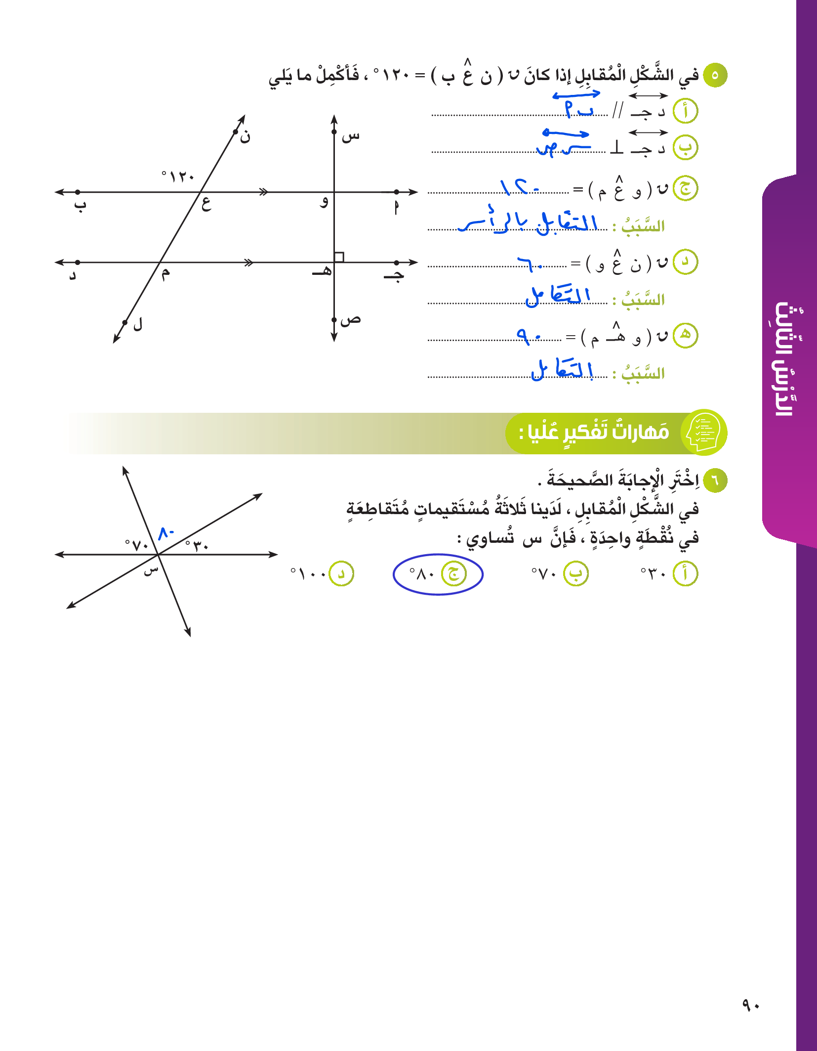 الزوايا المتقابلة بالرأس والزوايا المتجاورة