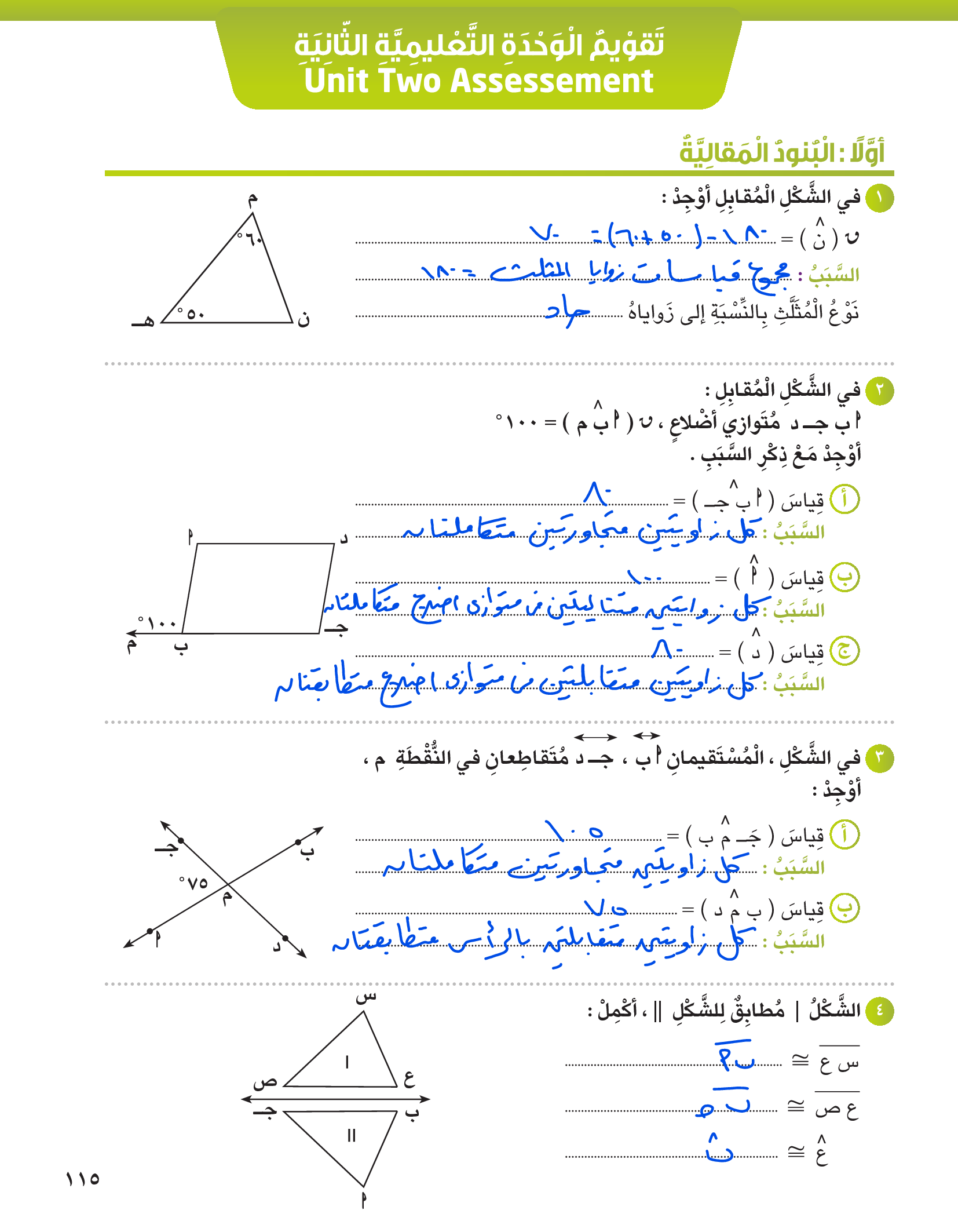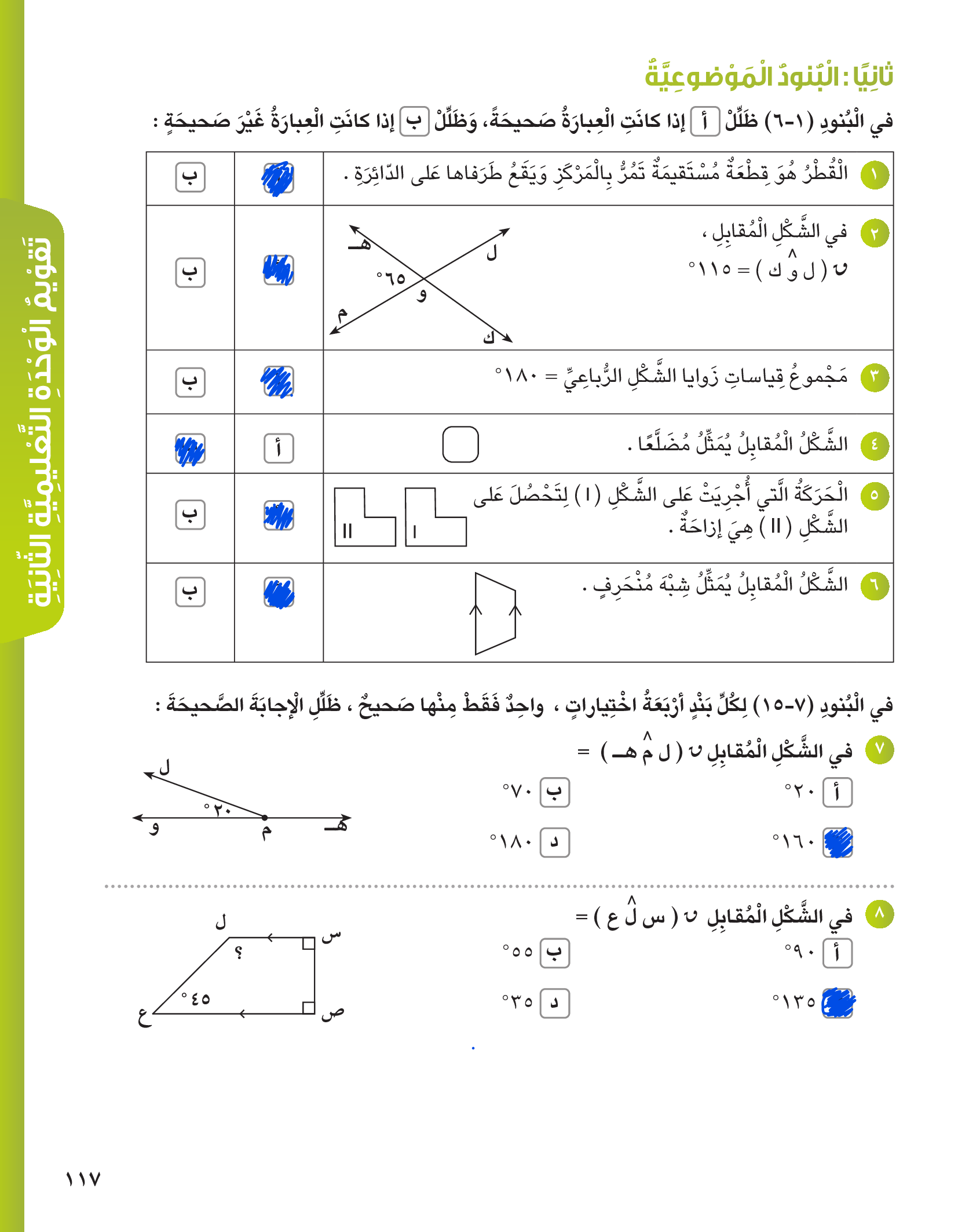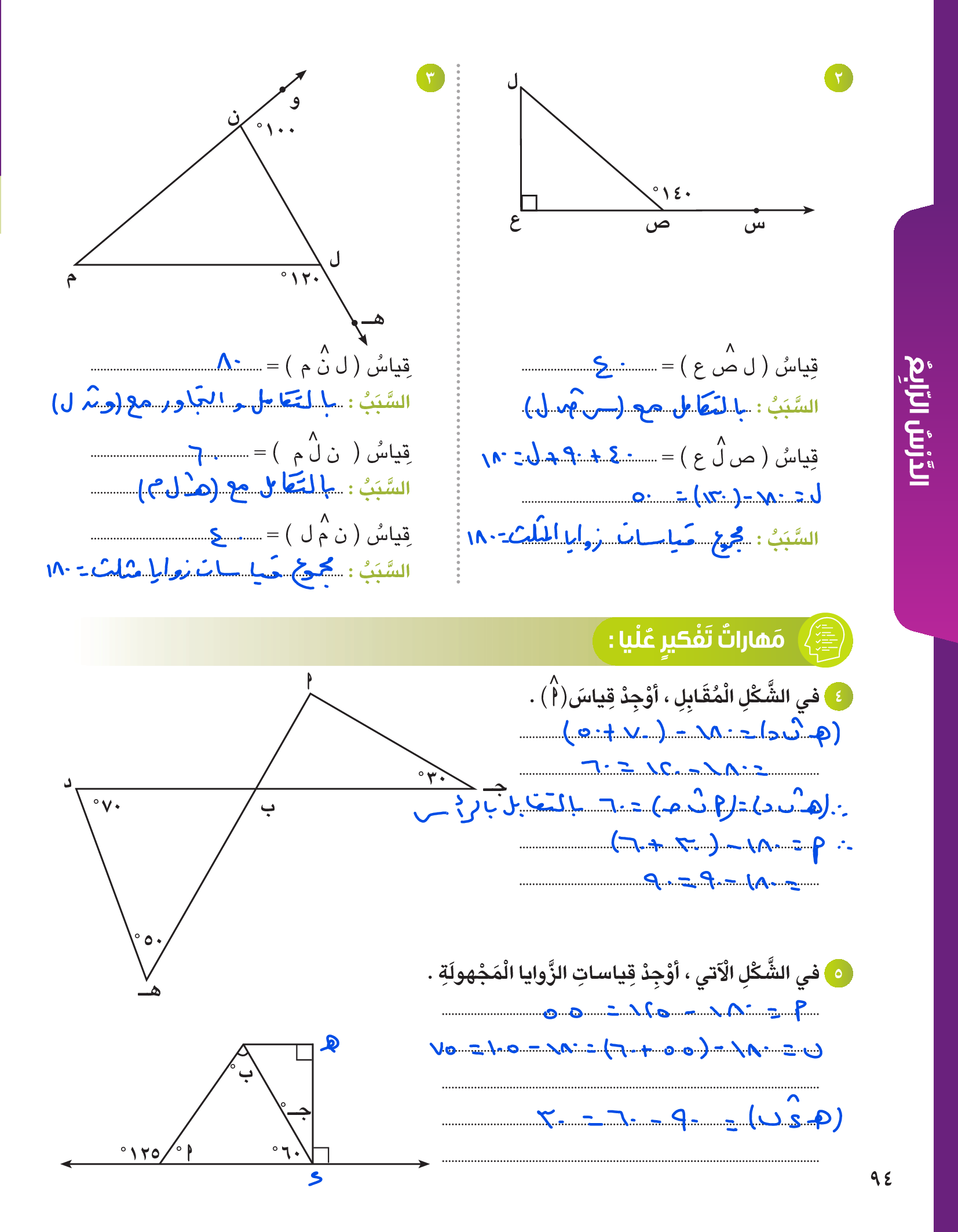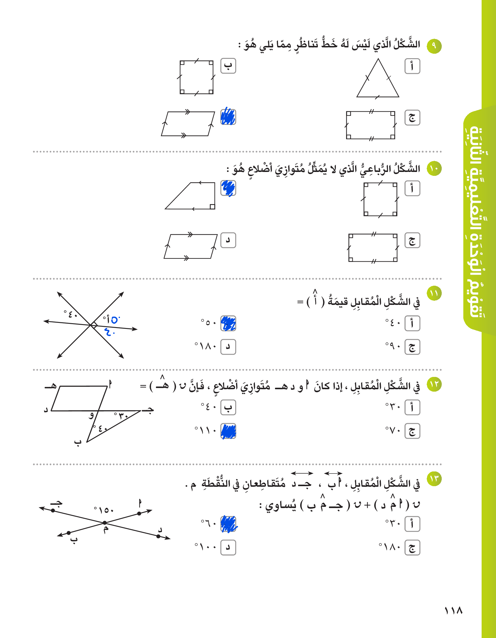 الزوايا المتقابلة بالرأس والزوايا المتجاورة