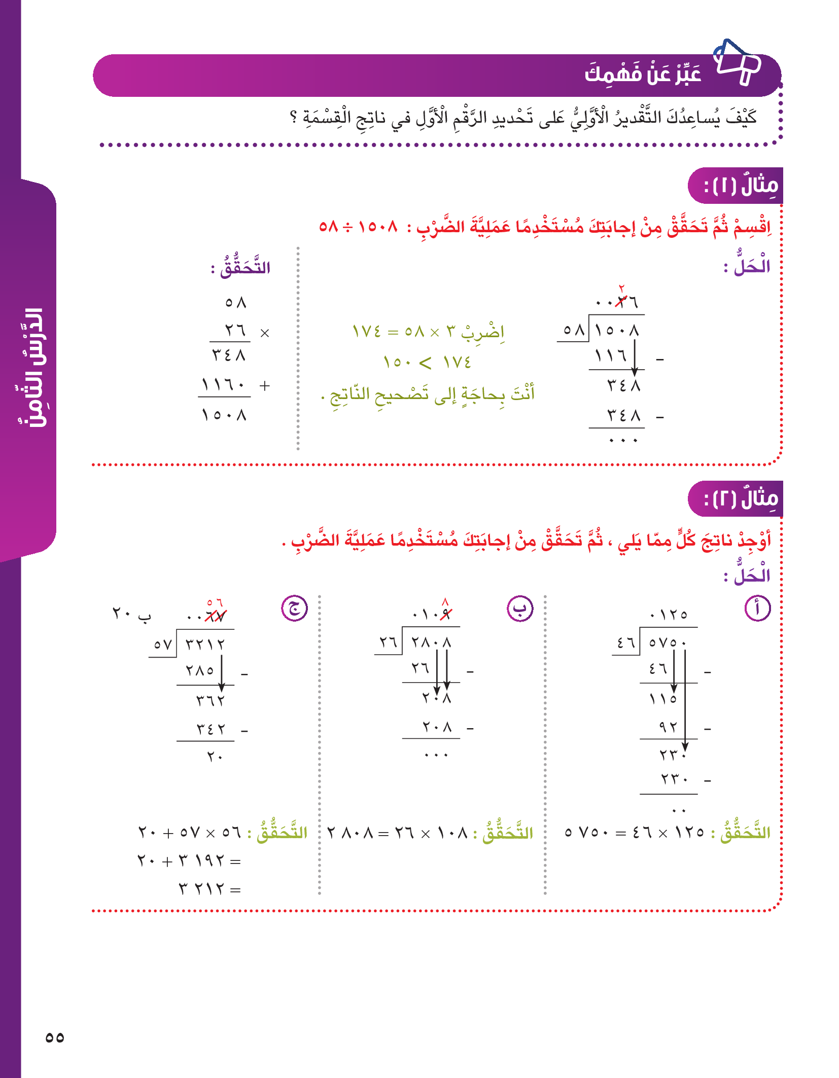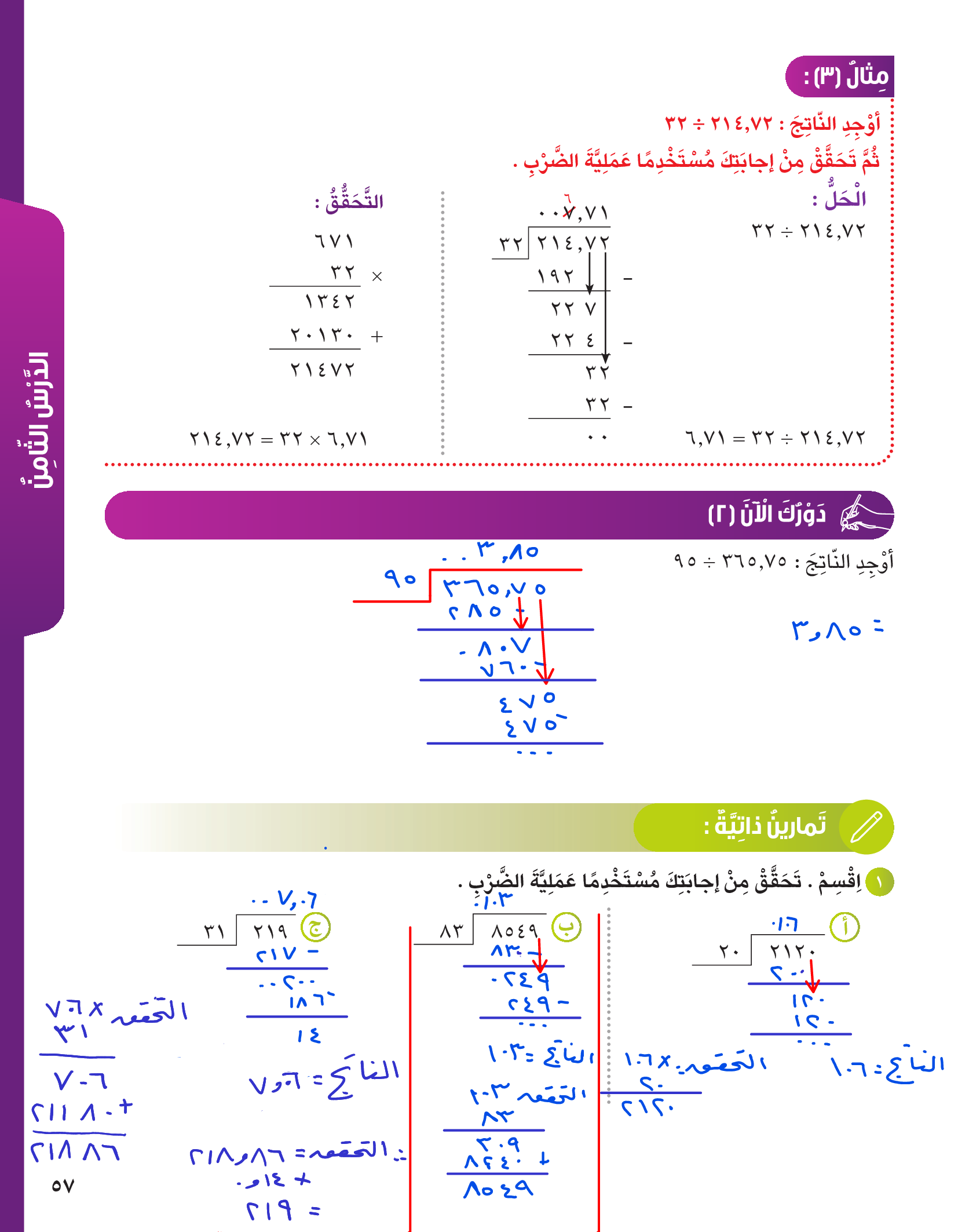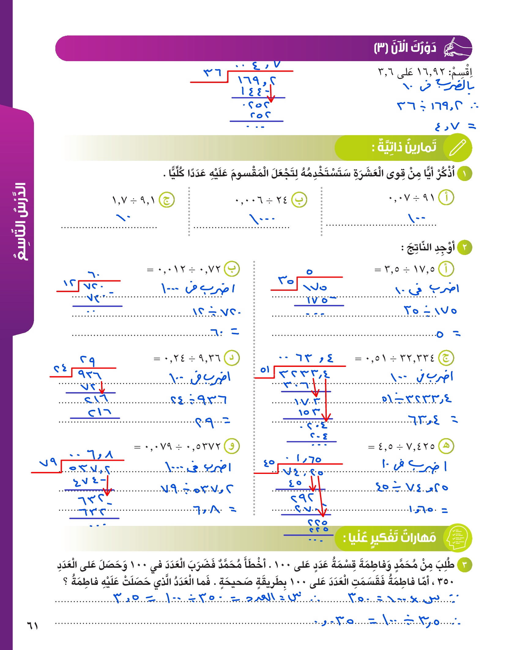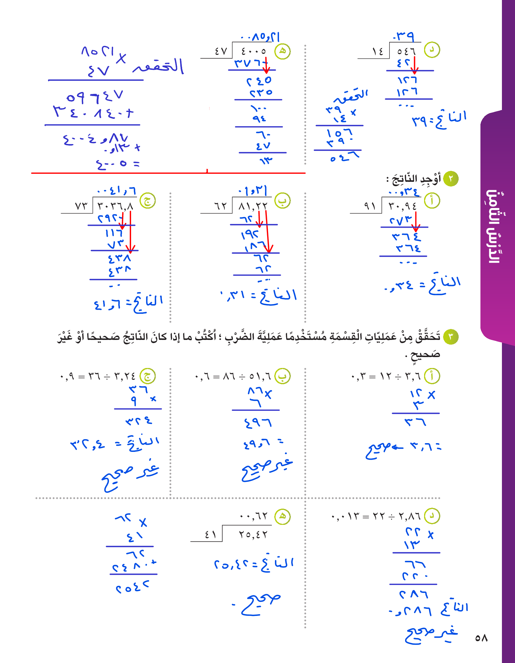 قسمة الأعداد الكلية والأعداد العشرية على عدد مكون رمزه من رقمين