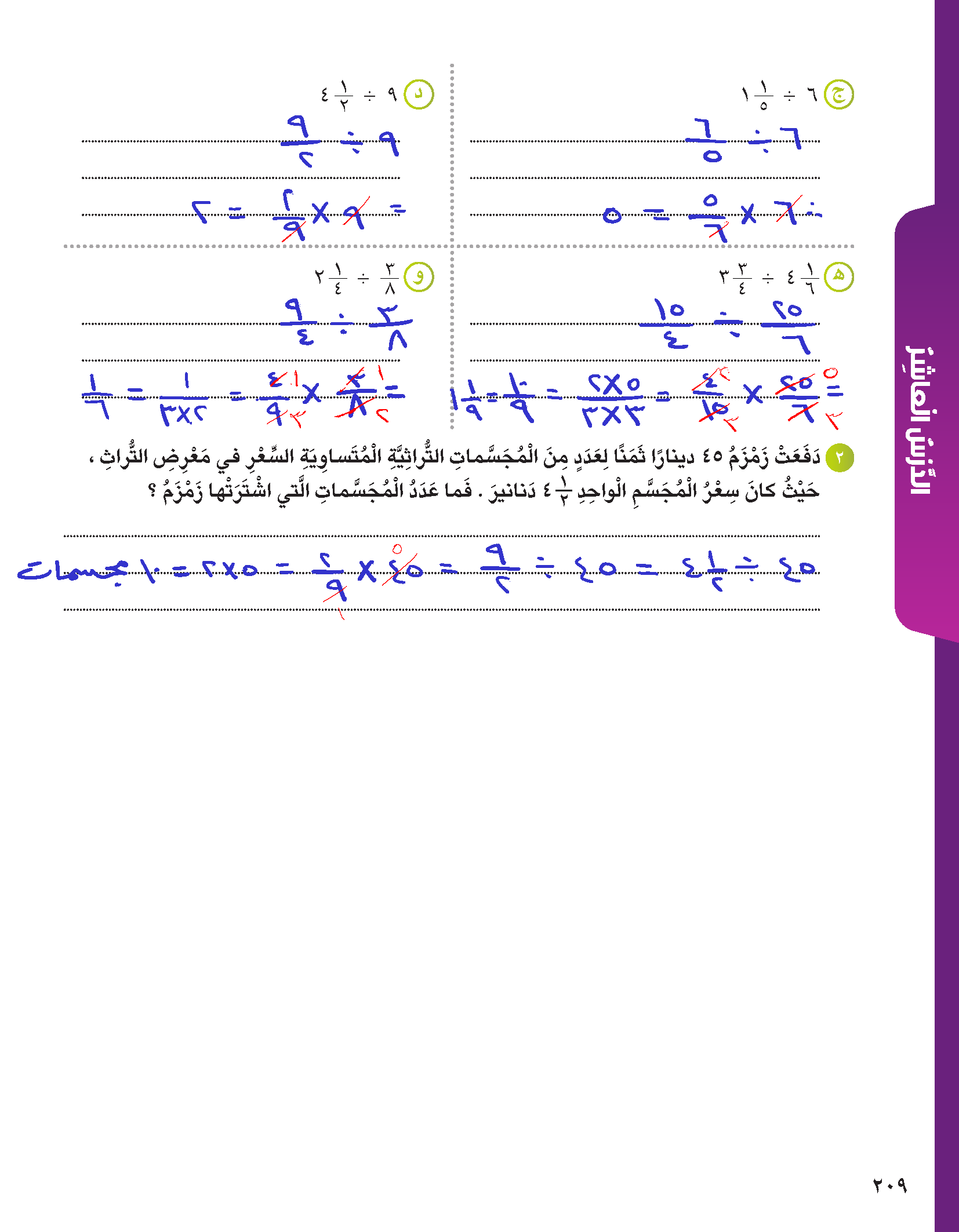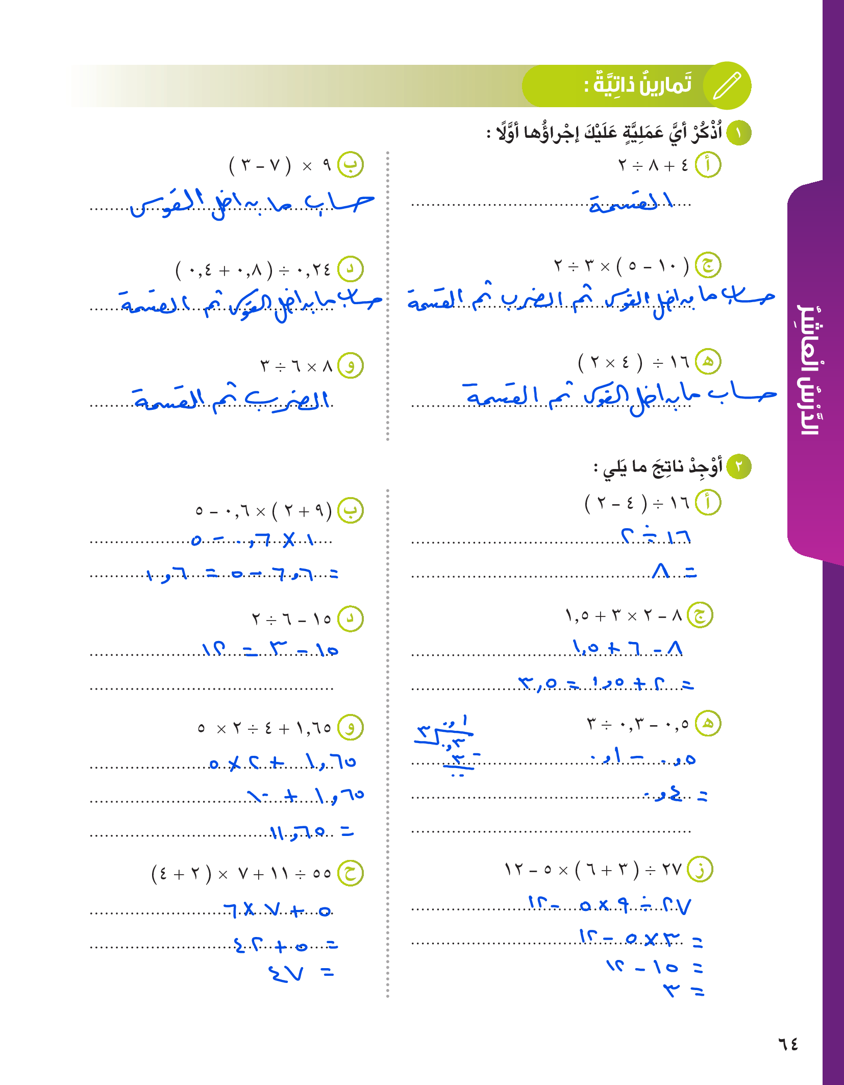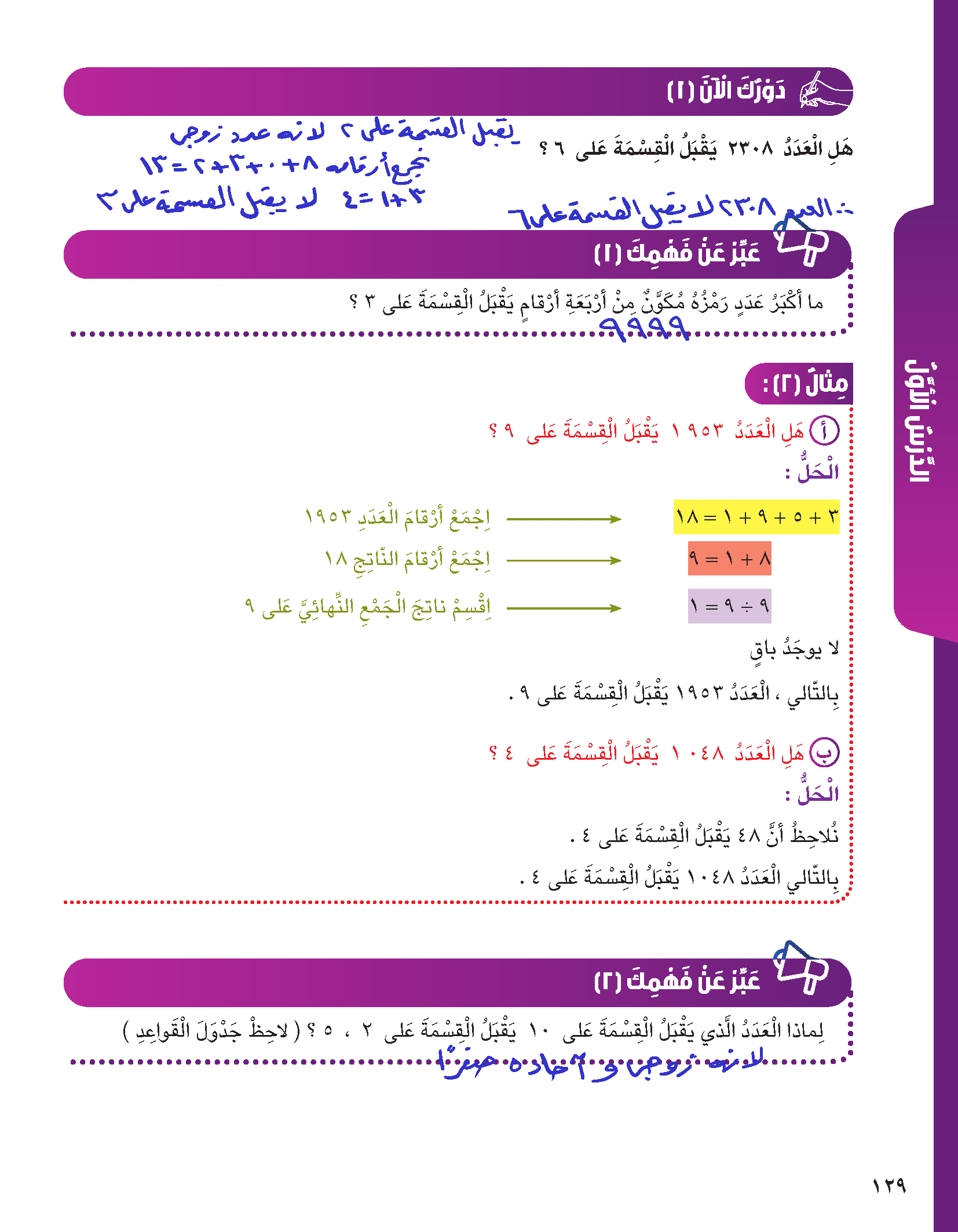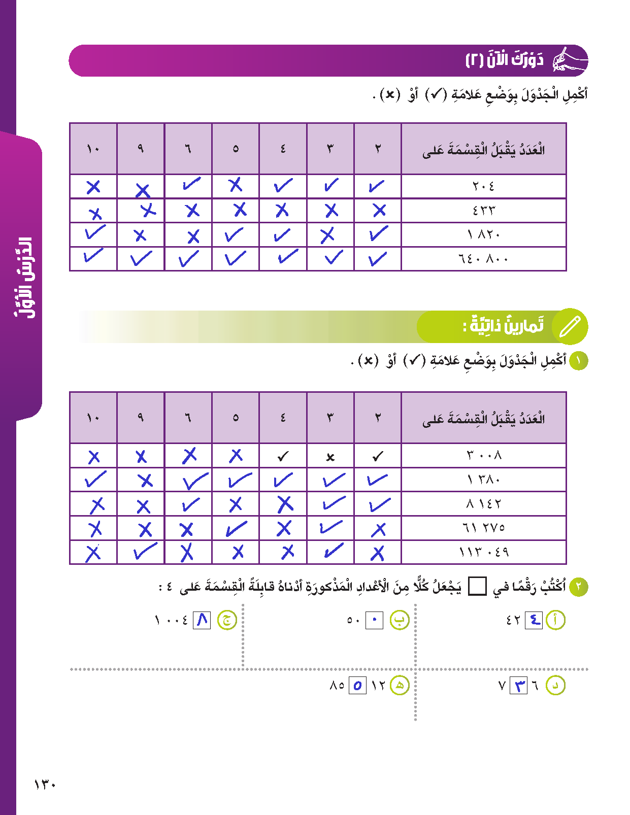 قسمة الأعداد الكلية والأعداد العشرية على عدد مكون رمزه من رقمين