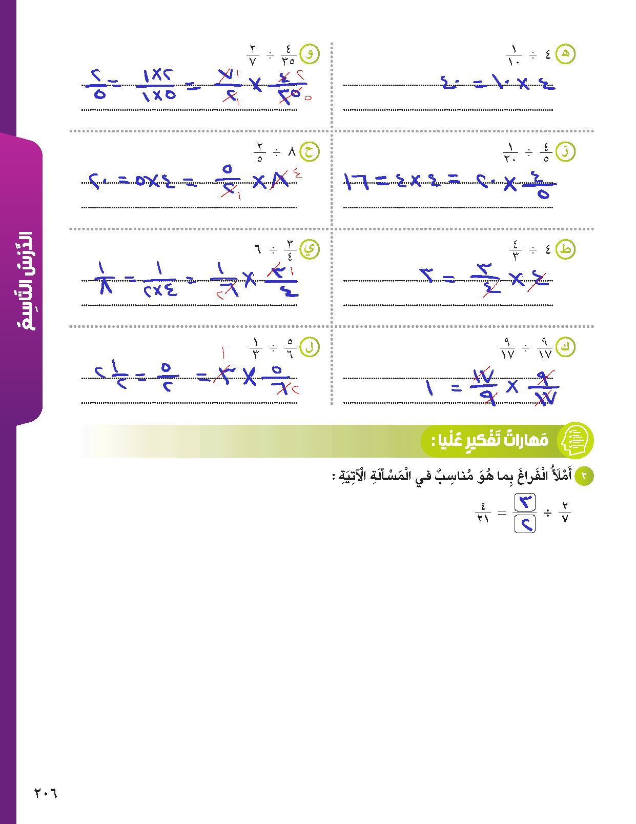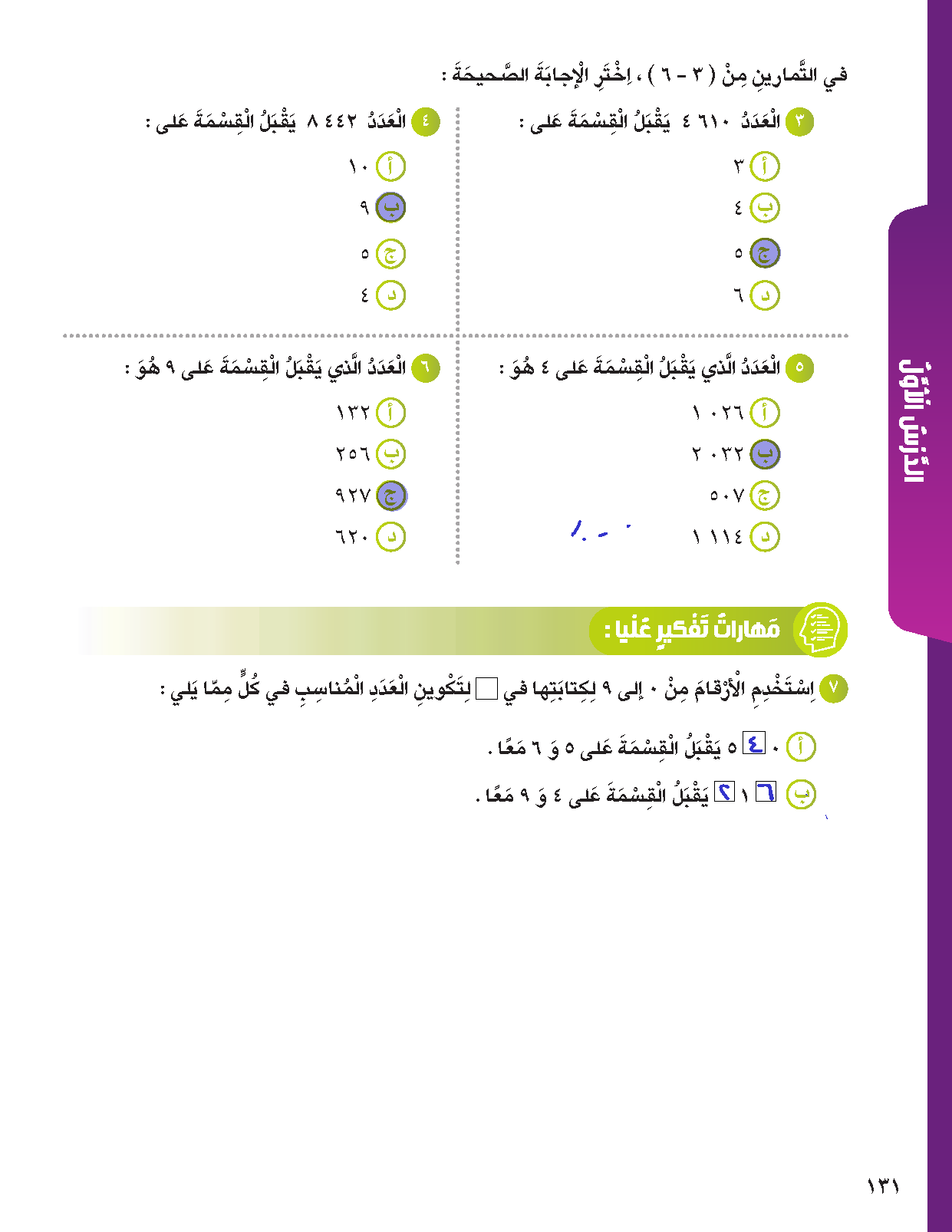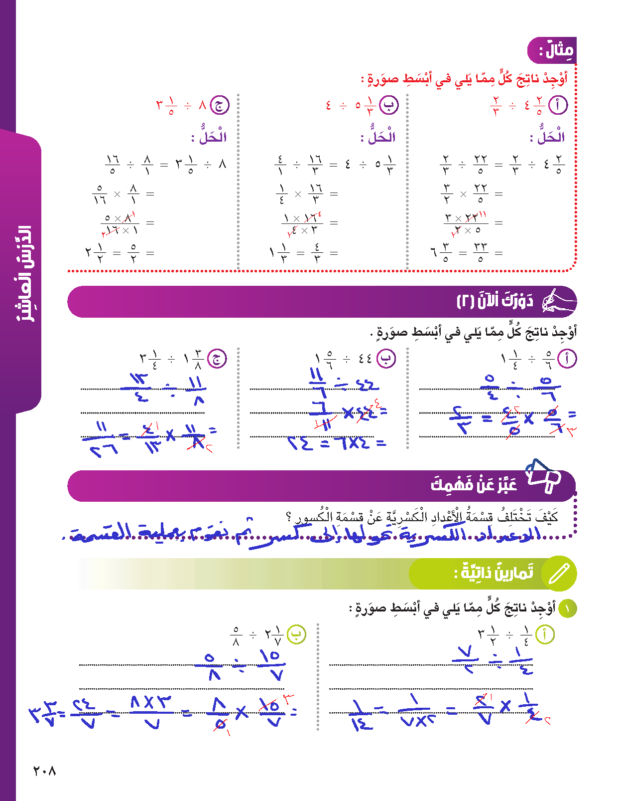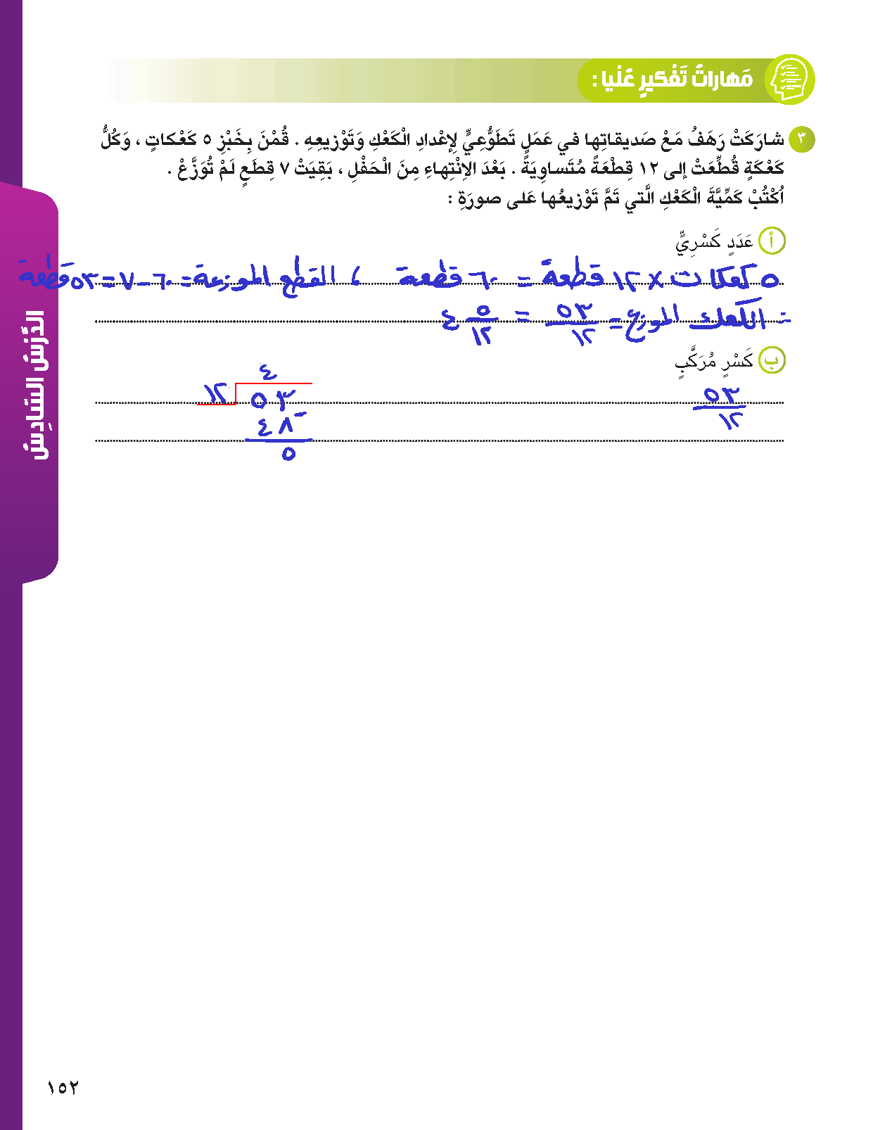 قسمة الأعداد الكلية والأعداد العشرية على عدد مكون رمزه من رقمين