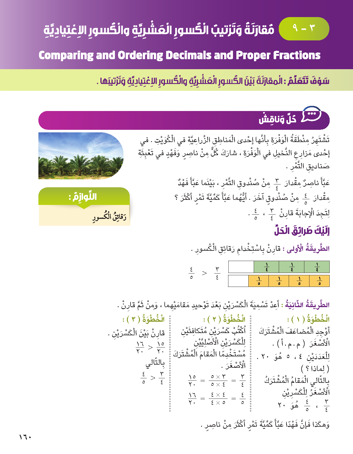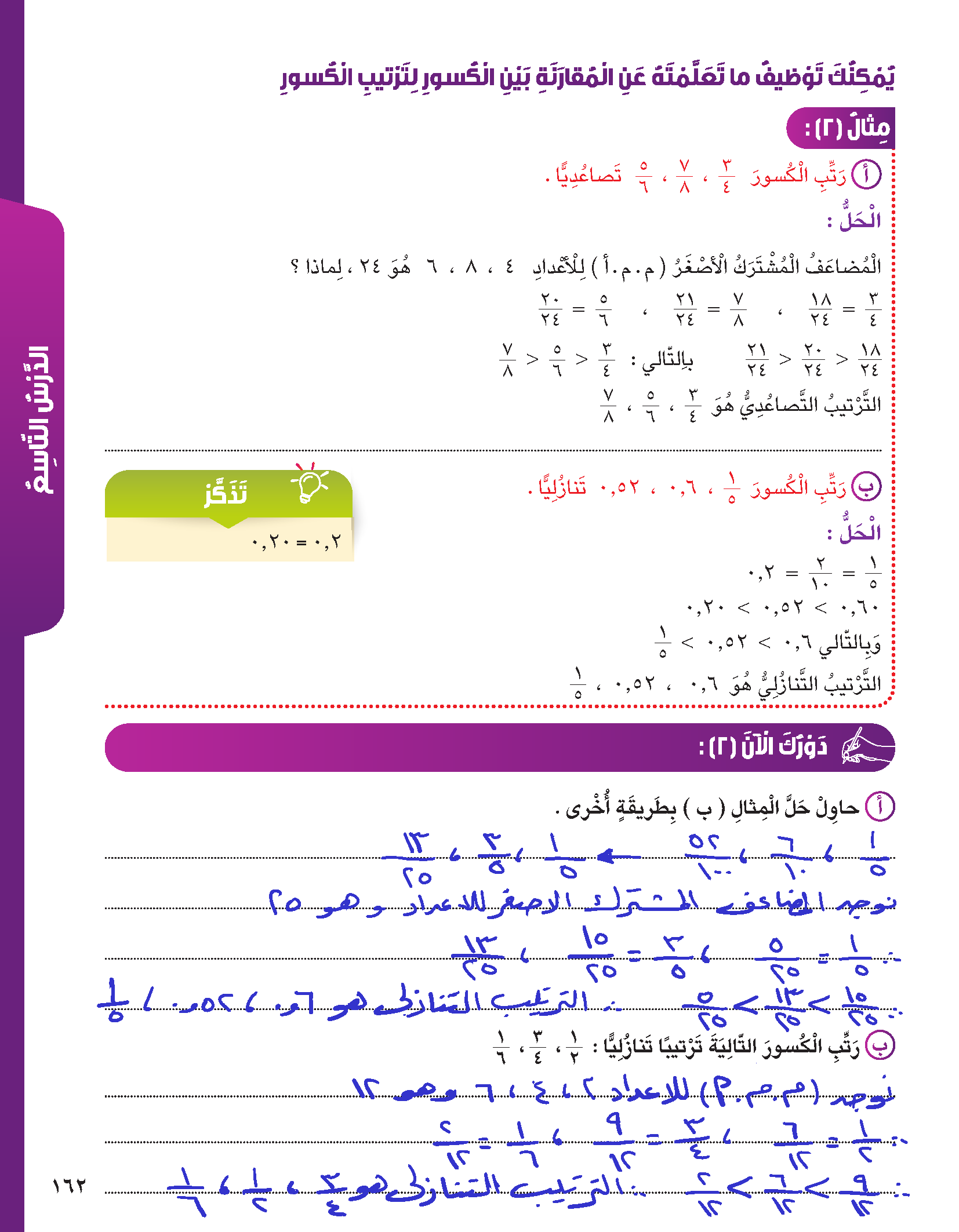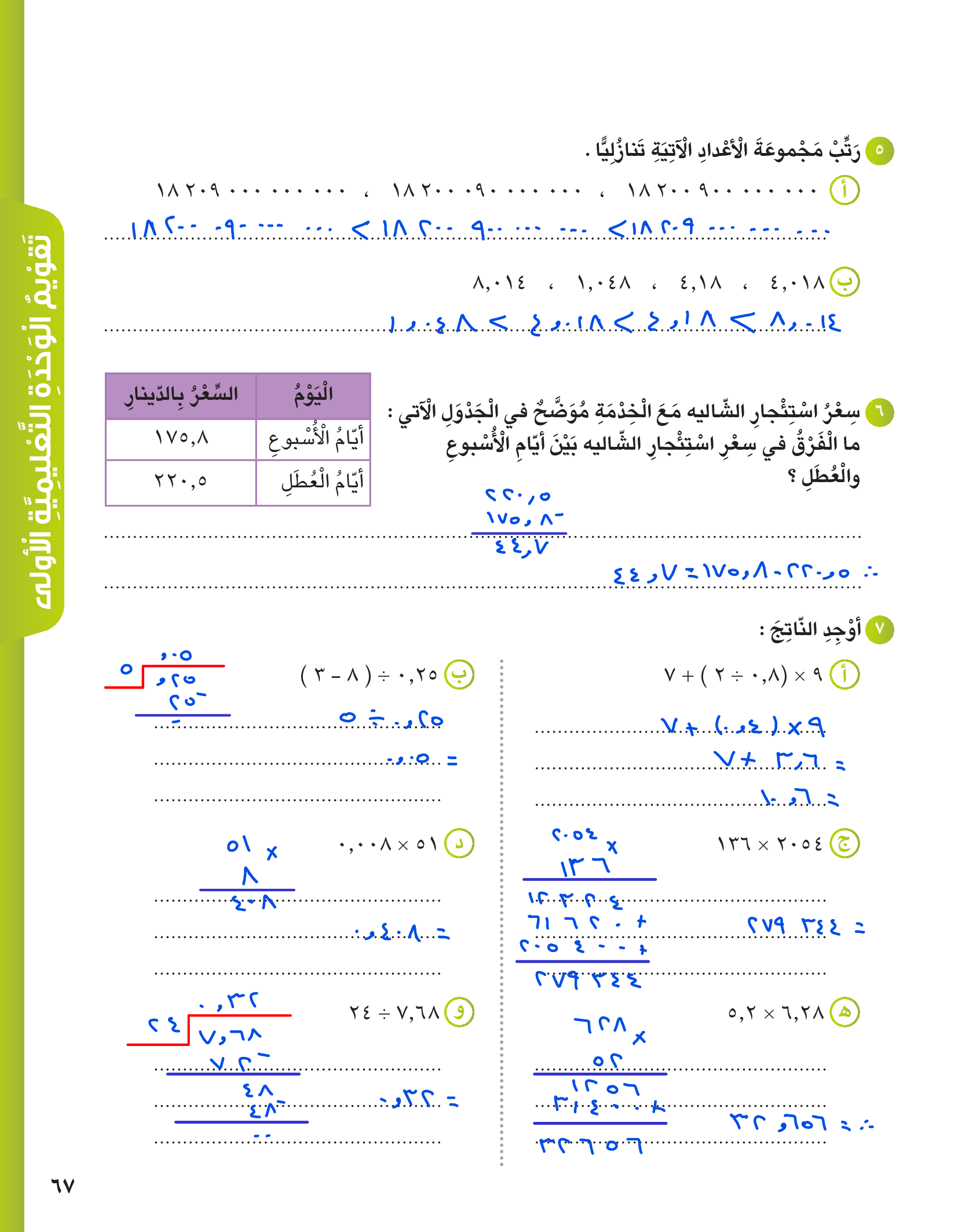 مقارنة وترتيب الأعداد الكلية والأعداد العشرية