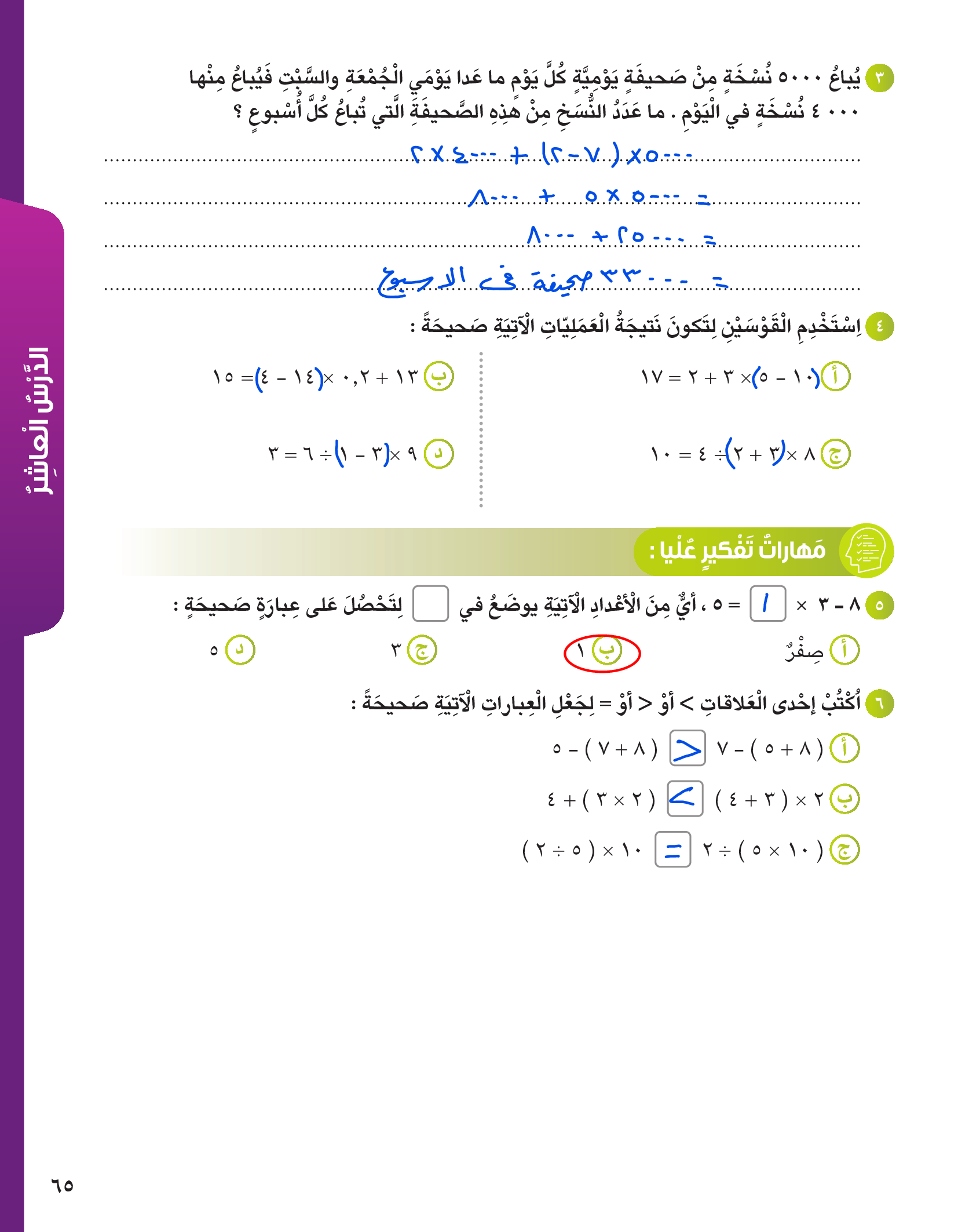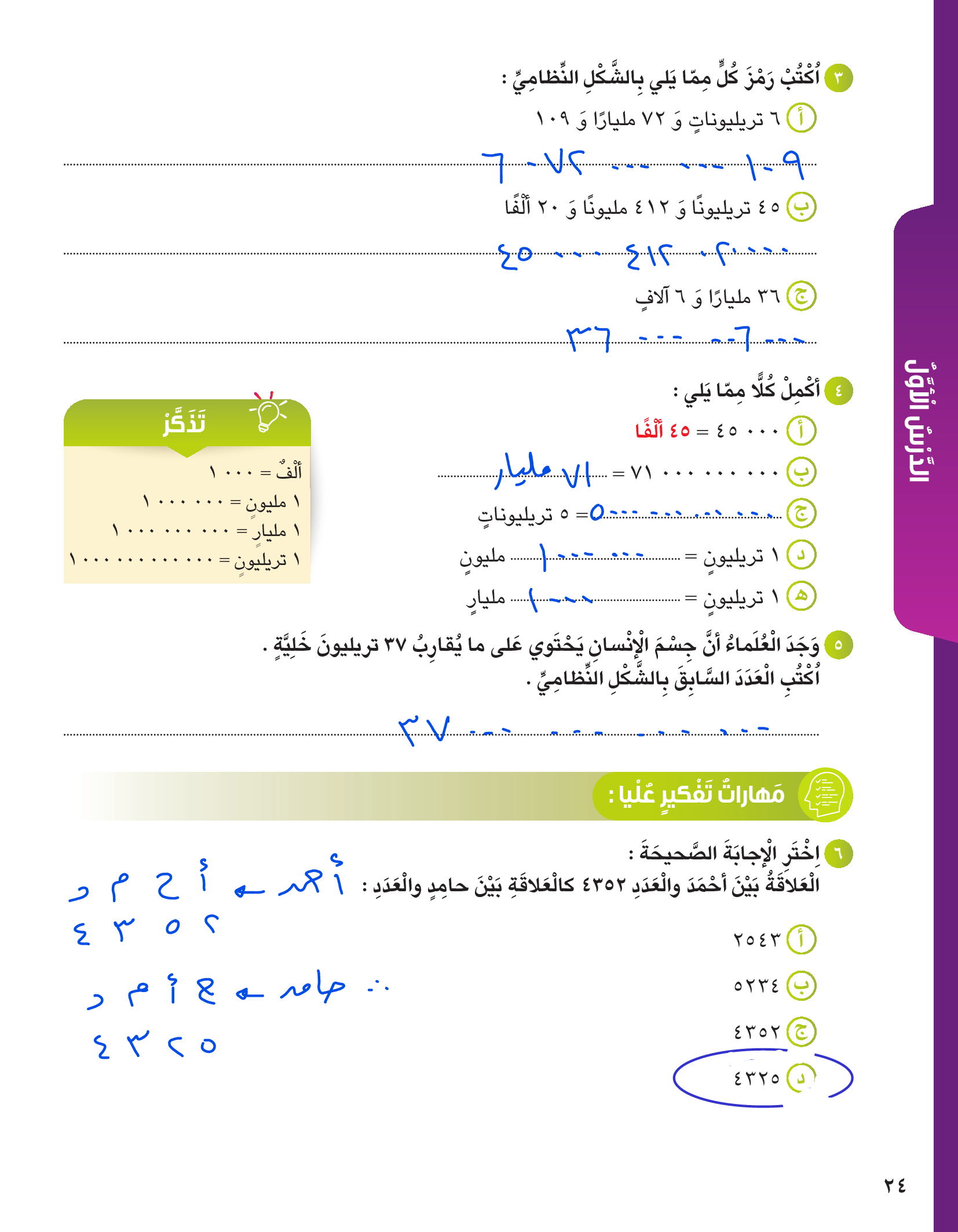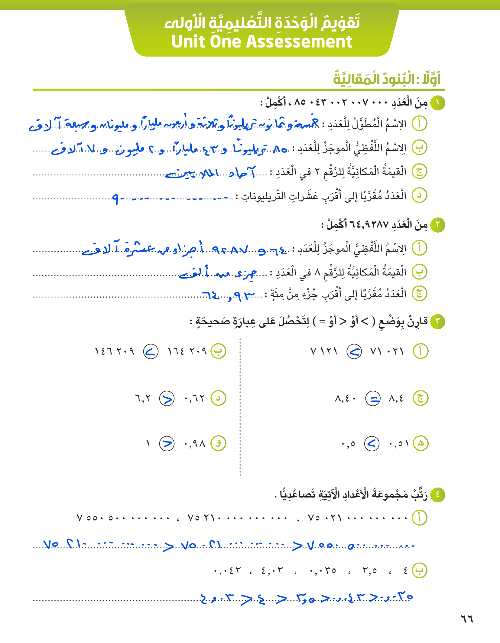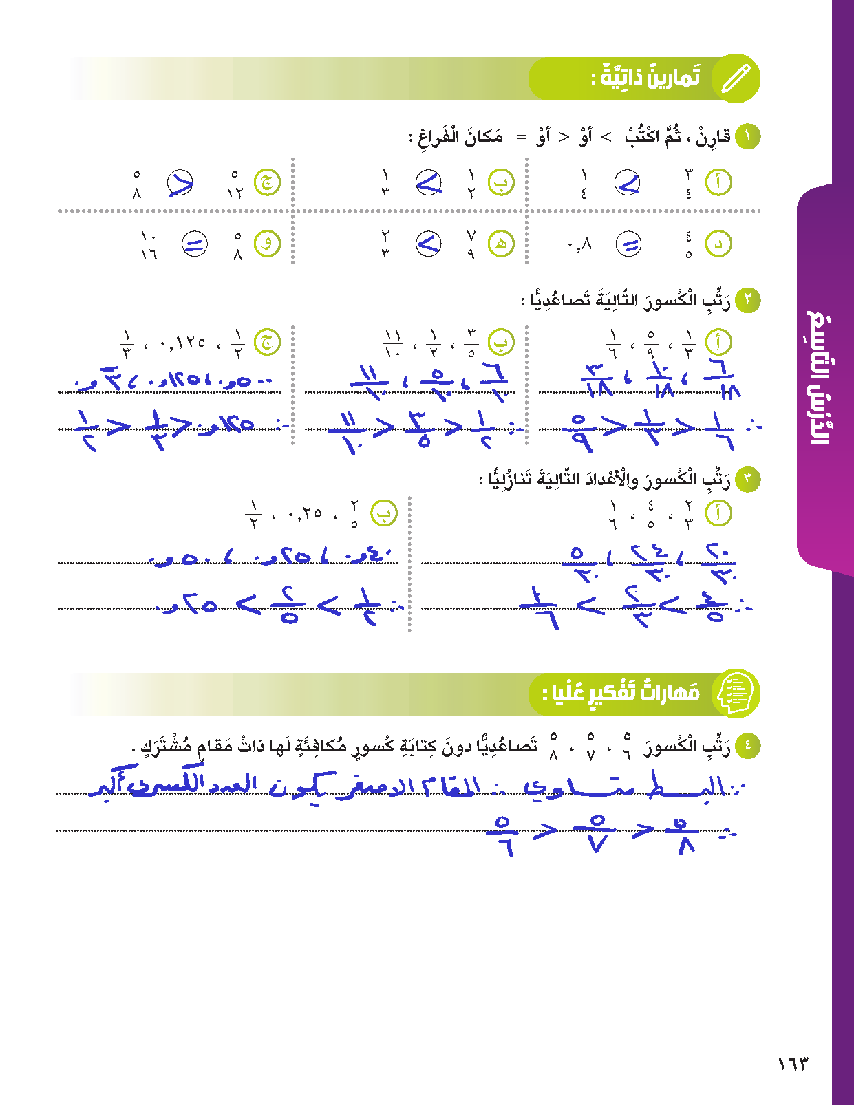 مقارنة وترتيب الأعداد الكلية والأعداد العشرية