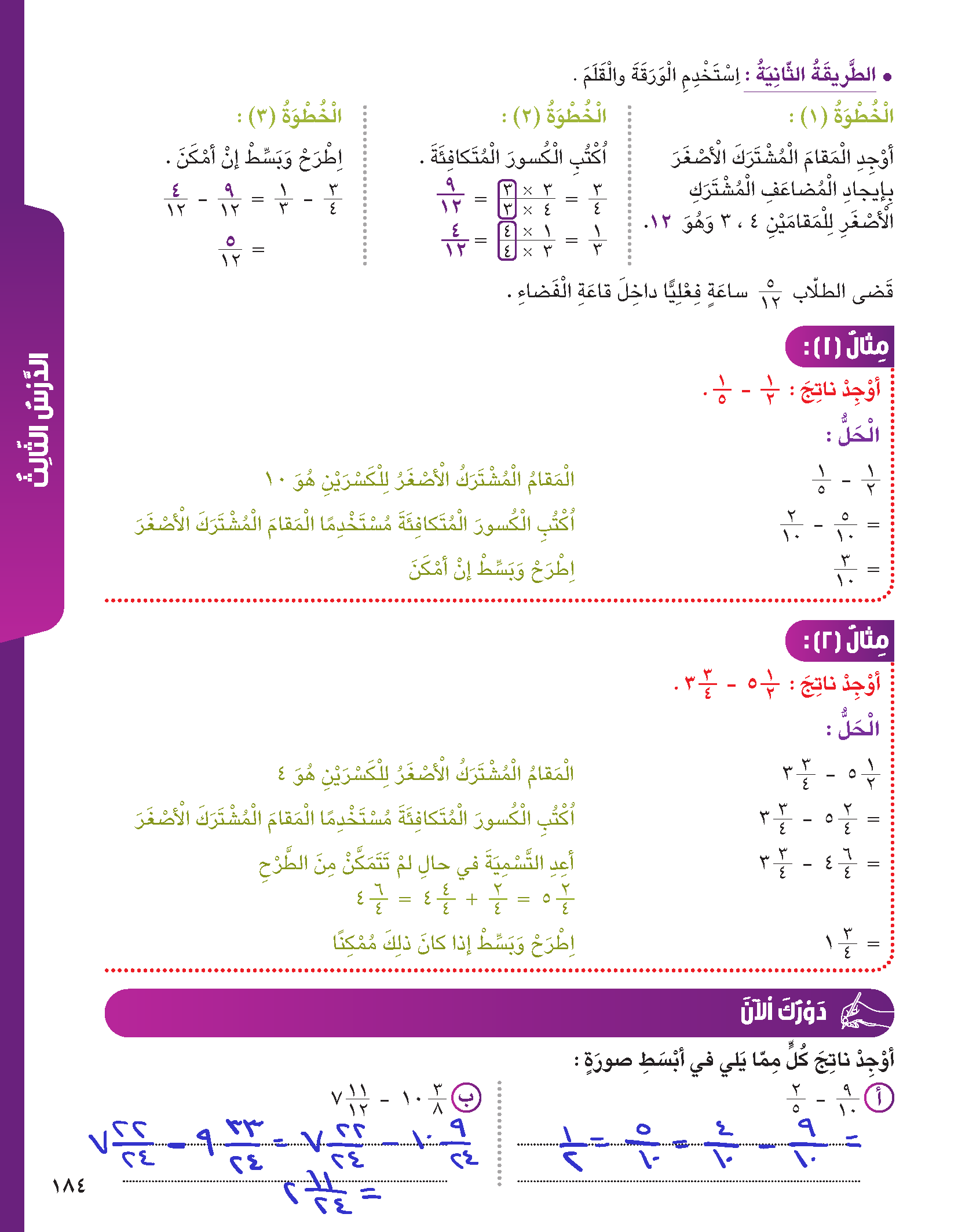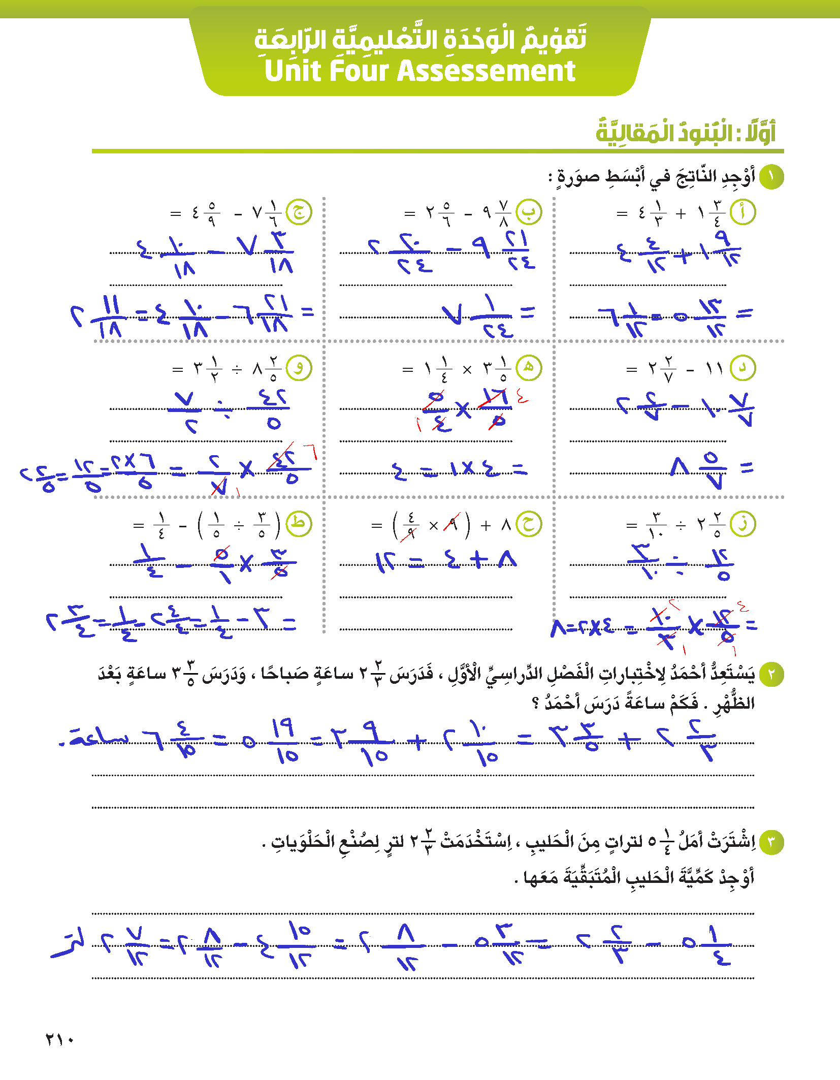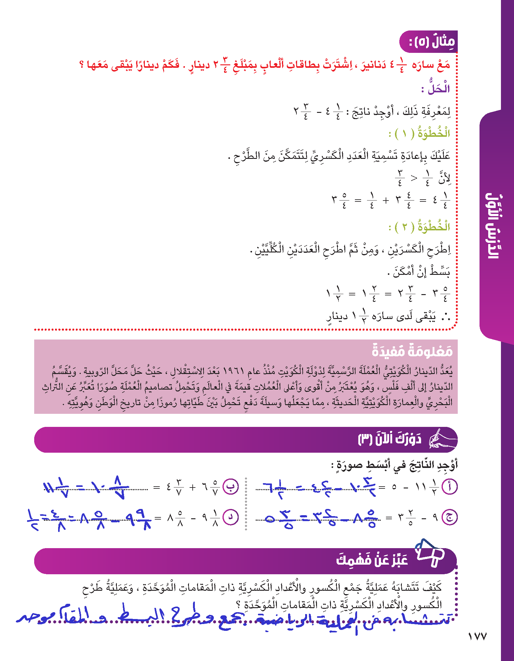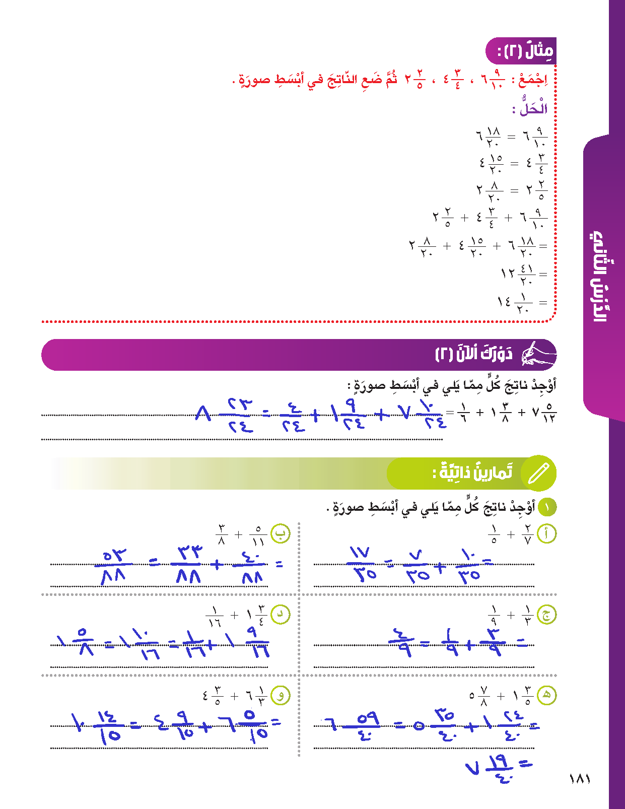 جمع الأعداد الكلية والأعداد العشرية وطرحها