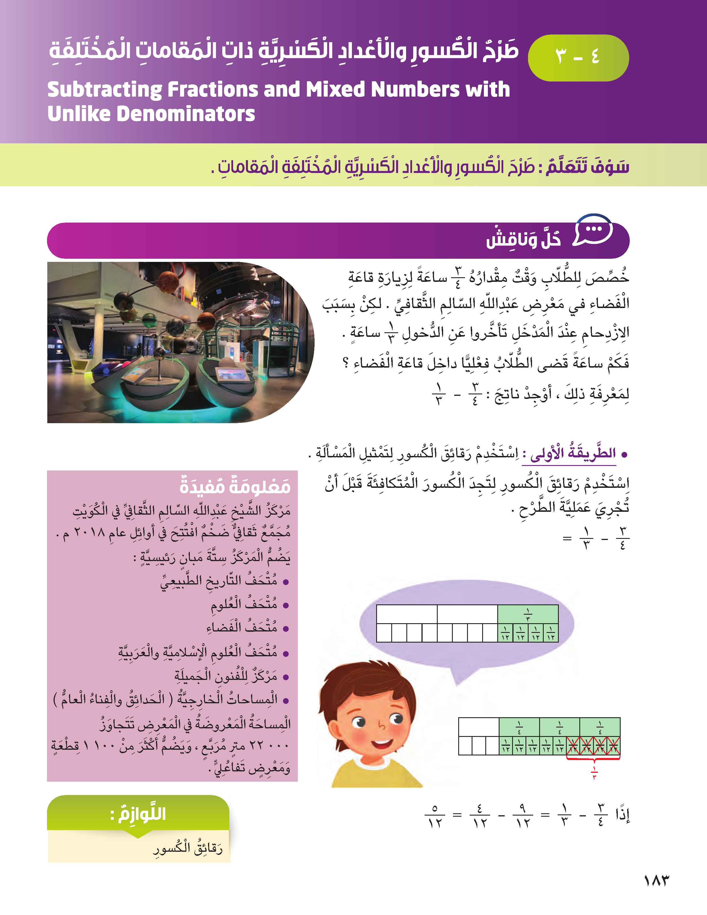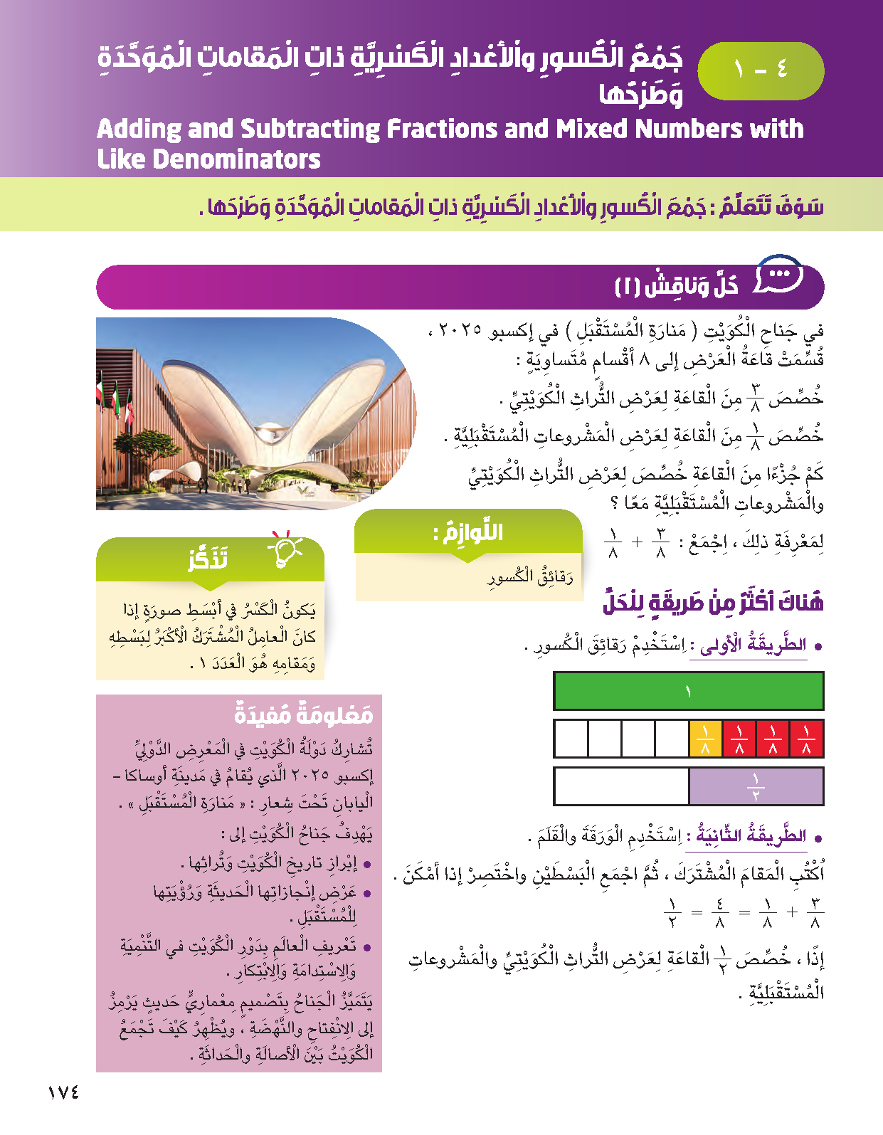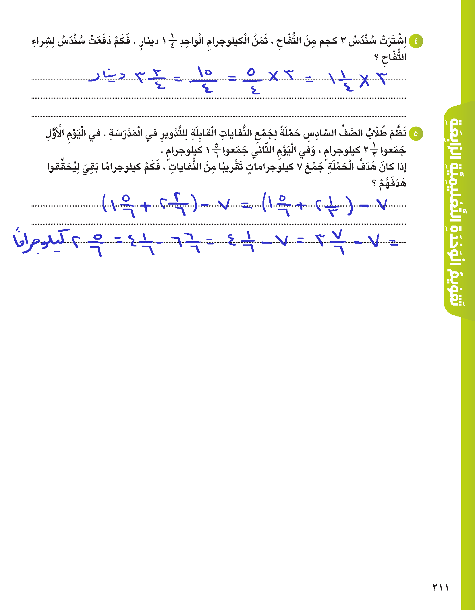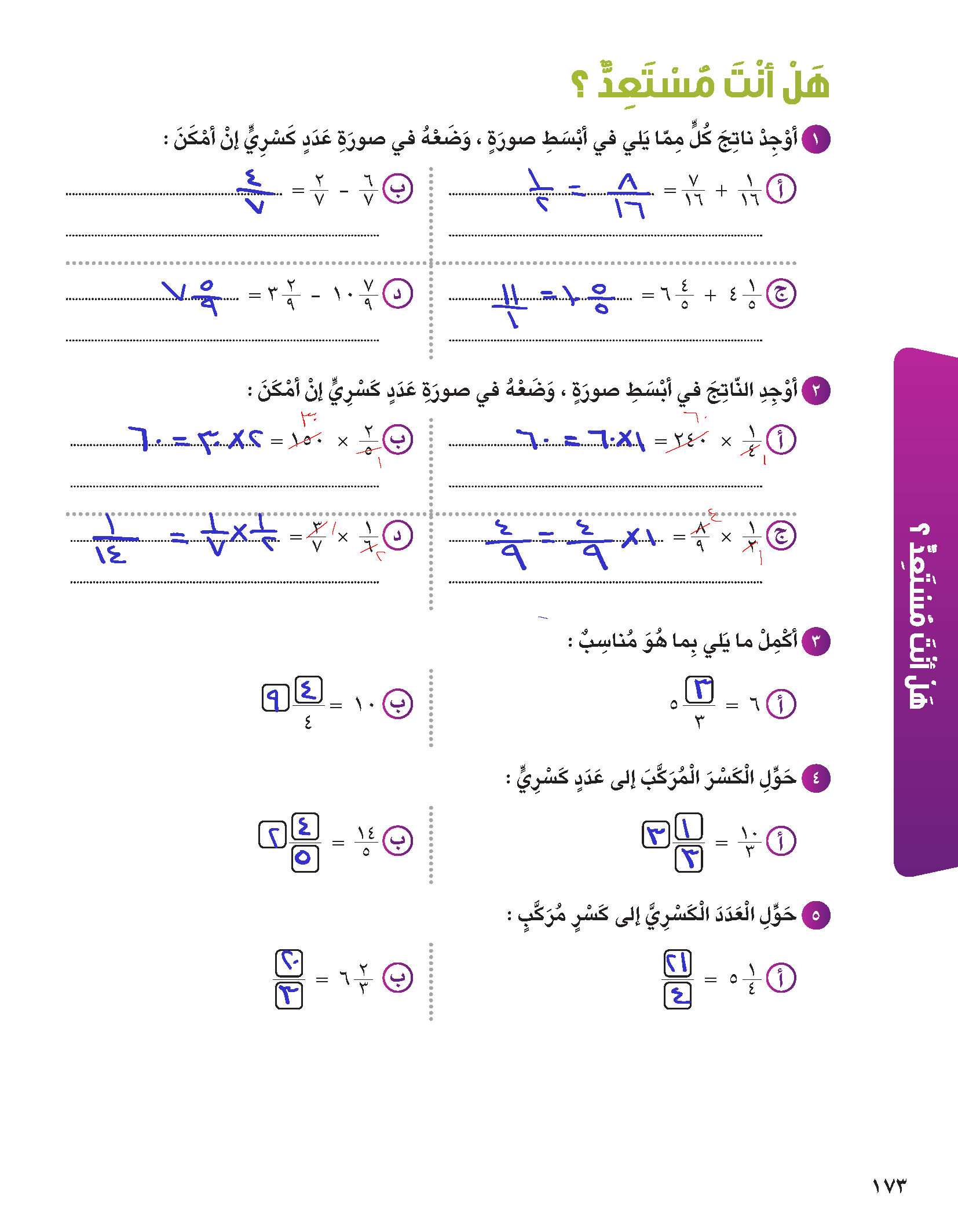 جمع الأعداد الكلية والأعداد العشرية وطرحها