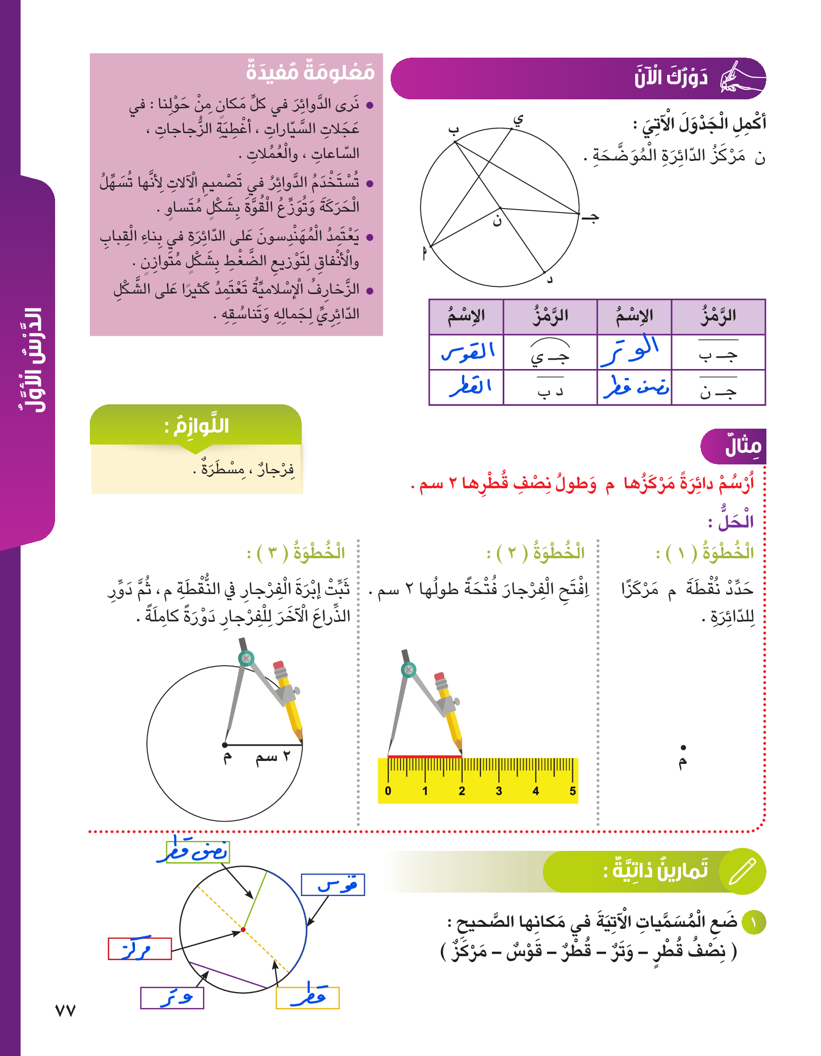 مفاهيم هندسية للدائرة - رسم الدائرة