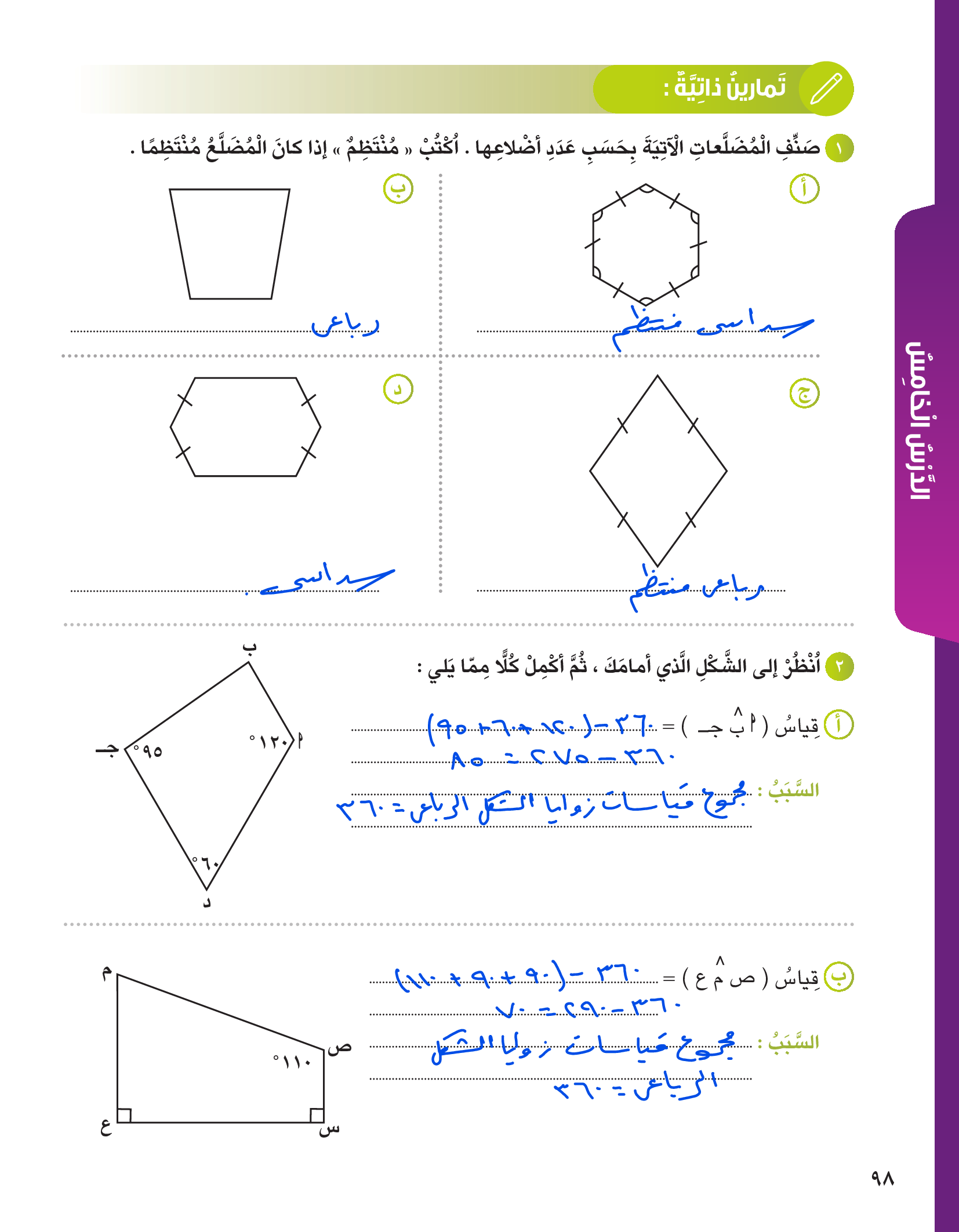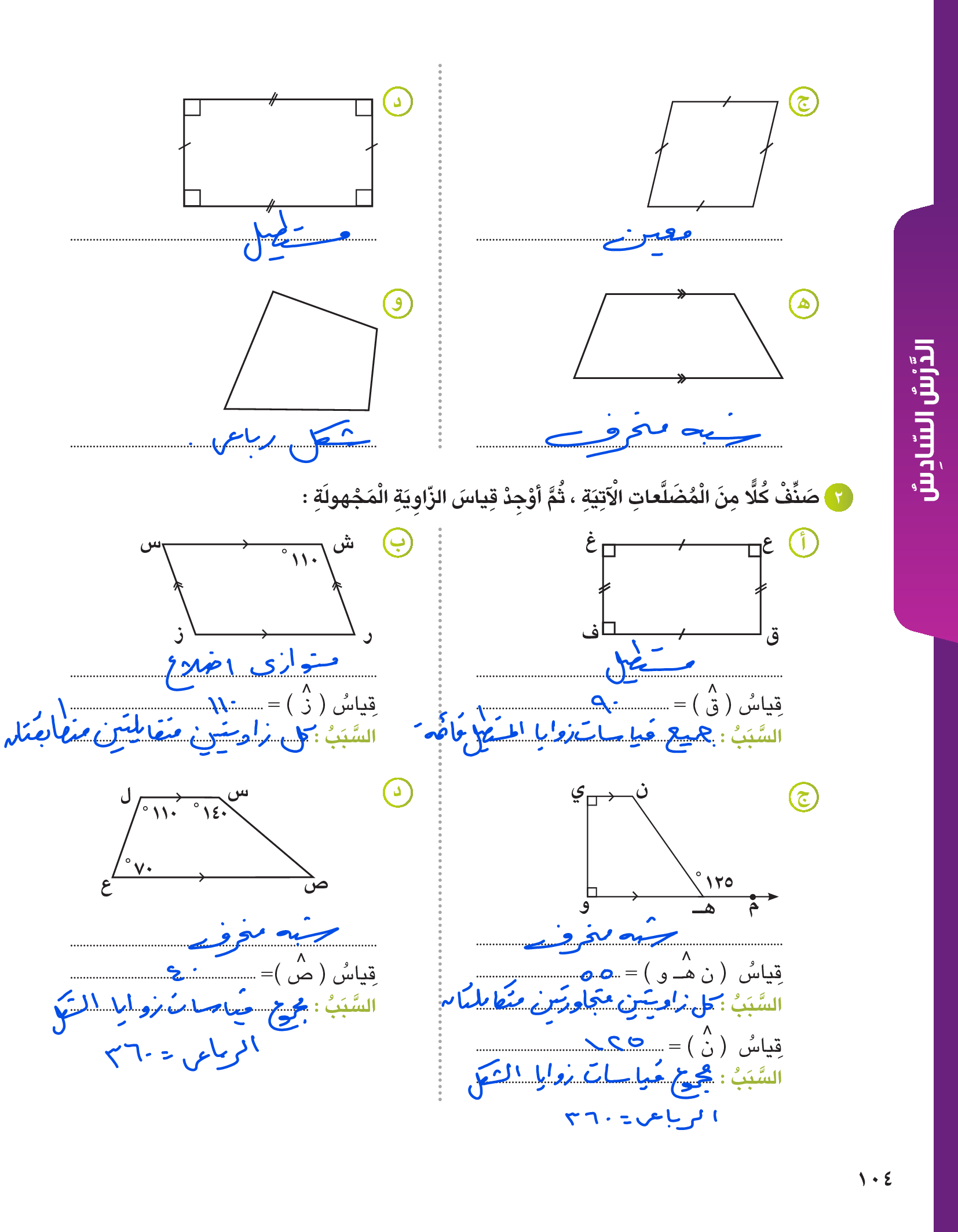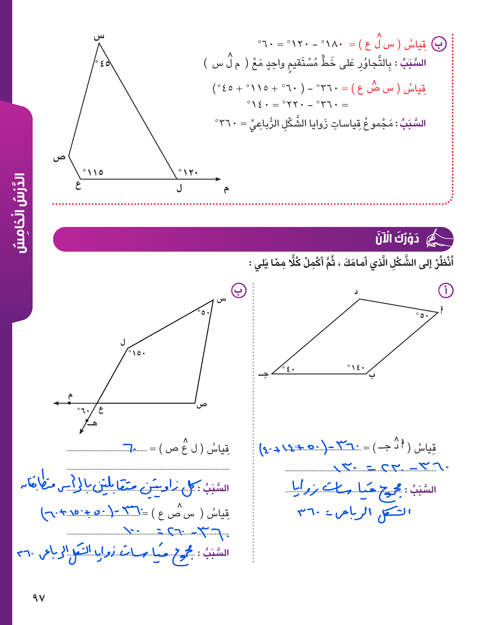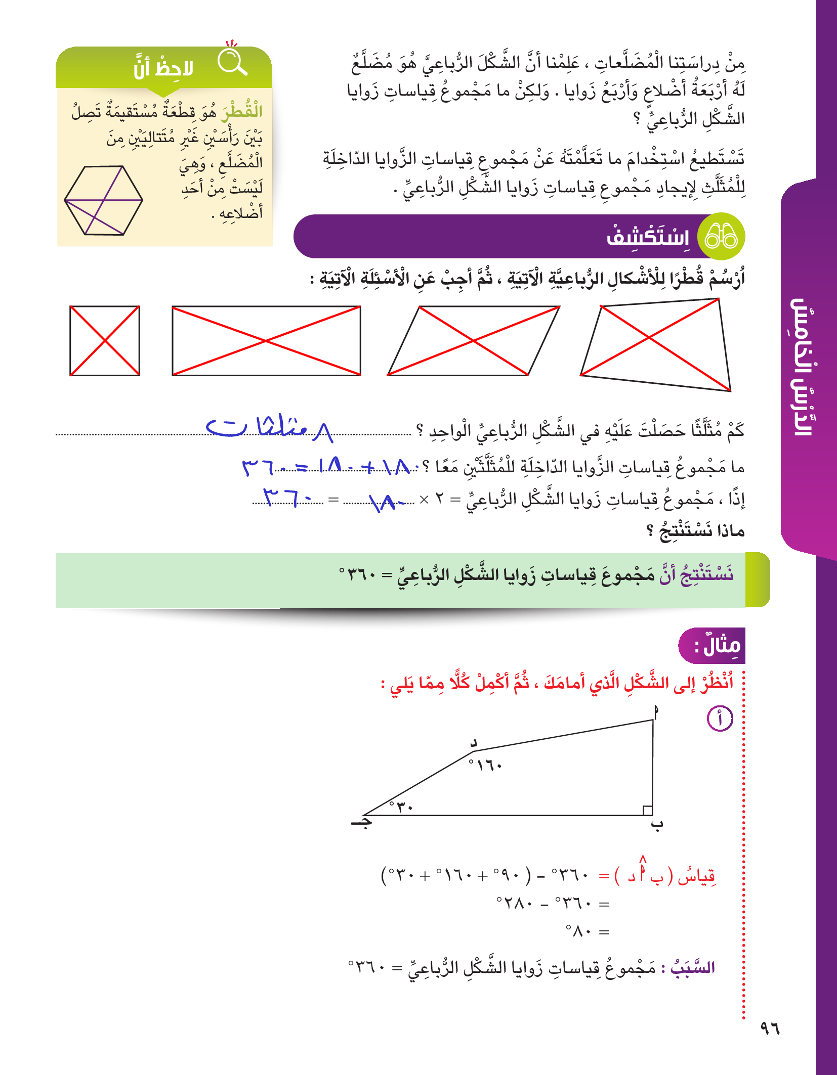 المضلعات ومجموع قياسات زوايا الشكل الرباعي