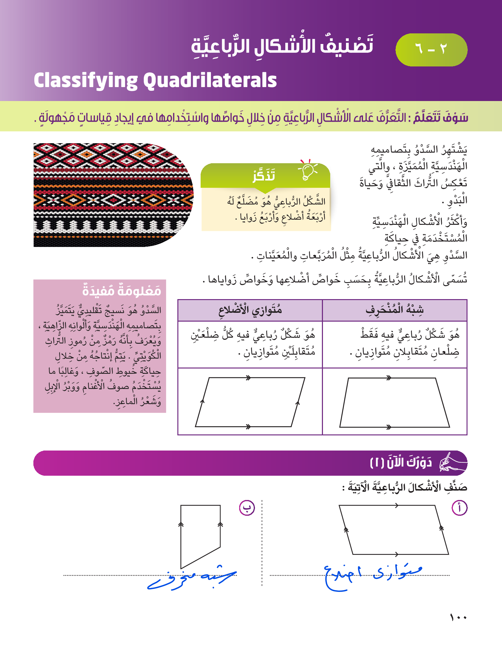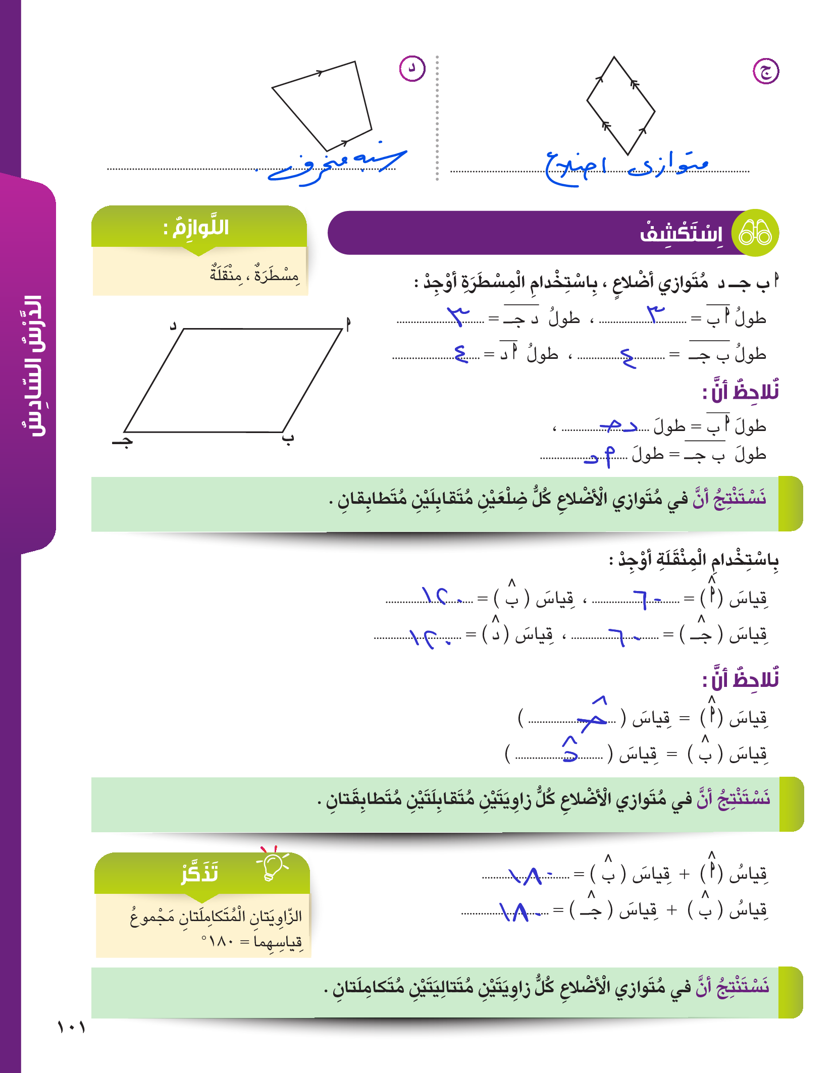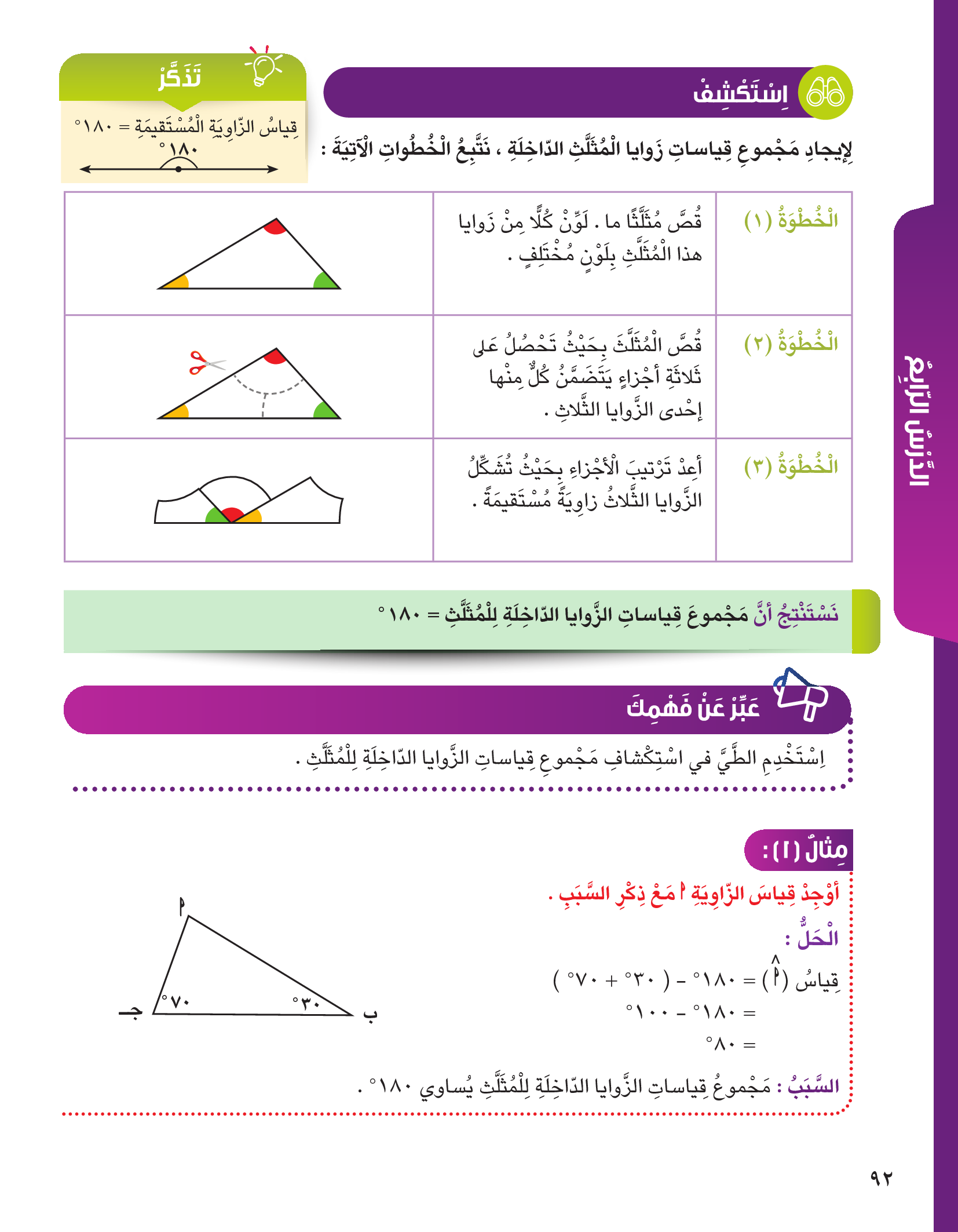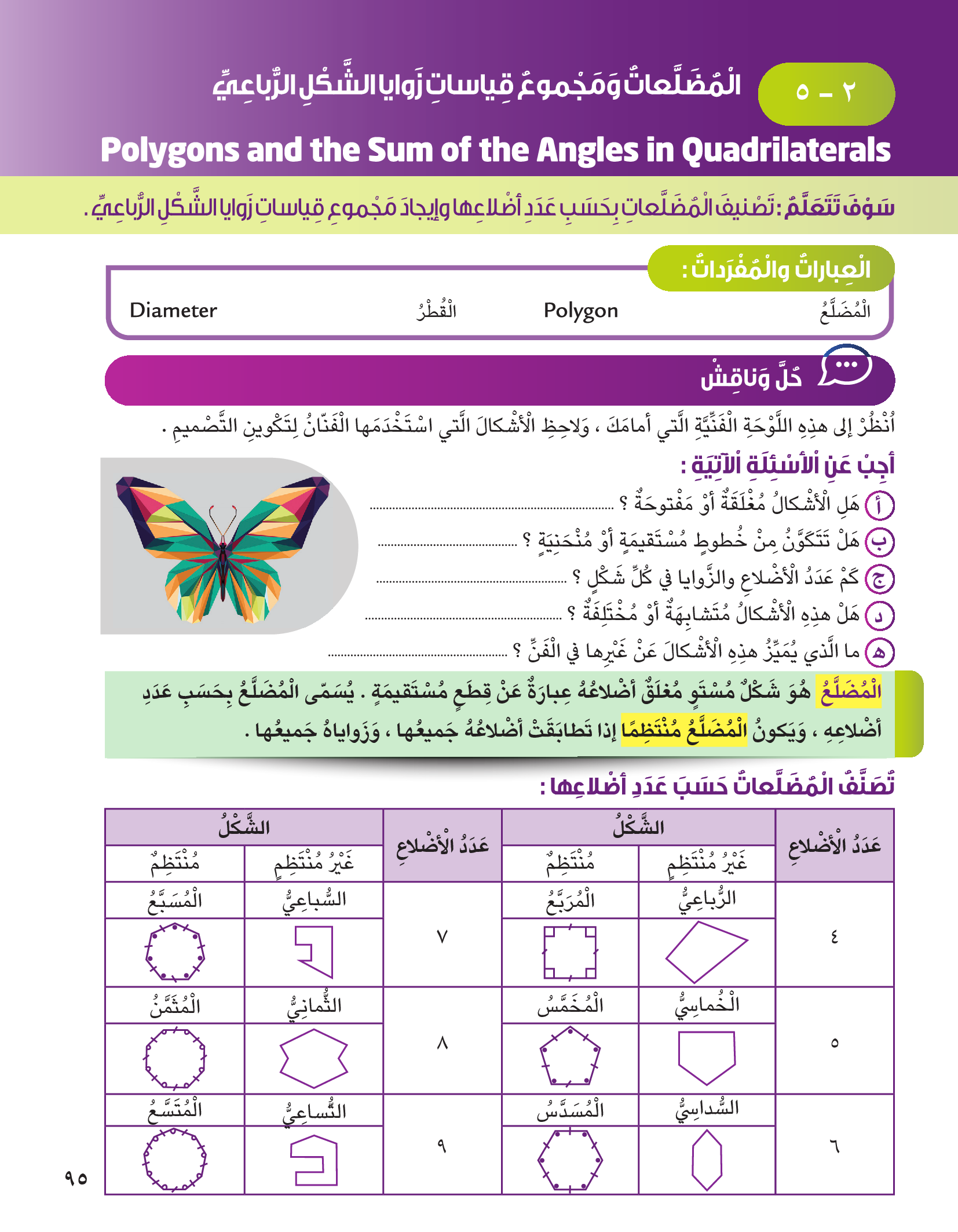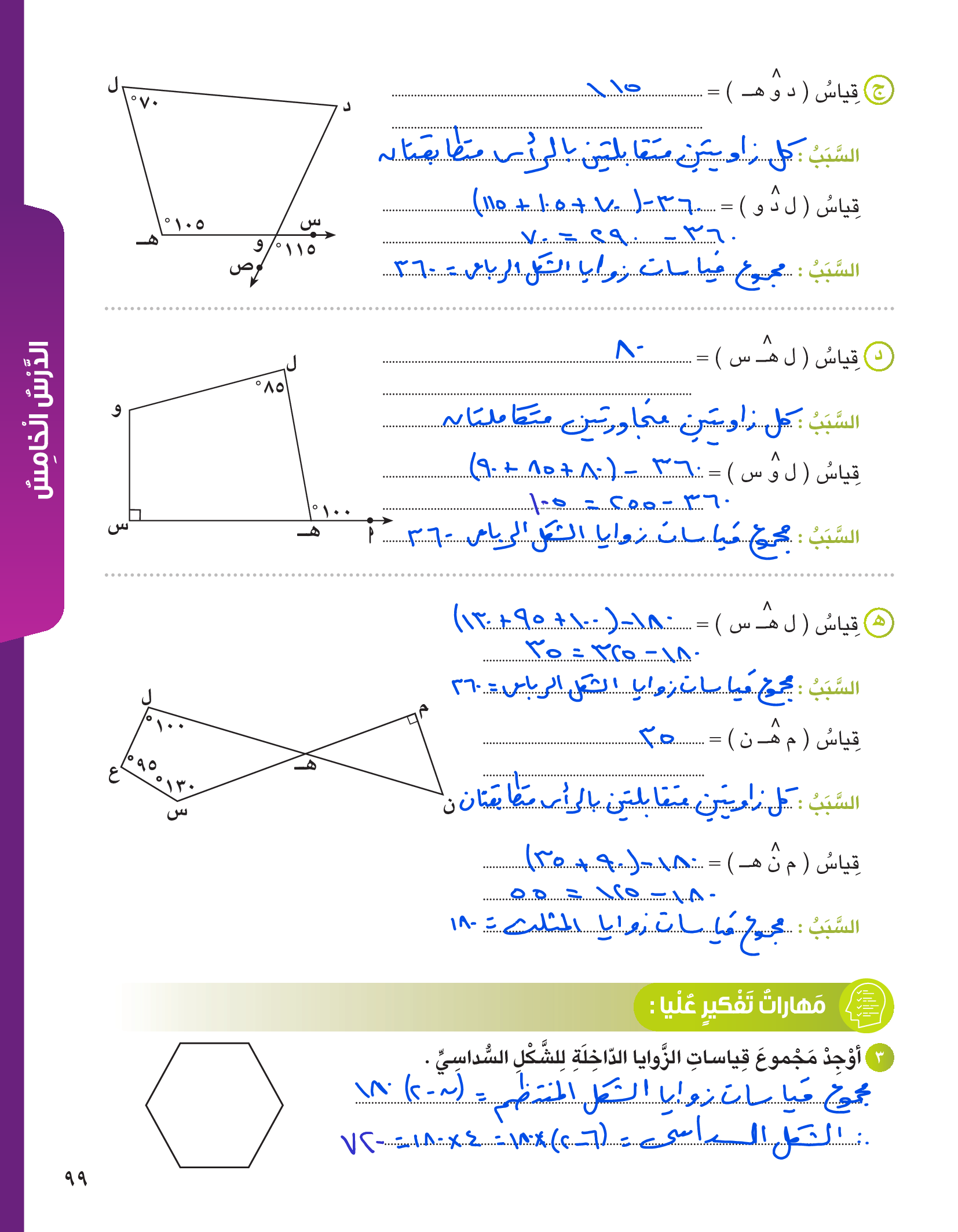 المضلعات ومجموع قياسات زوايا الشكل الرباعي