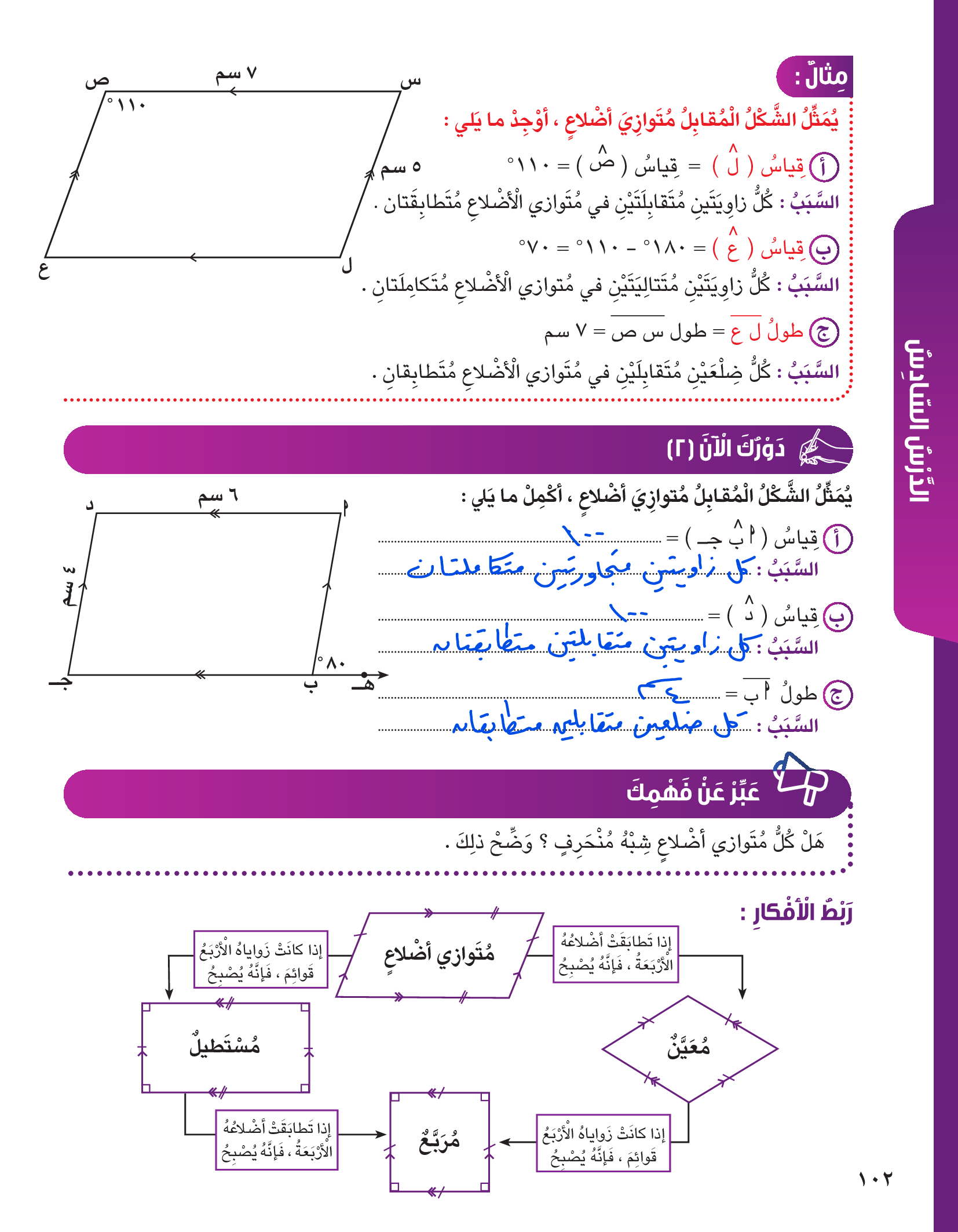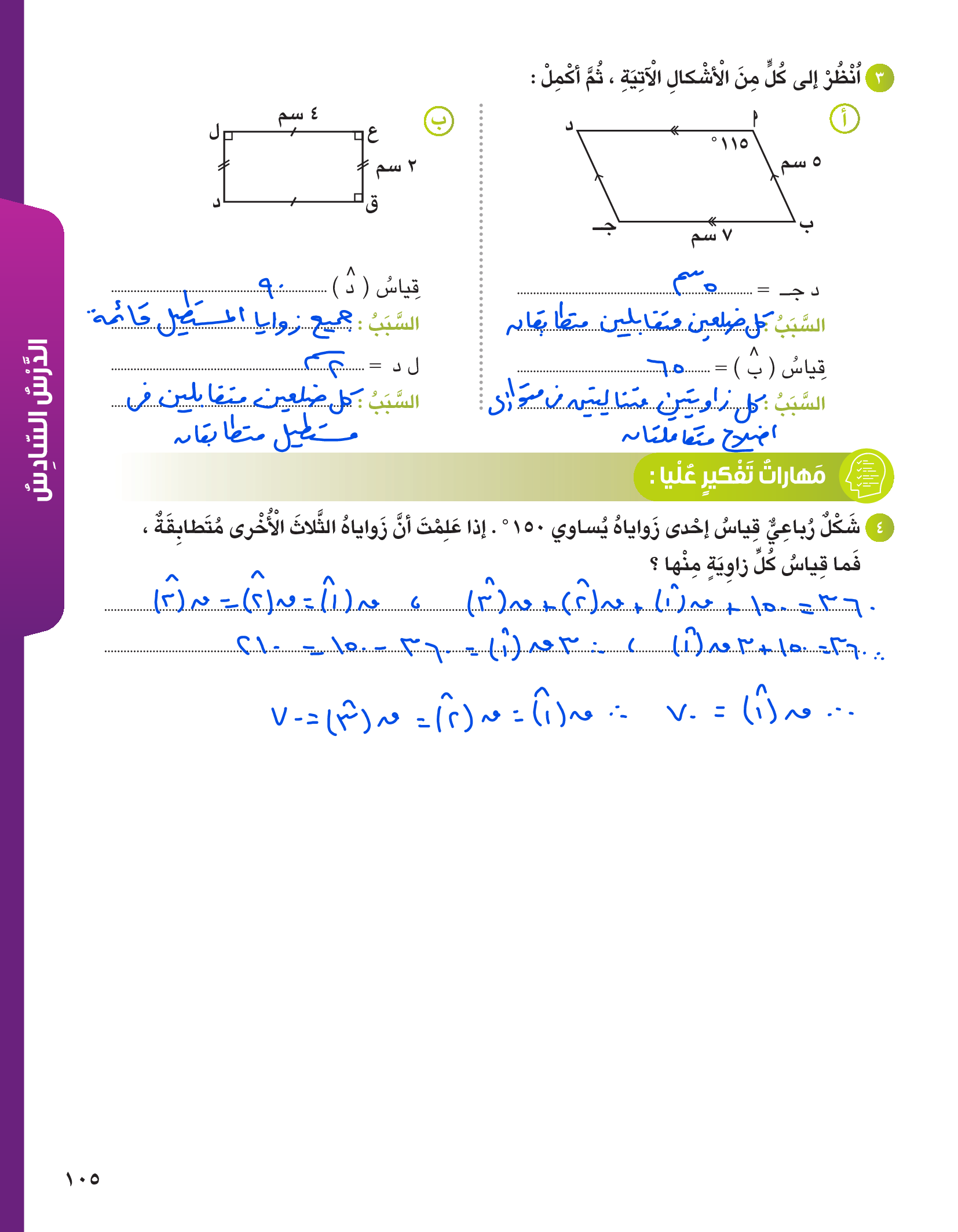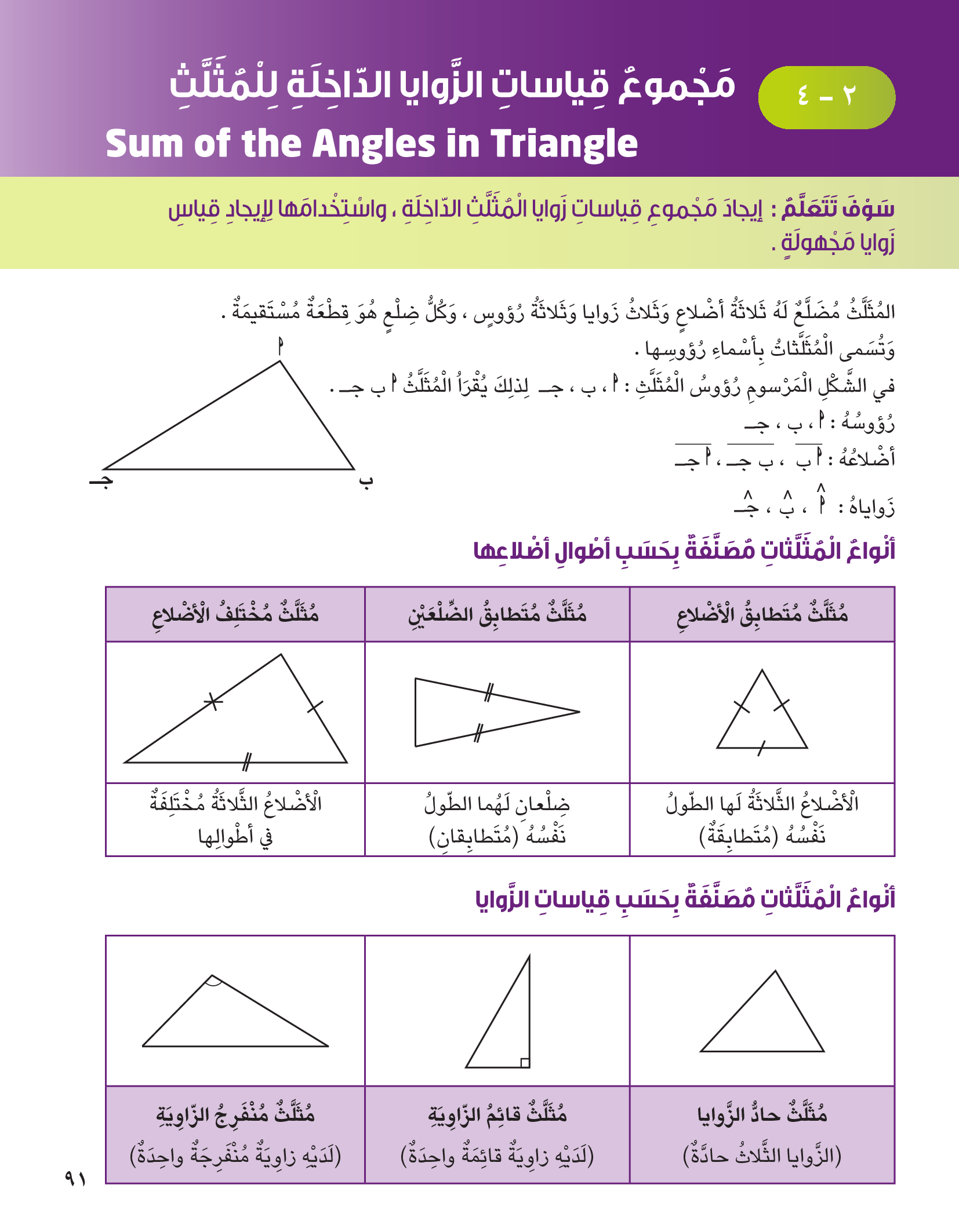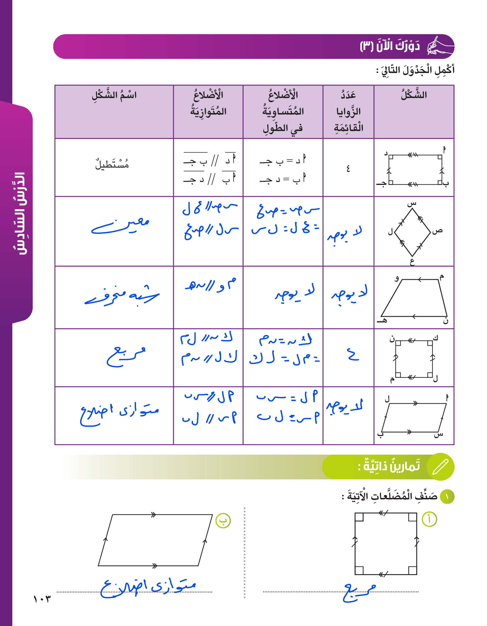 المضلعات ومجموع قياسات زوايا الشكل الرباعي