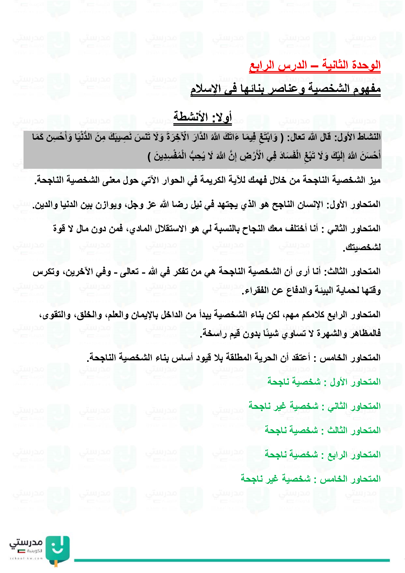 مفهوم الشخصية وعناصر بنائها في الاسلام