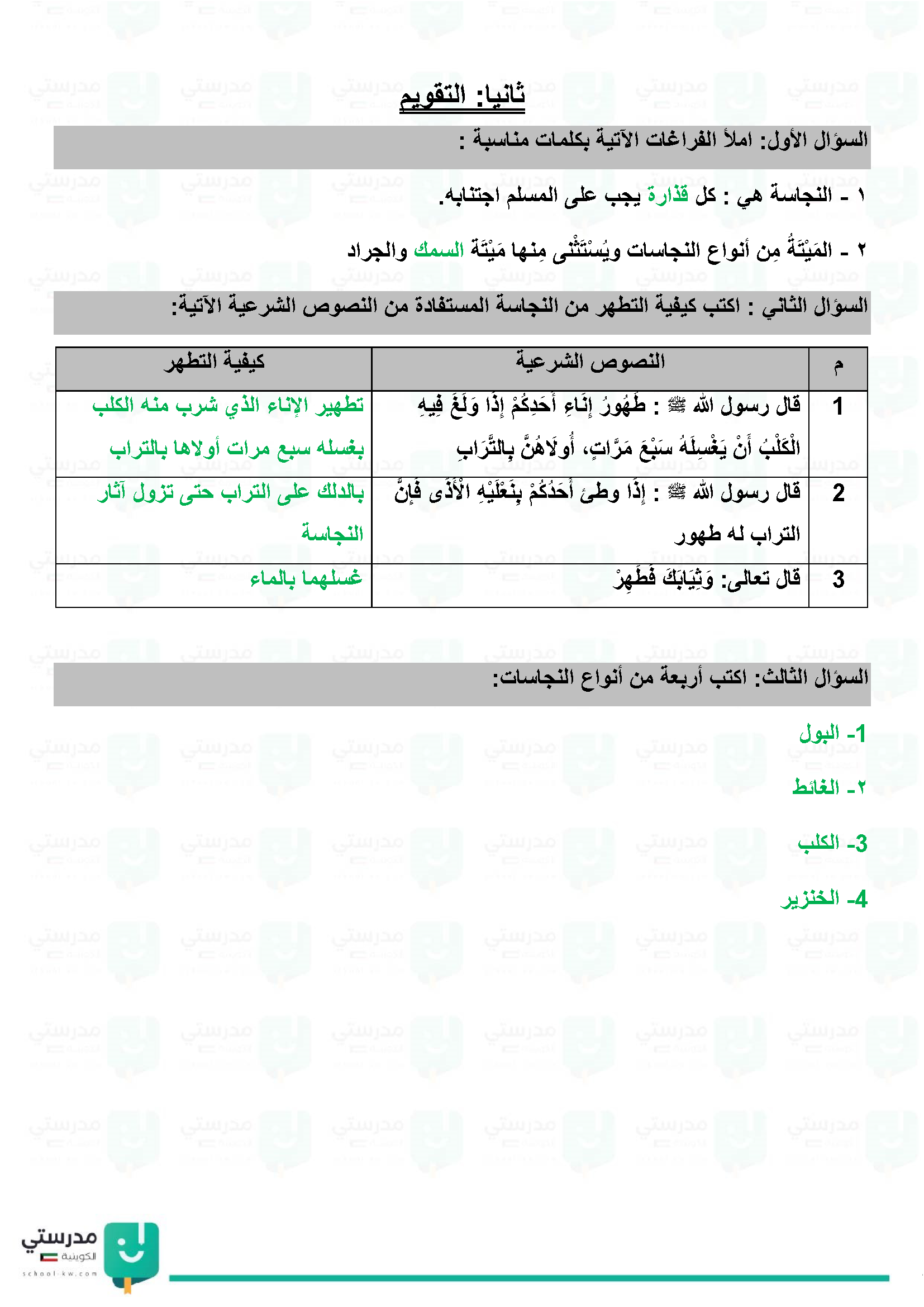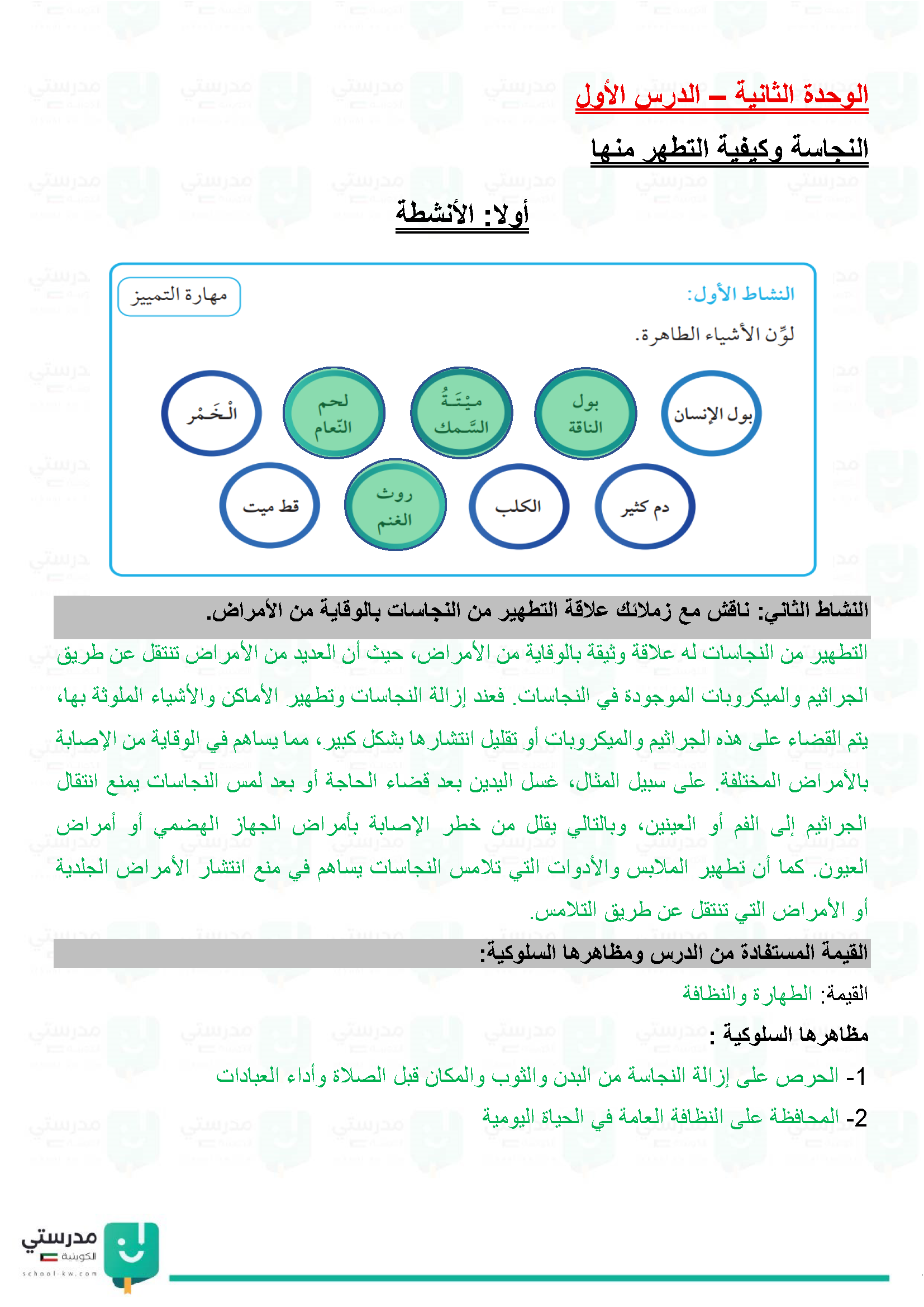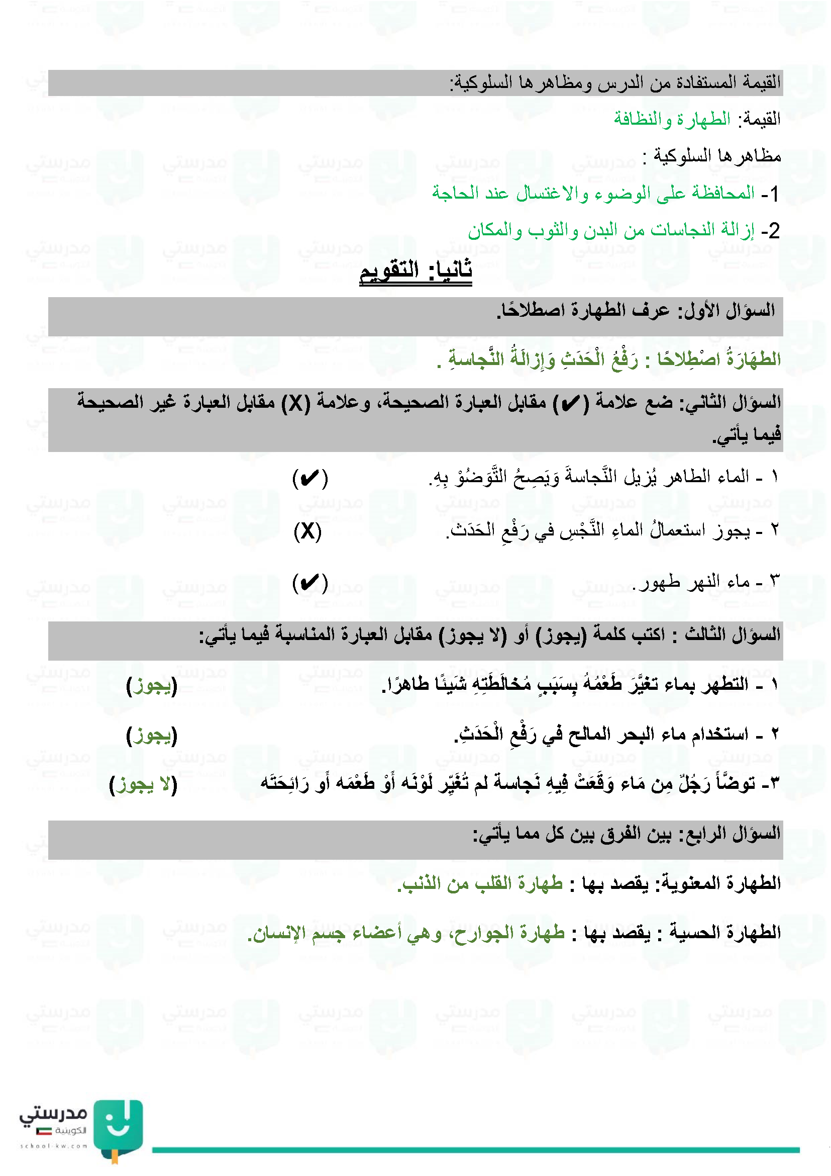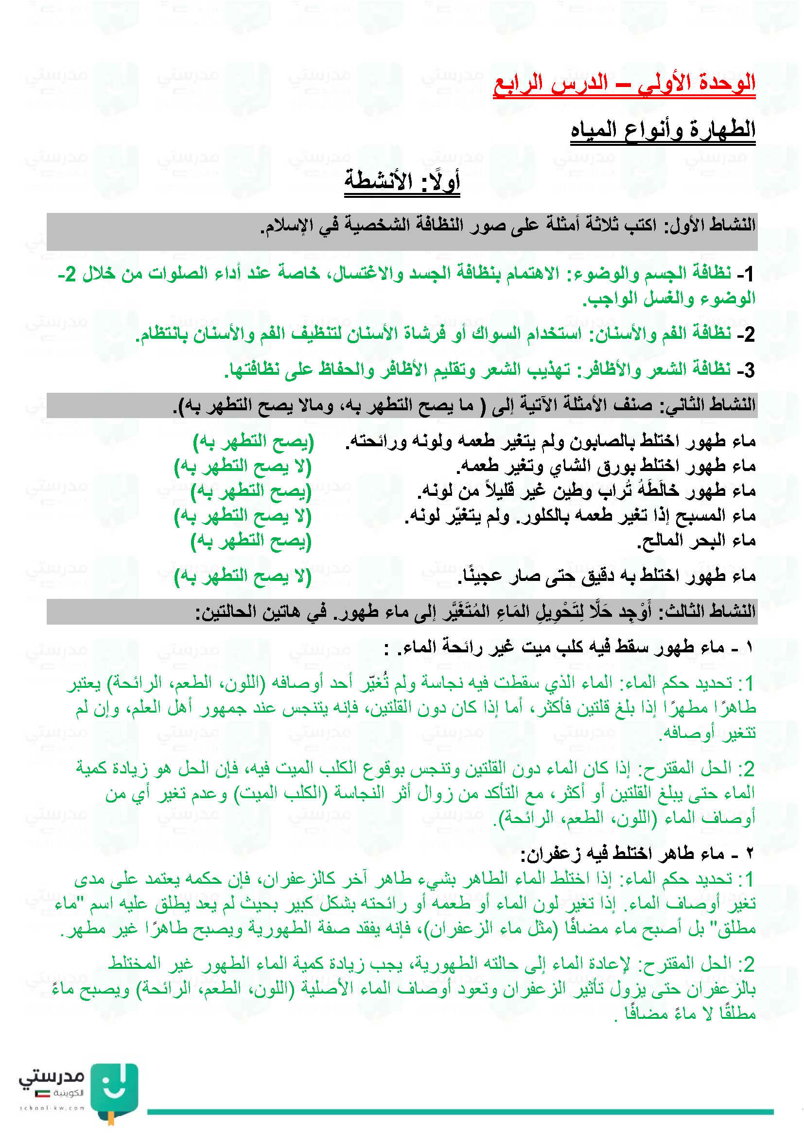 الطهارة وأنواع المياه