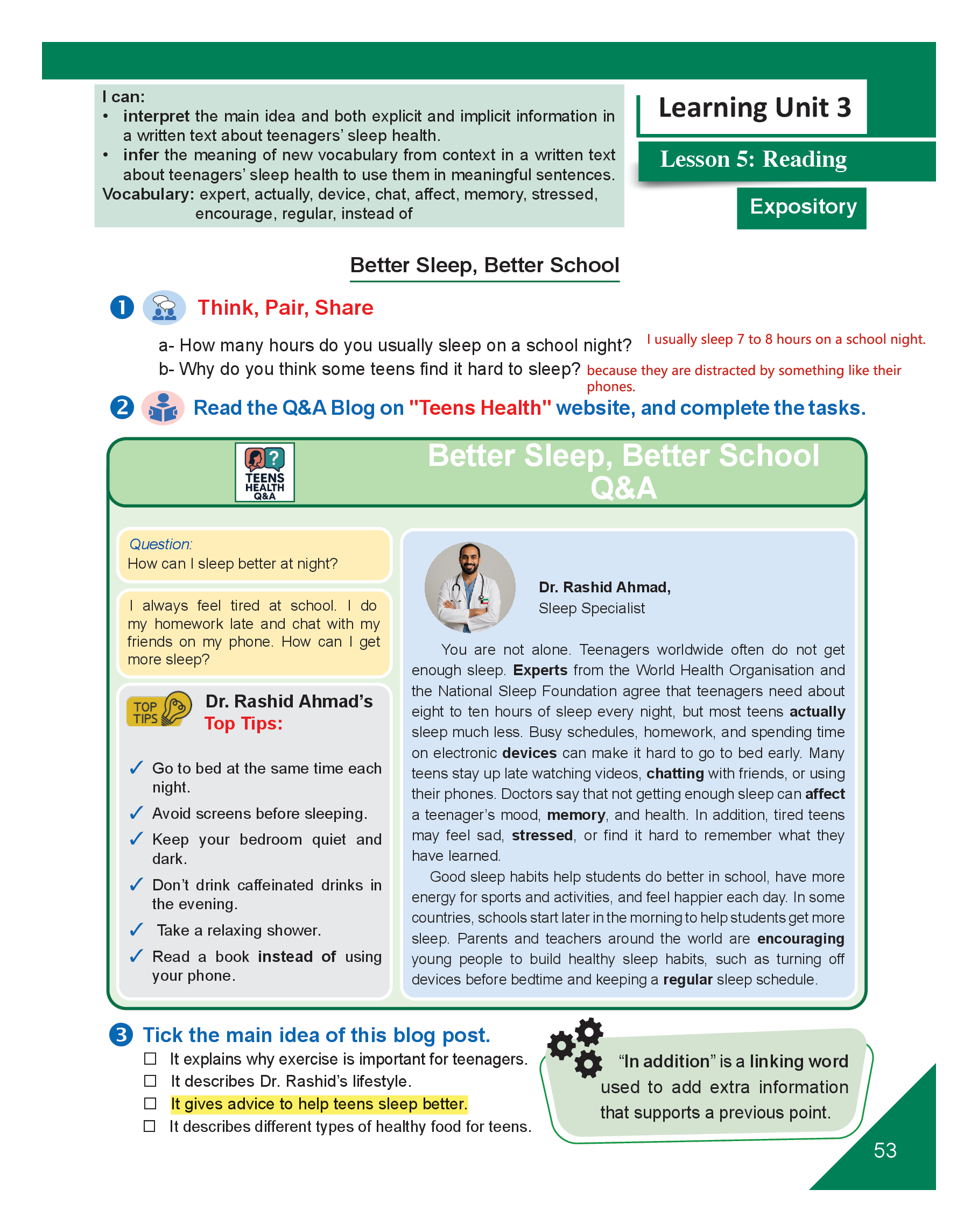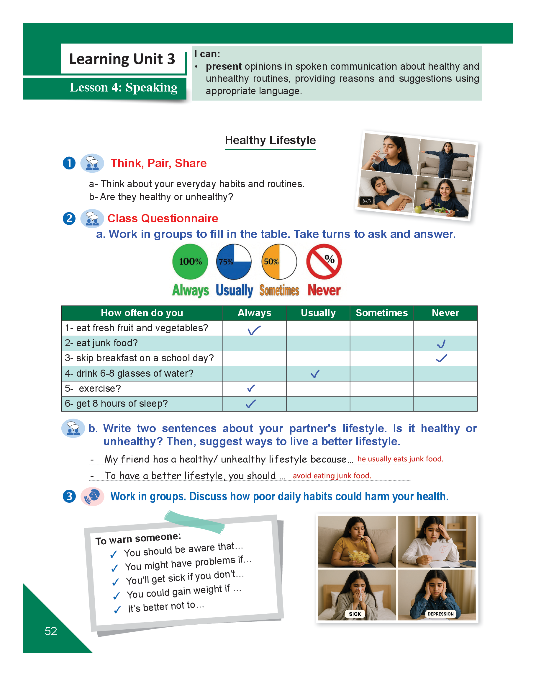 الوحدة الثالثة Healthy Inside, Healthy Outside