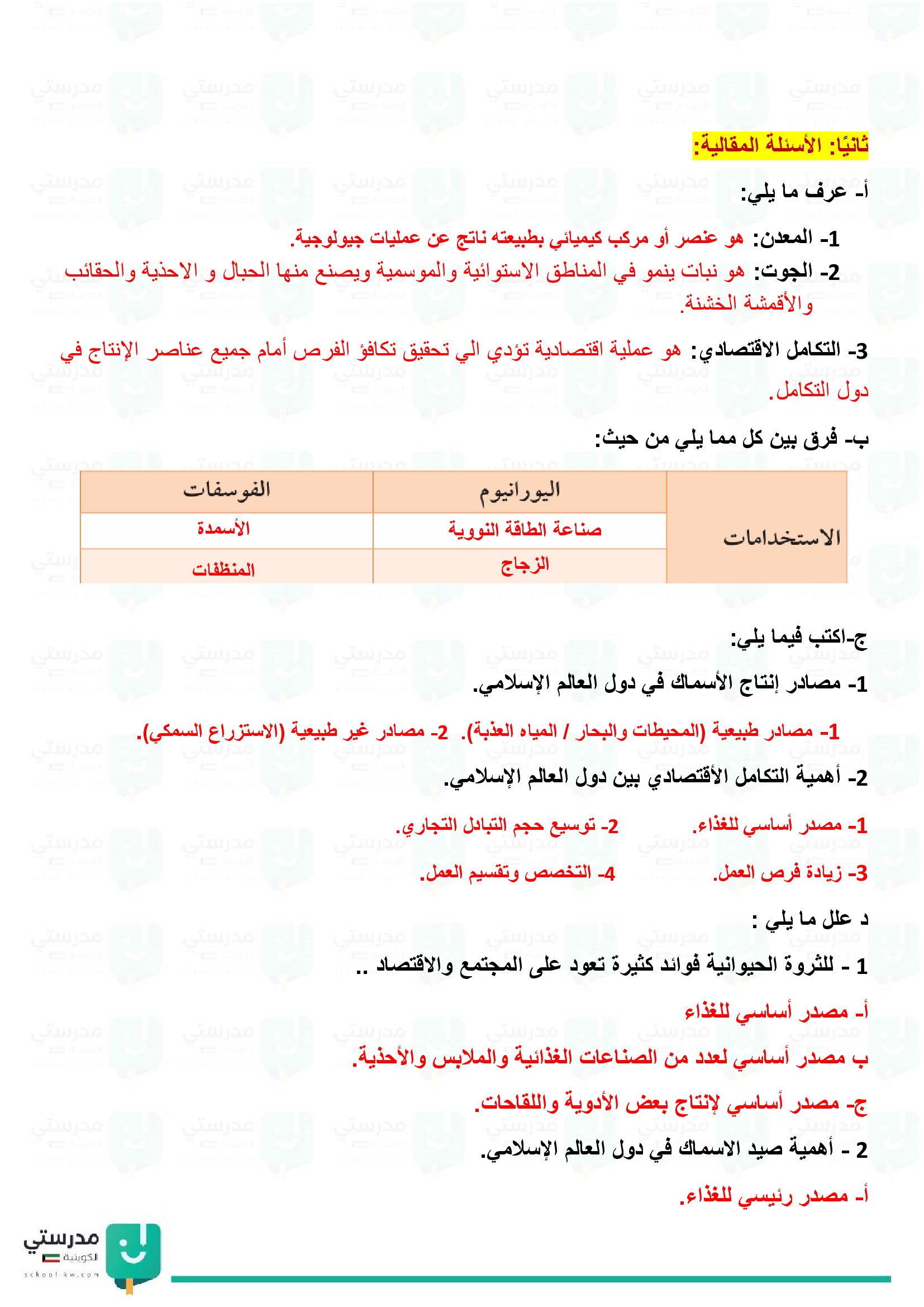 الموارد الطبيعية والتكامل الاقتصادي بين دول العالم الاسلامي