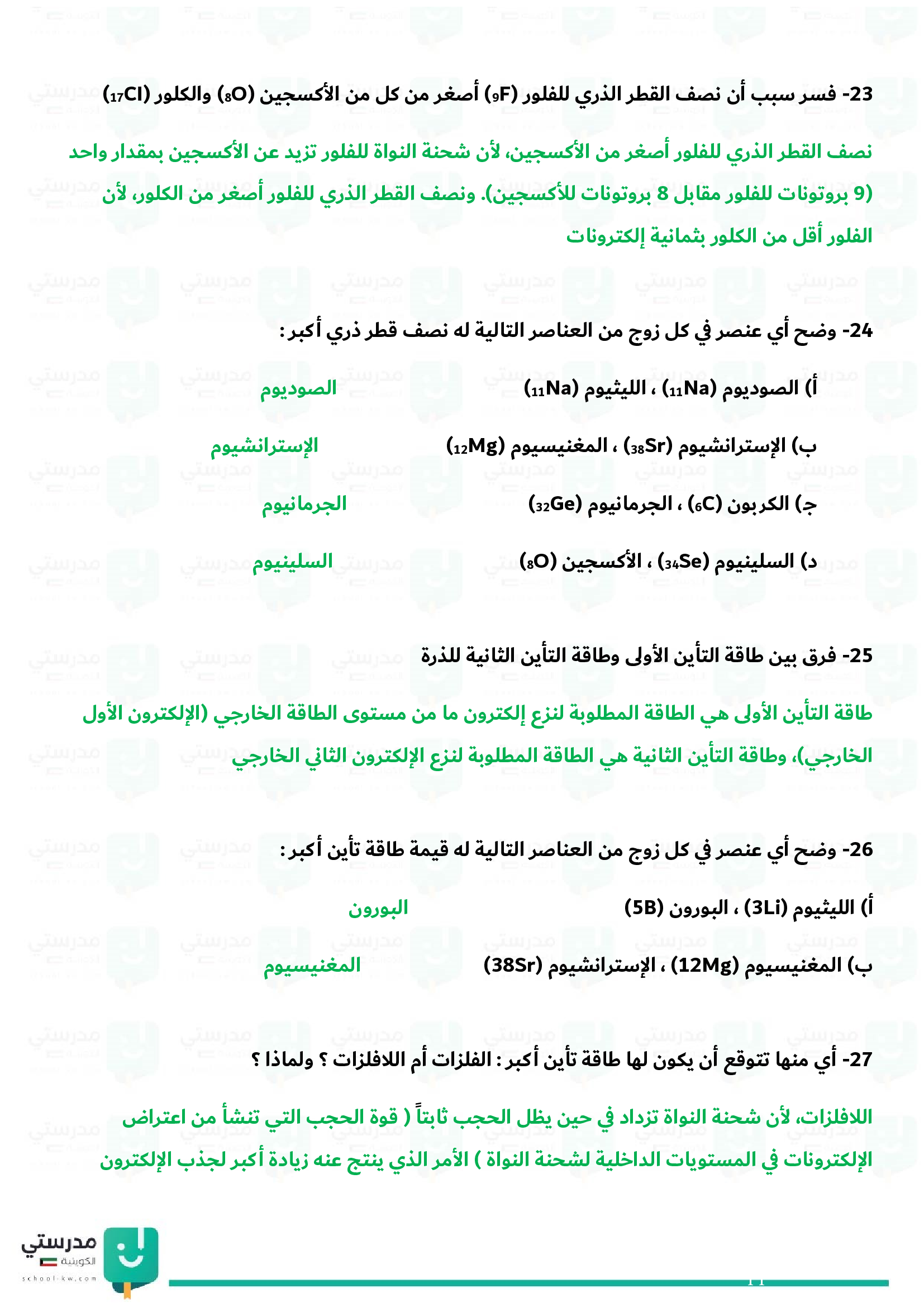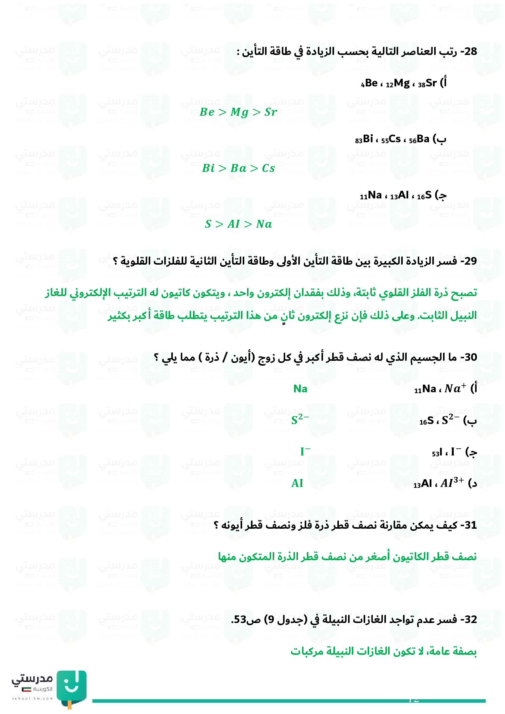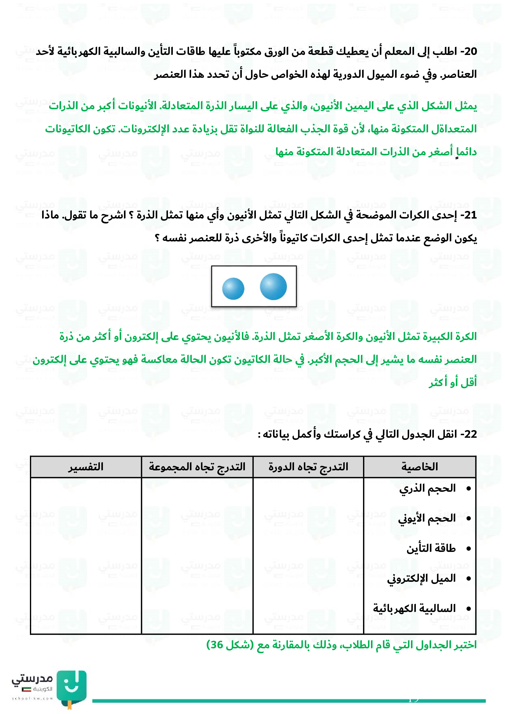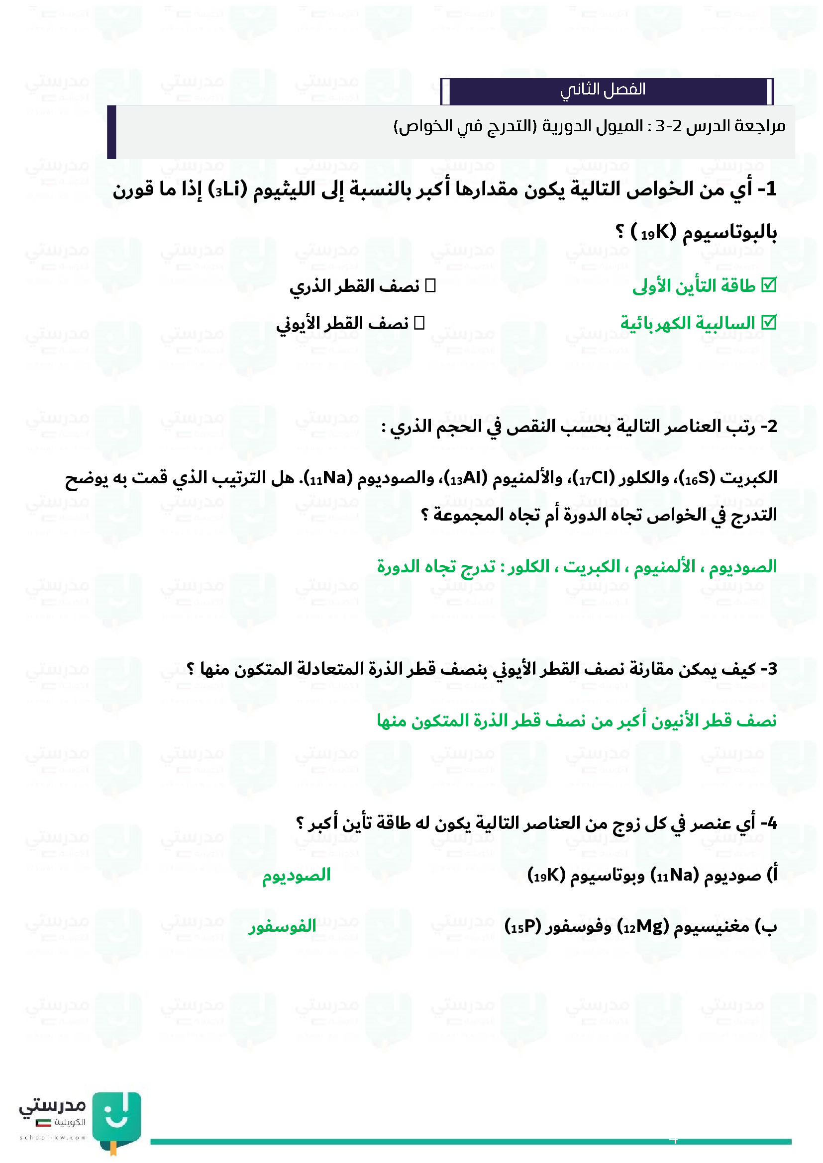 الميول الدورية (التدرج في الخواص)