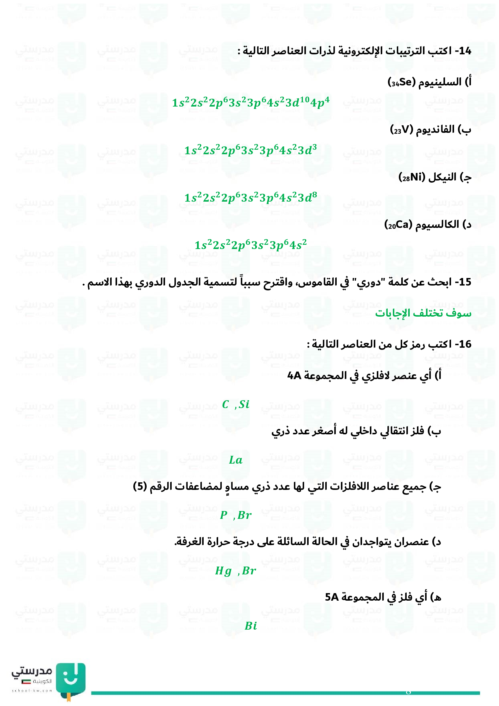 (p) عناصر القطاع