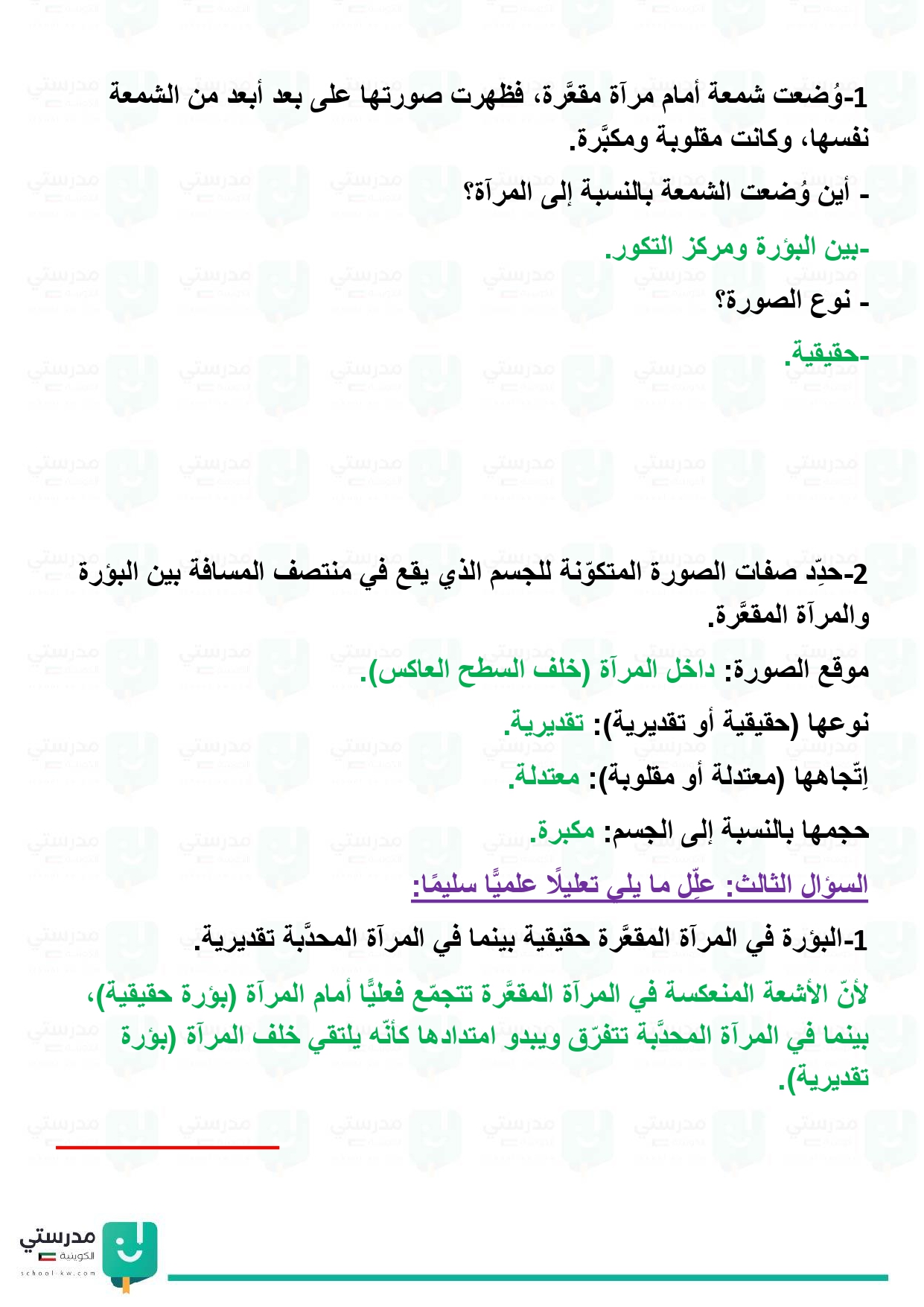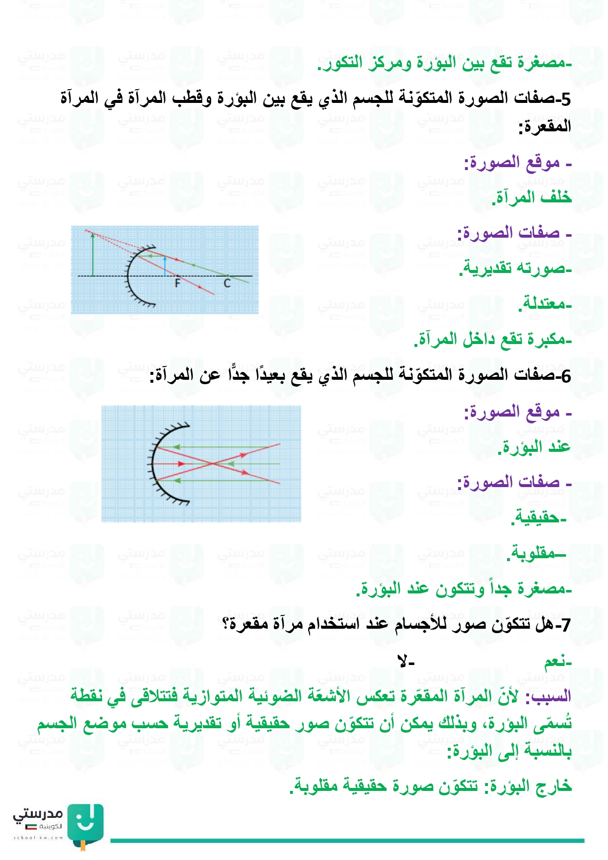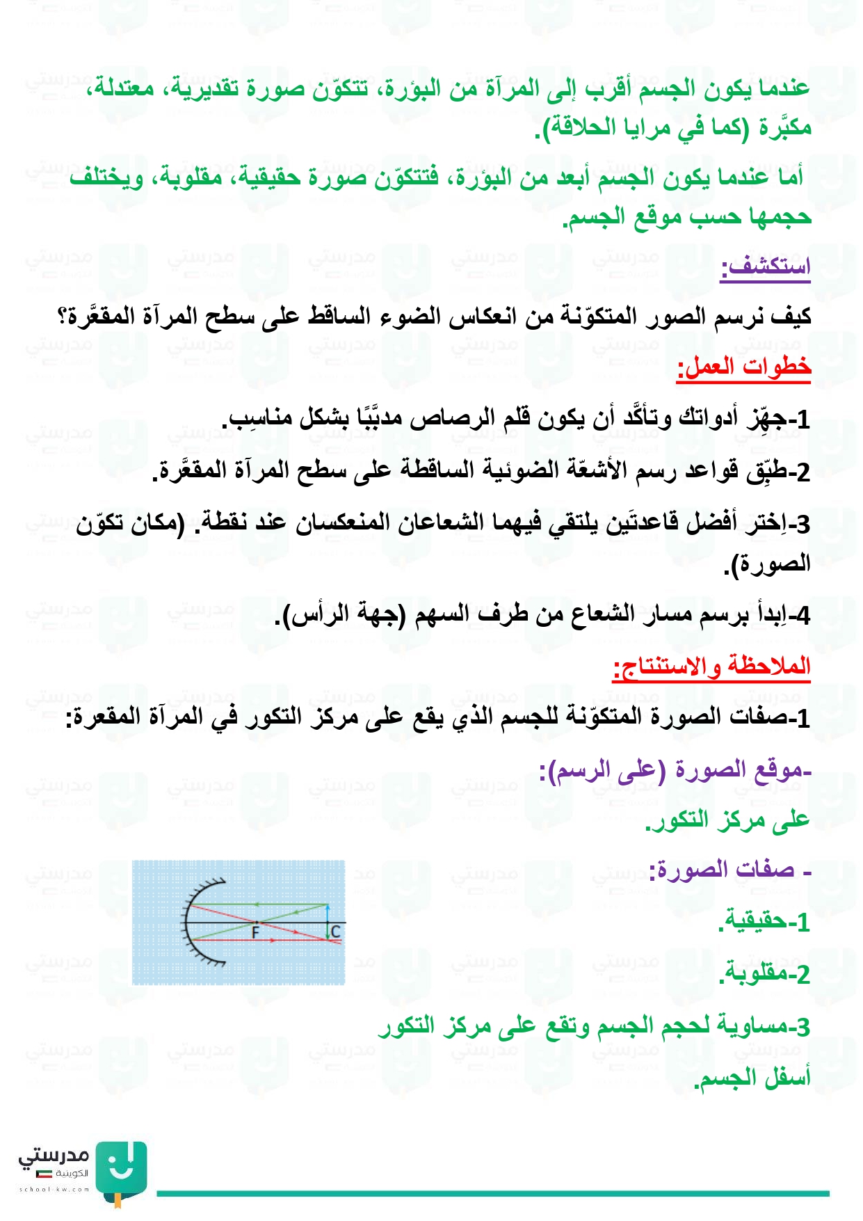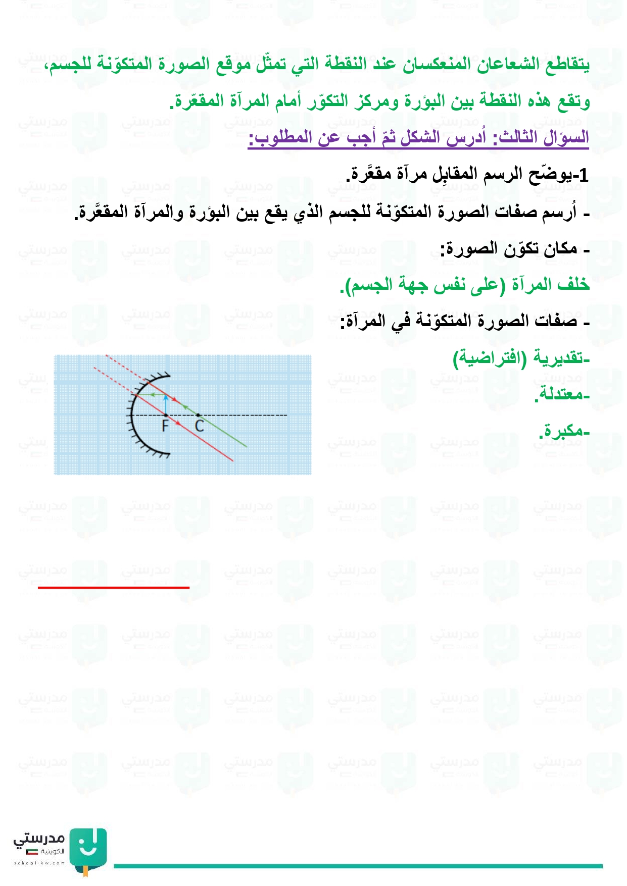 مسار الأشعة المنعكسة عن سطح المرآة المقعرة والمحدبة