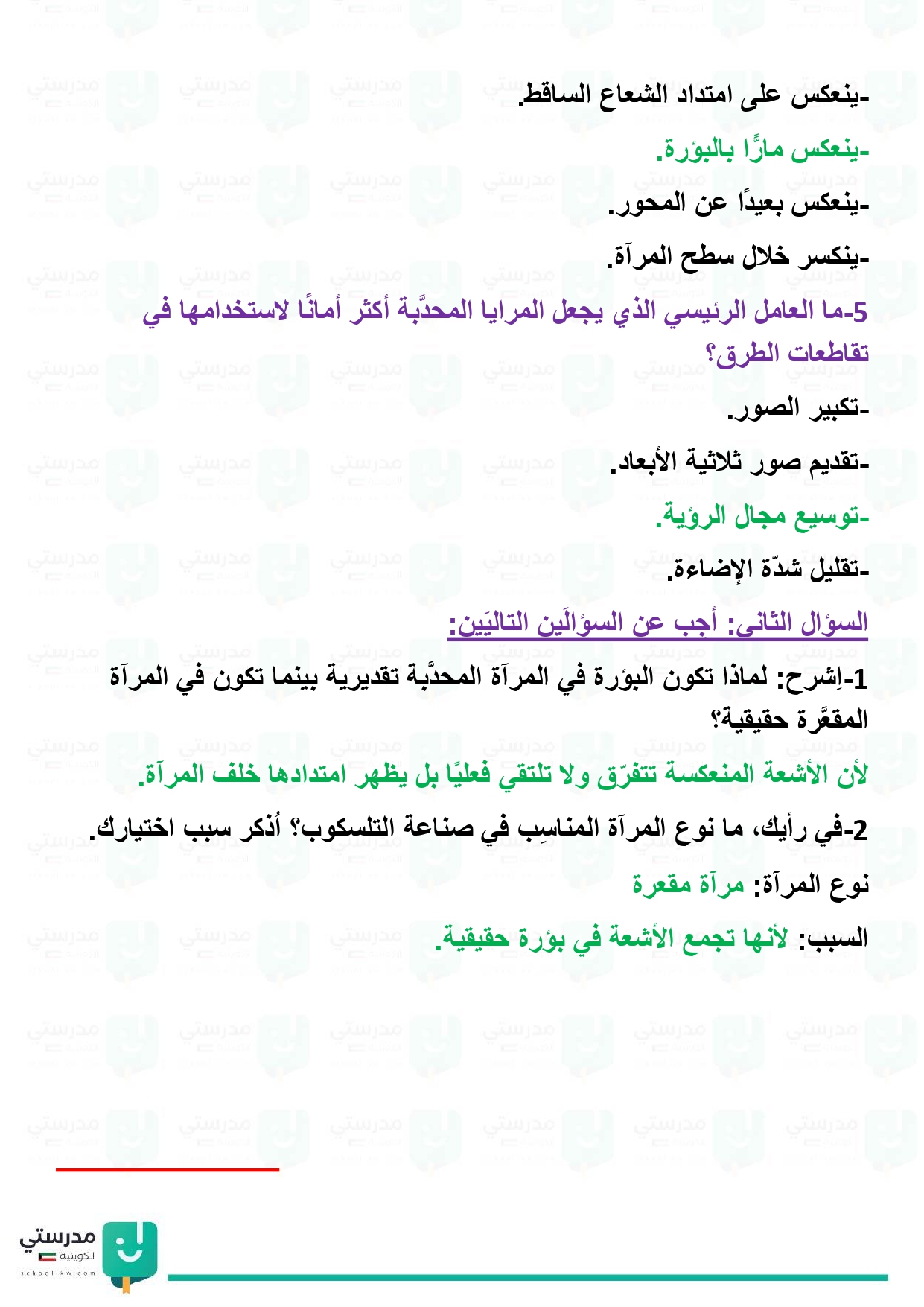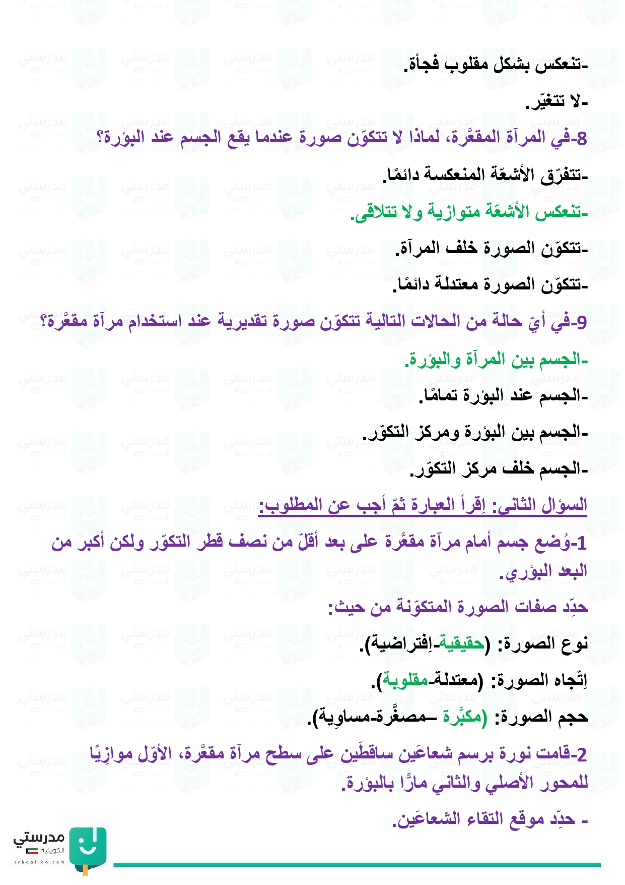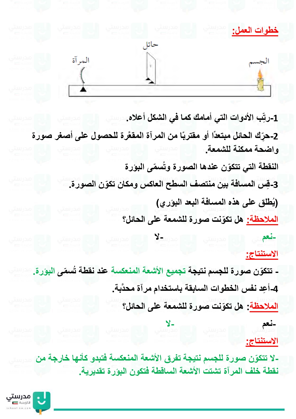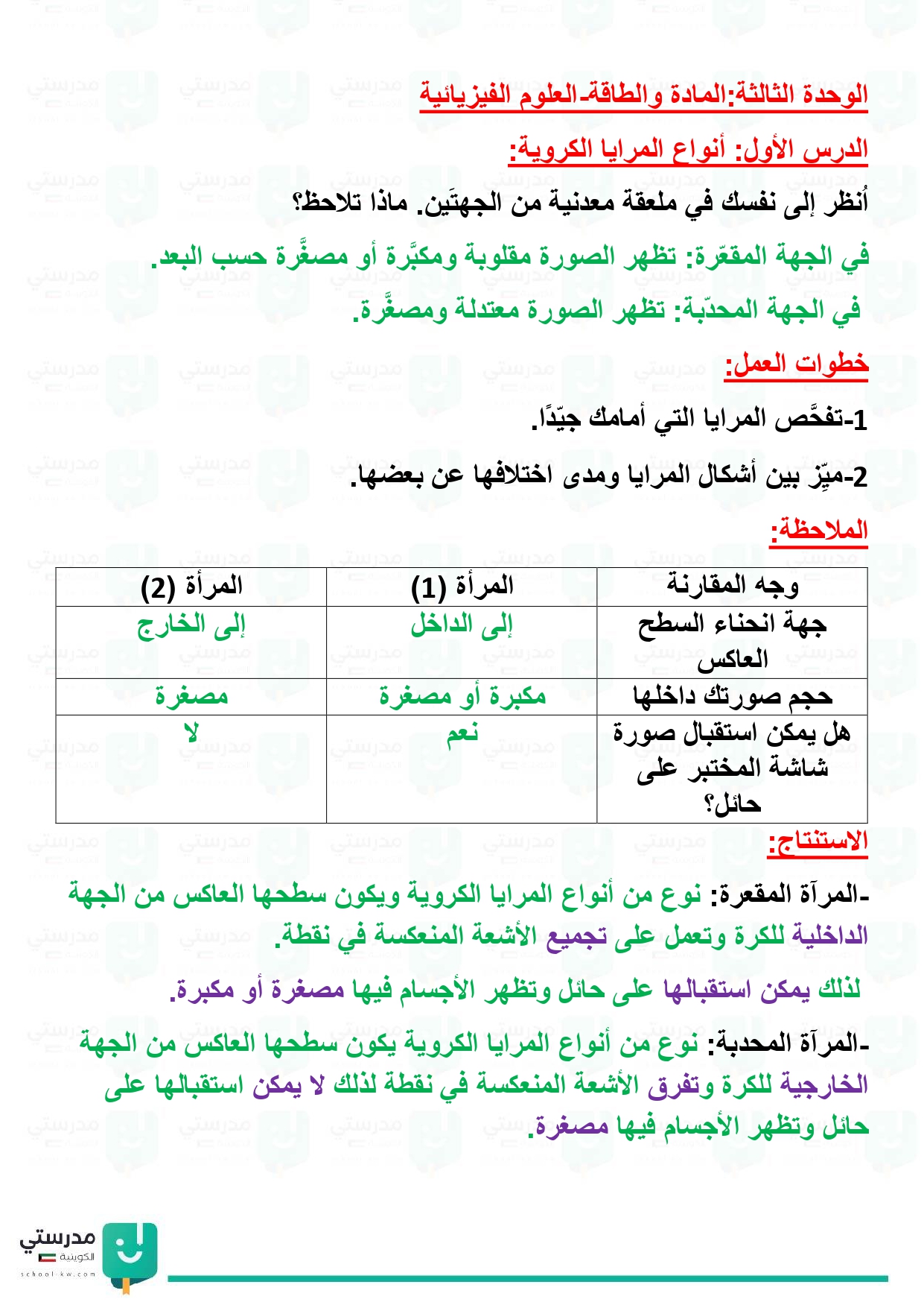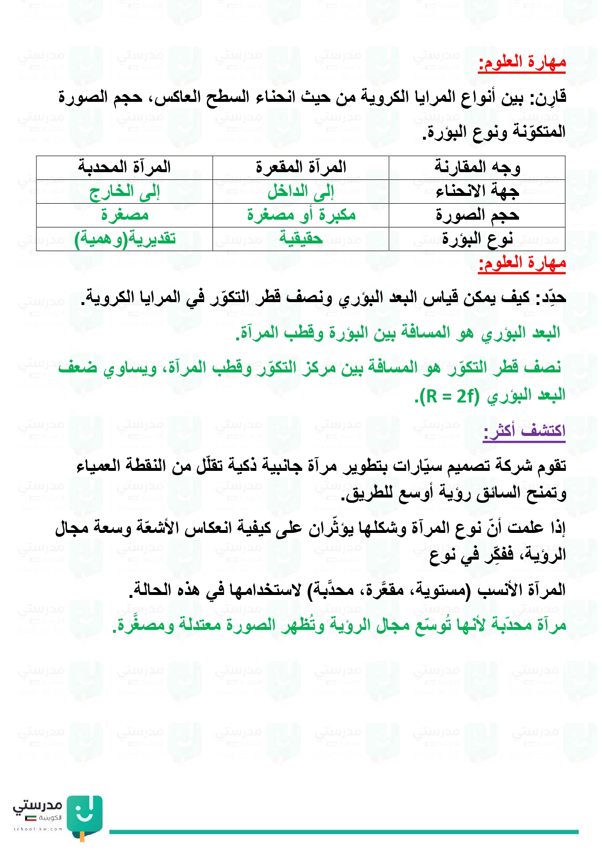 مسار الأشعة المنعكسة عن سطح المرآة المقعرة والمحدبة