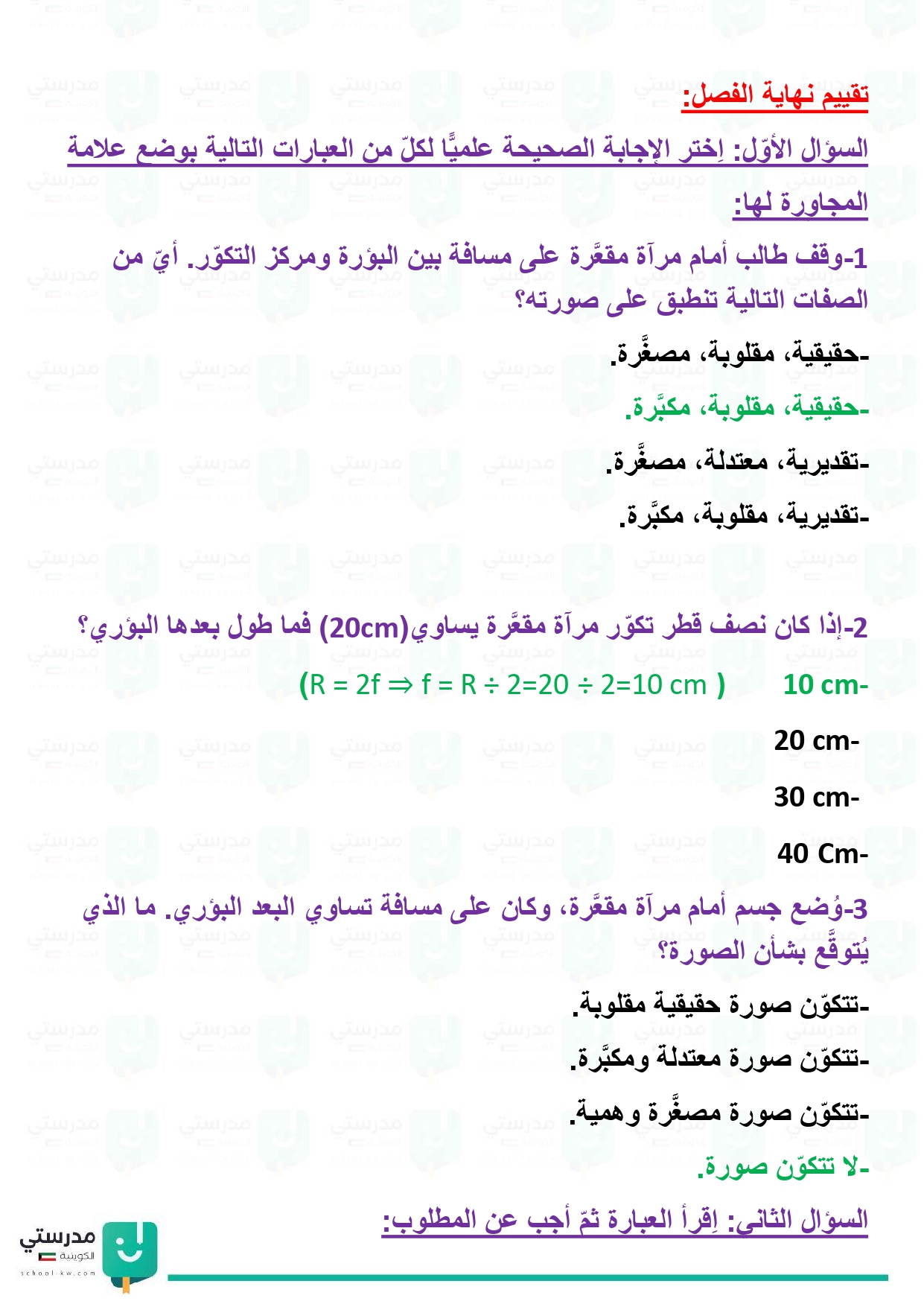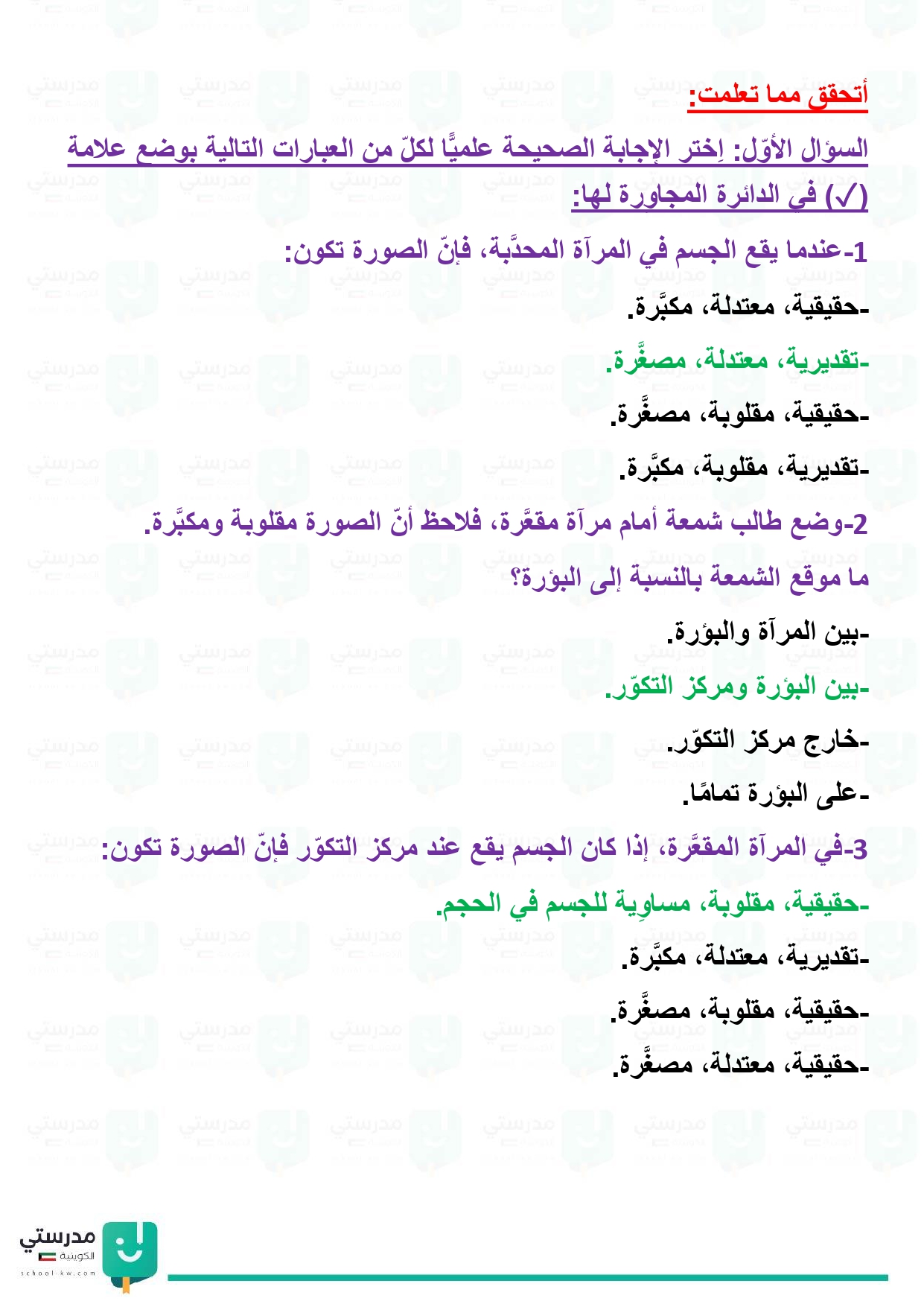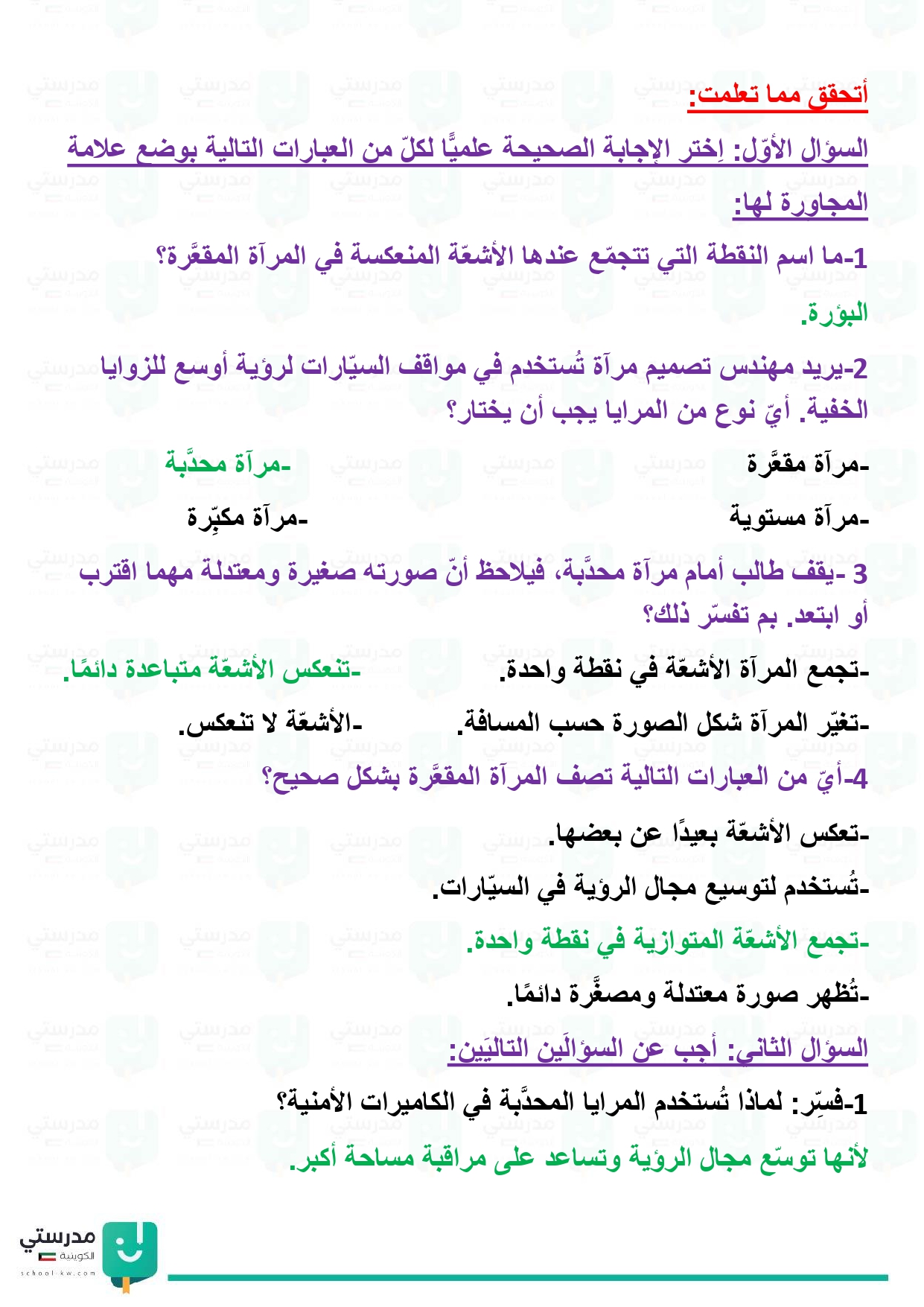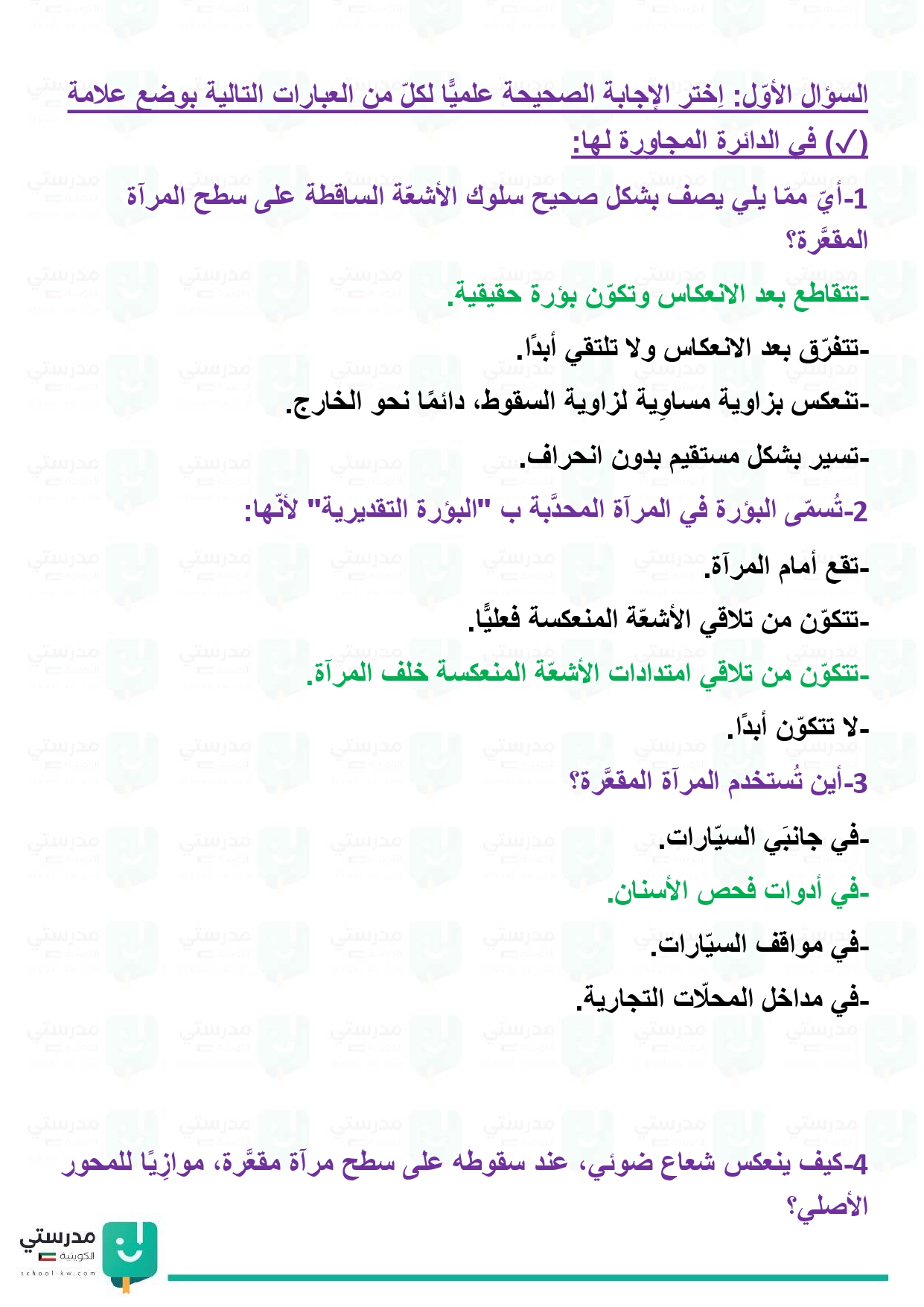 مسار الأشعة المنعكسة عن سطح المرآة المقعرة والمحدبة