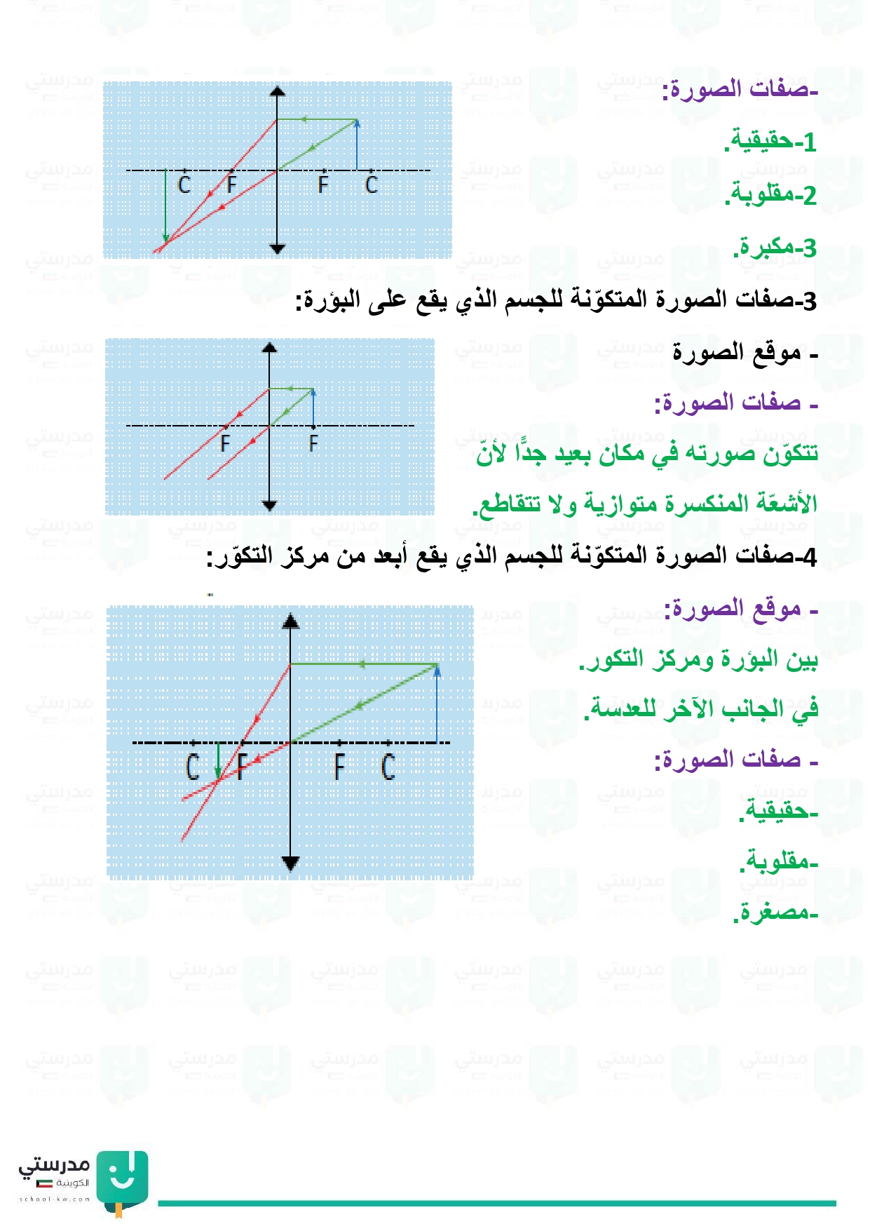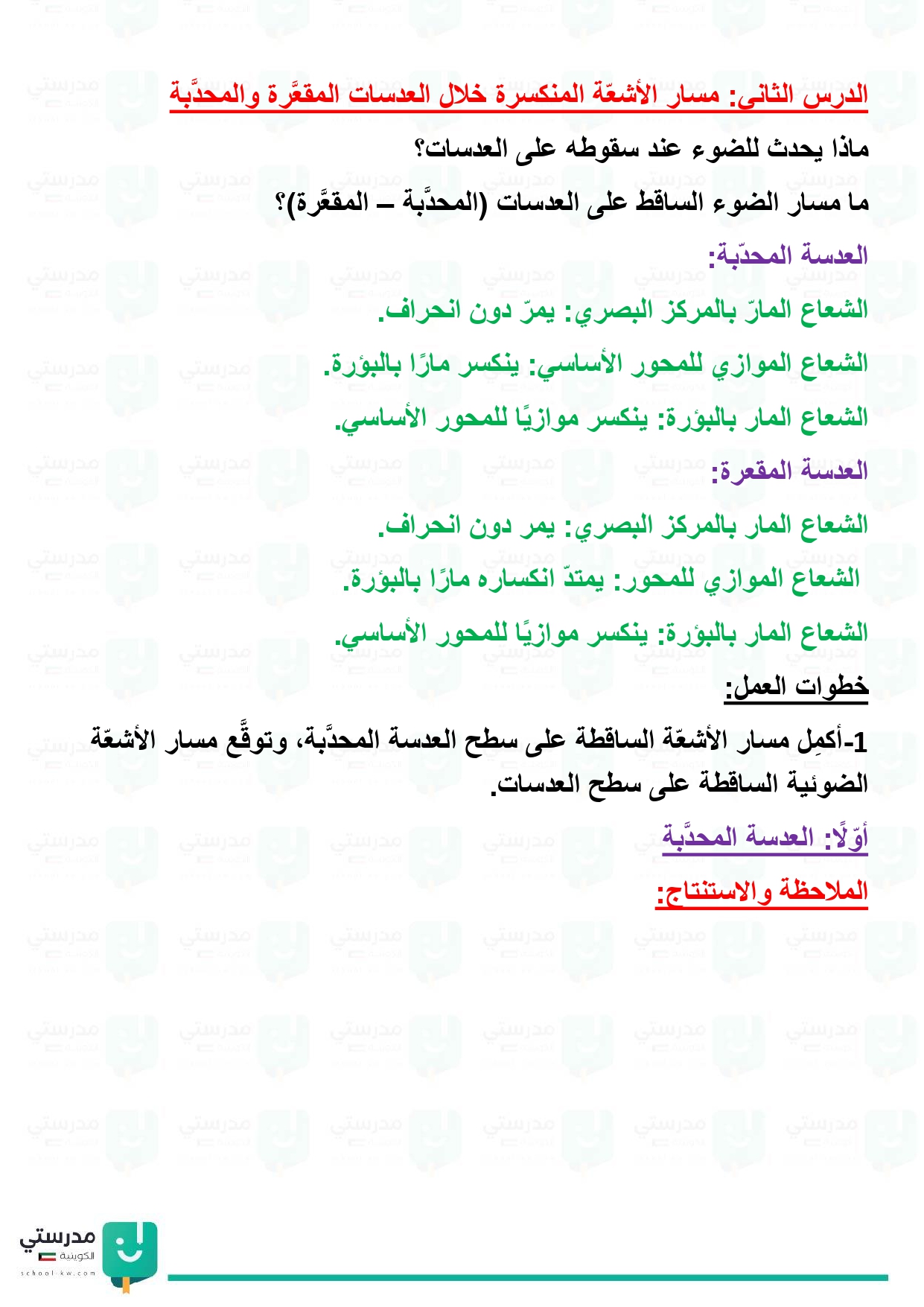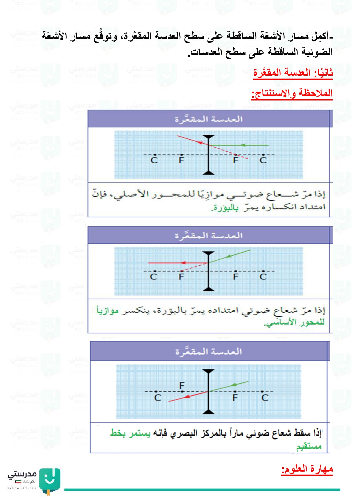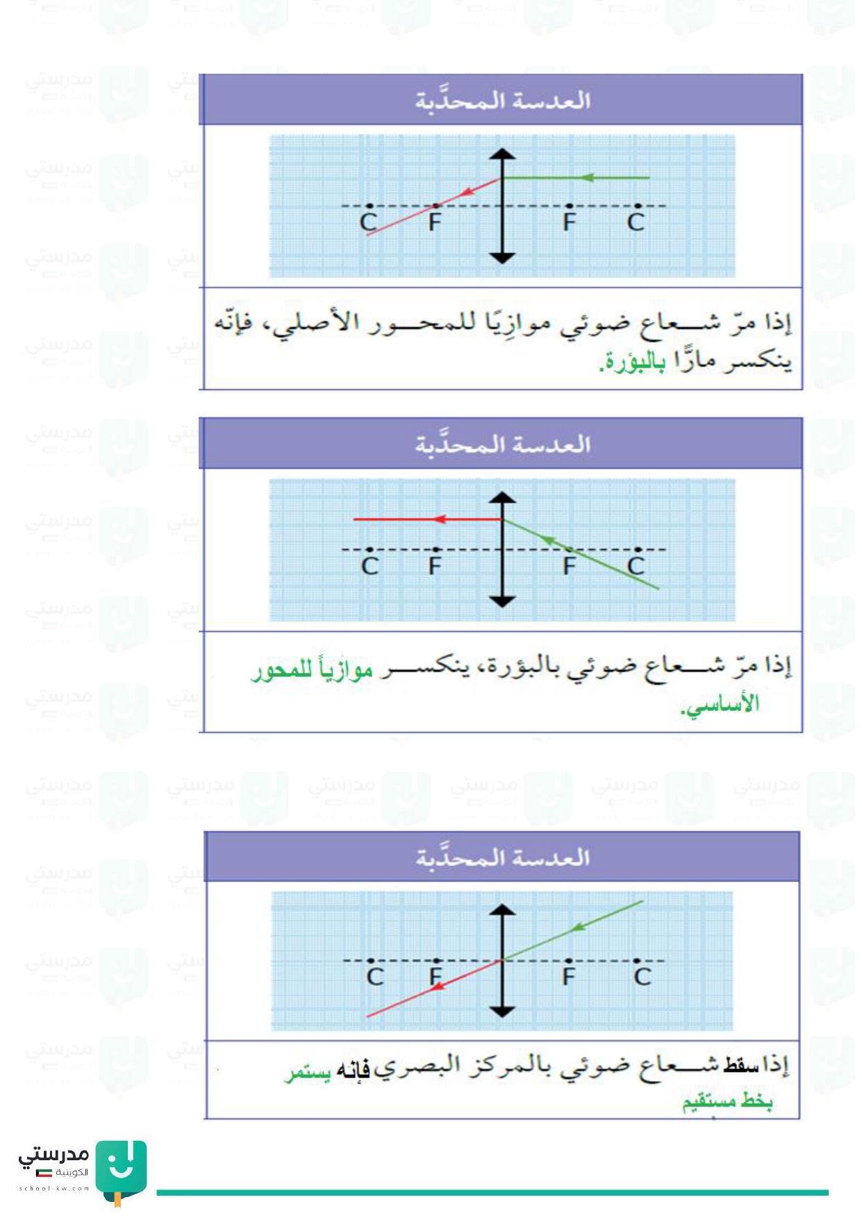 مسار الأشعة المنكسرة خلال العدسات المقعرة والمحدبة