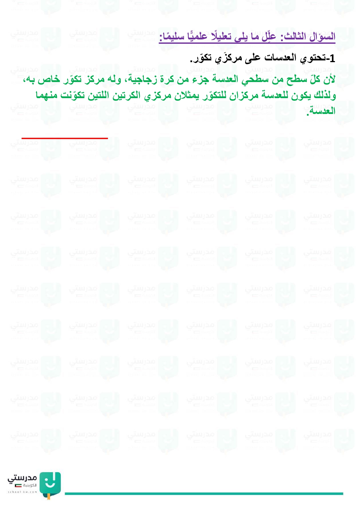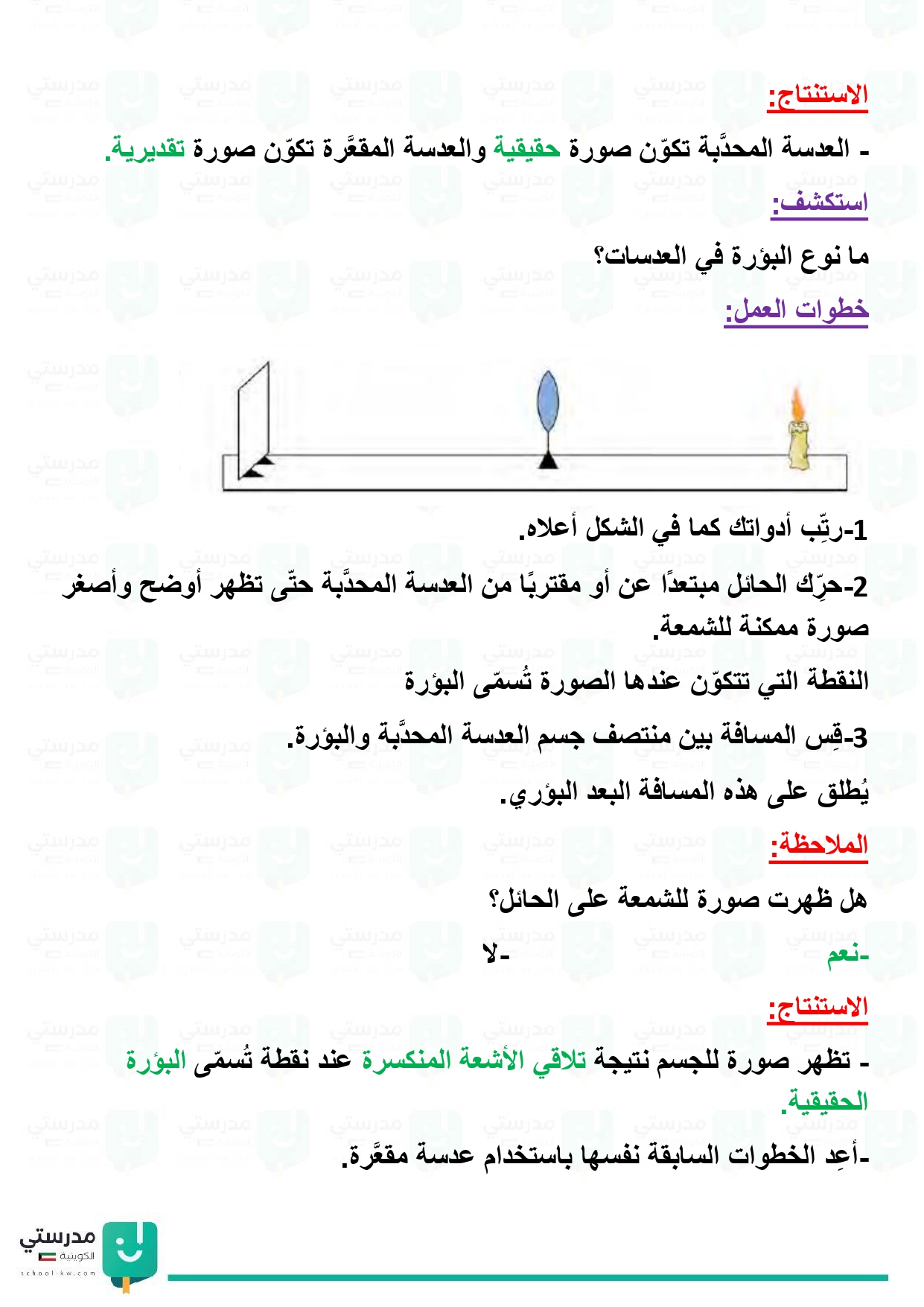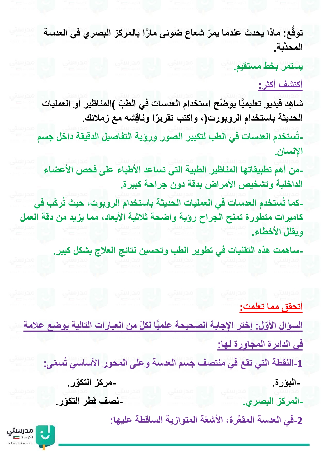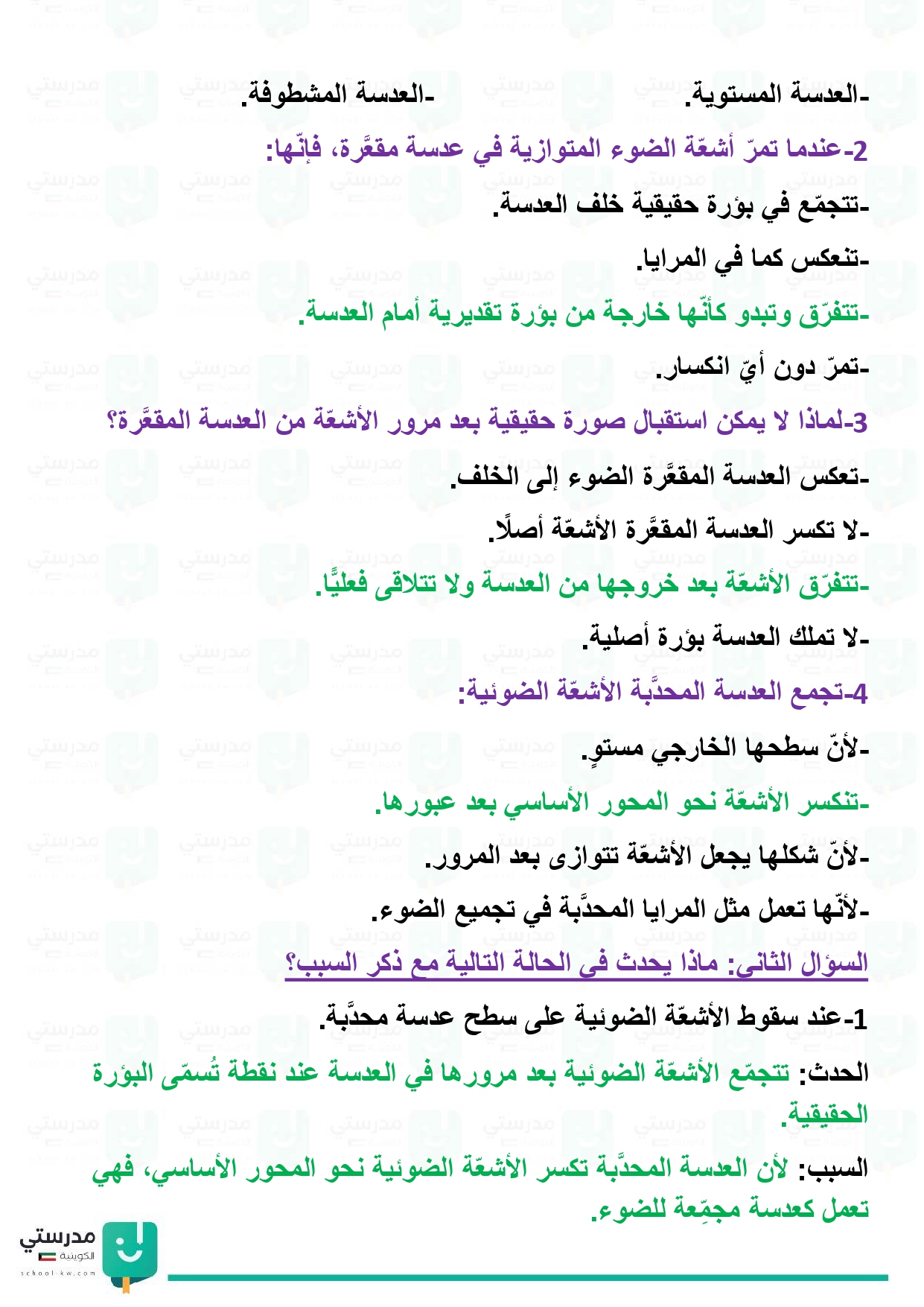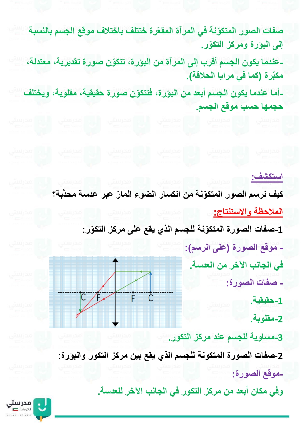 مسار الأشعة المنكسرة خلال العدسات المقعرة والمحدبة