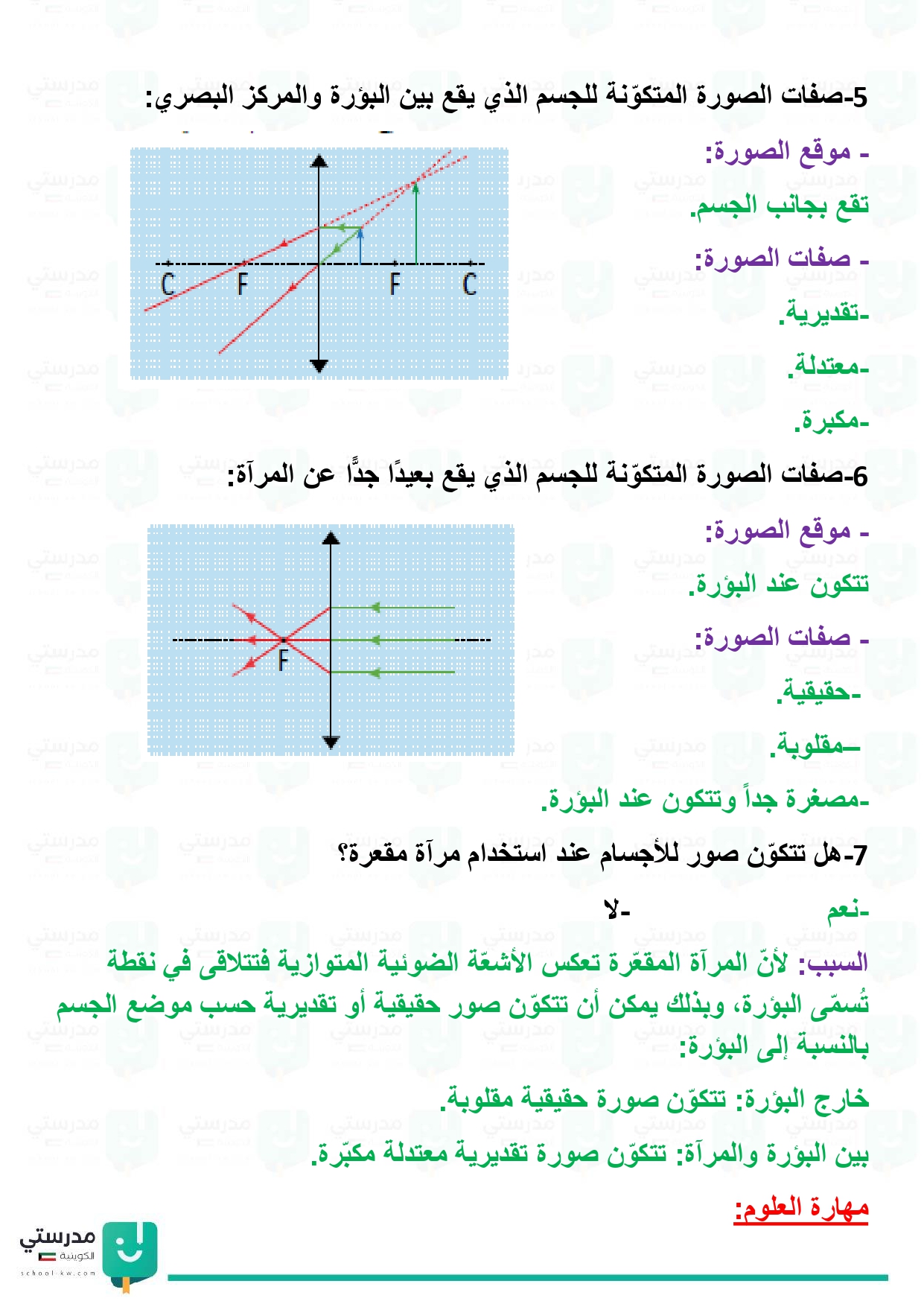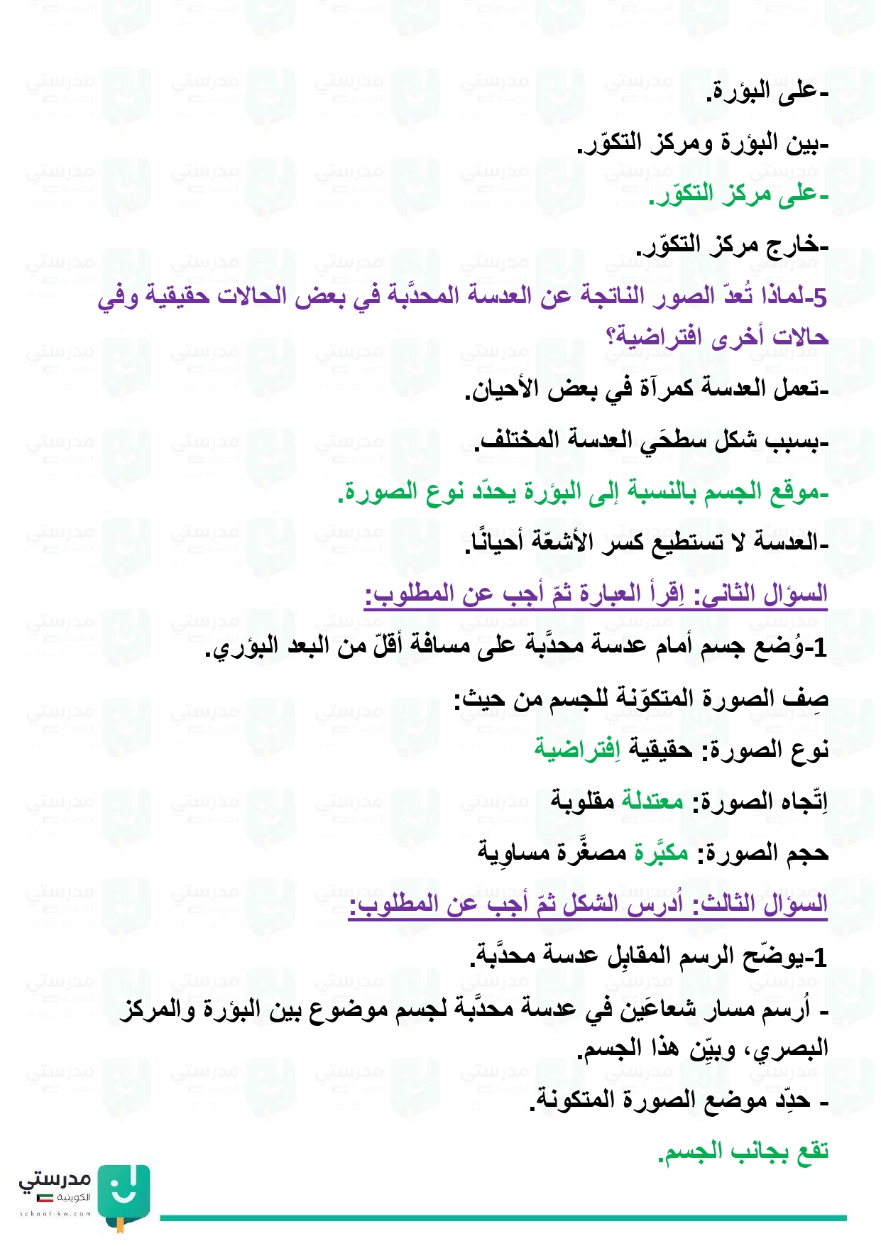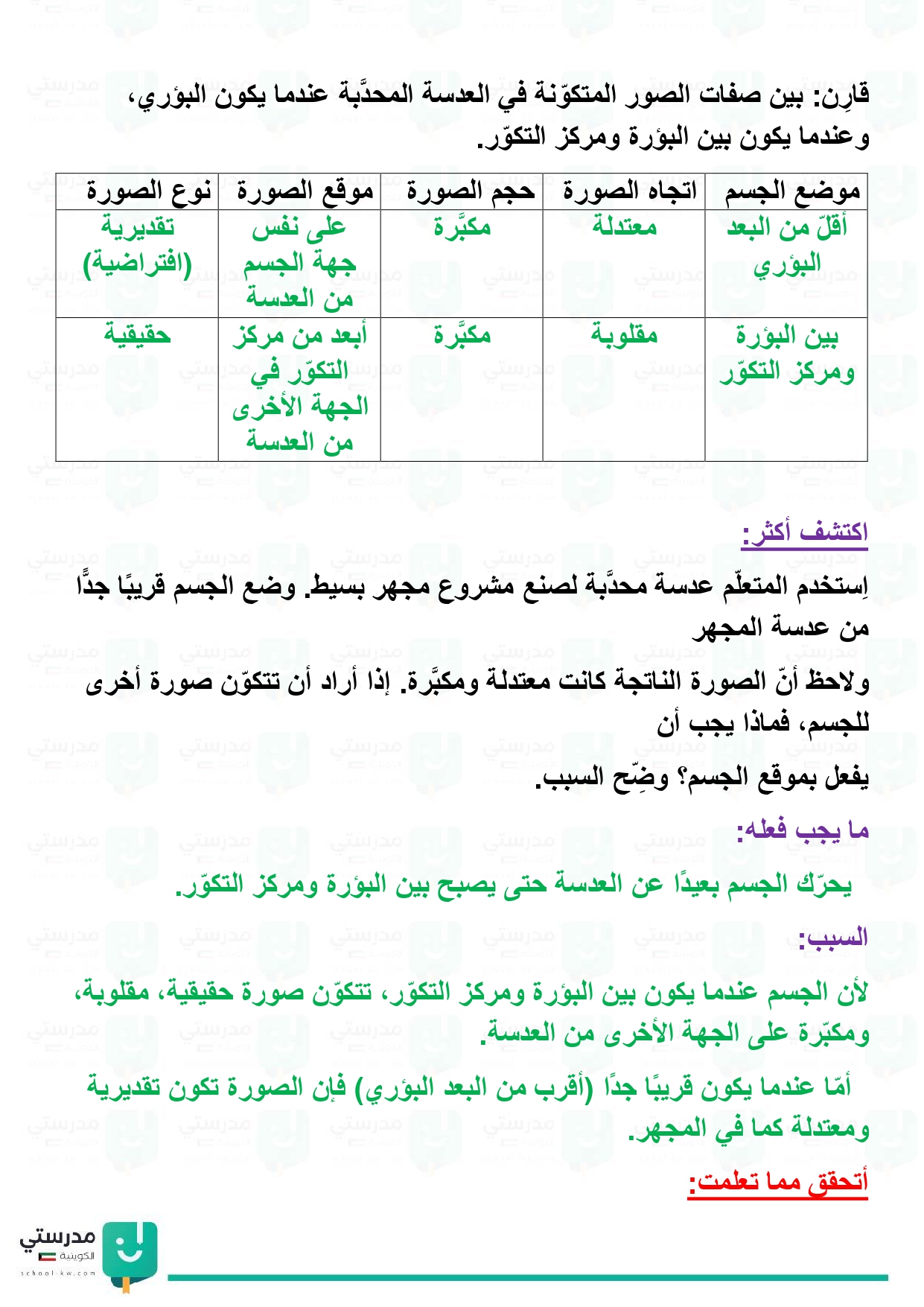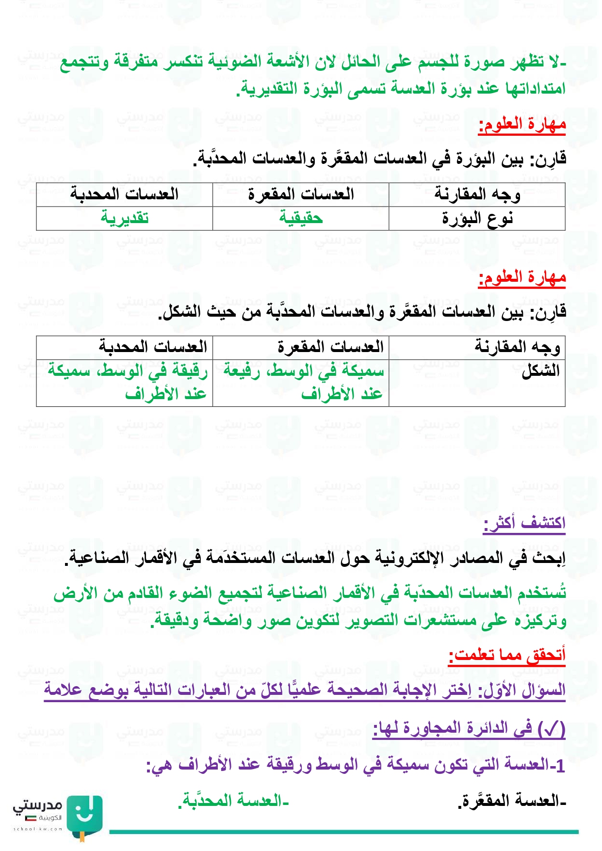 مسار الأشعة المنكسرة خلال العدسات المقعرة والمحدبة