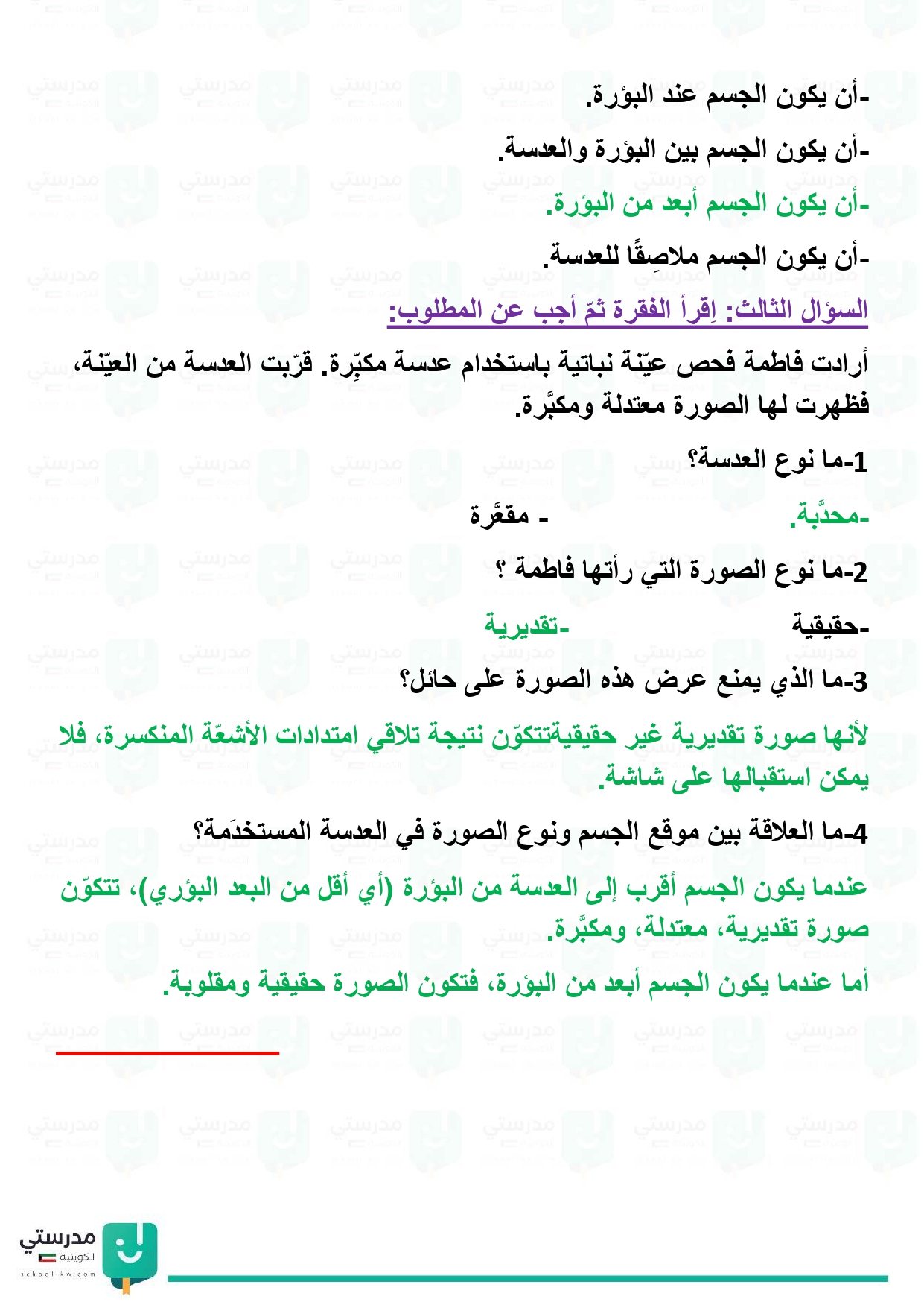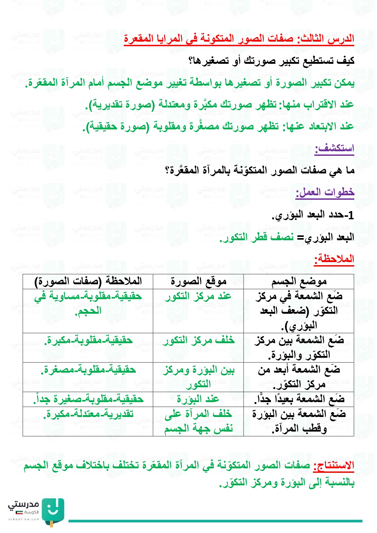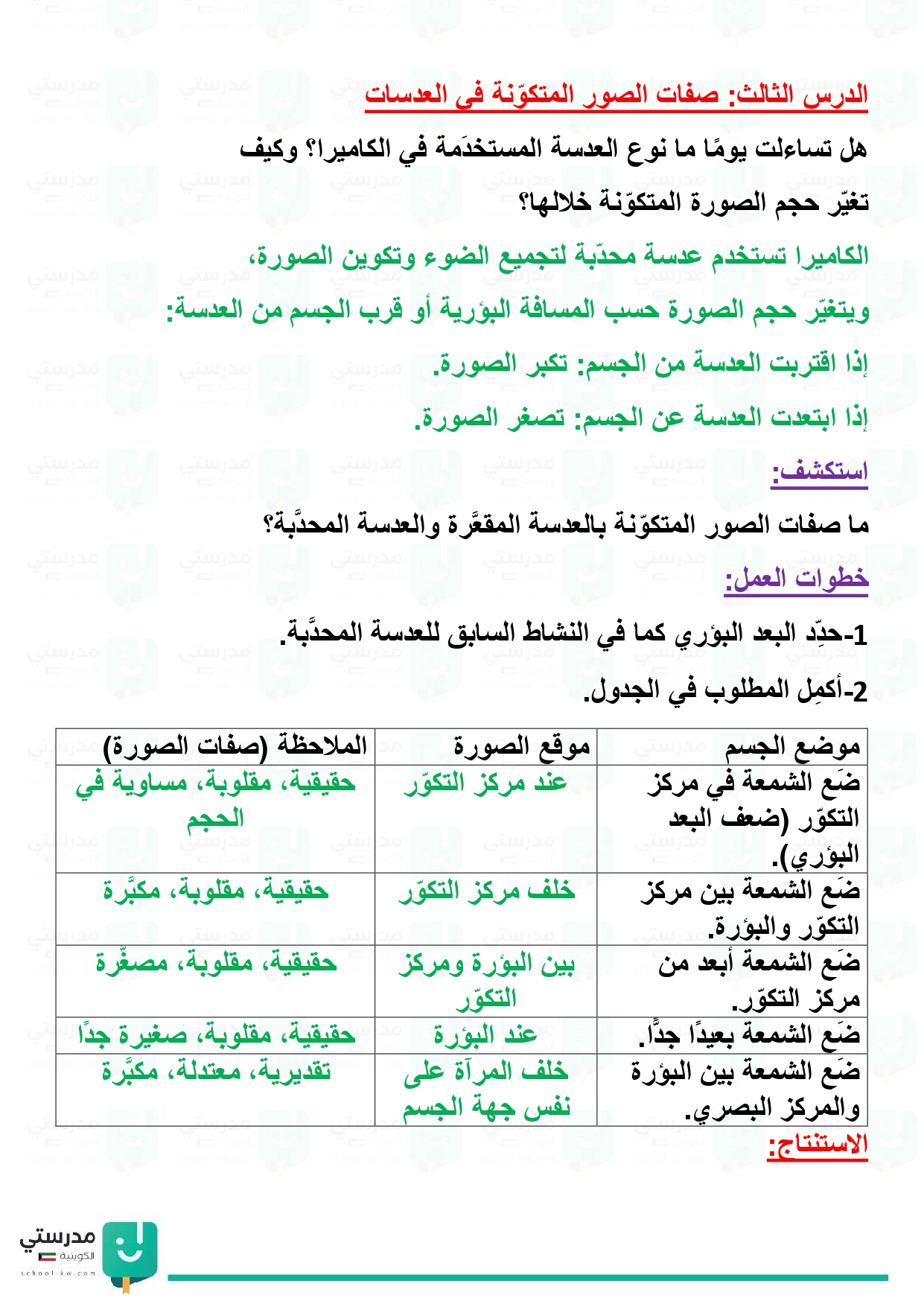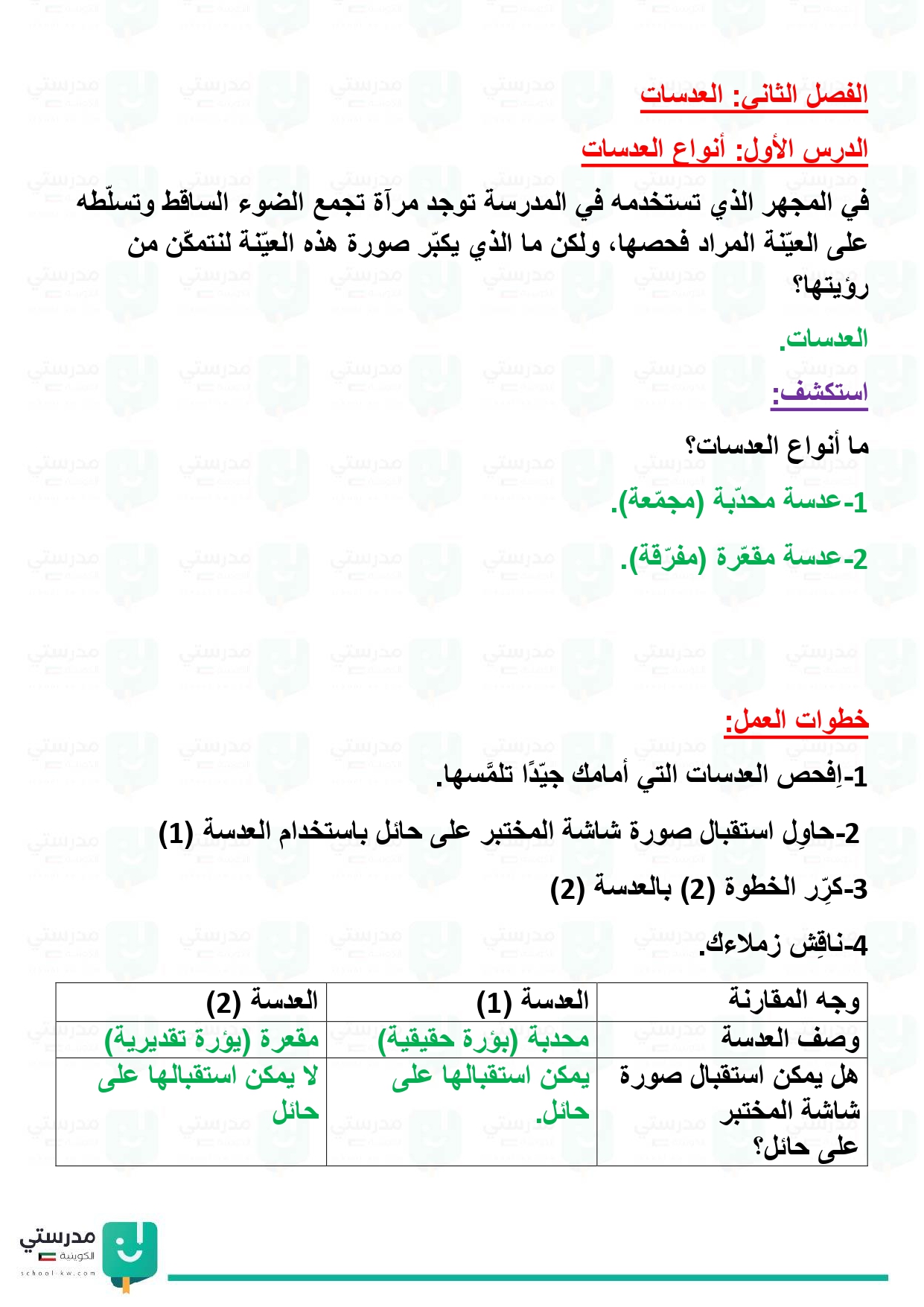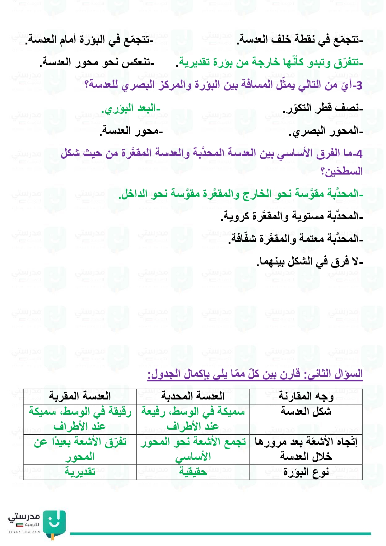 مسار الأشعة المنكسرة خلال العدسات المقعرة والمحدبة