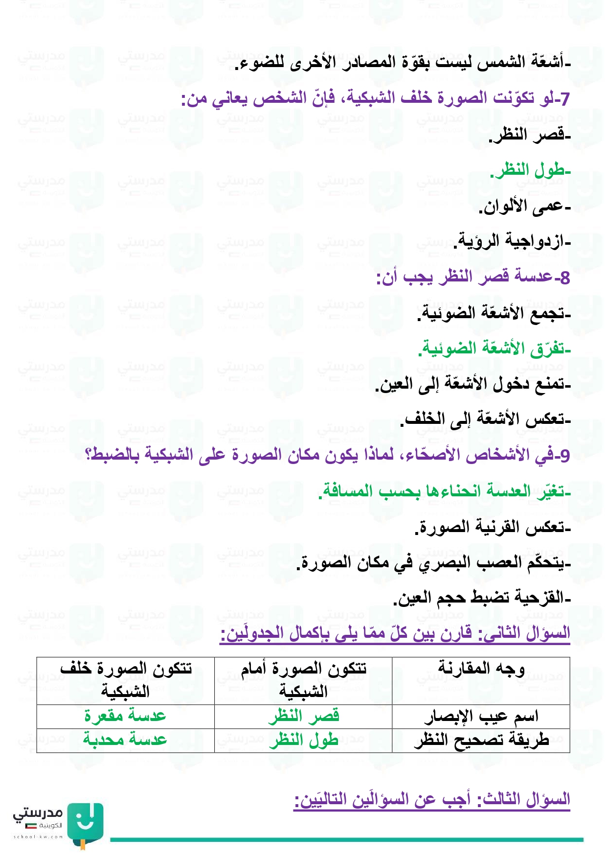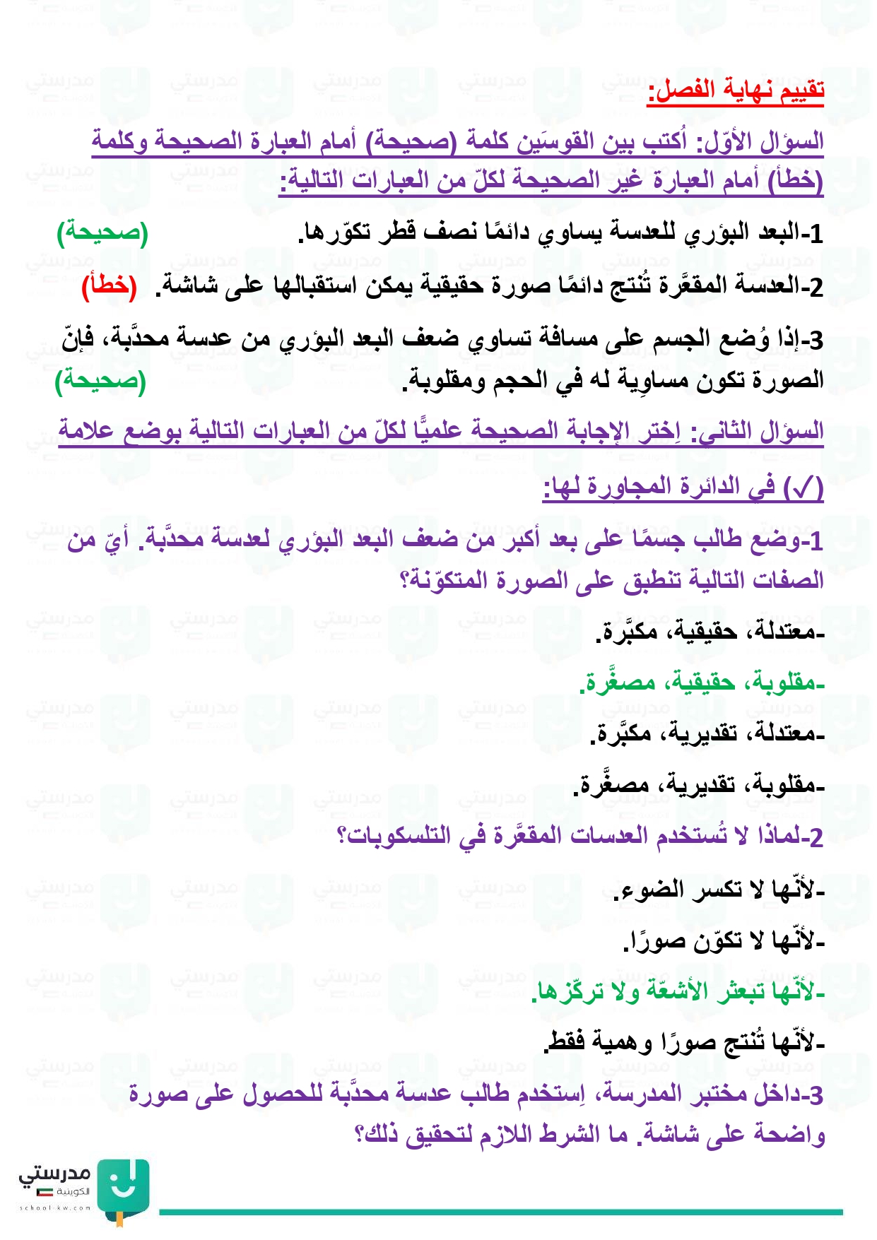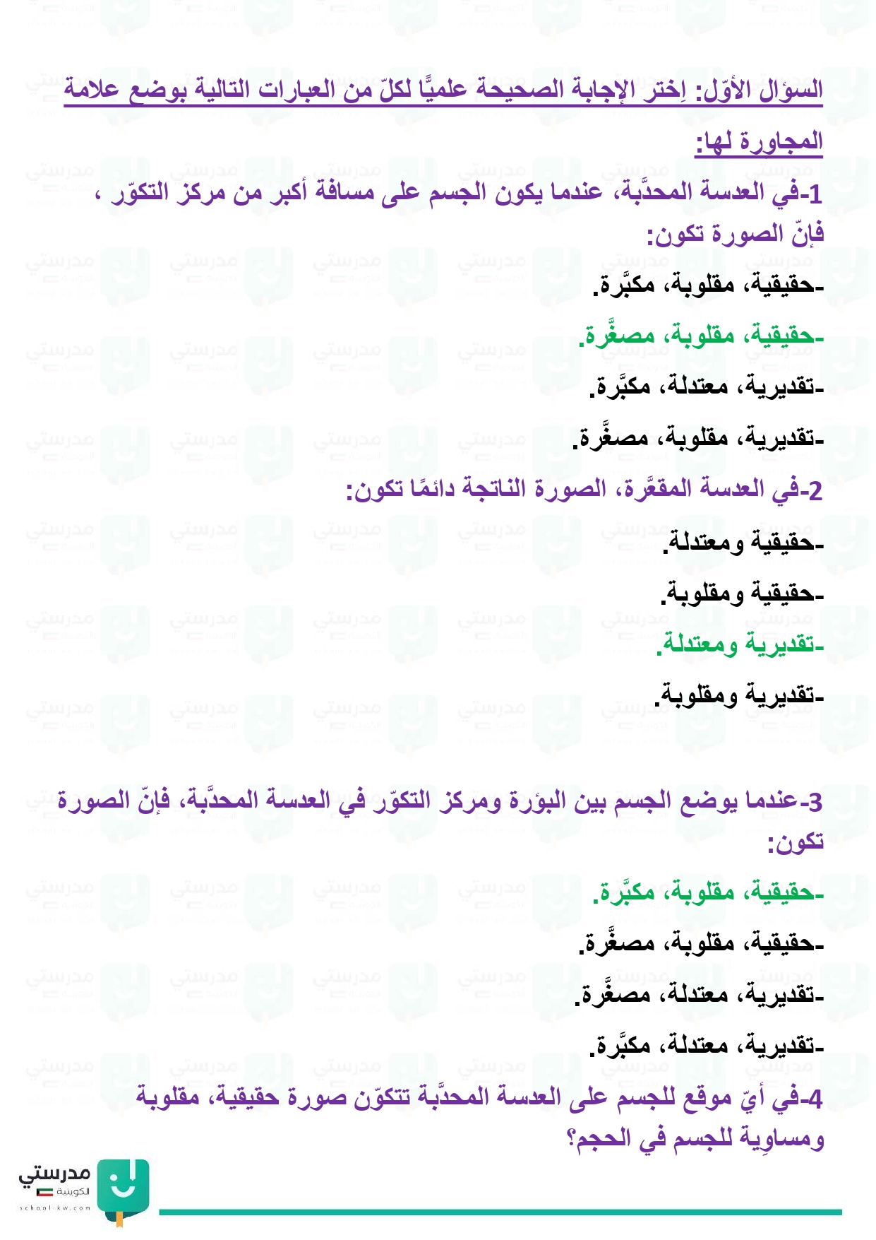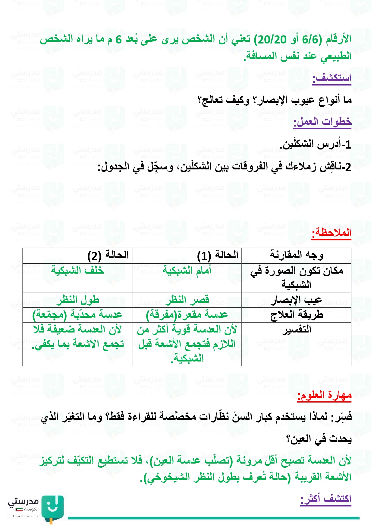 مسار الأشعة المنكسرة خلال العدسات المقعرة والمحدبة