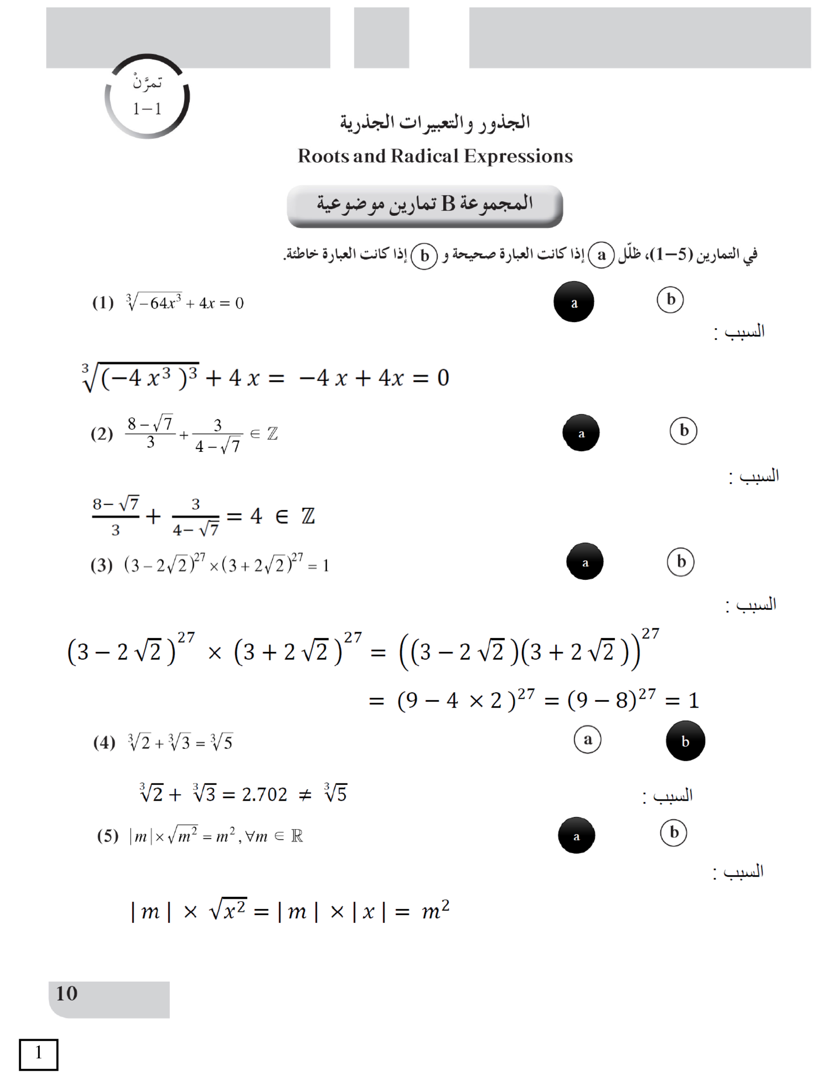 الجذور والتعبيرات الجذرية