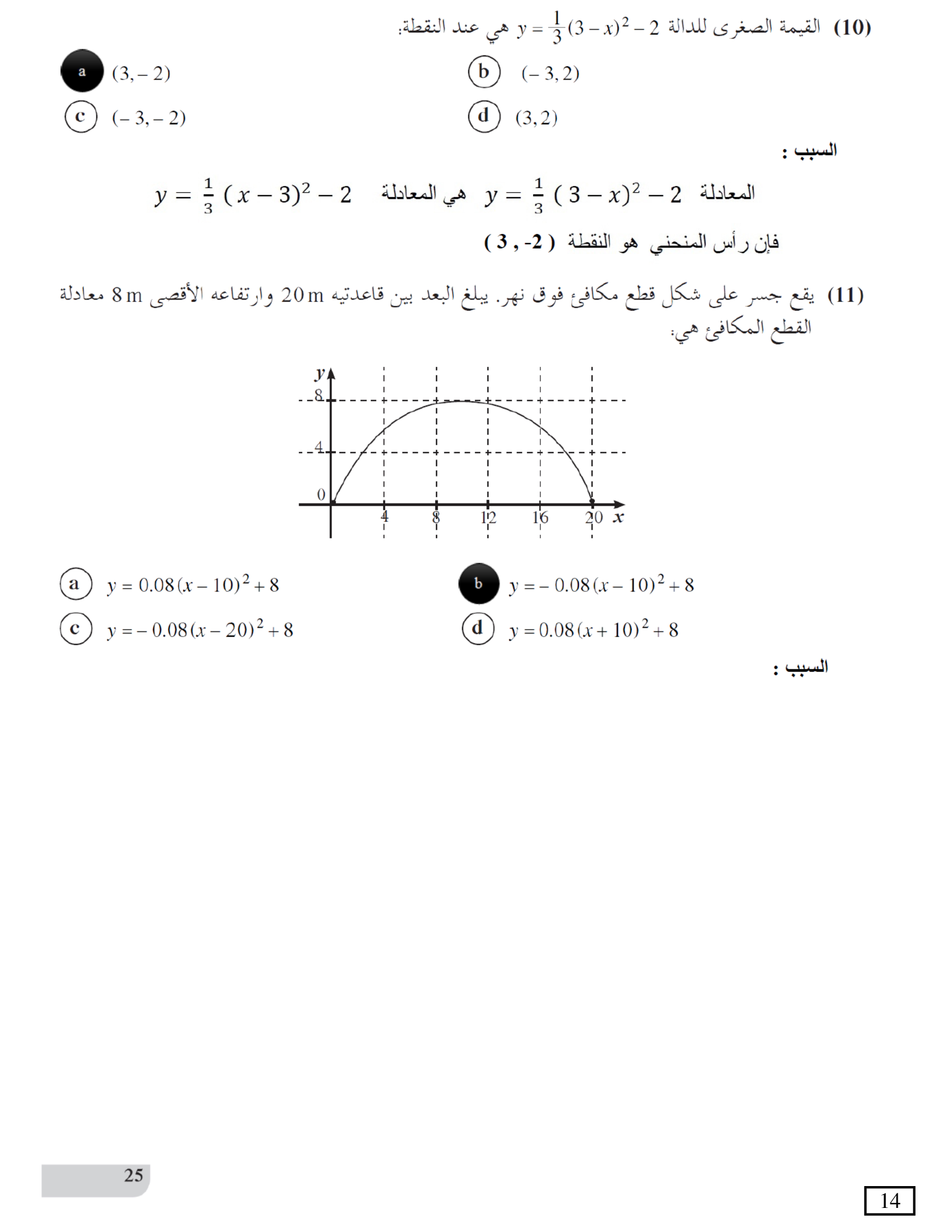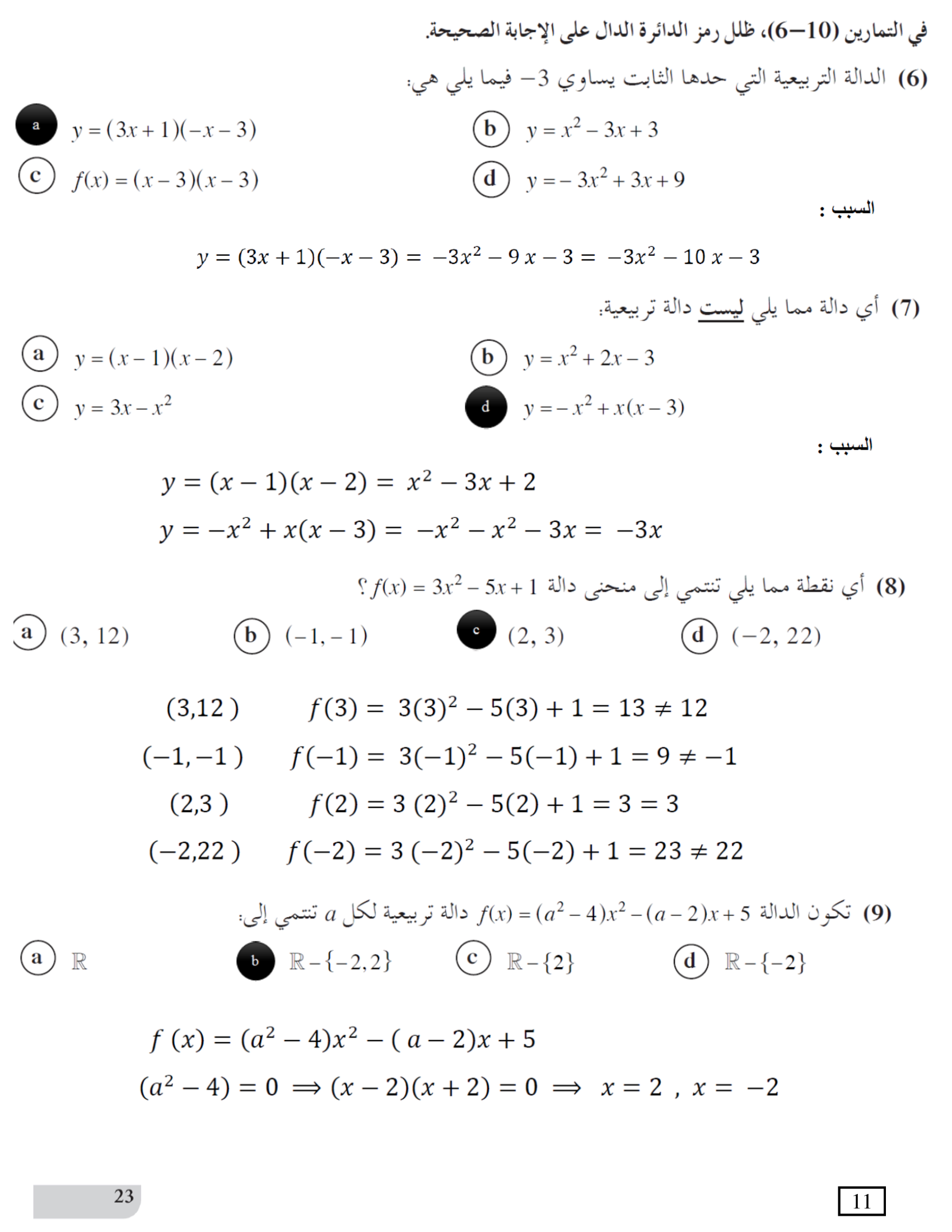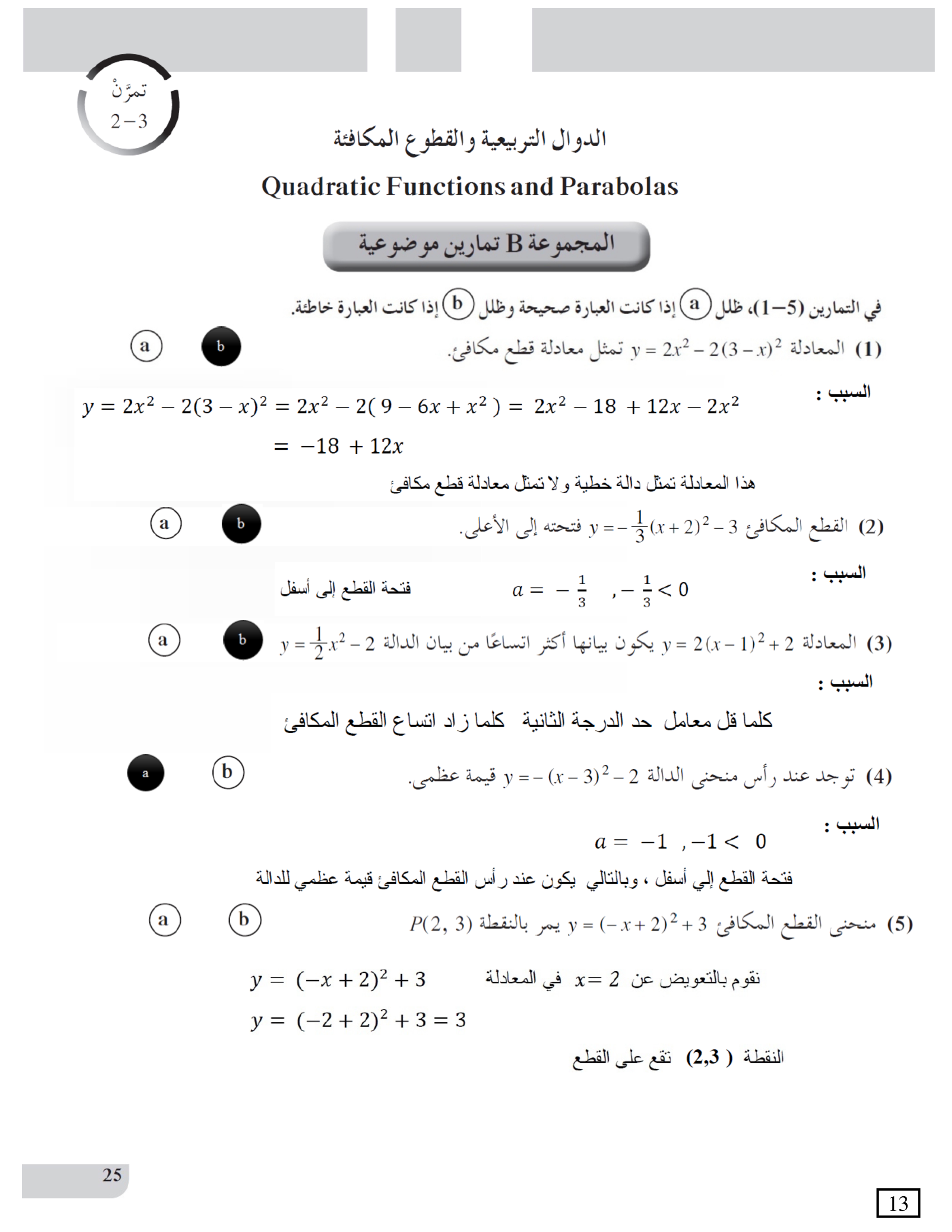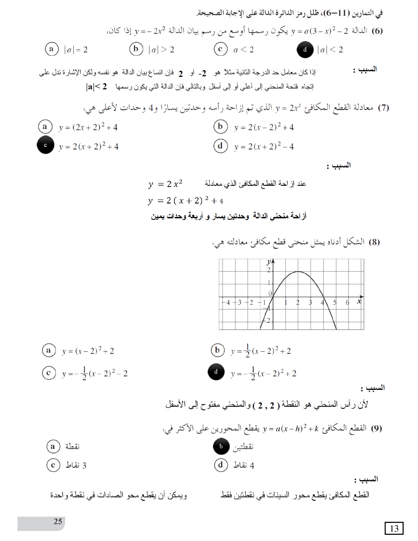 الدوال التربيعية والقطوع المكافئة