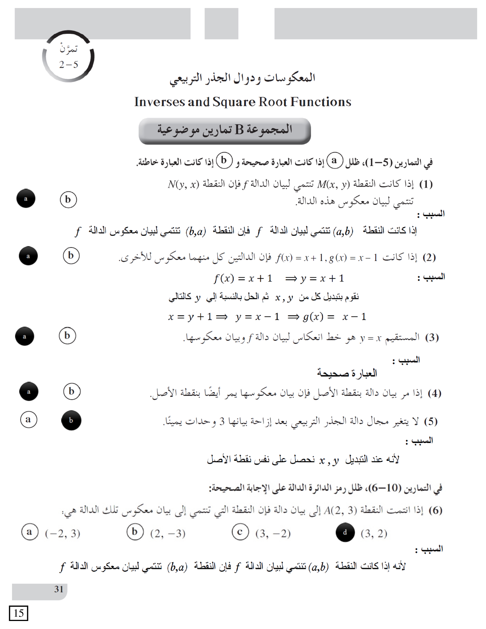 المعكوسات ودوال الجذر التربيعي