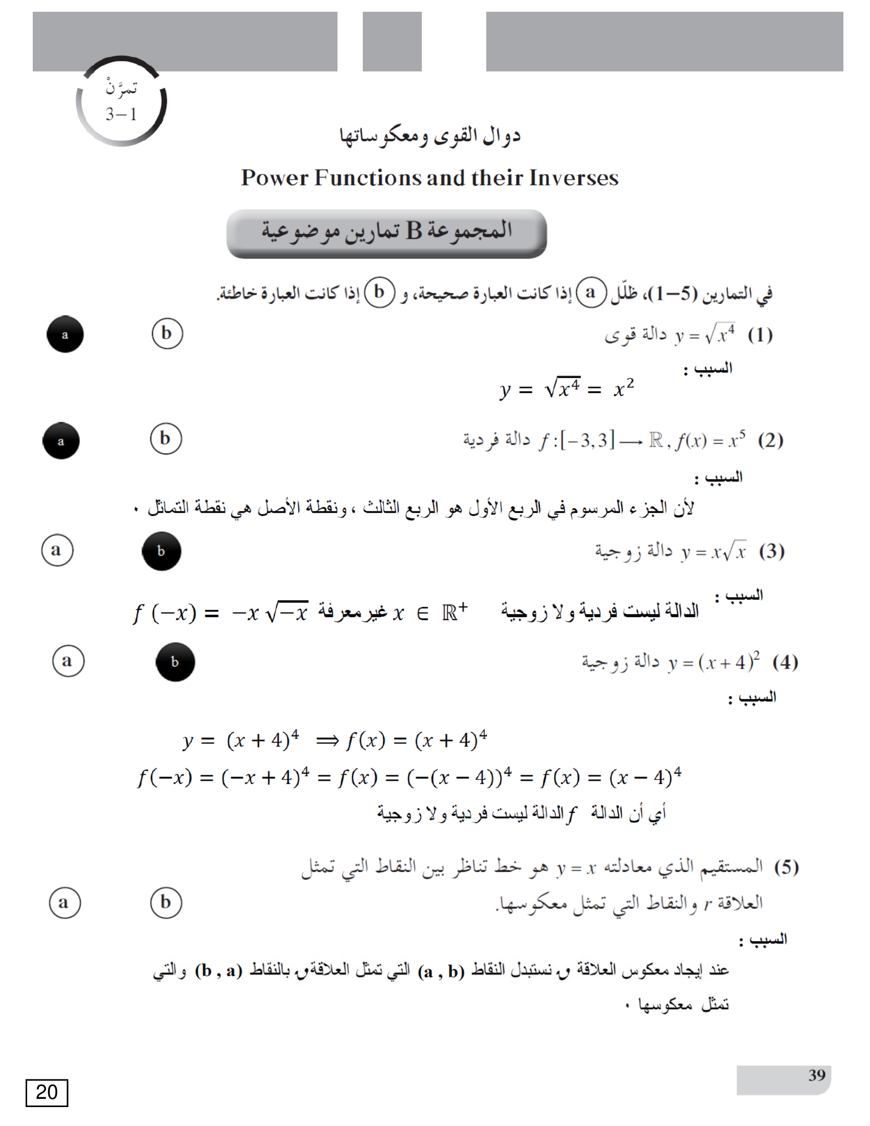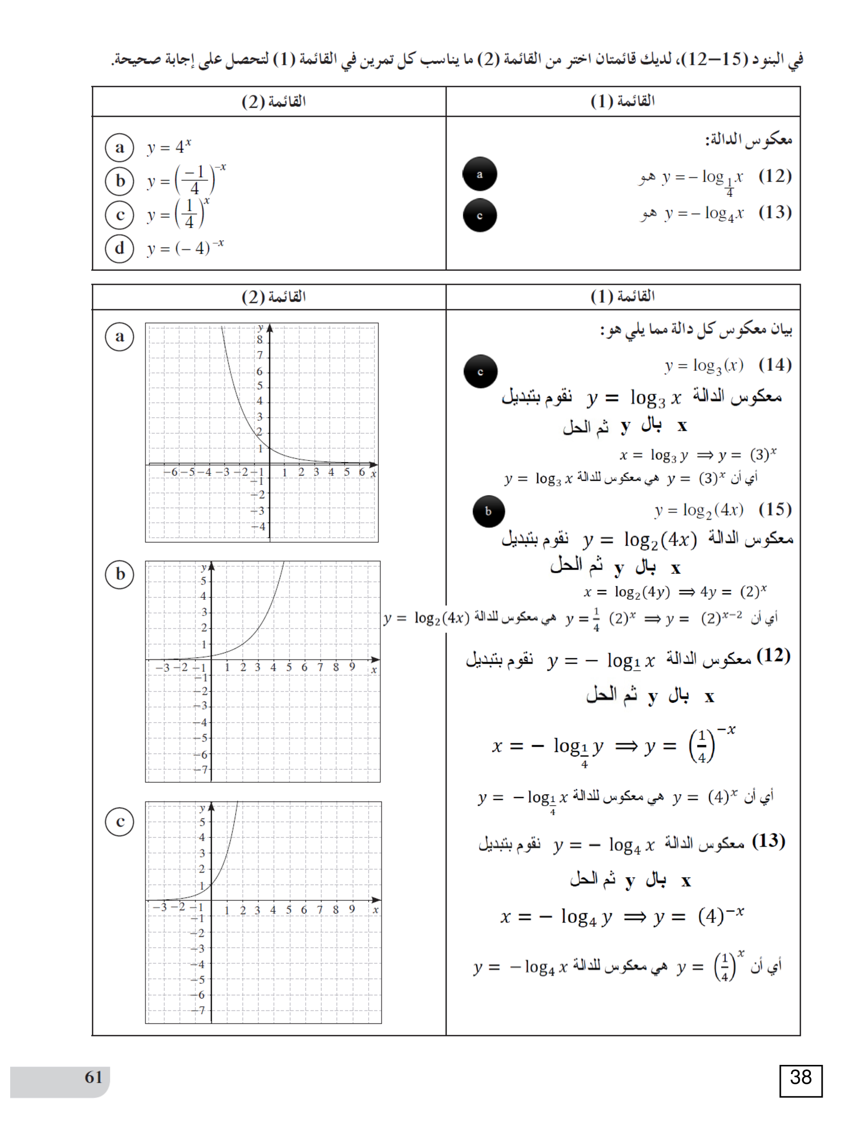 دوال القوى ومعكوساتها